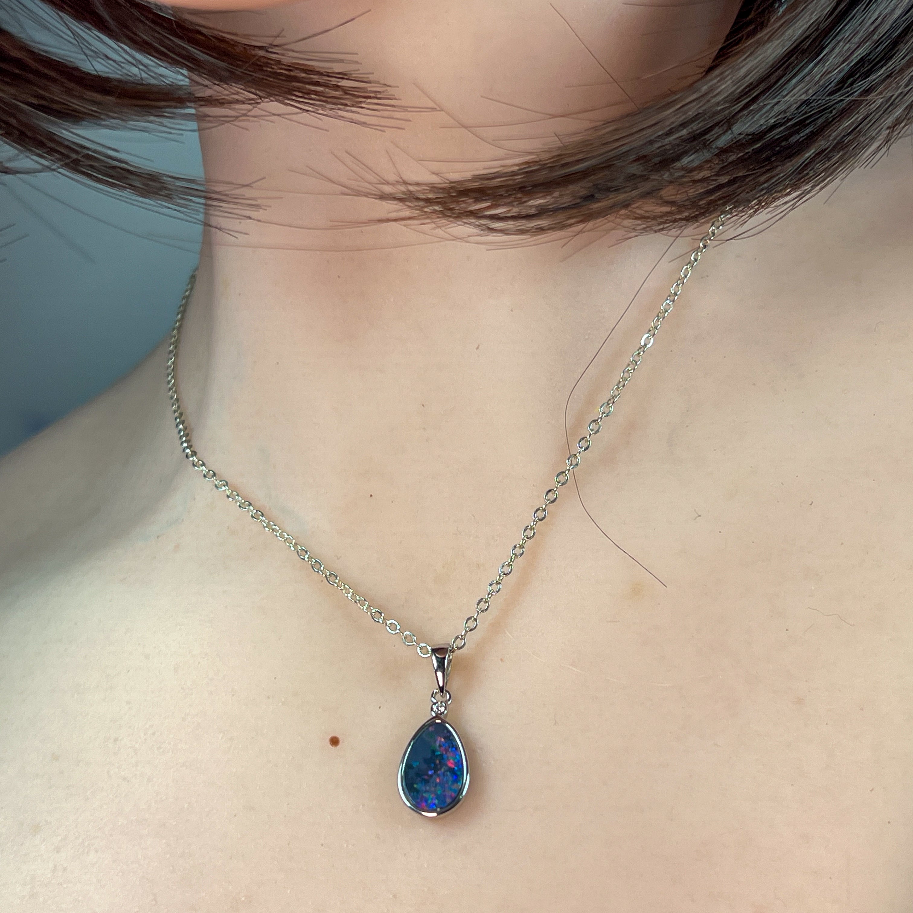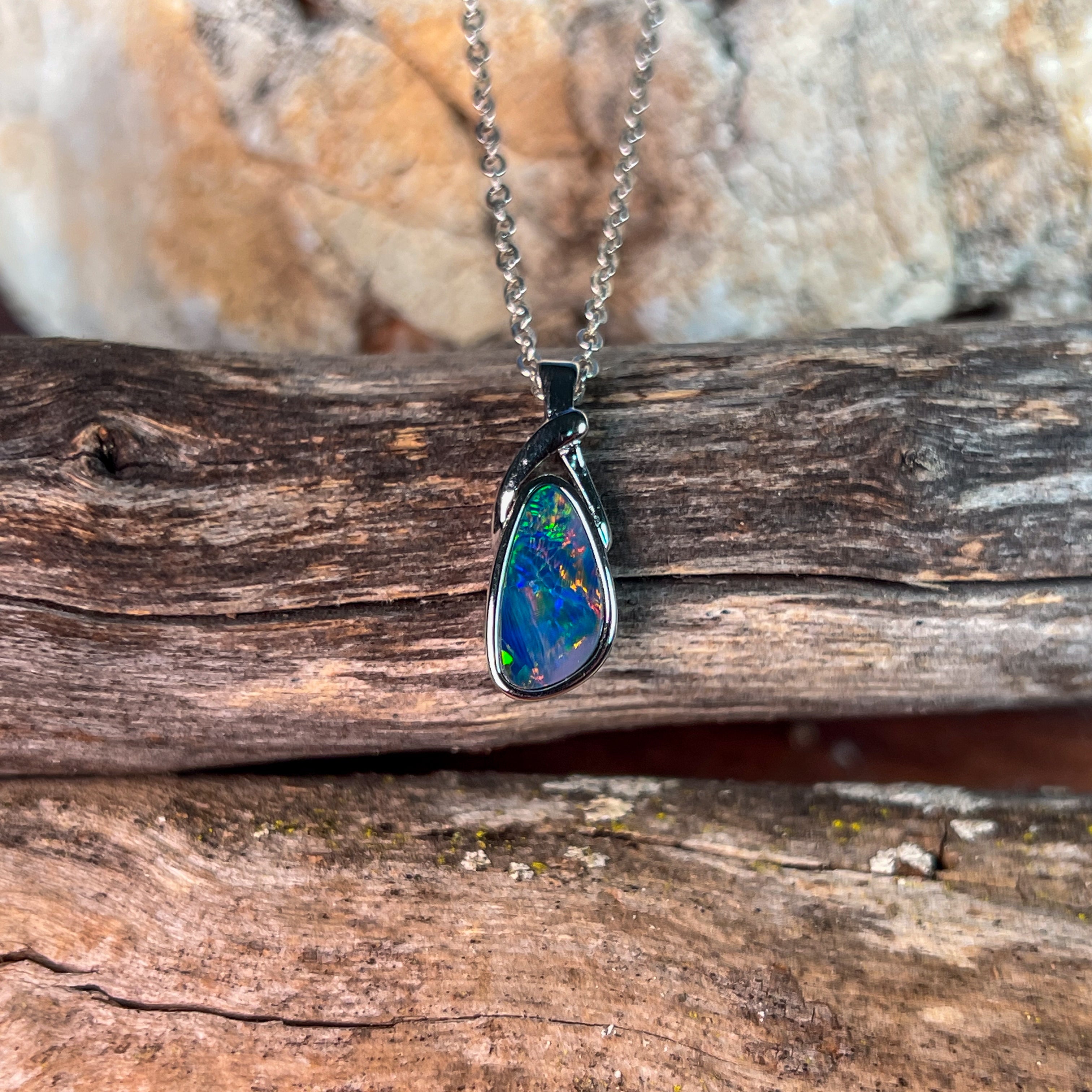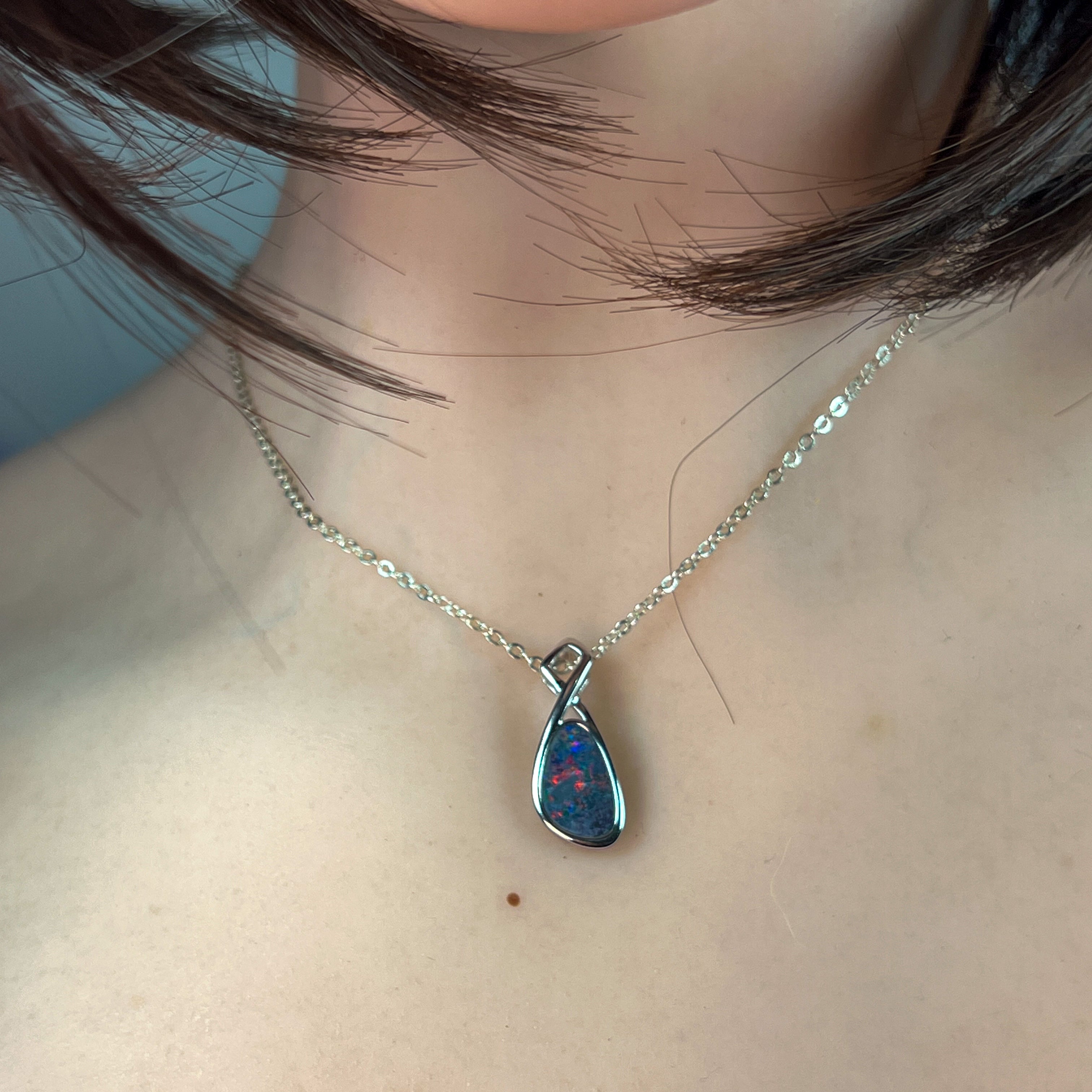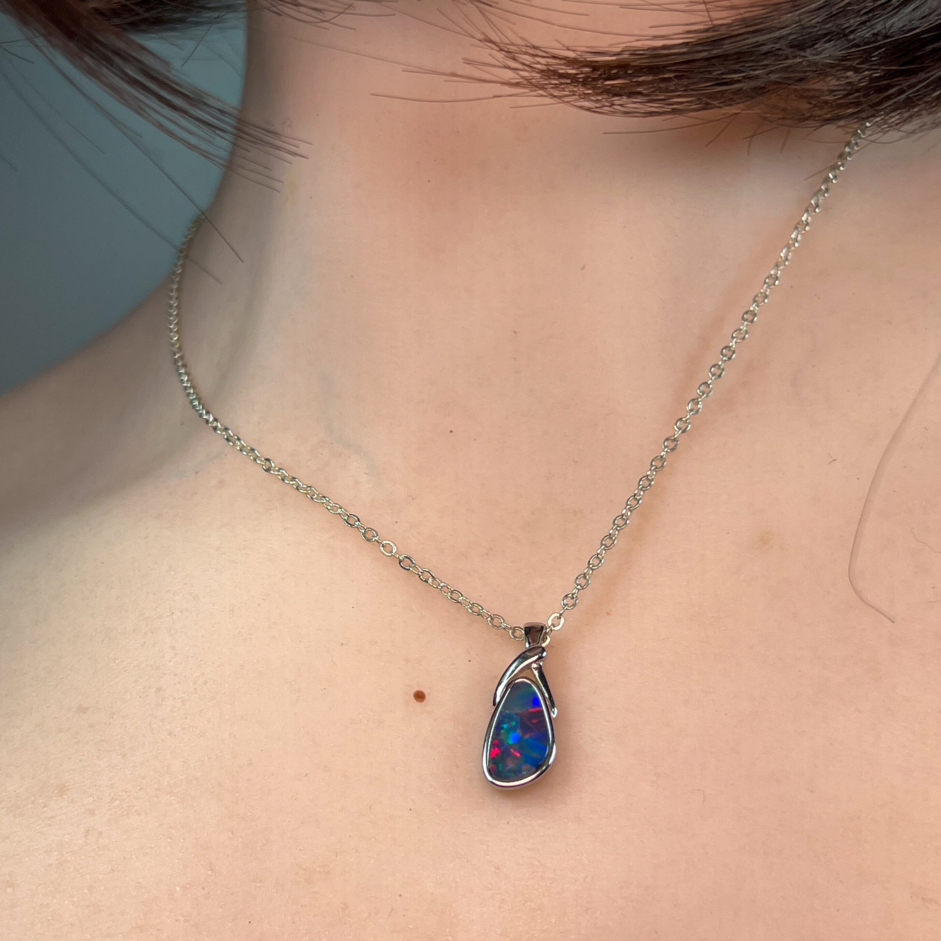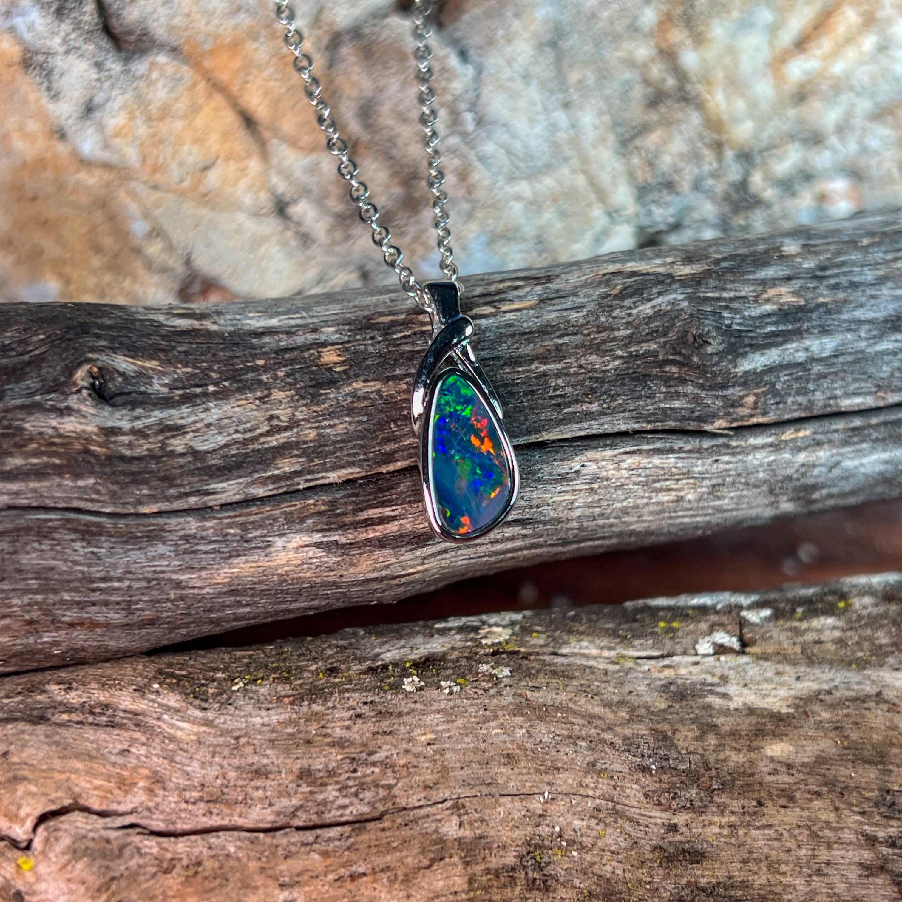 Sterling Silver Pear shape 12x9mm Opal doublet pendant