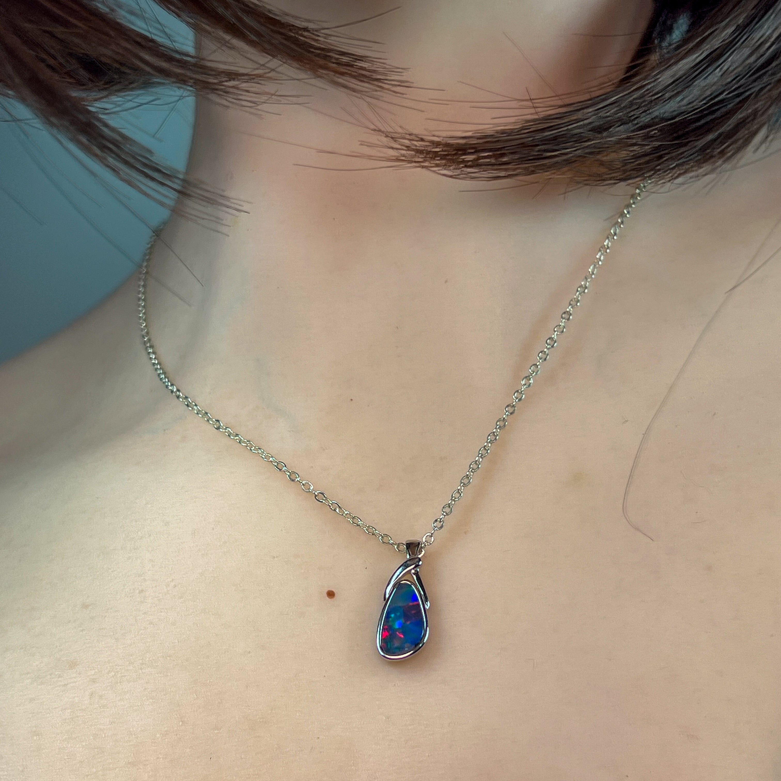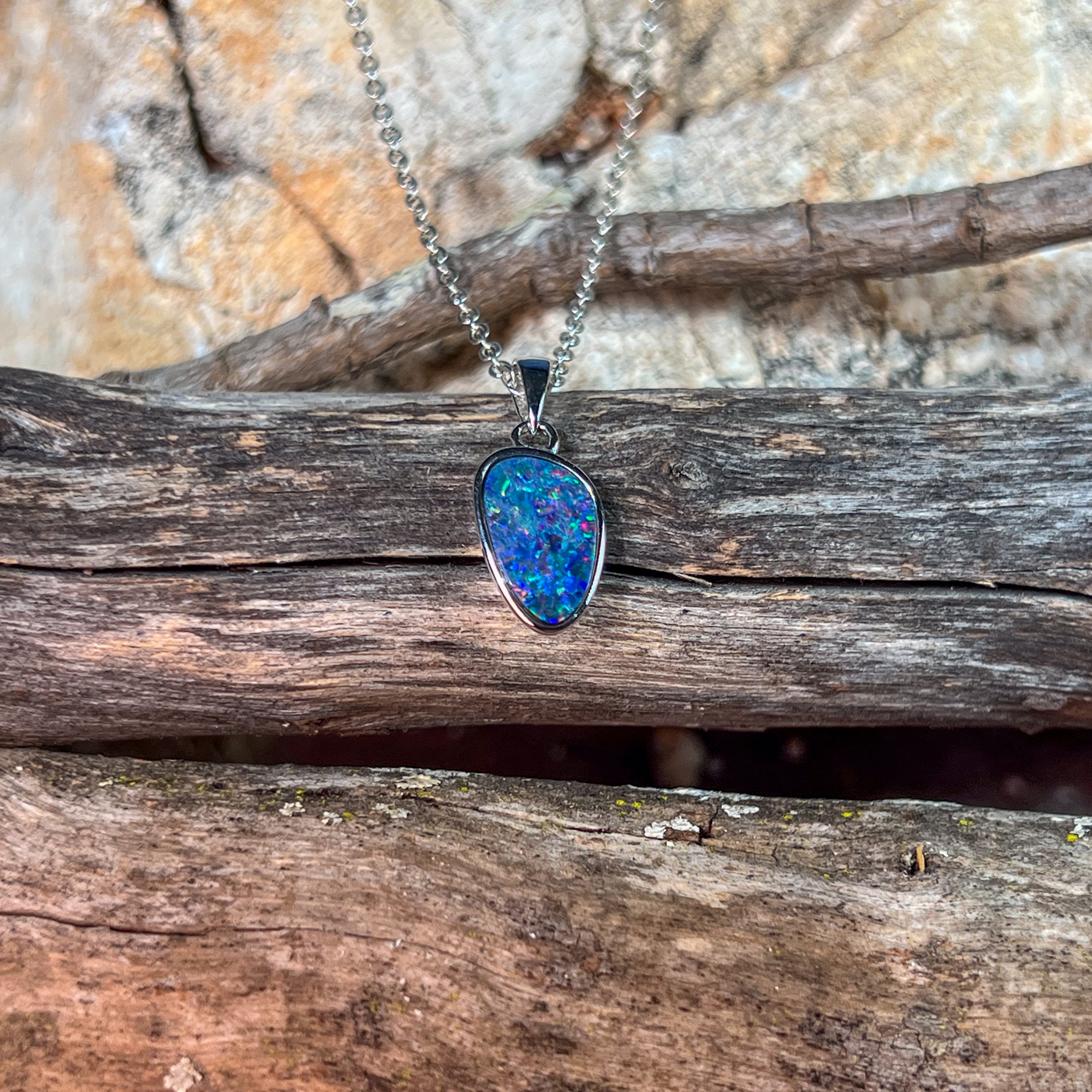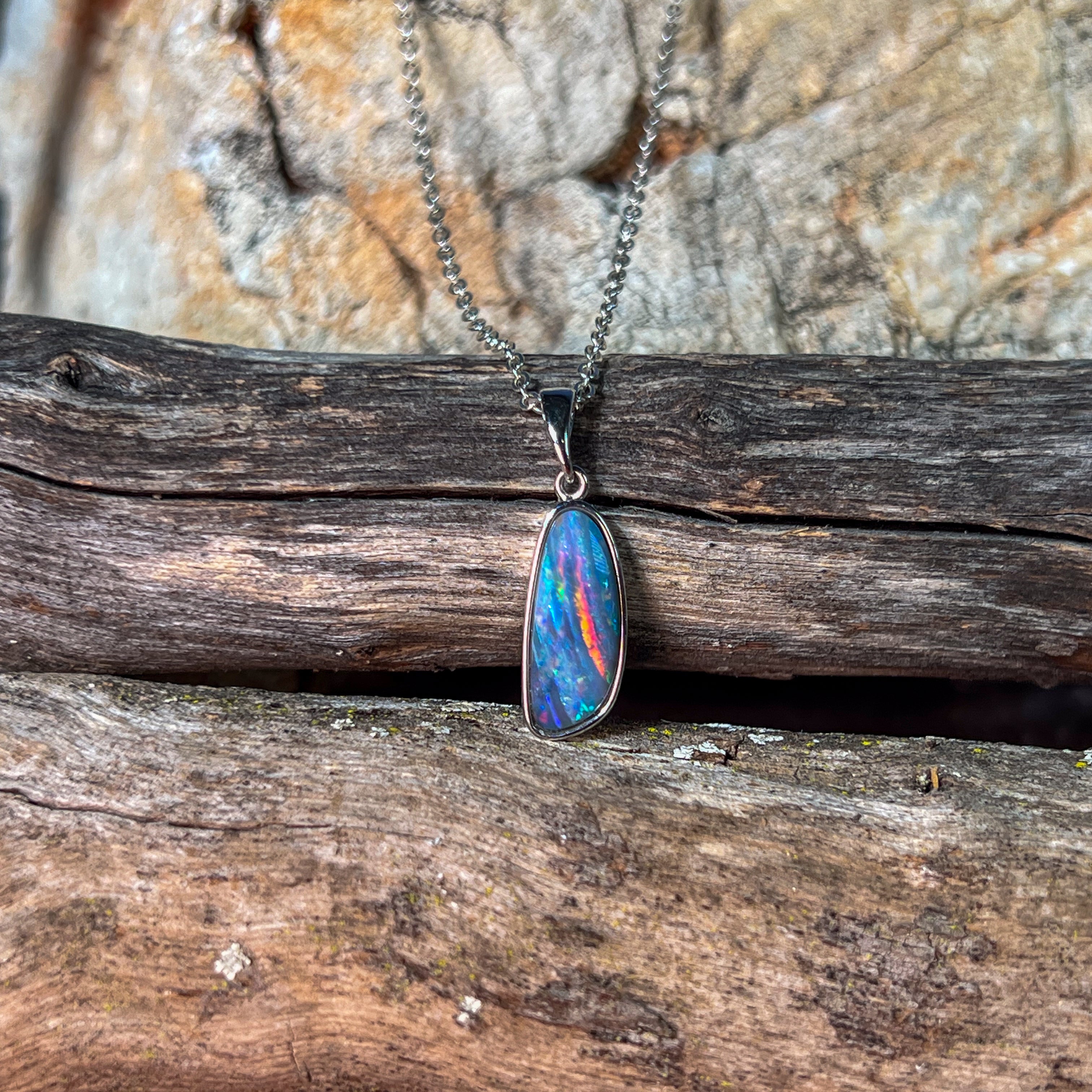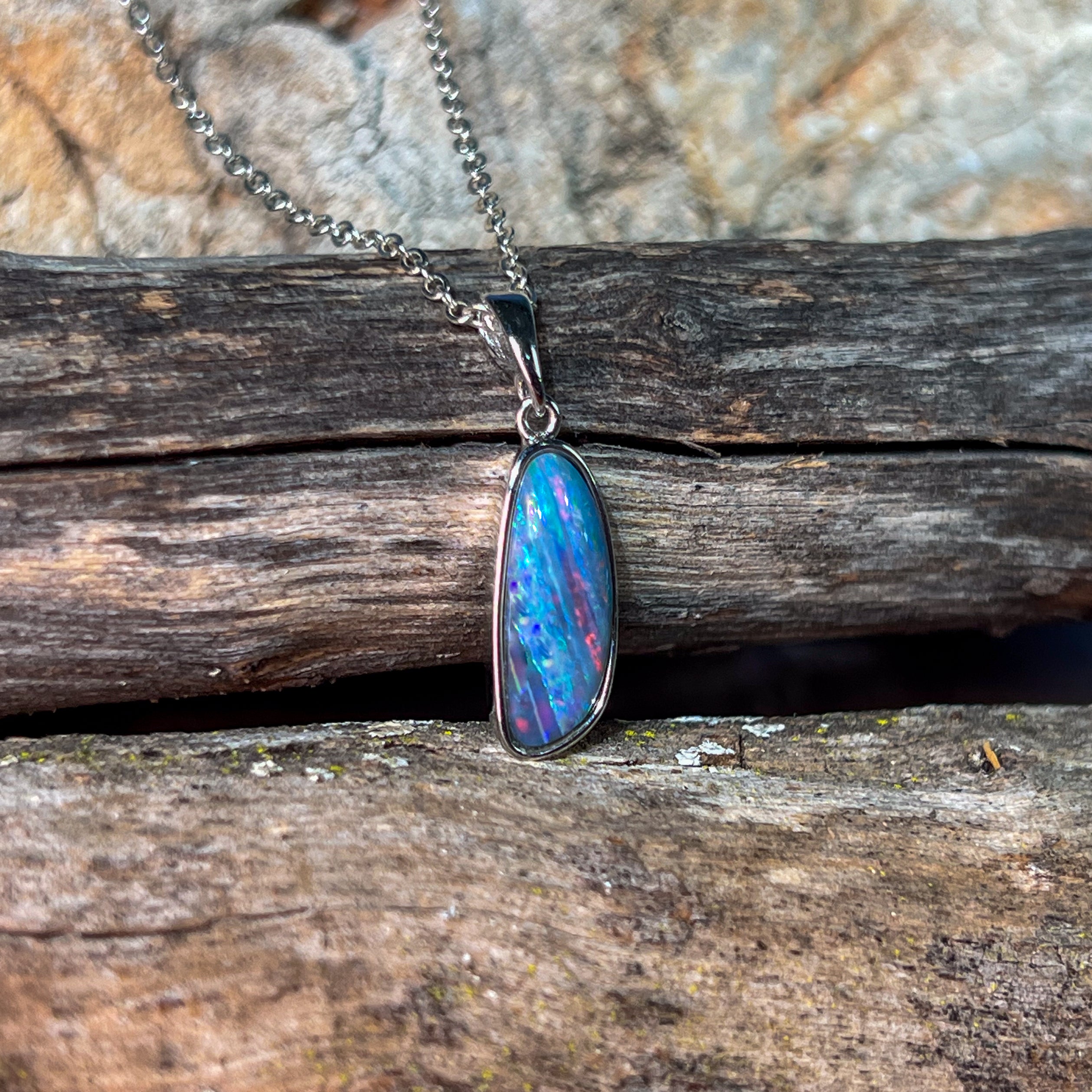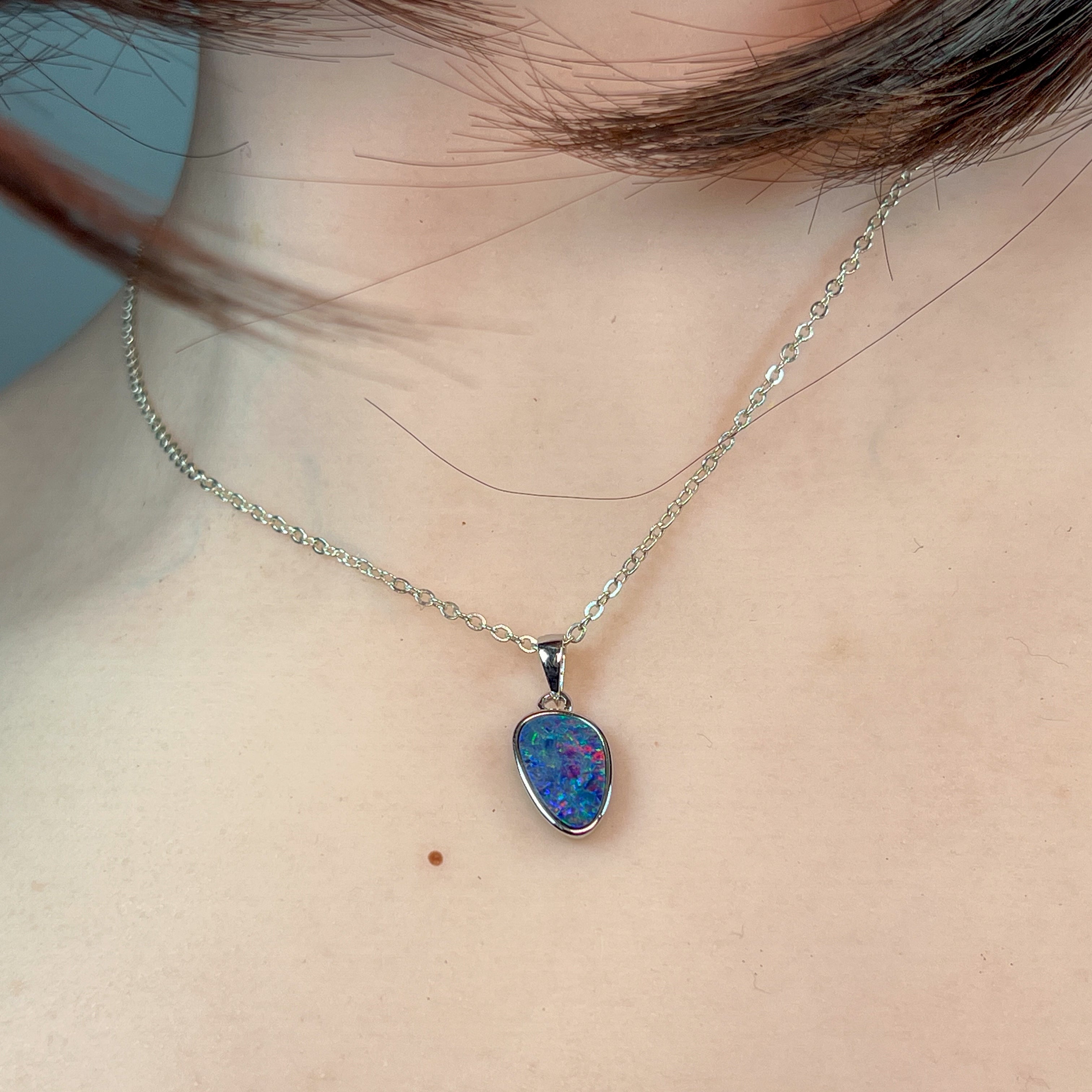 Sterling Silver Pear shape 12x9mm Opal doublet pendant