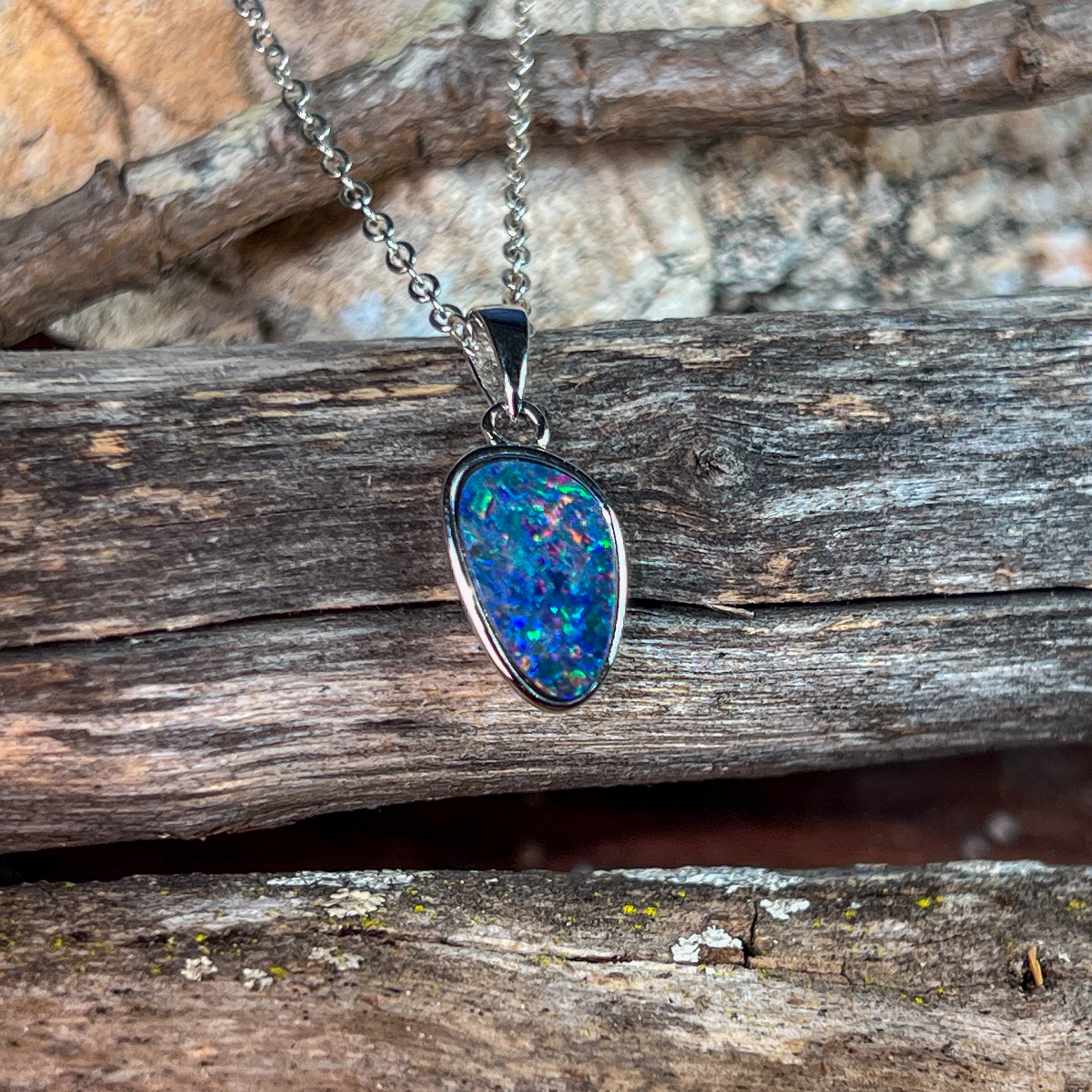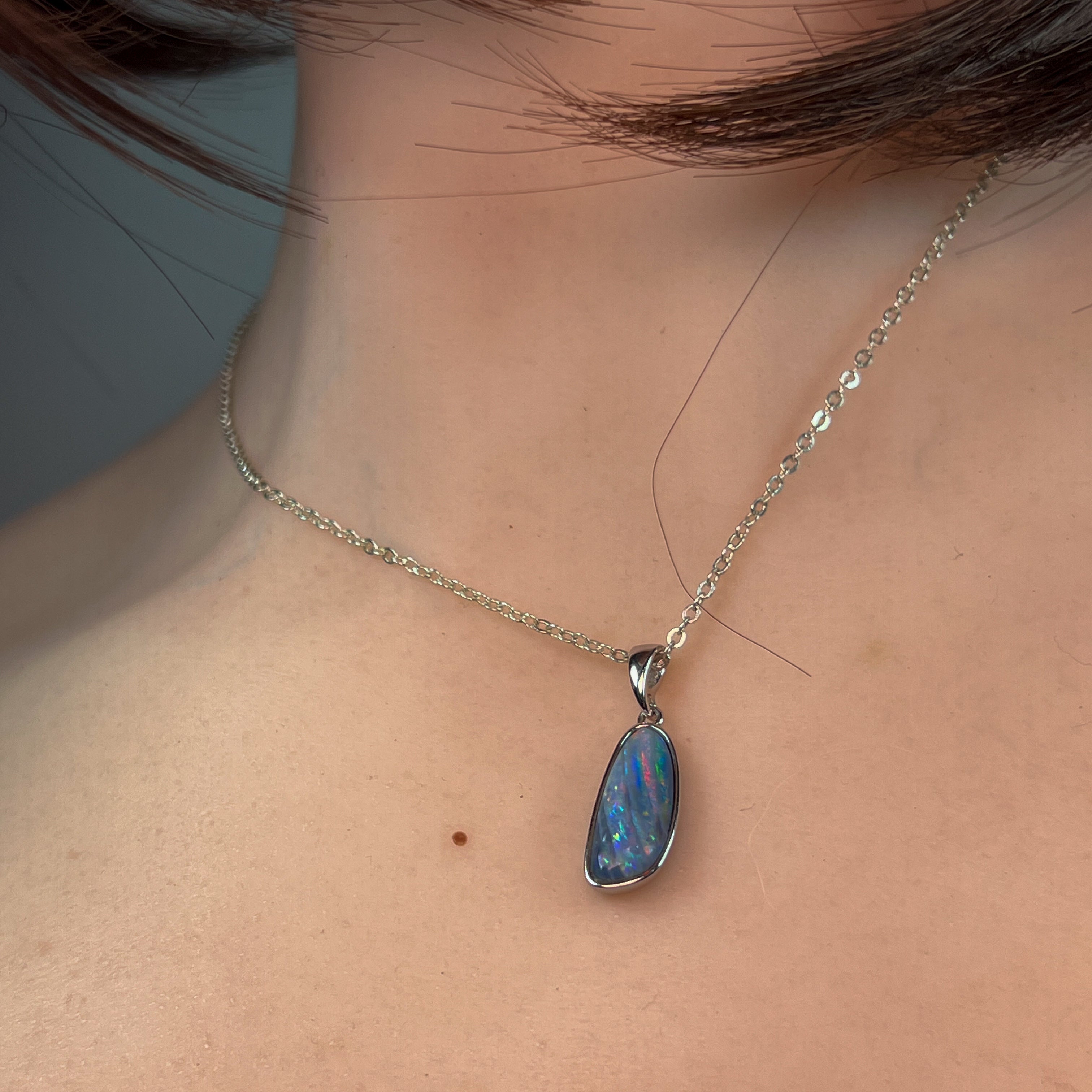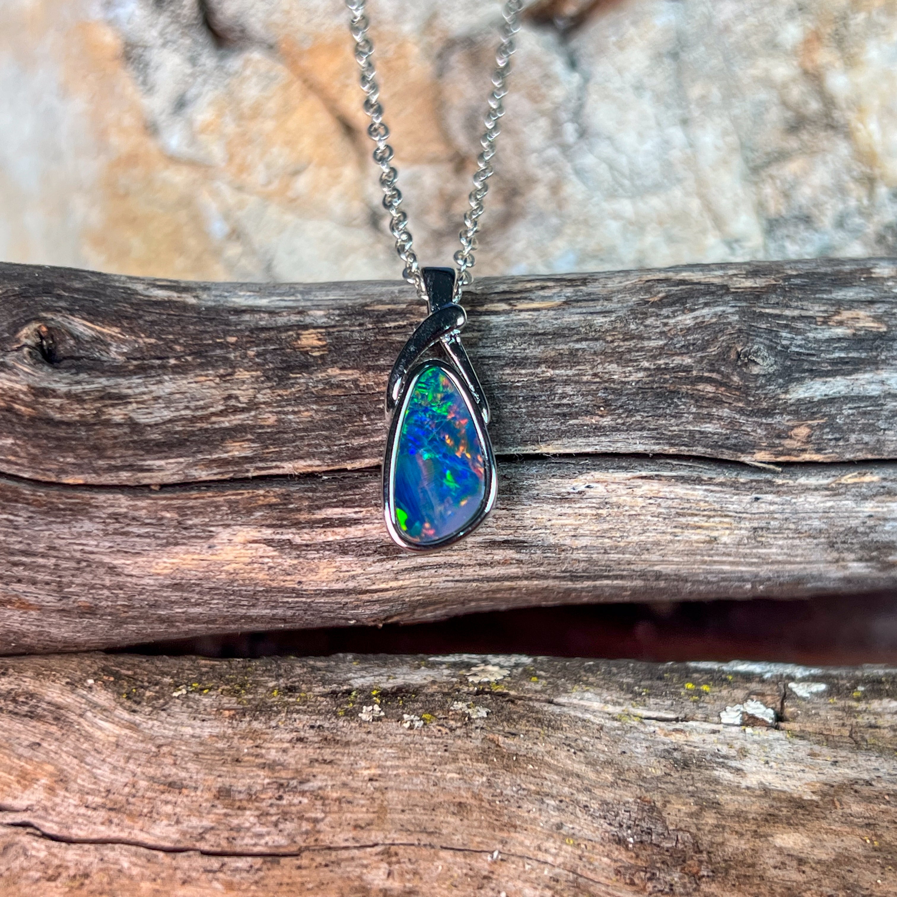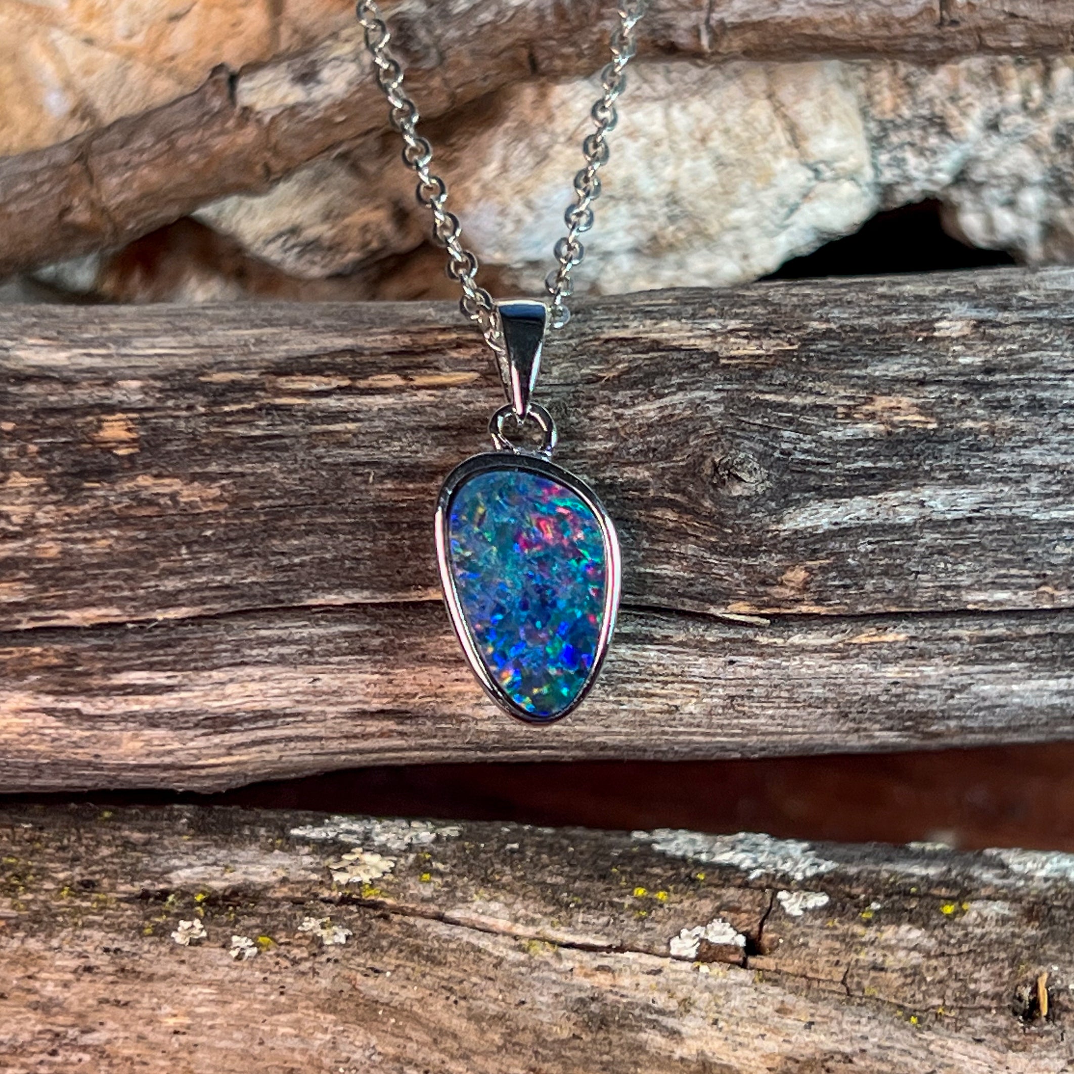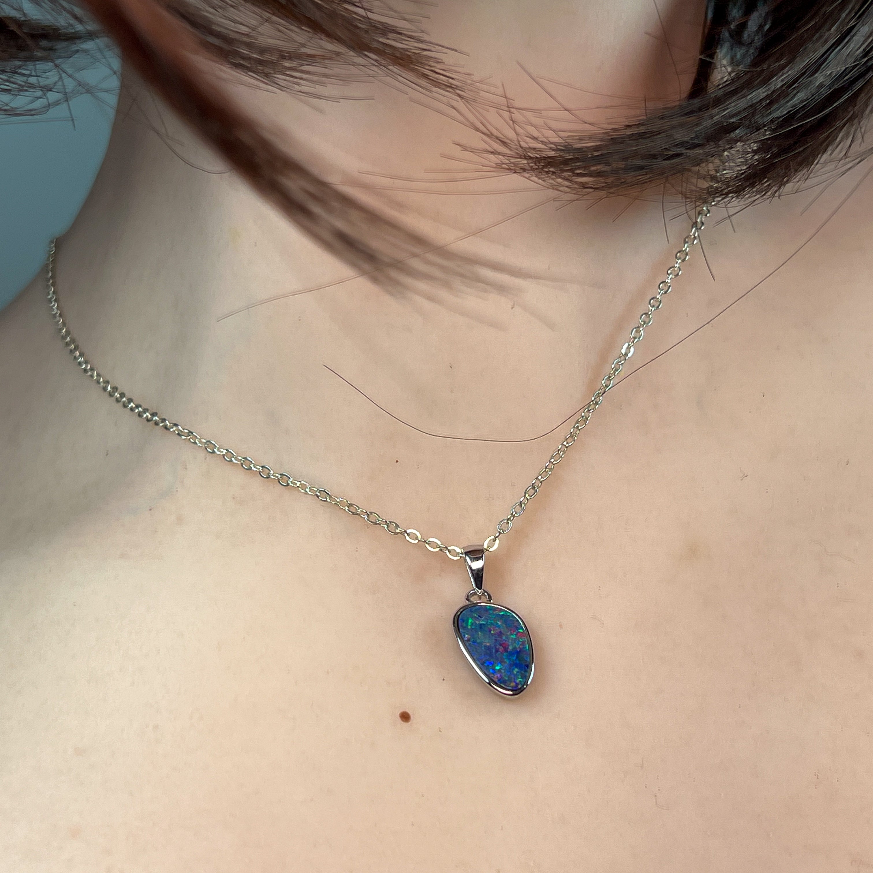 Sterling Silver Pear shape 12x9mm Opal doublet pendant