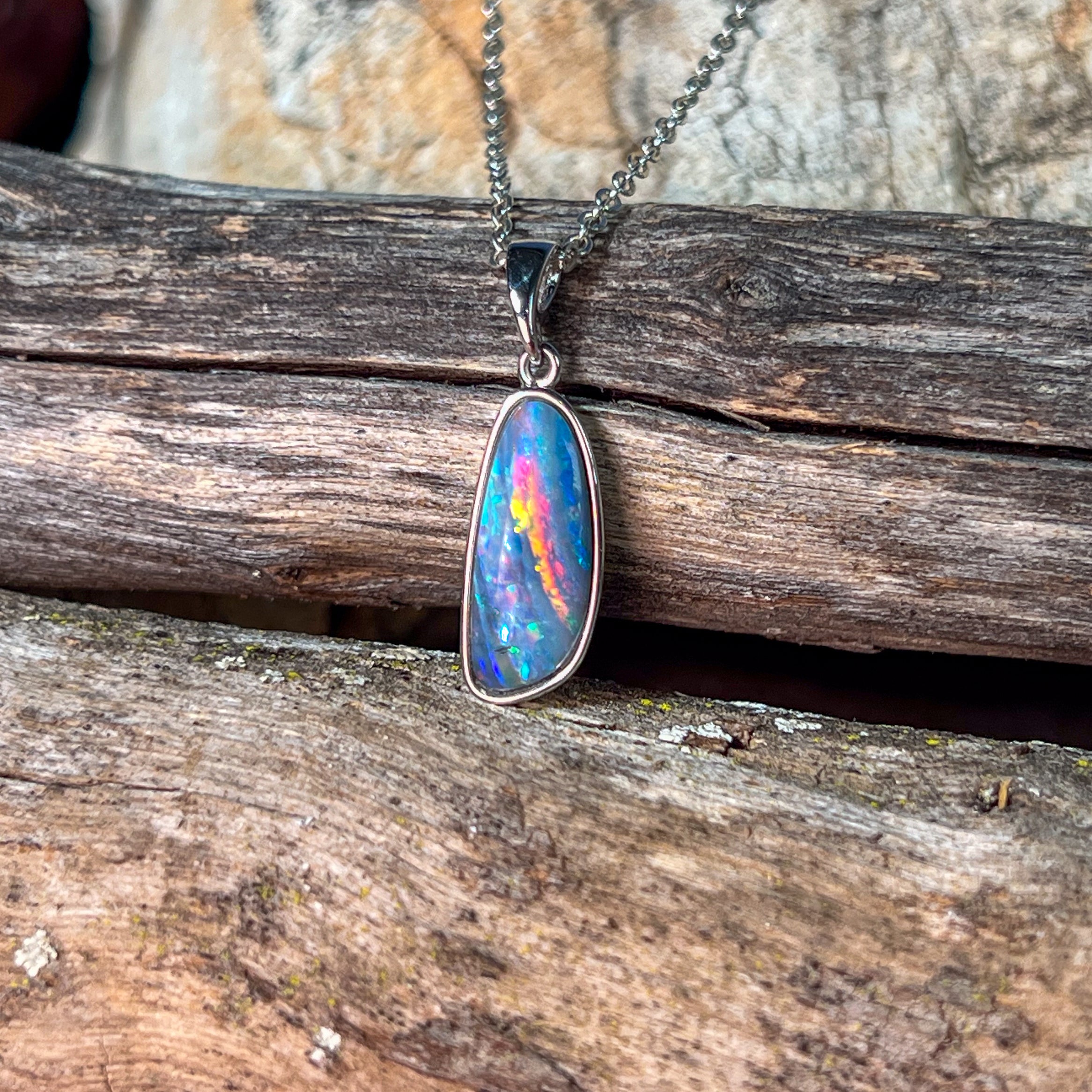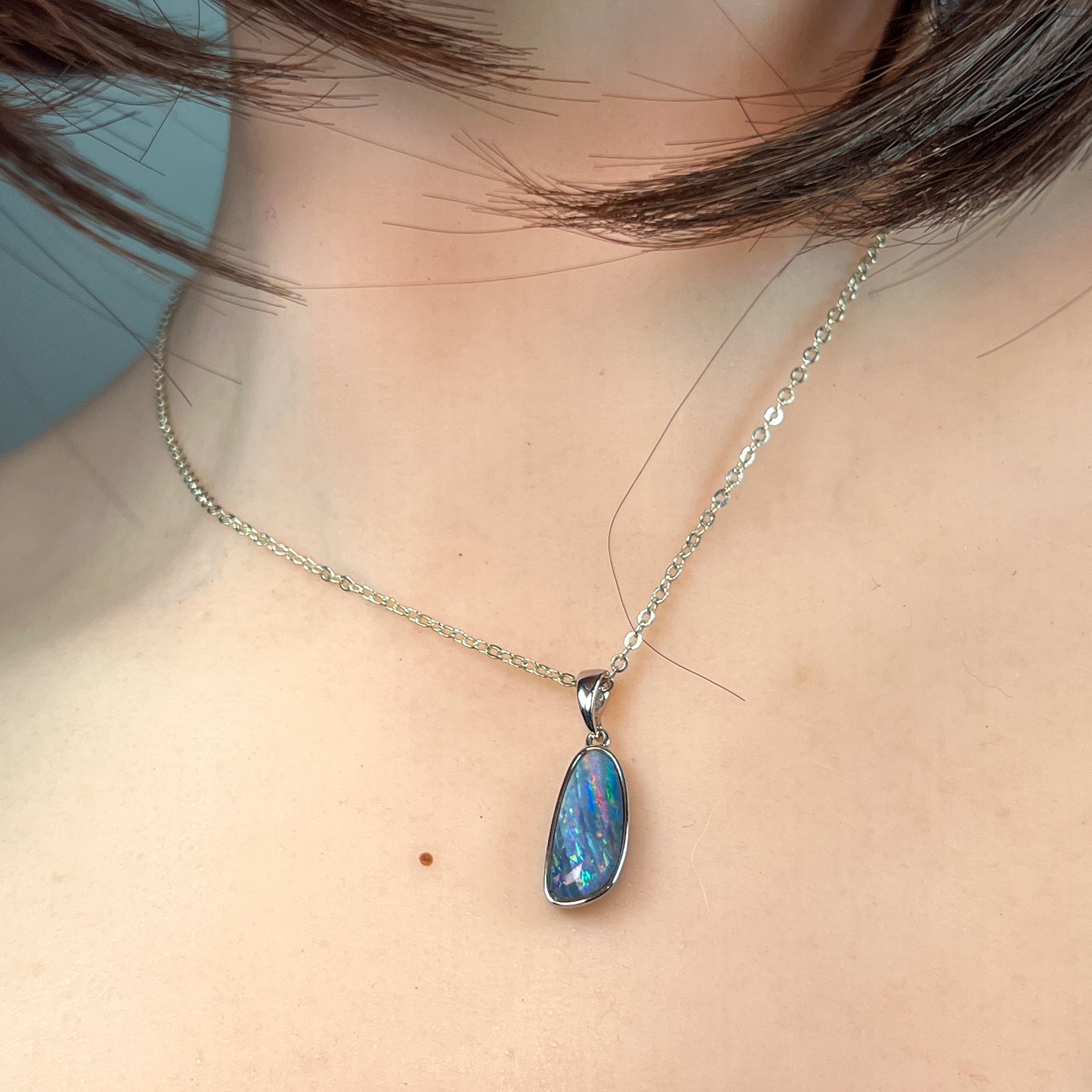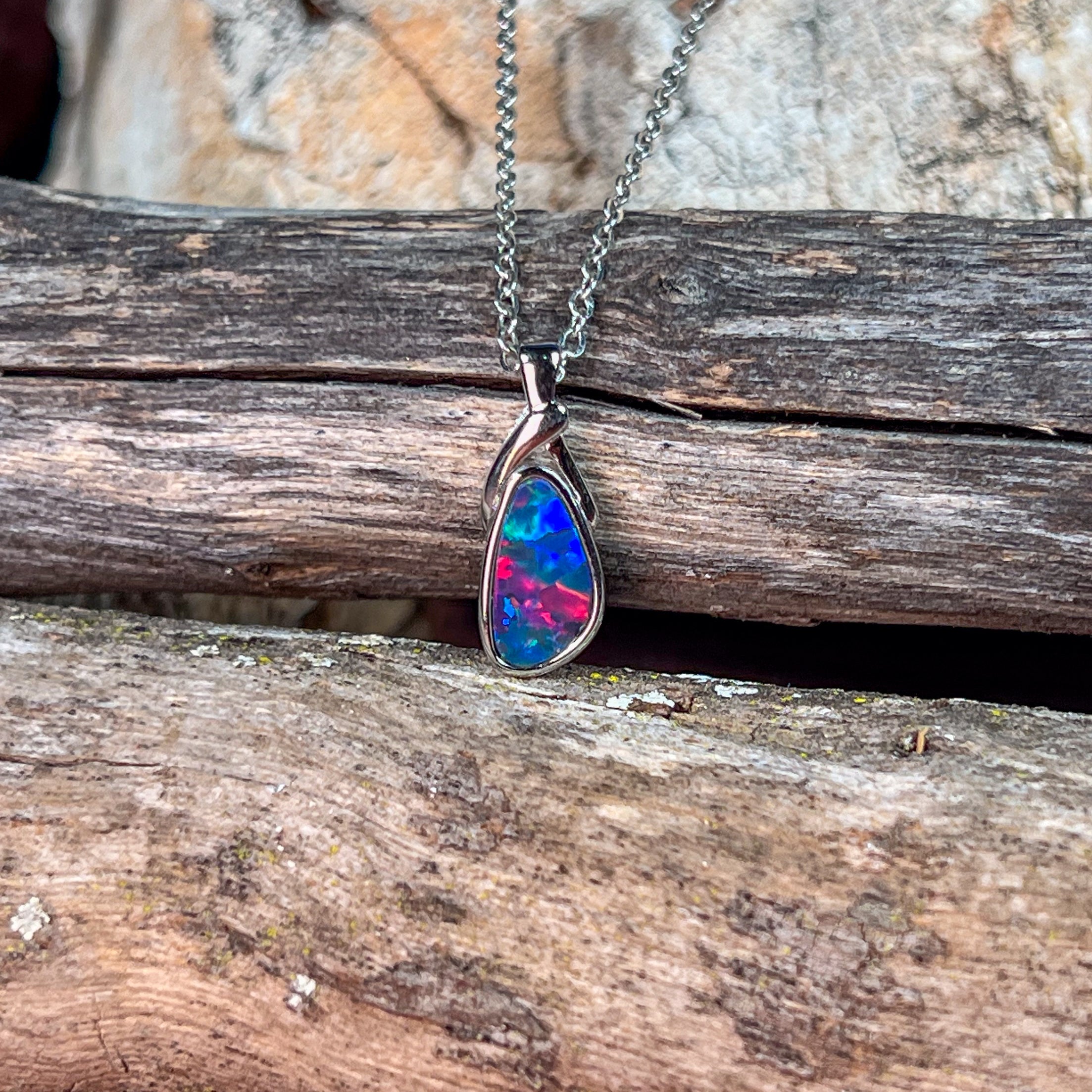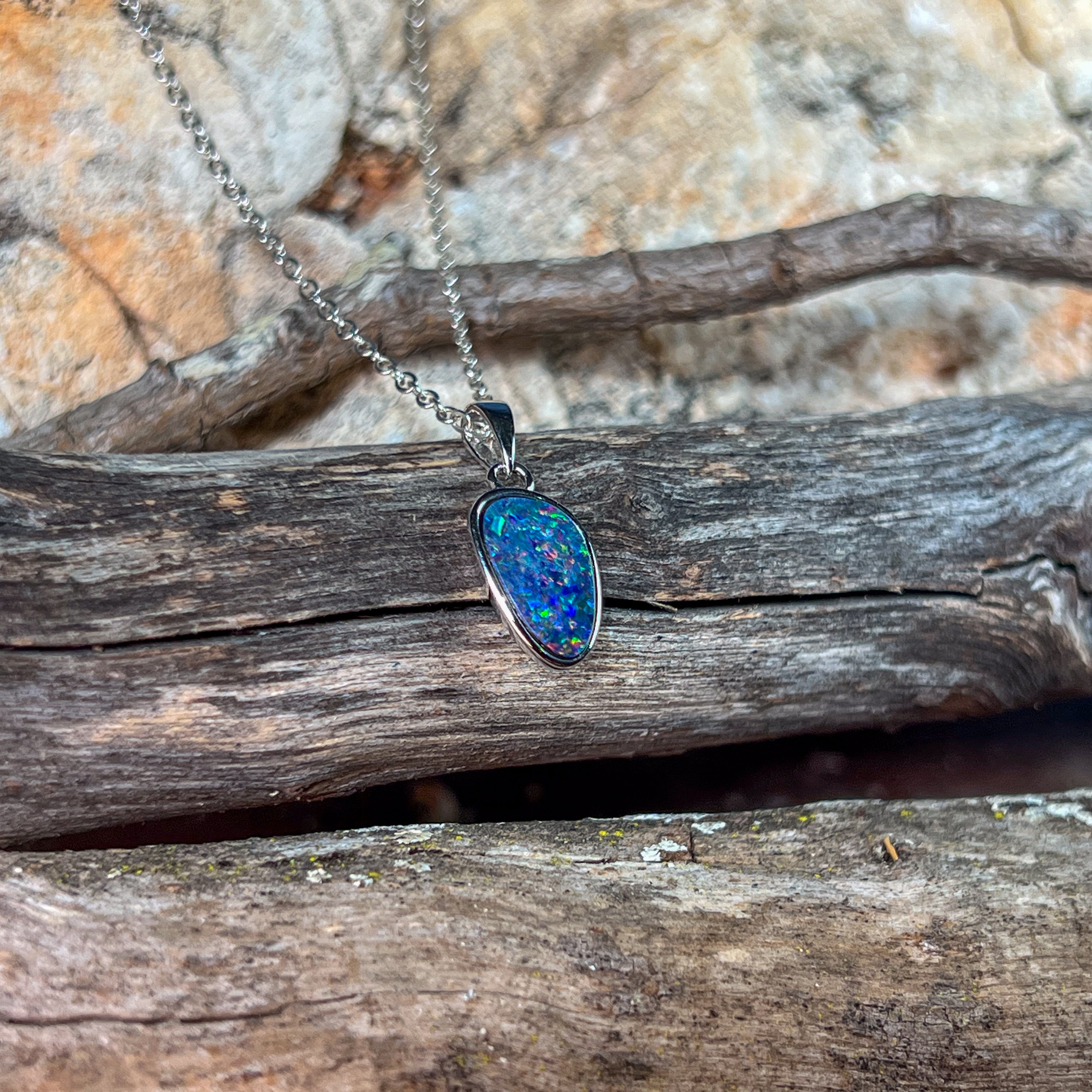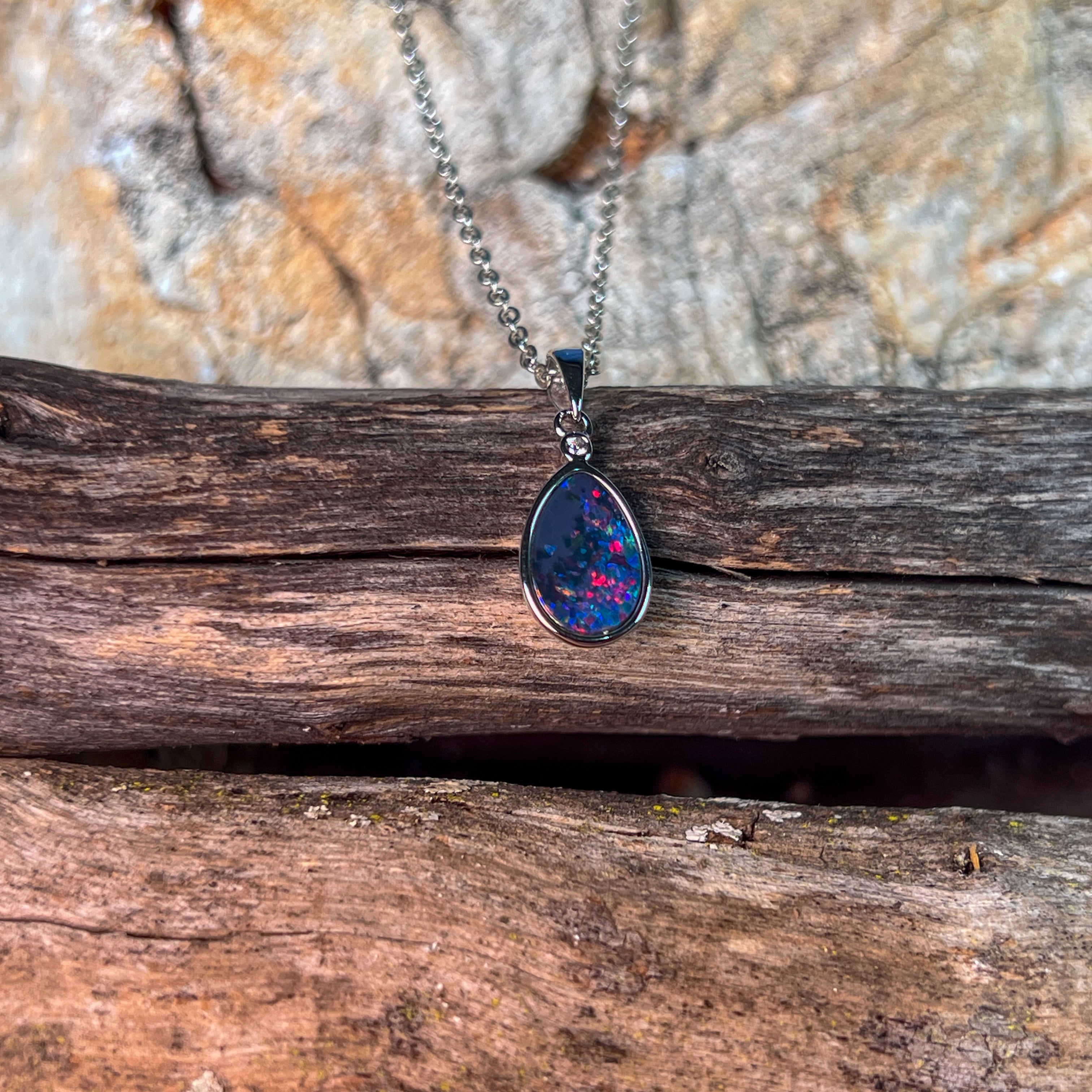 Sterling Silver Pear shape 12x9mm Opal doublet pendant