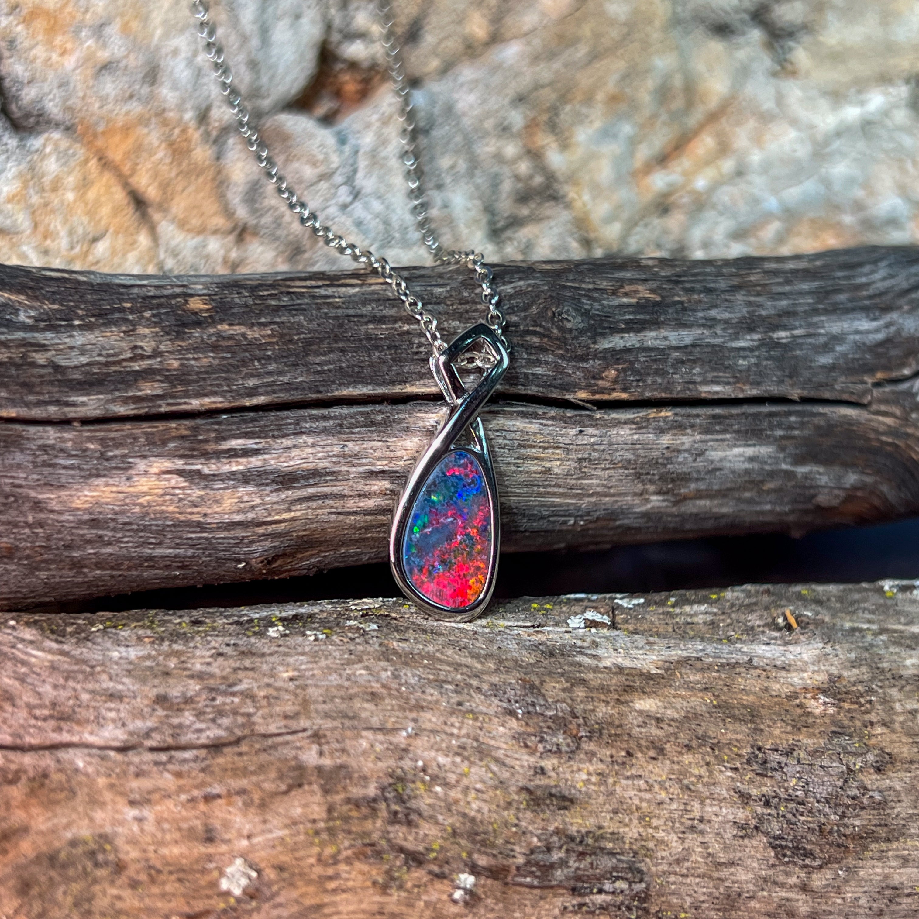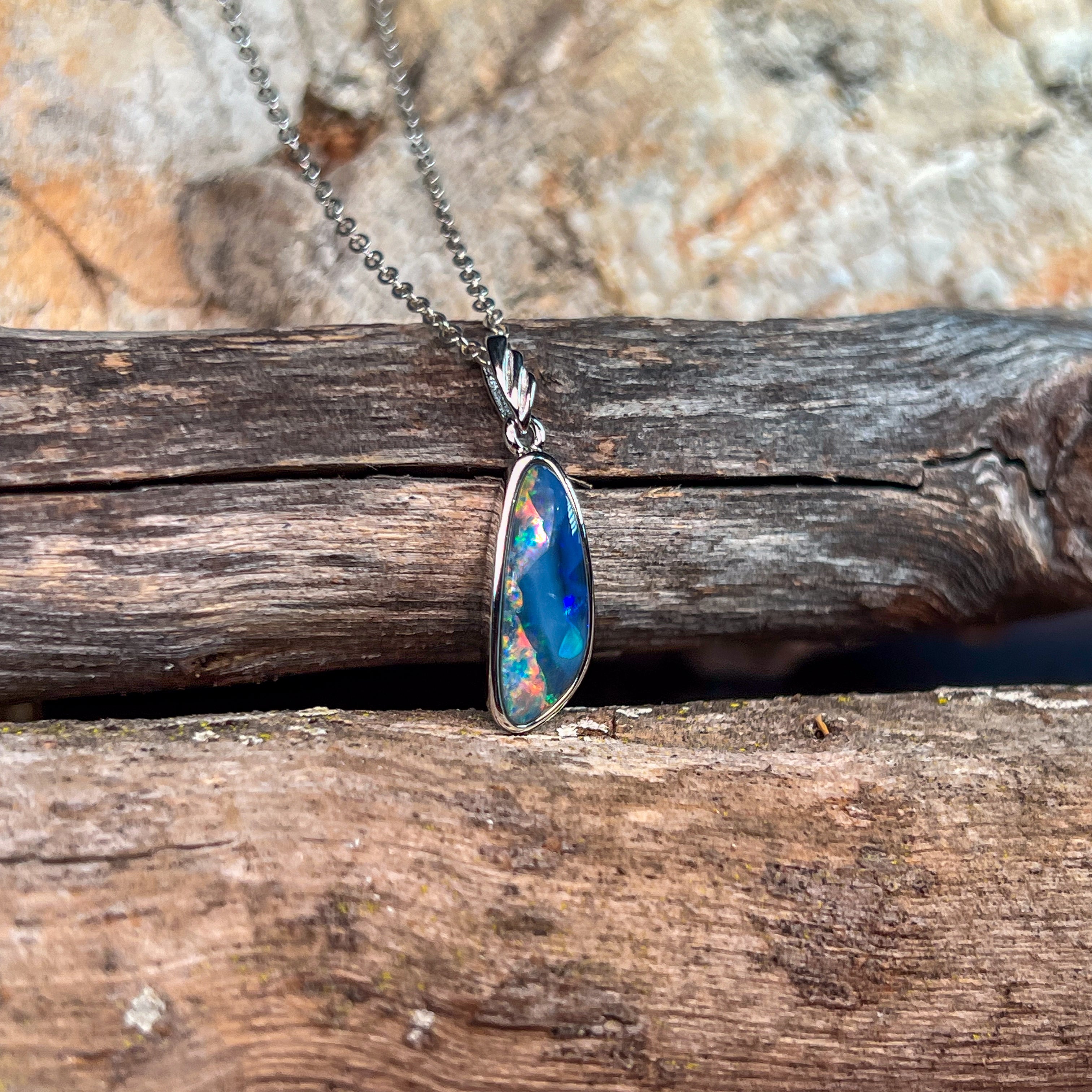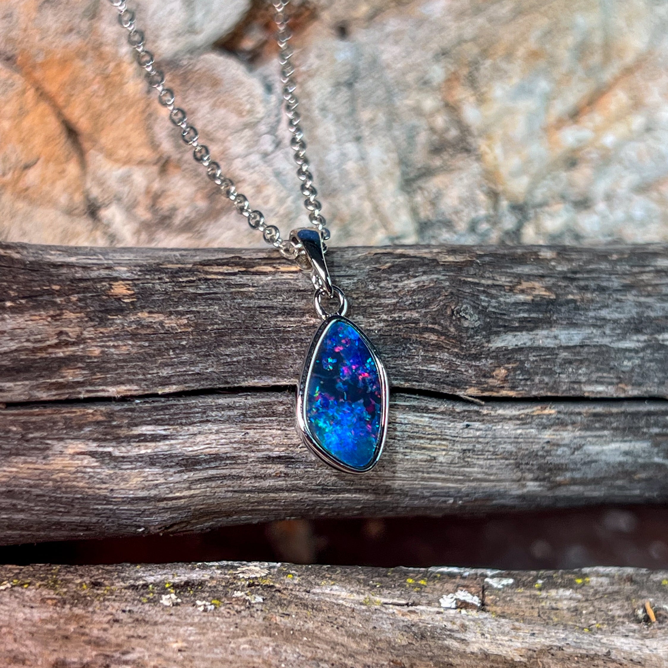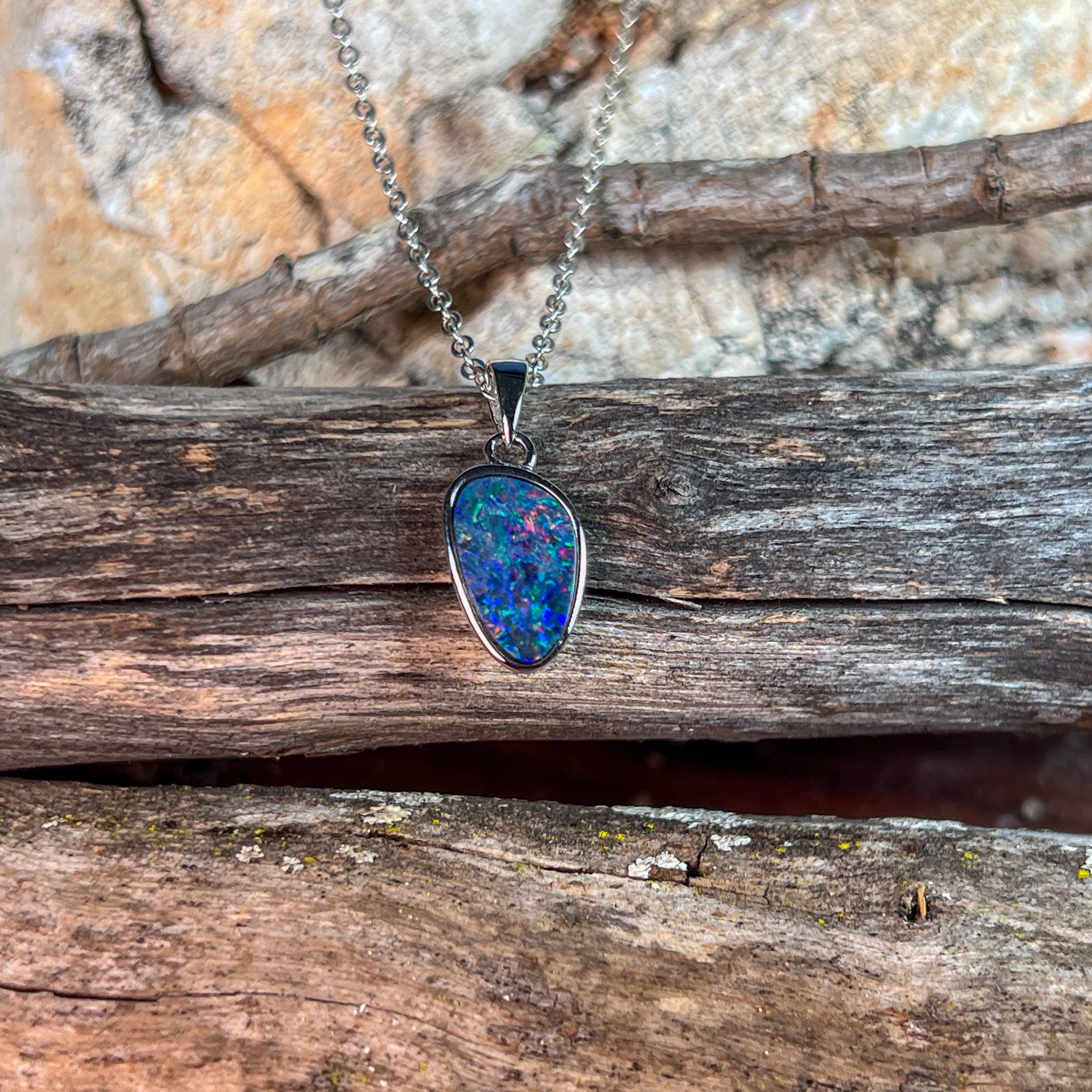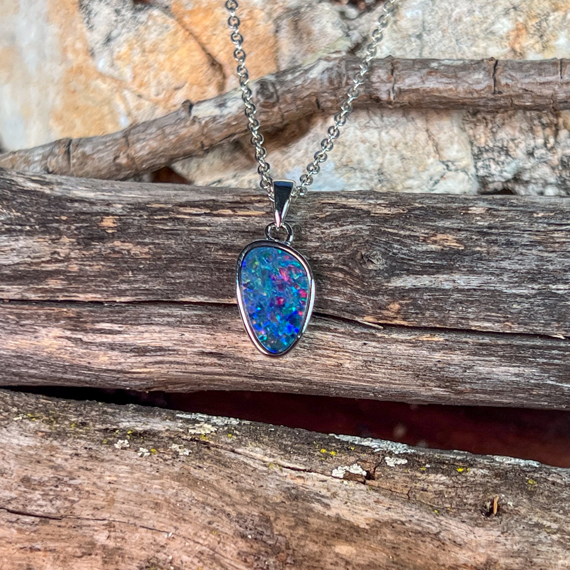 Sterling Silver Pear shape 12x9mm Opal doublet pendant