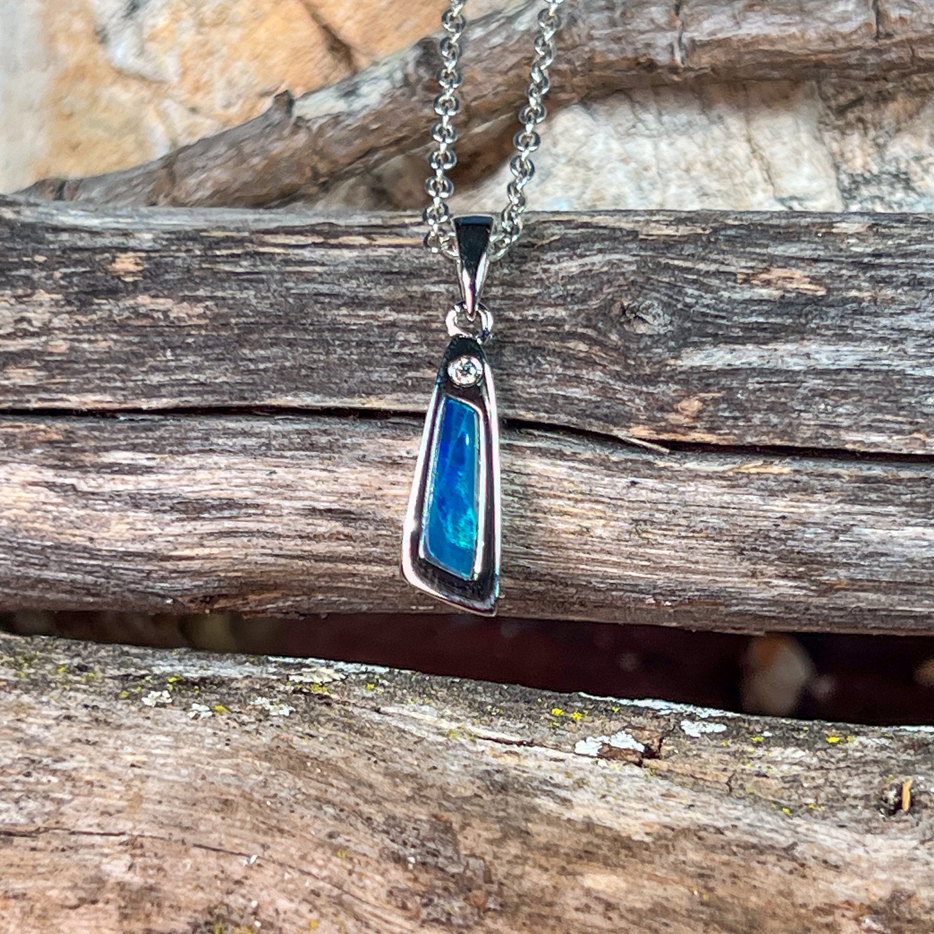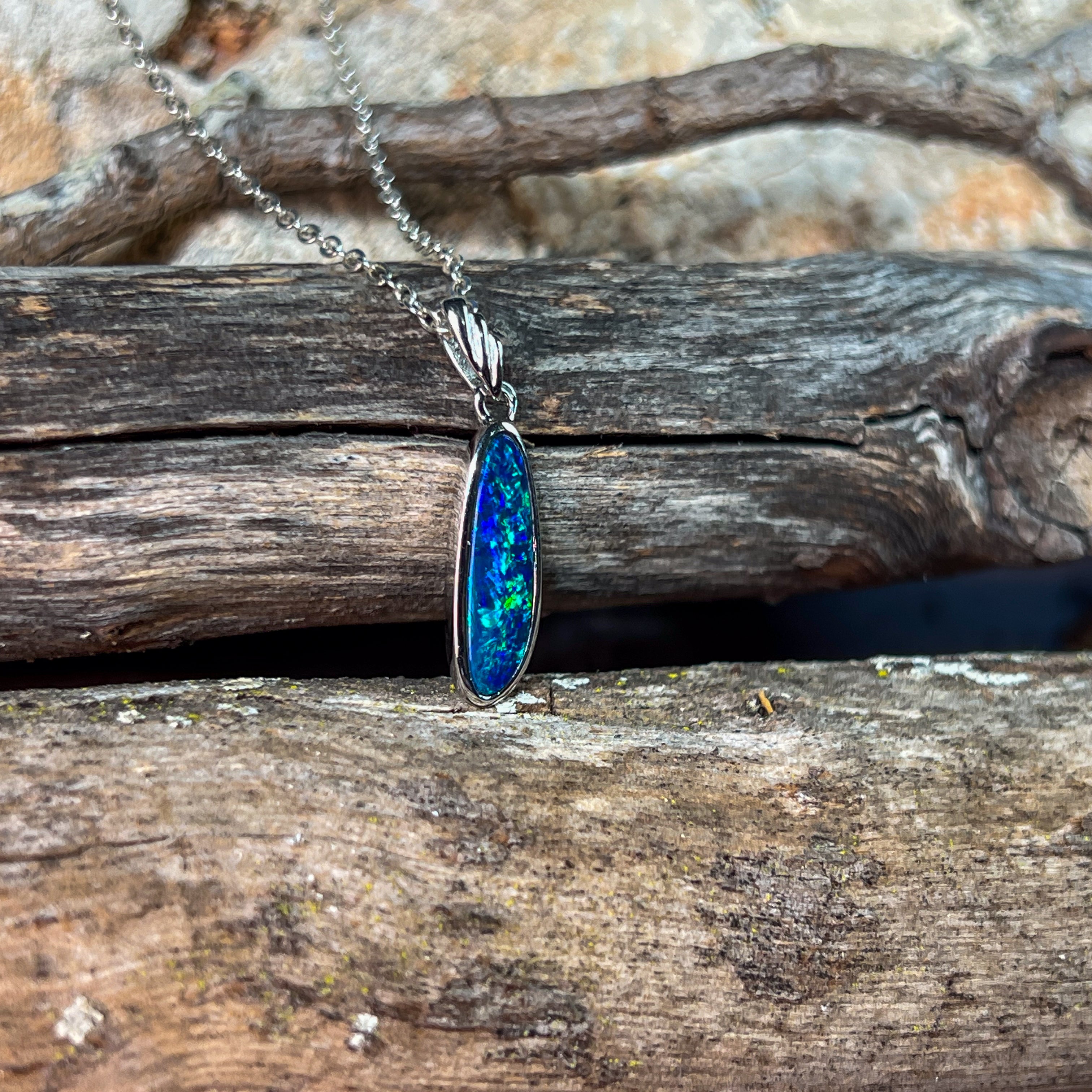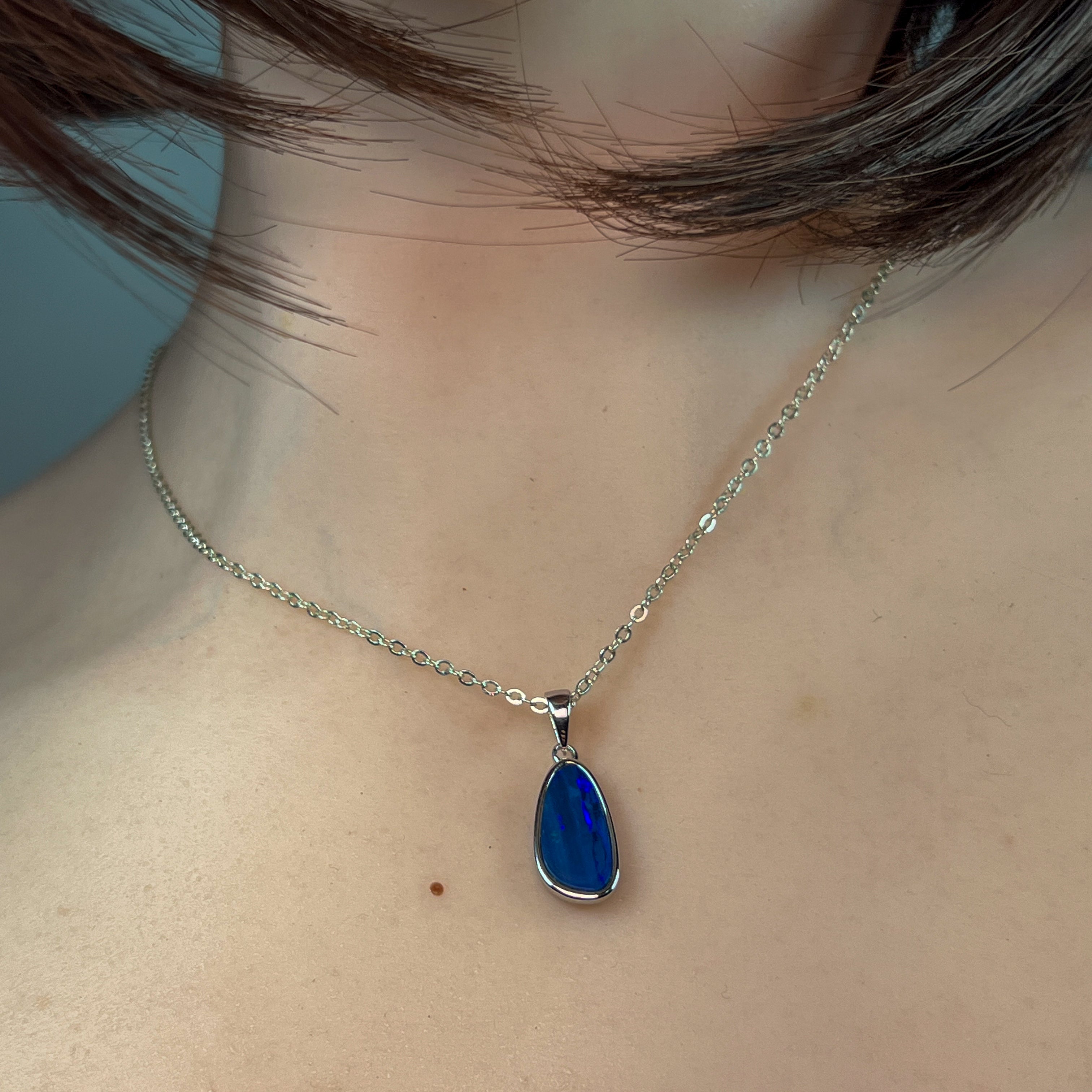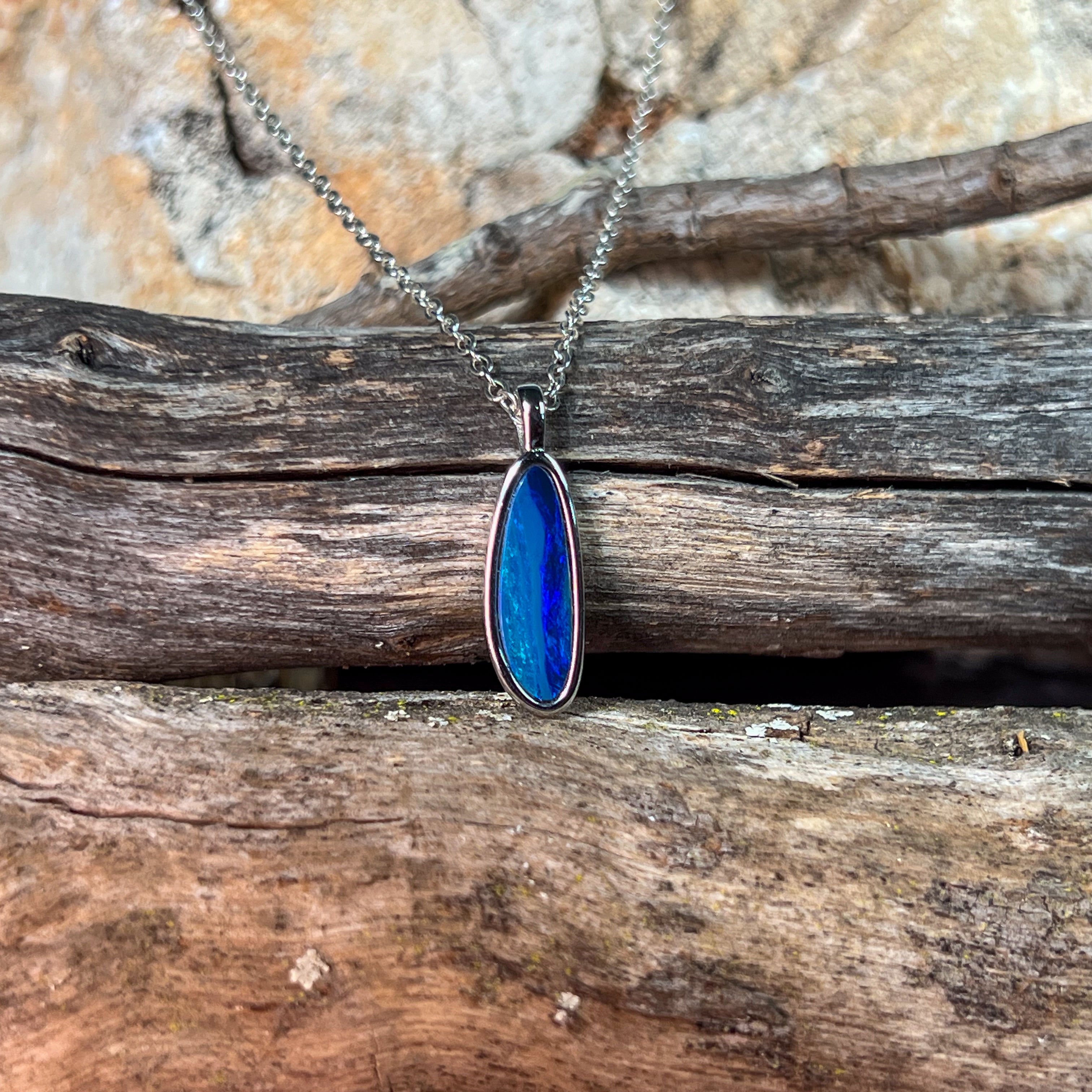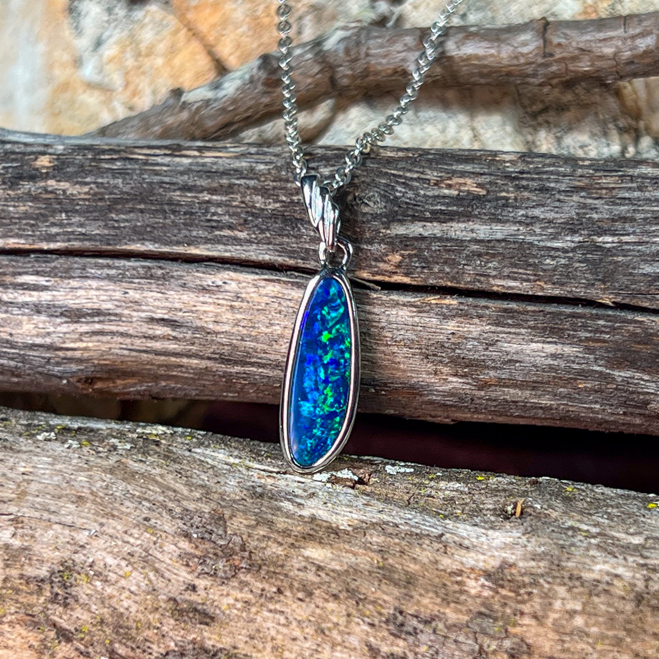 Sterling Silver long Drop shape Blue Green Opal doublet pendant