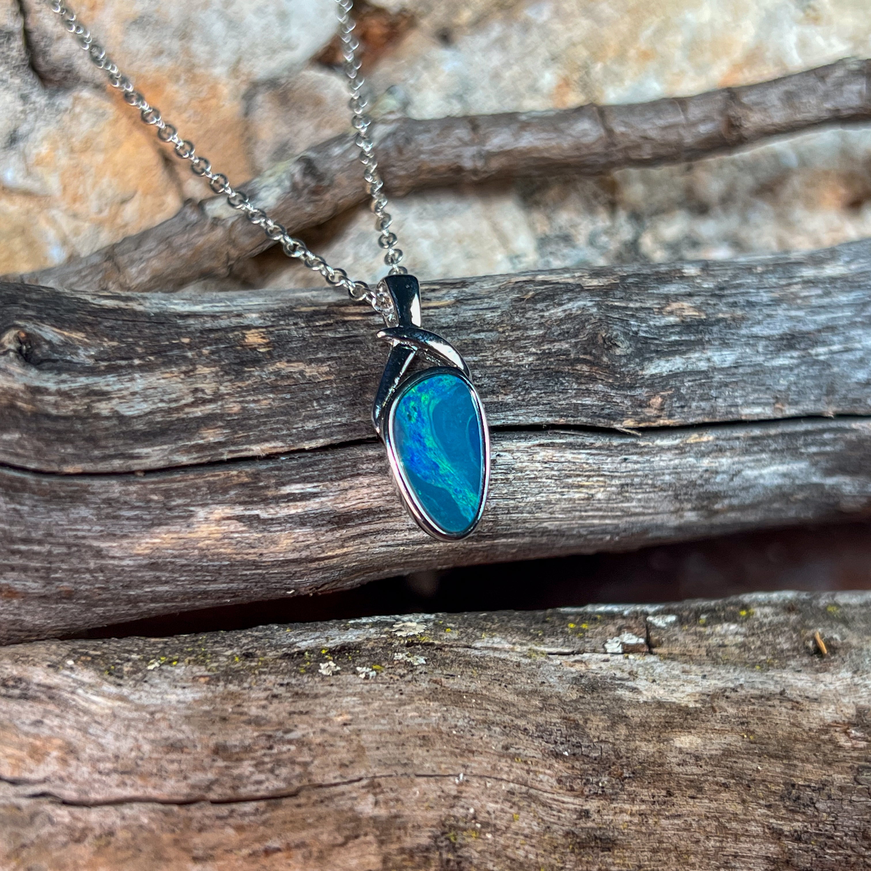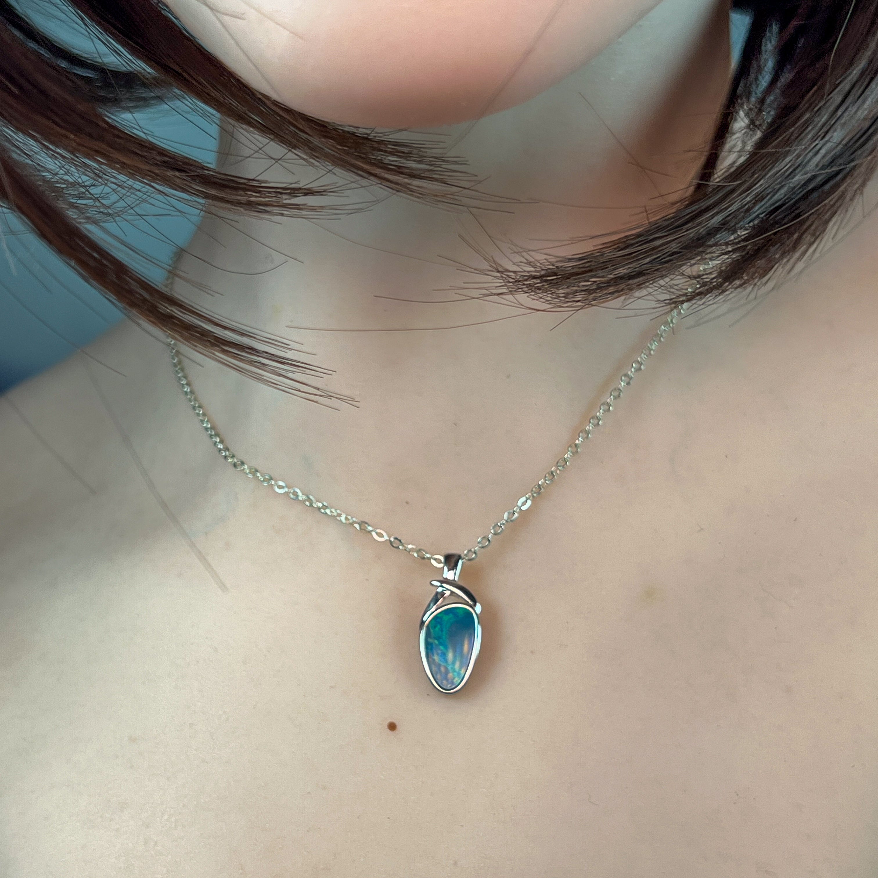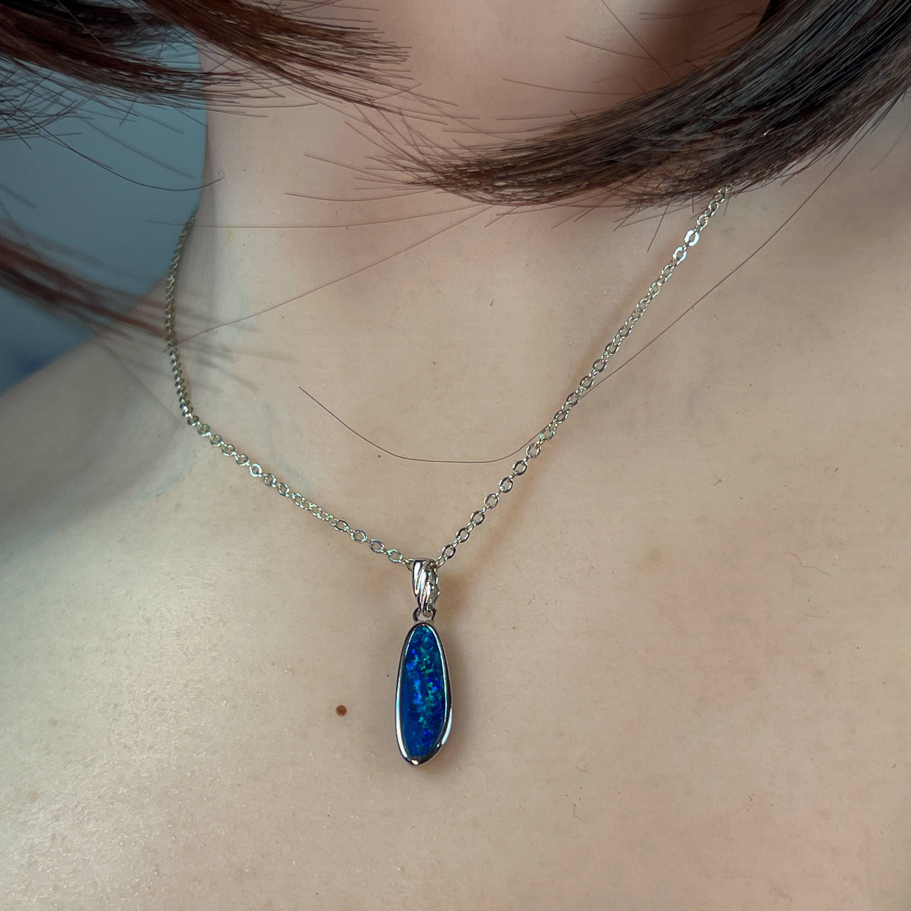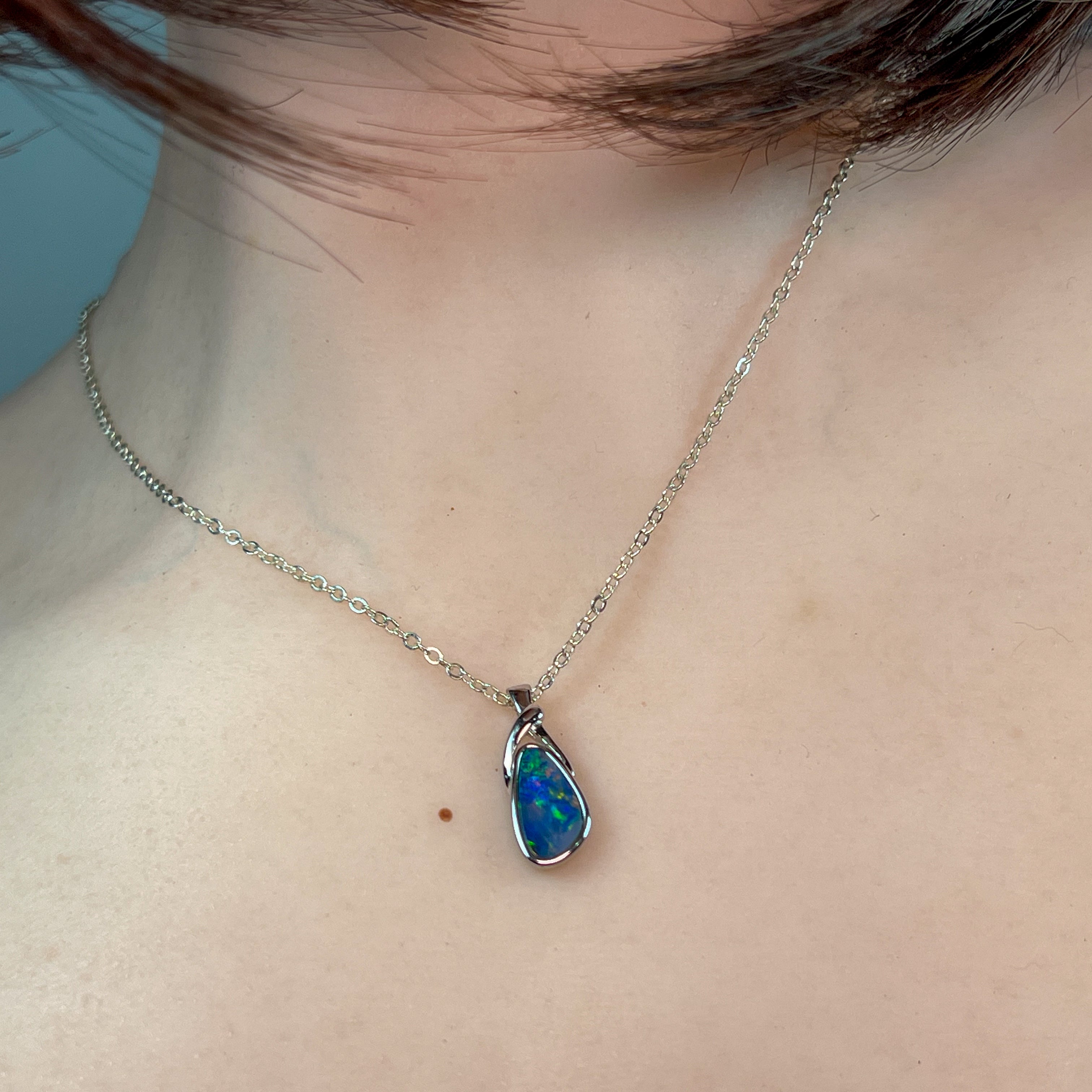 Sterling Silver long Drop shape Blue Green Opal doublet pendant