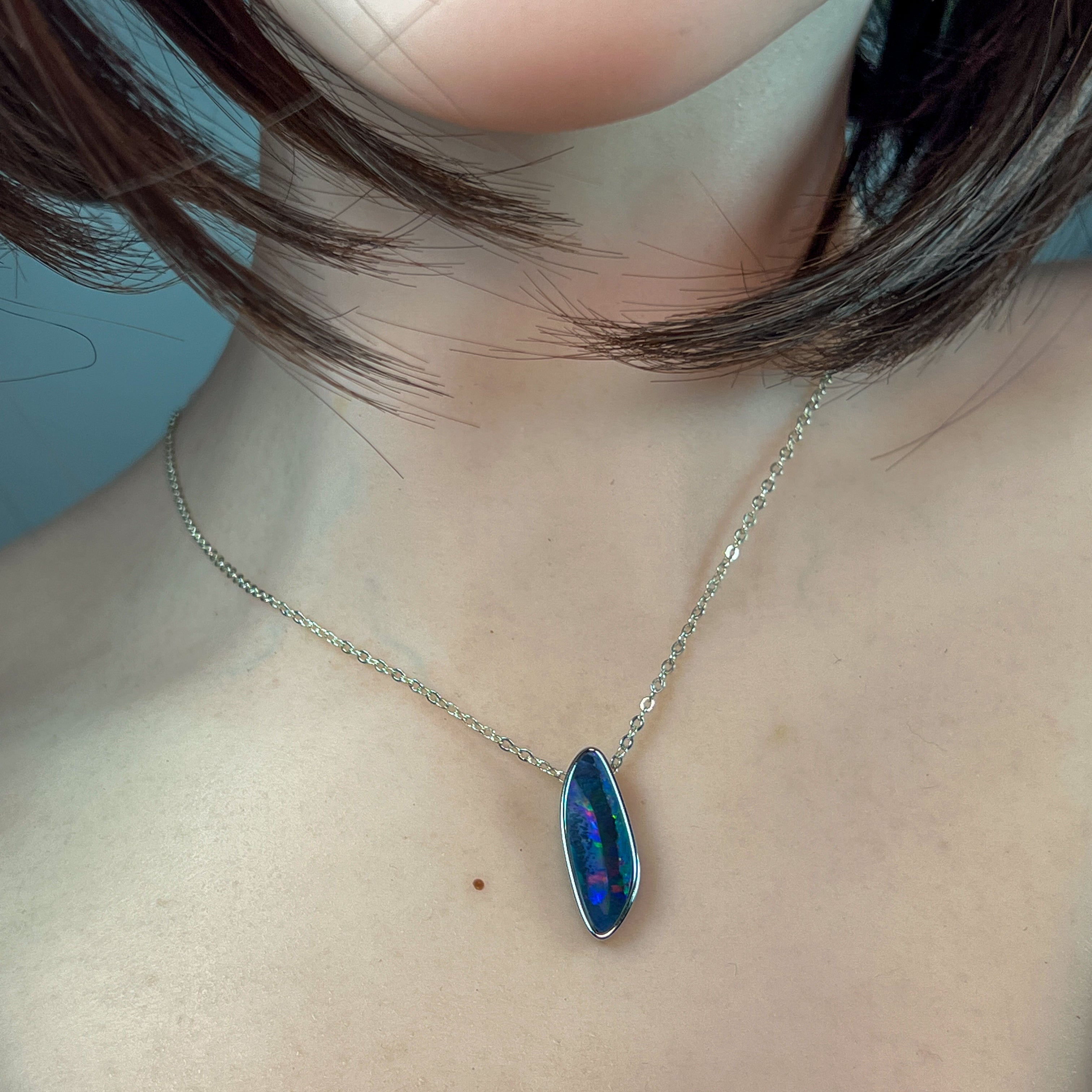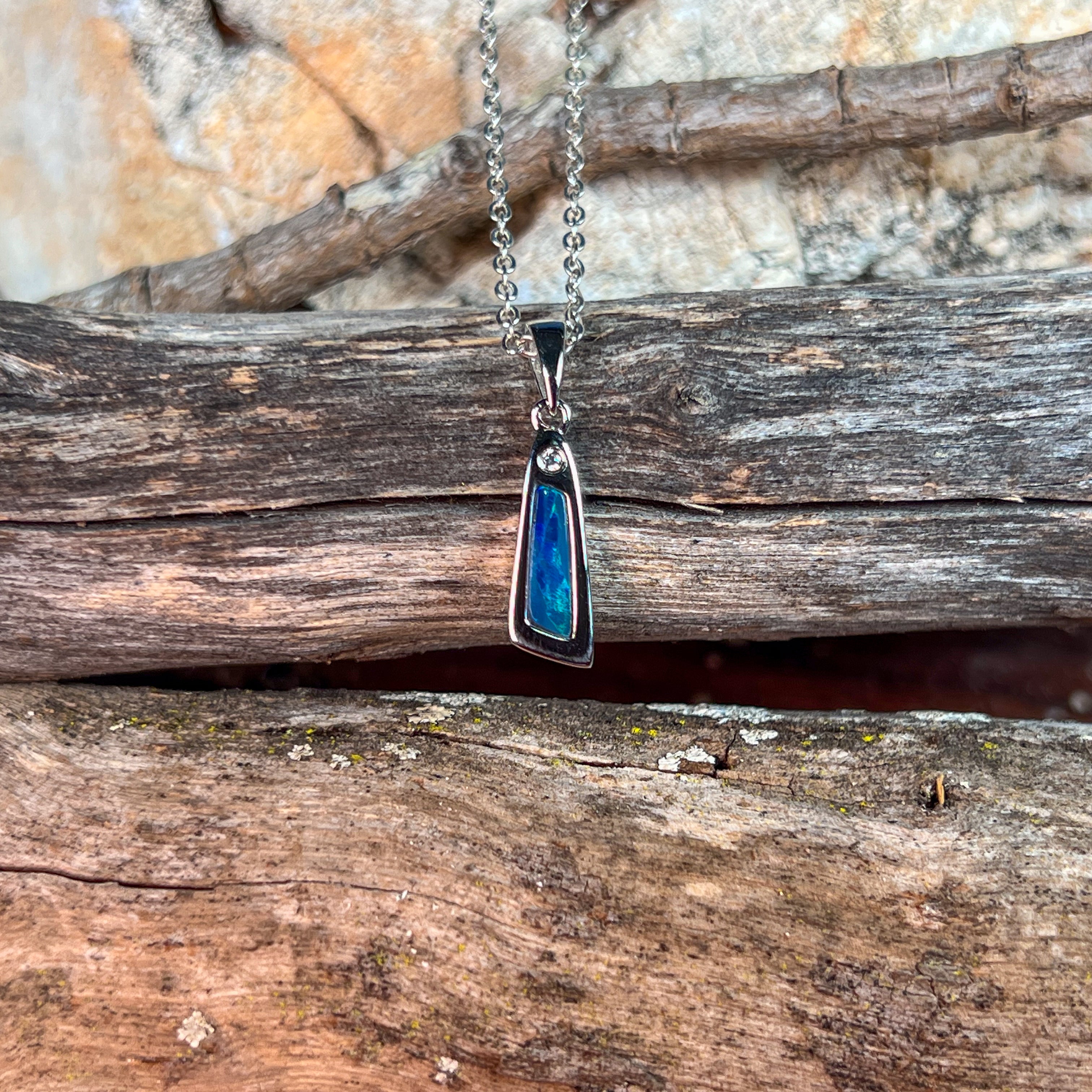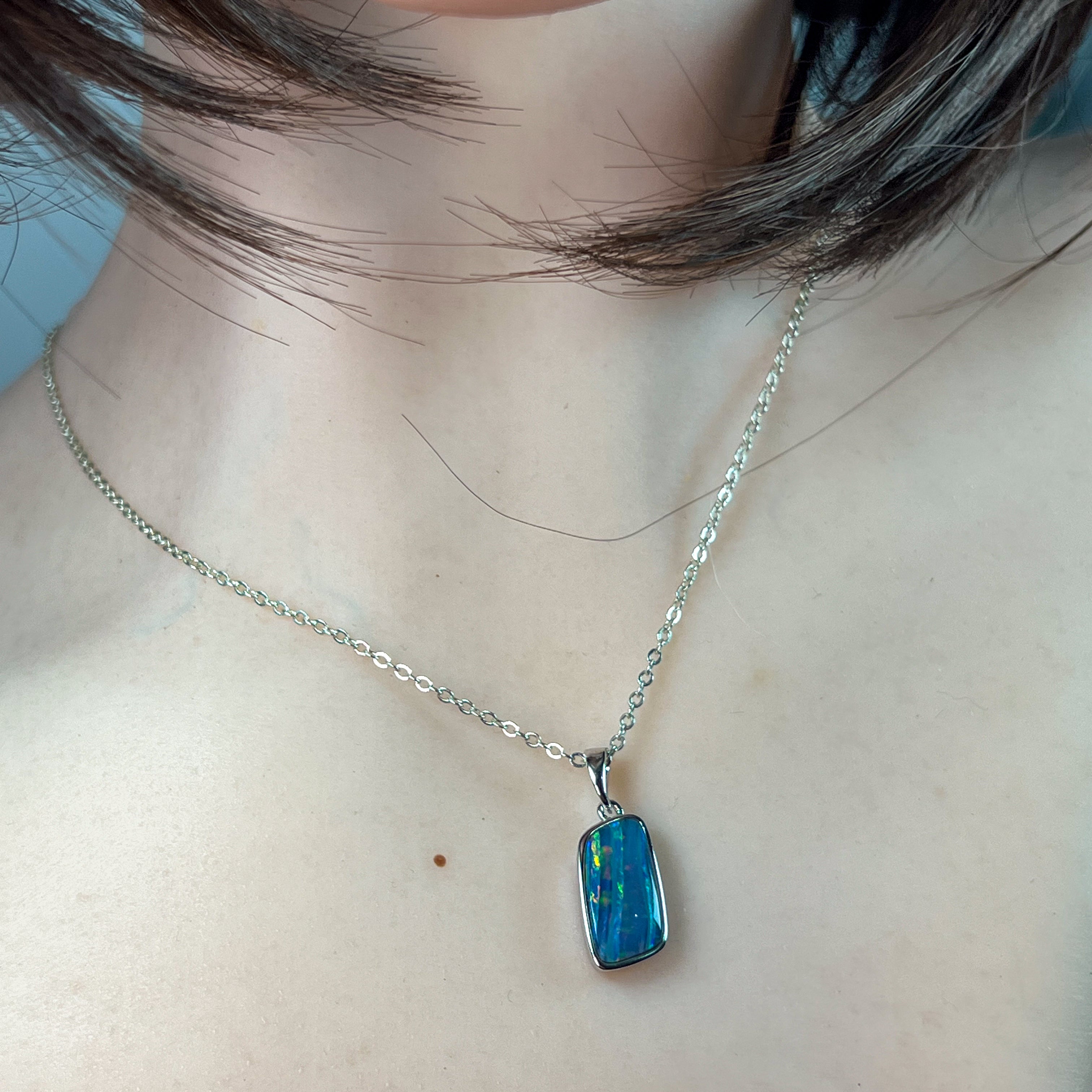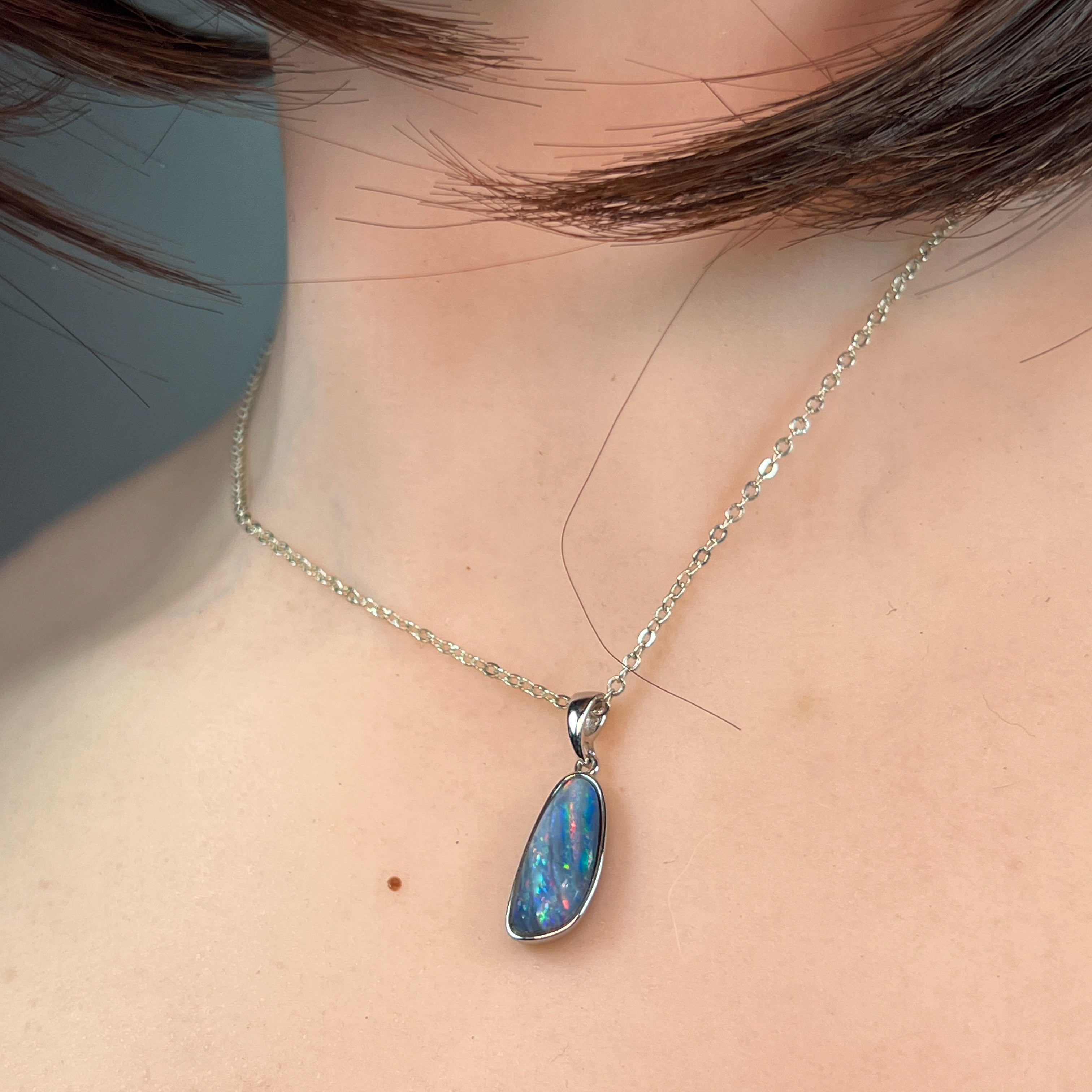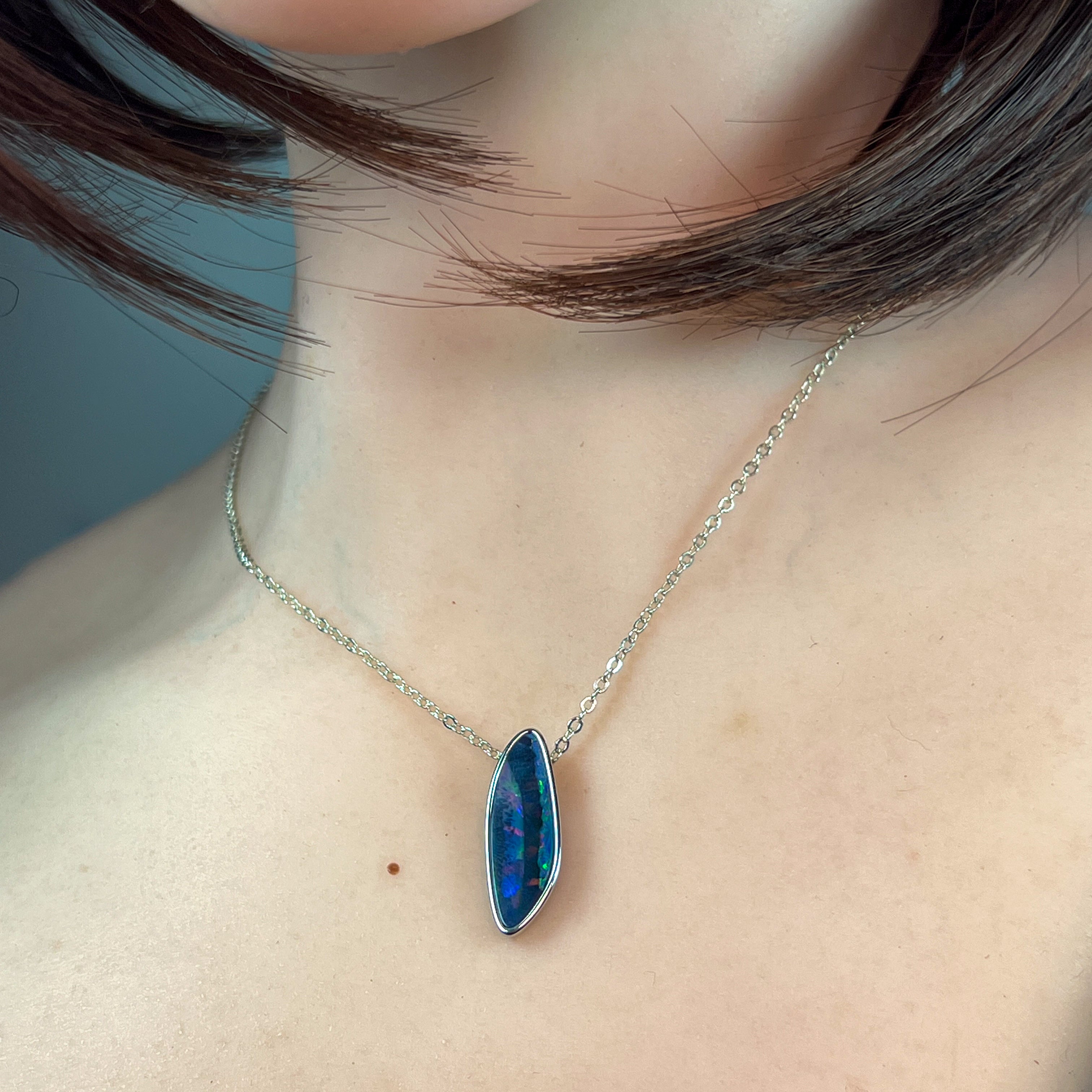 Sterling Silver long Drop shape Blue Green Opal doublet pendant