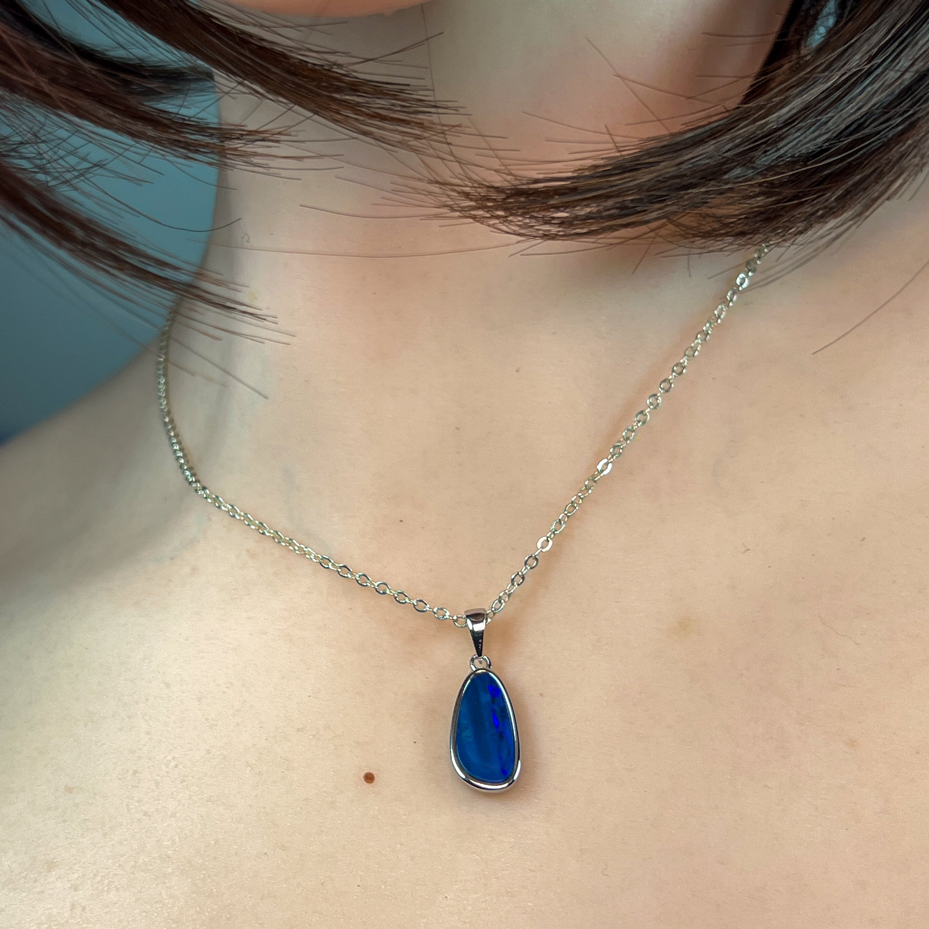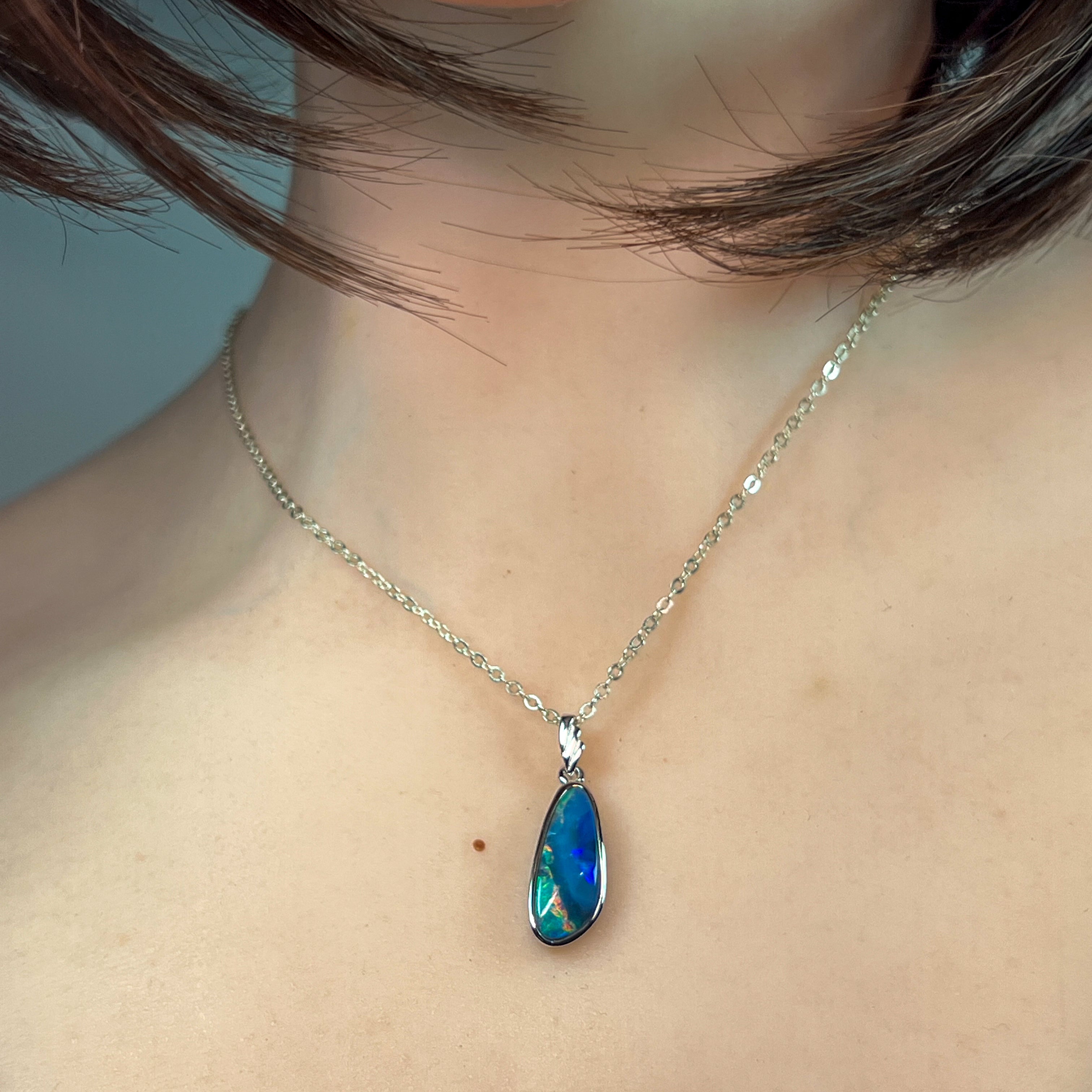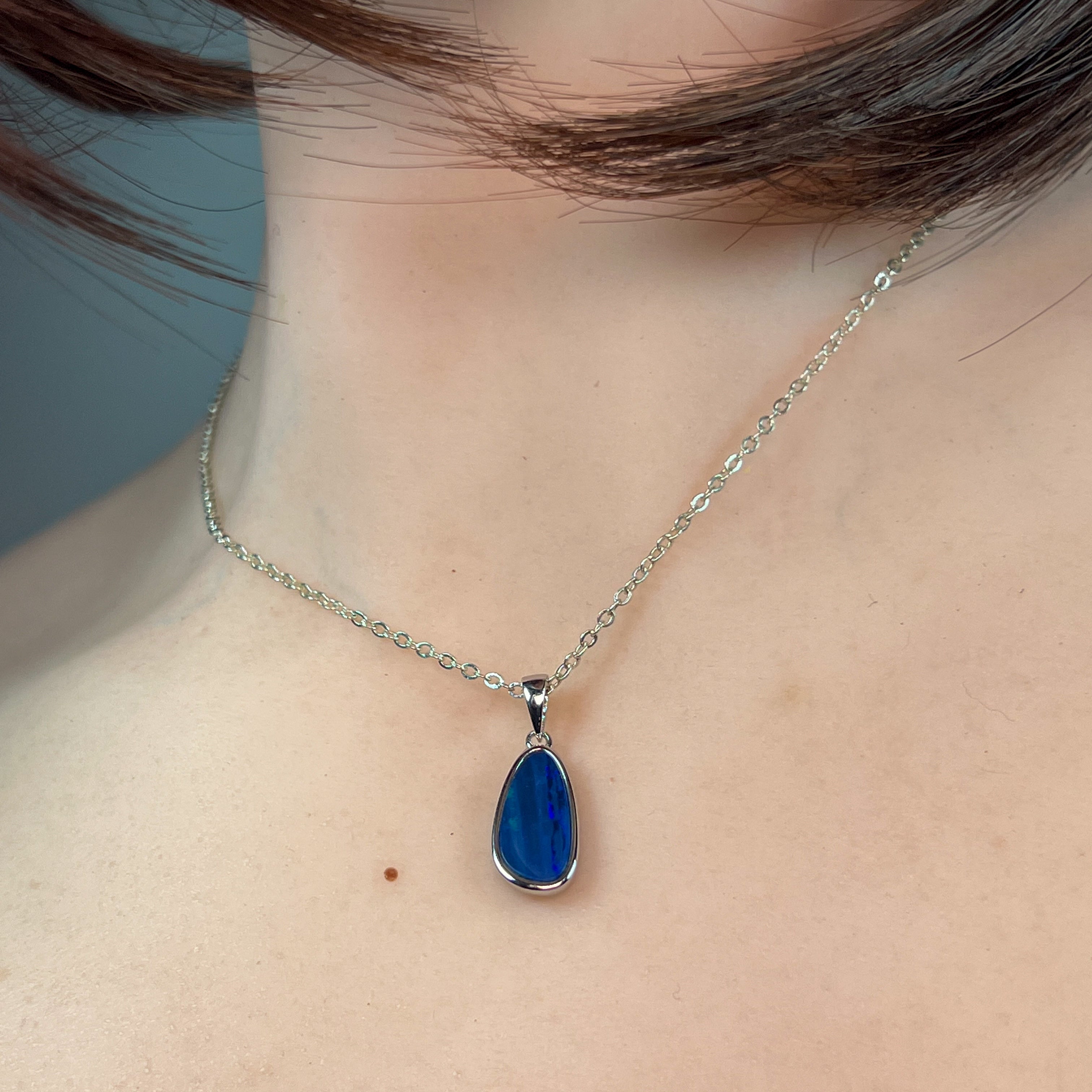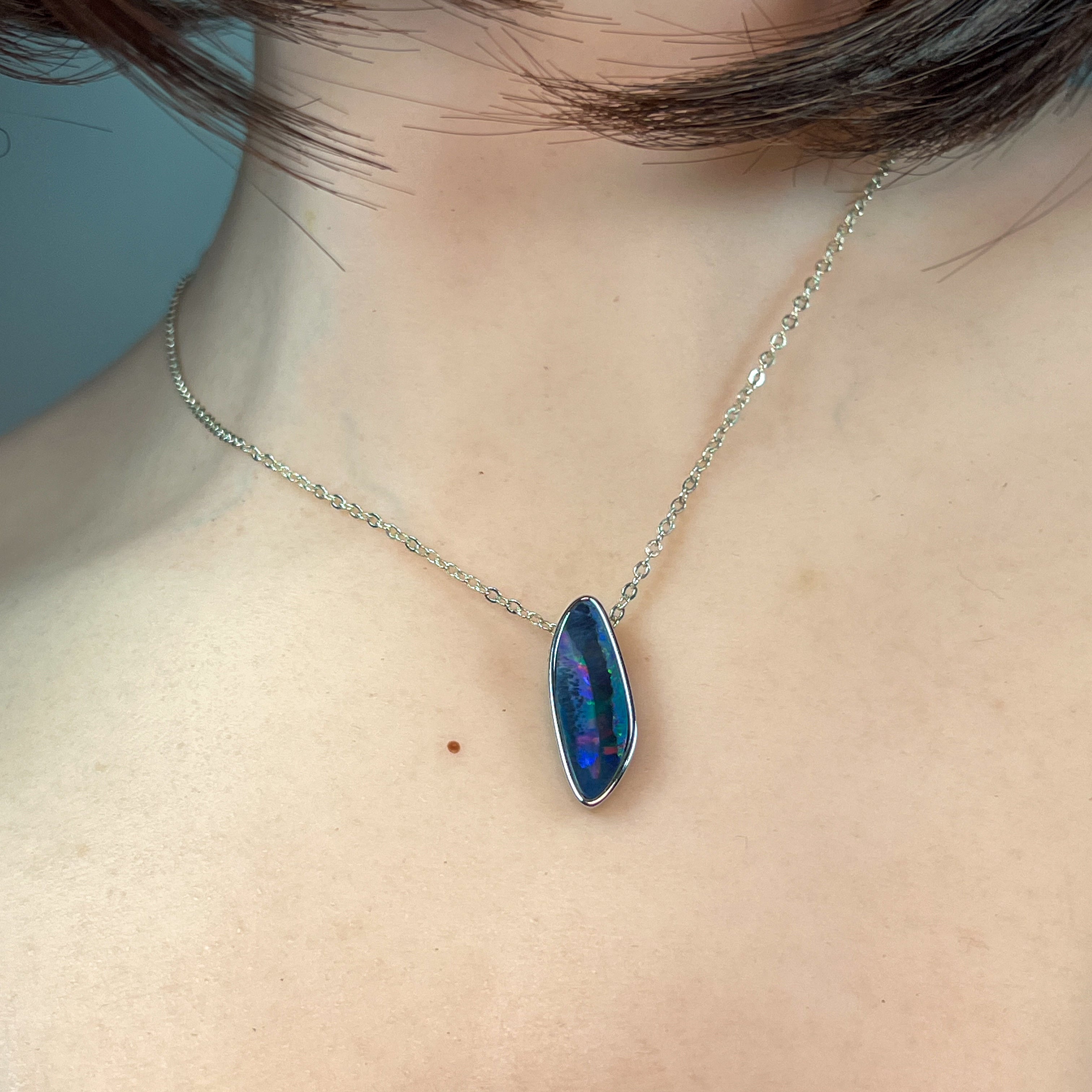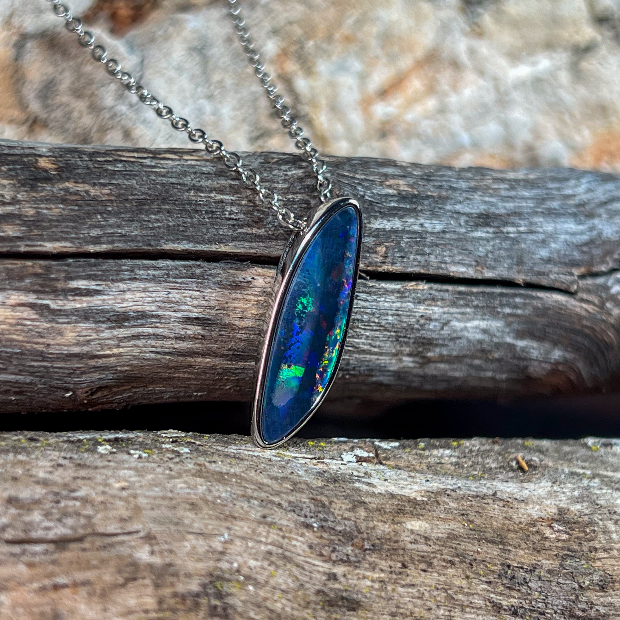 Sterling Silver long Drop shape Blue Green Opal doublet pendant