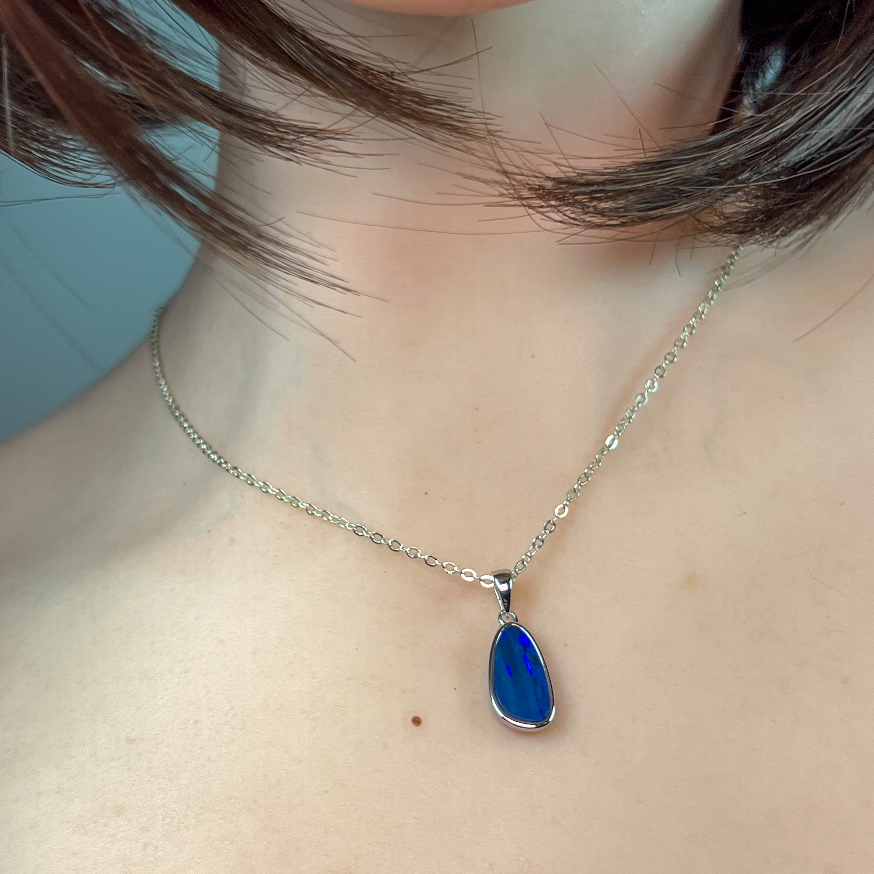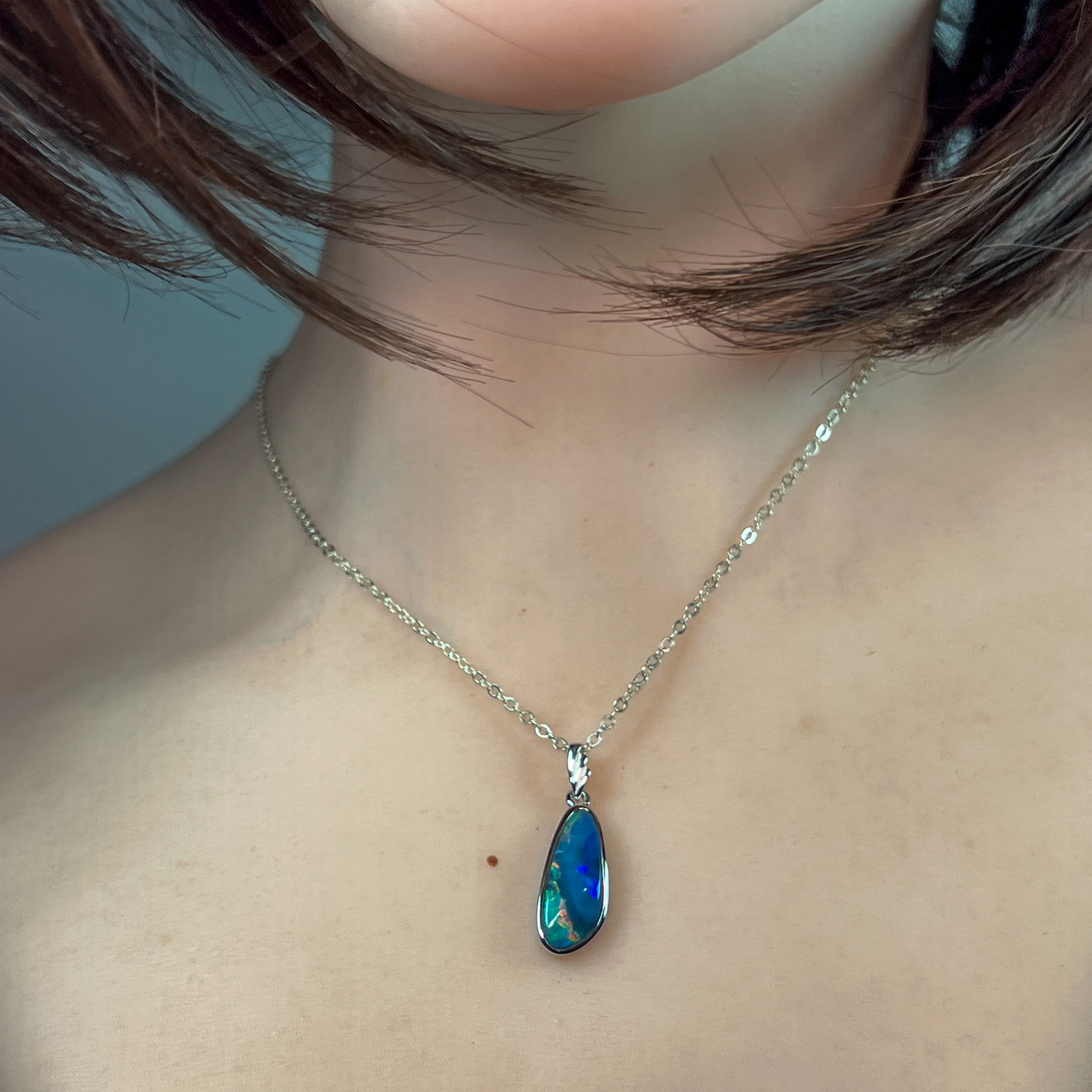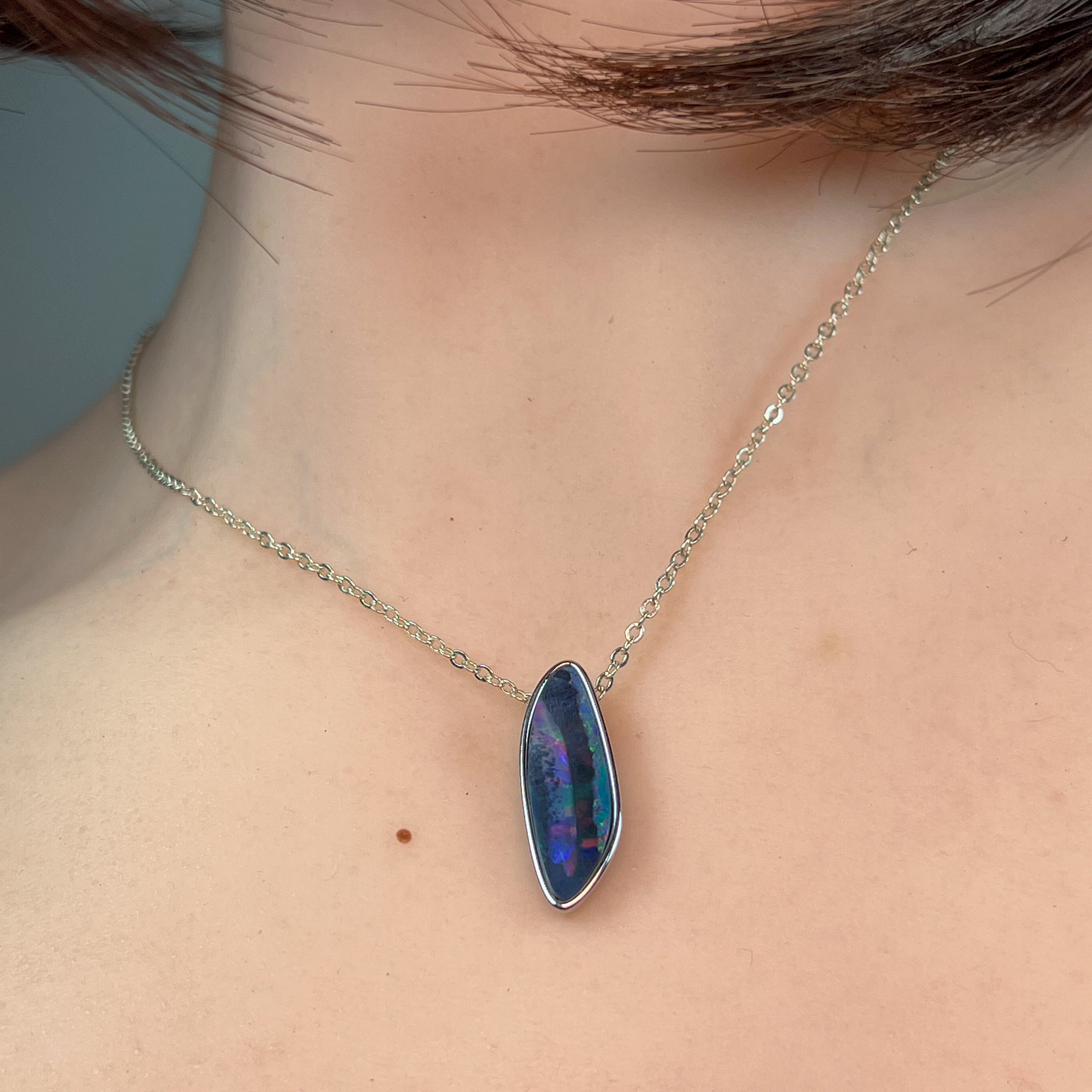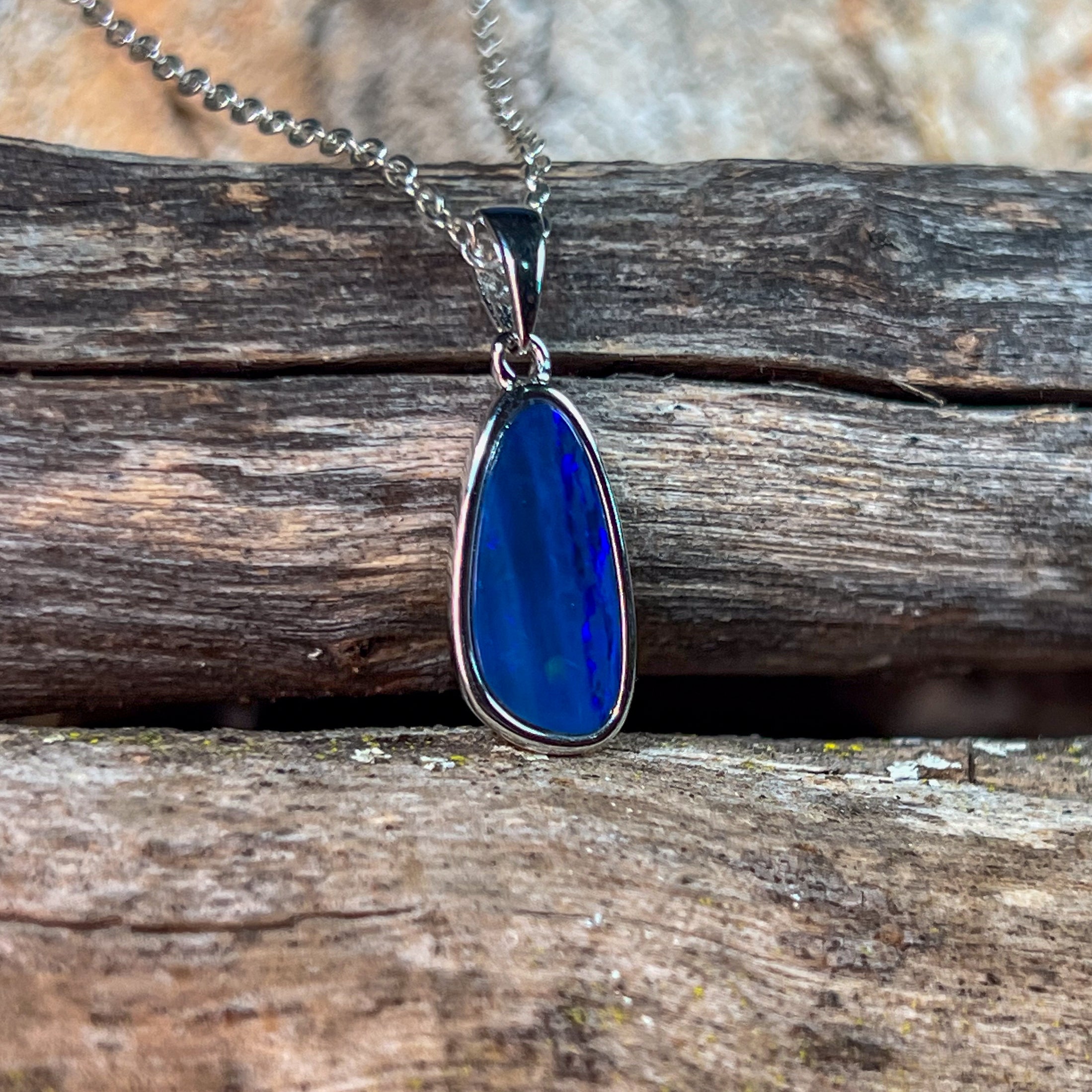 Sterling Silver long Drop shape Blue Green Opal doublet pendant