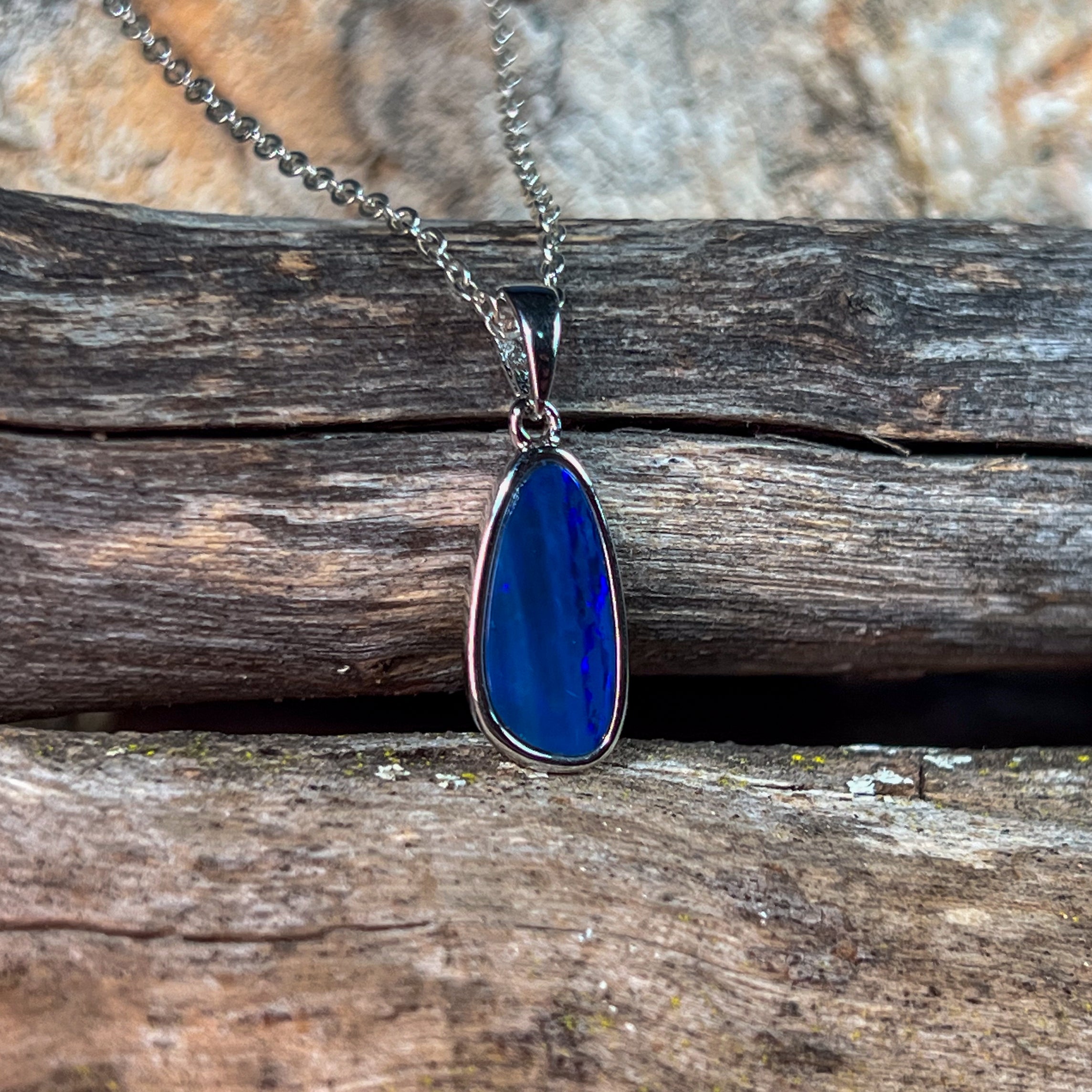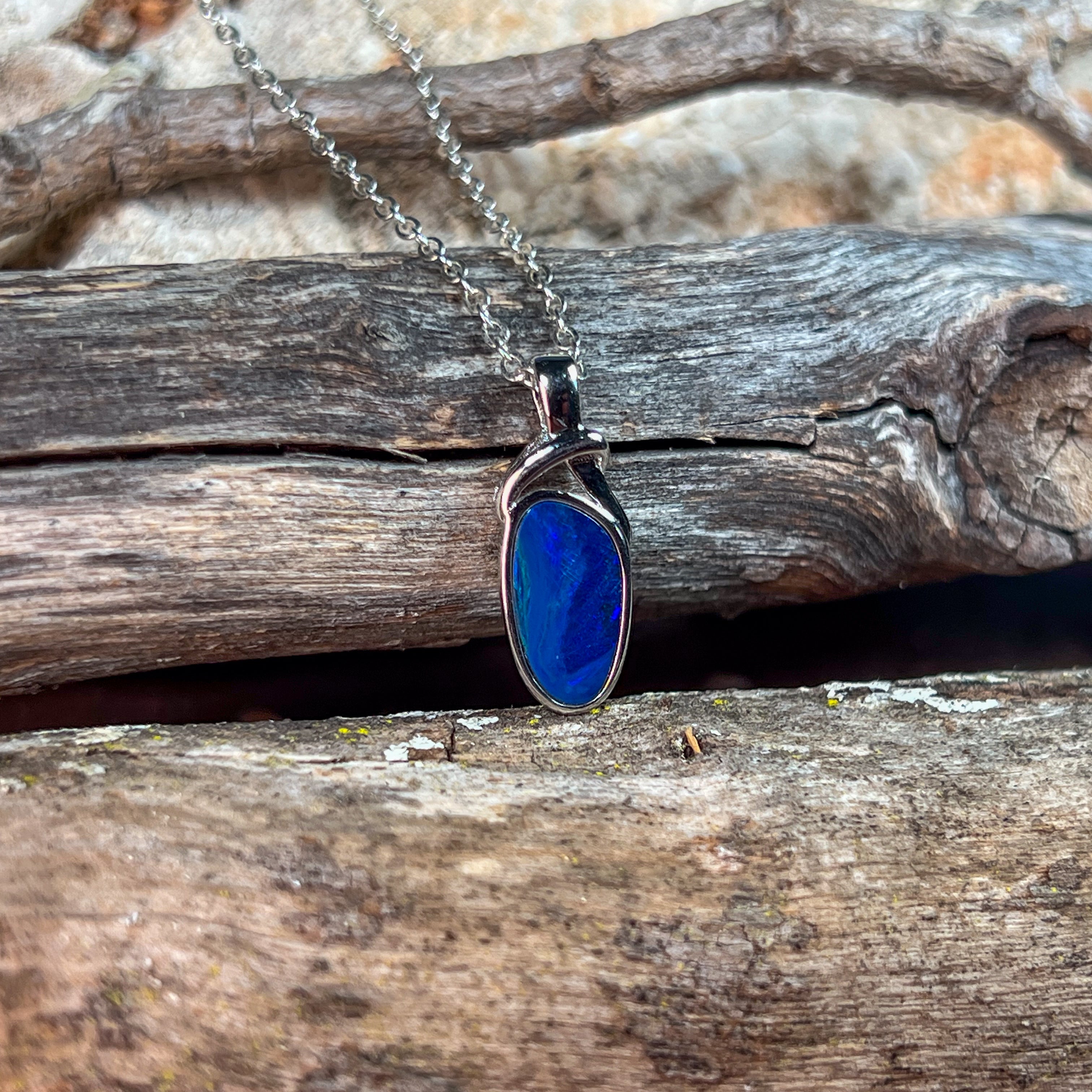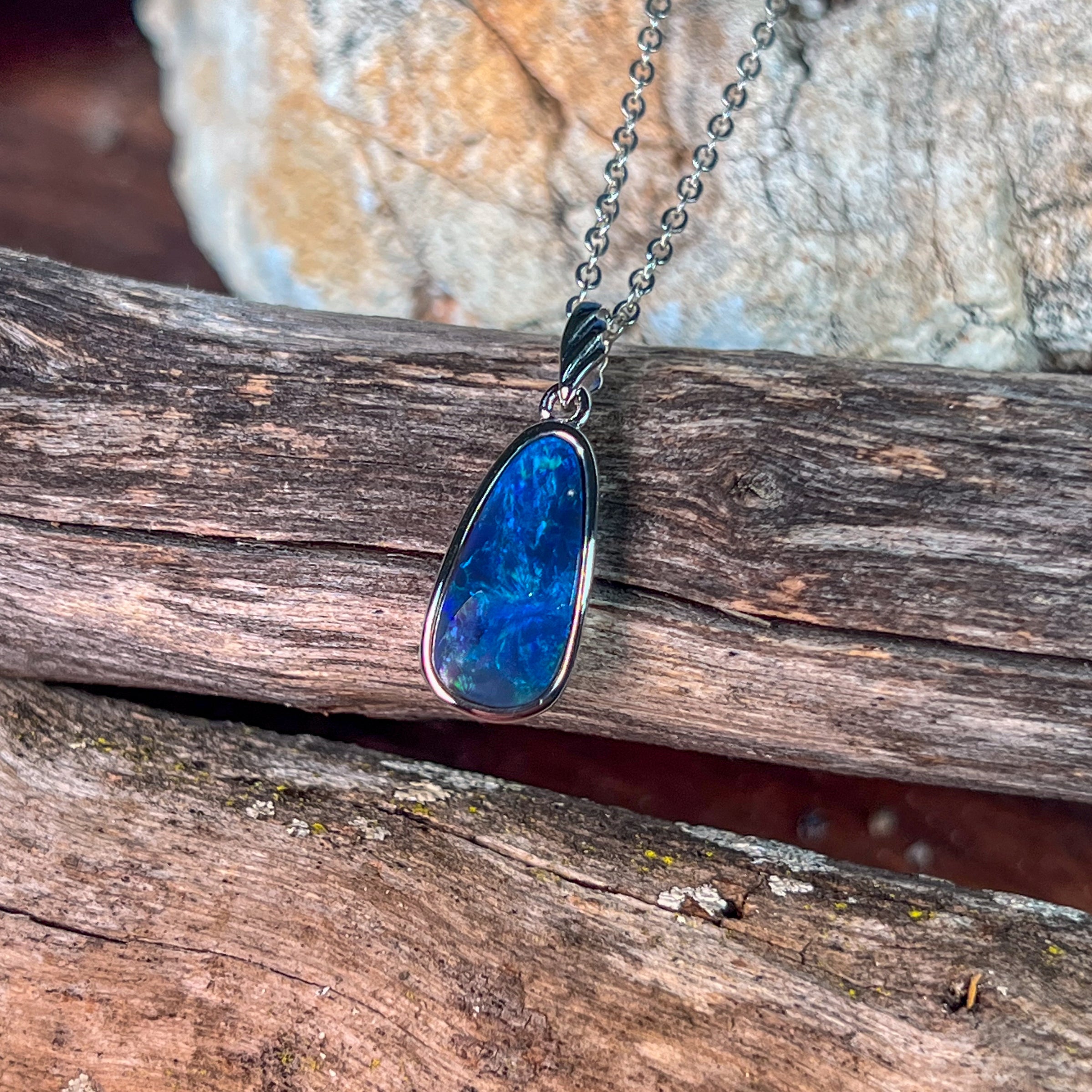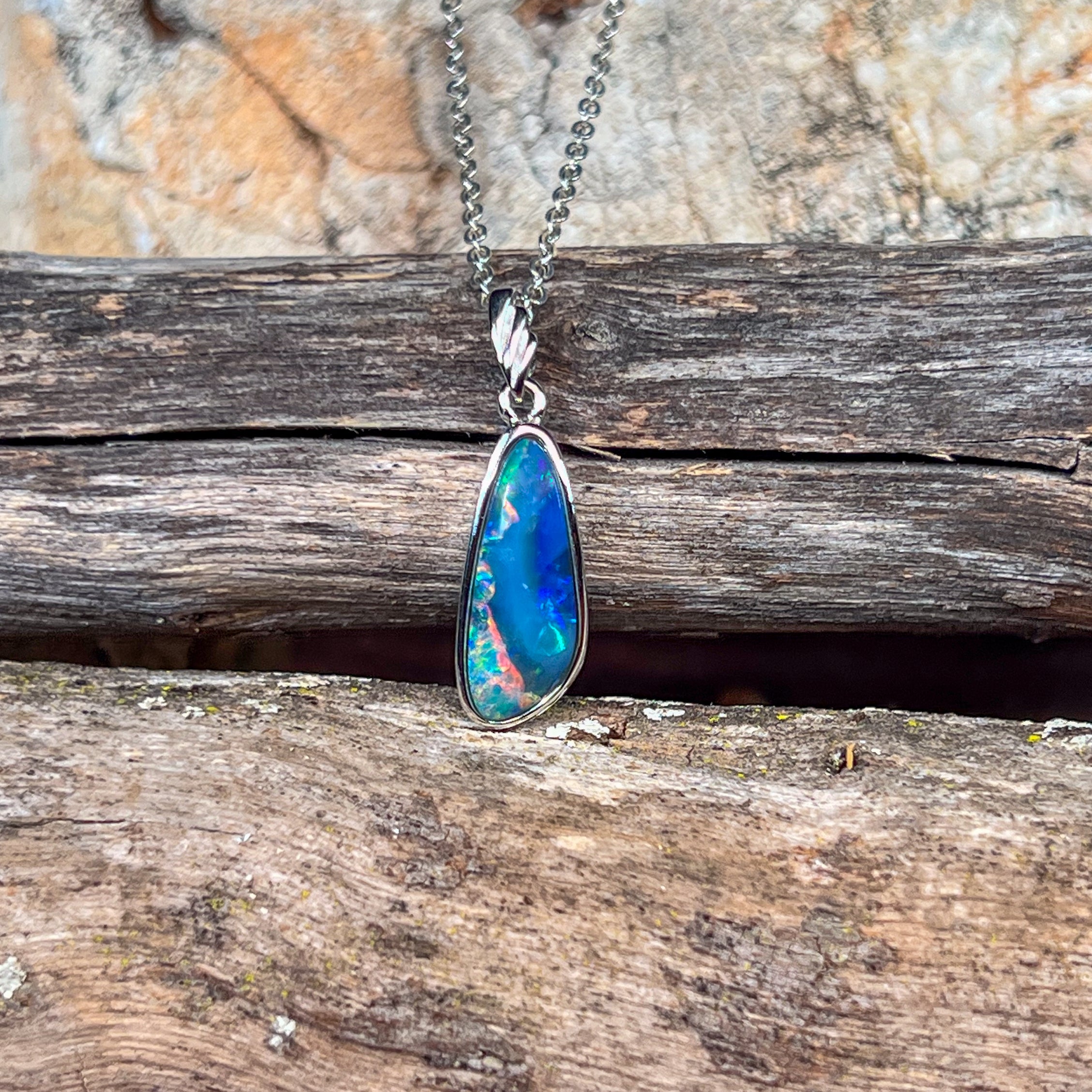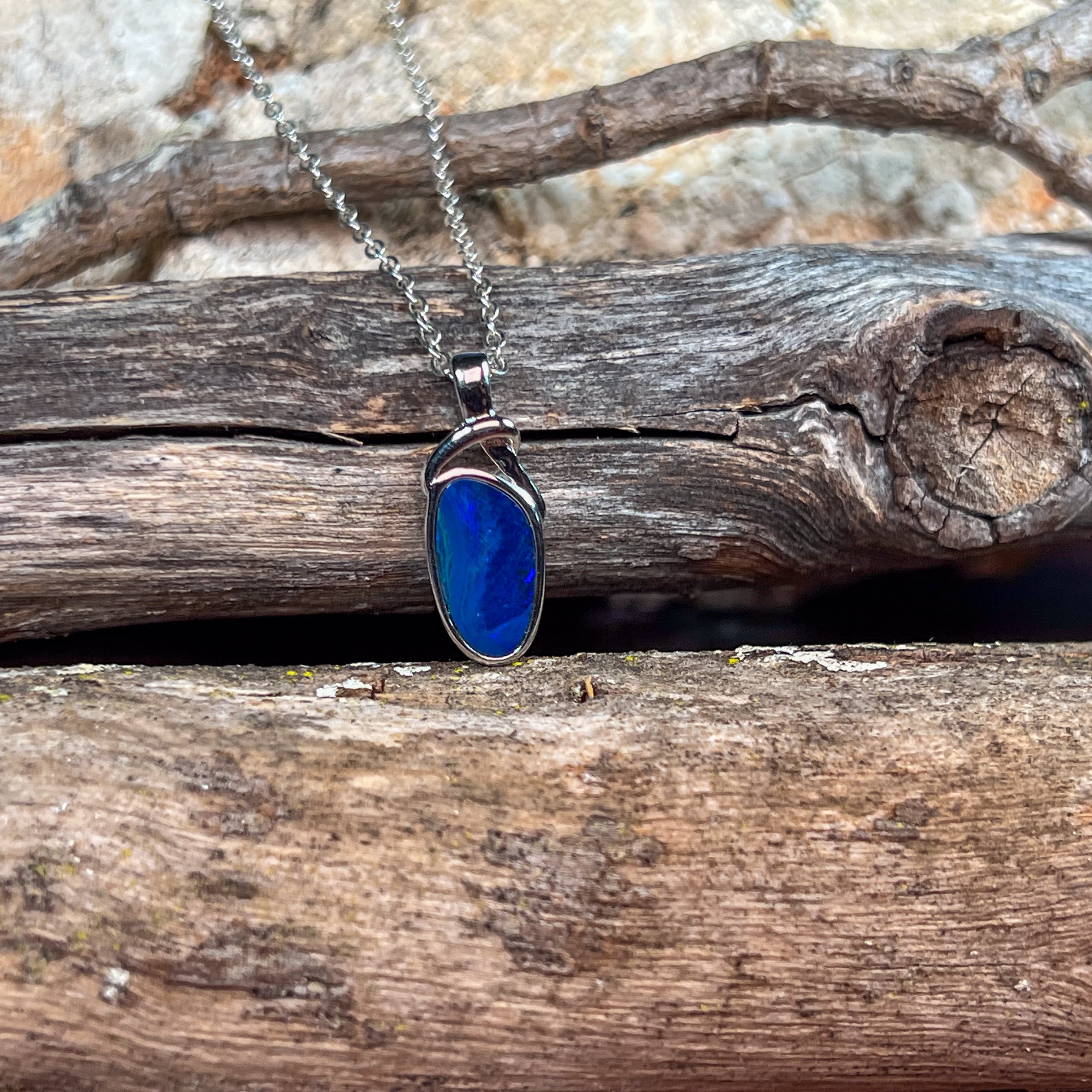 Sterling Silver long Drop shape Blue Green Opal doublet pendant