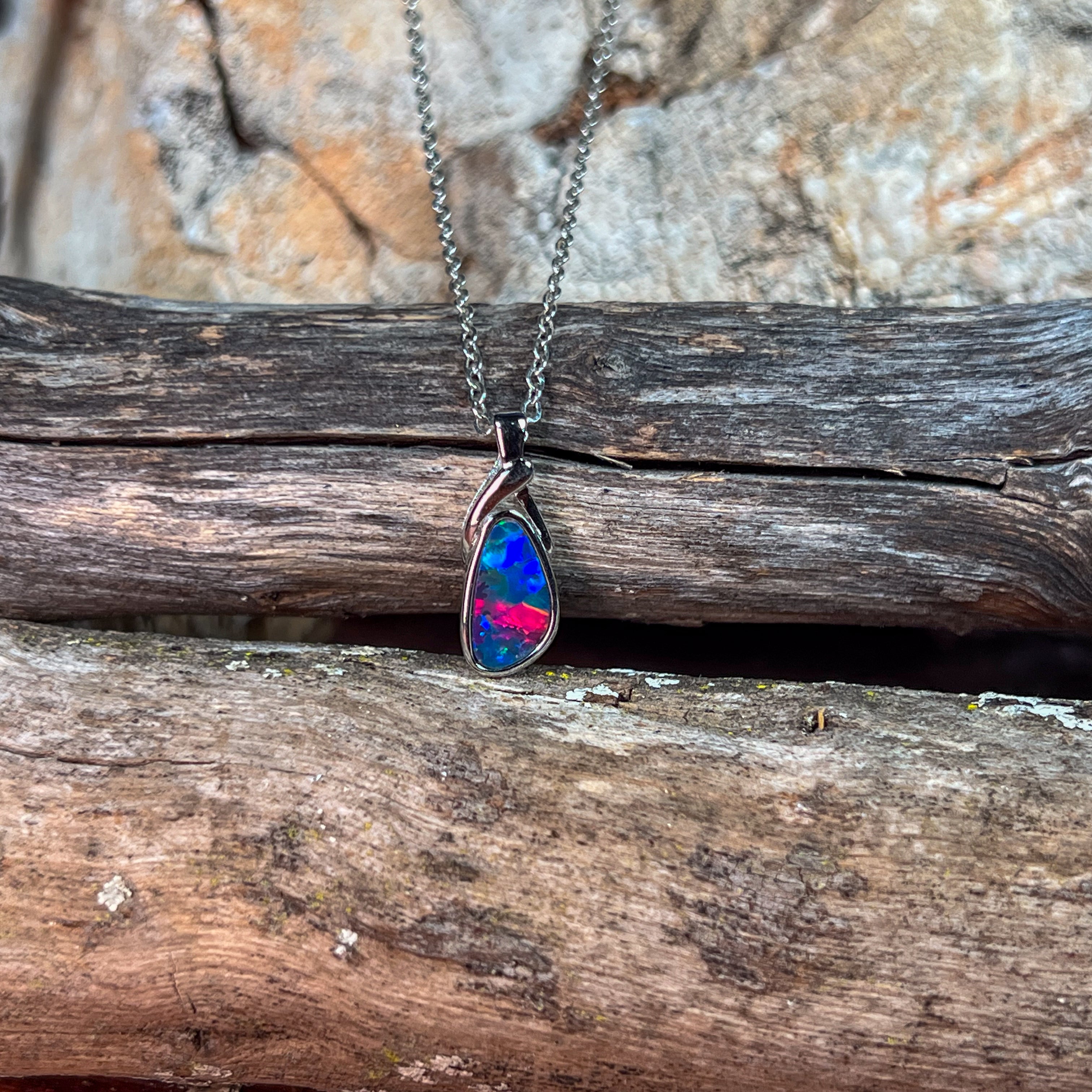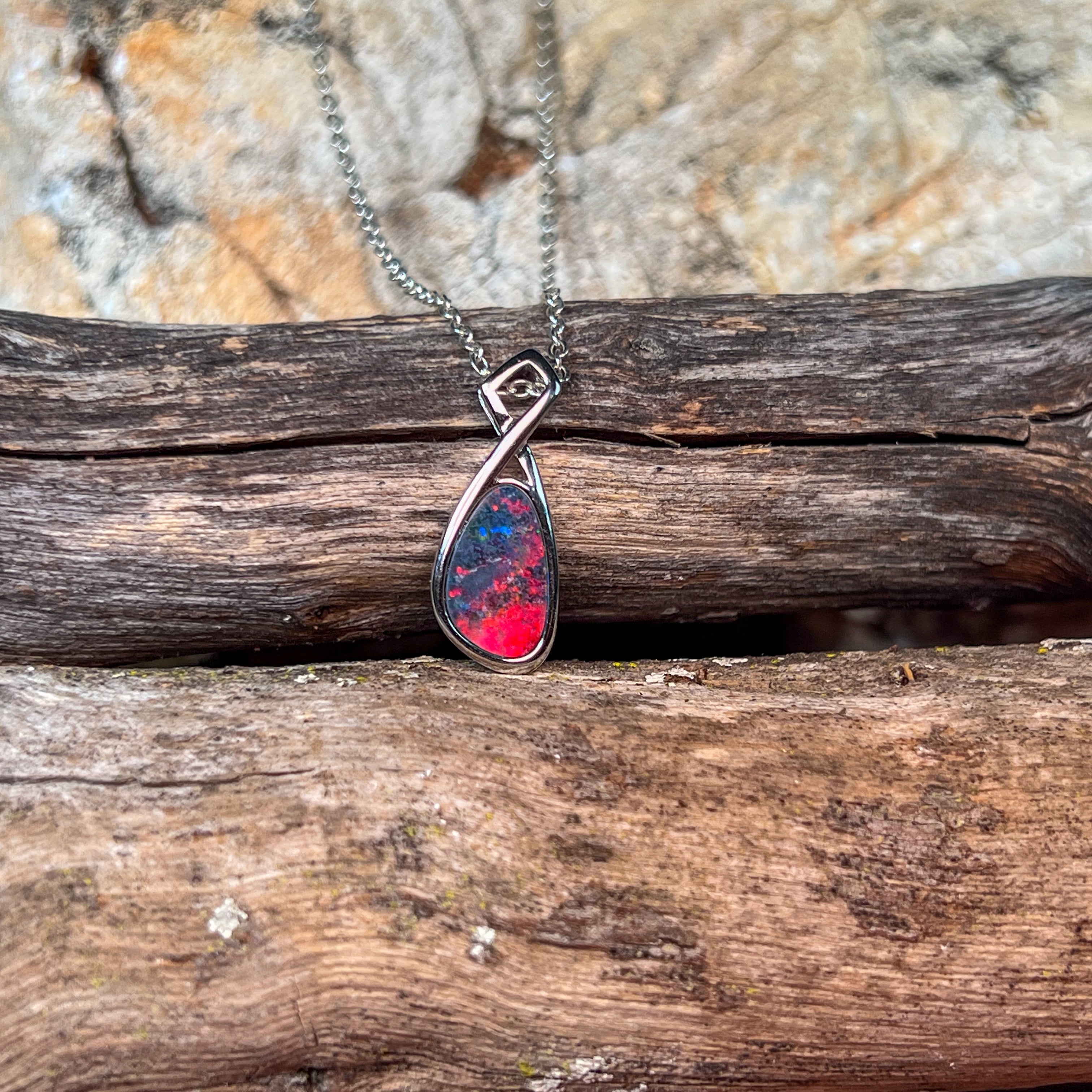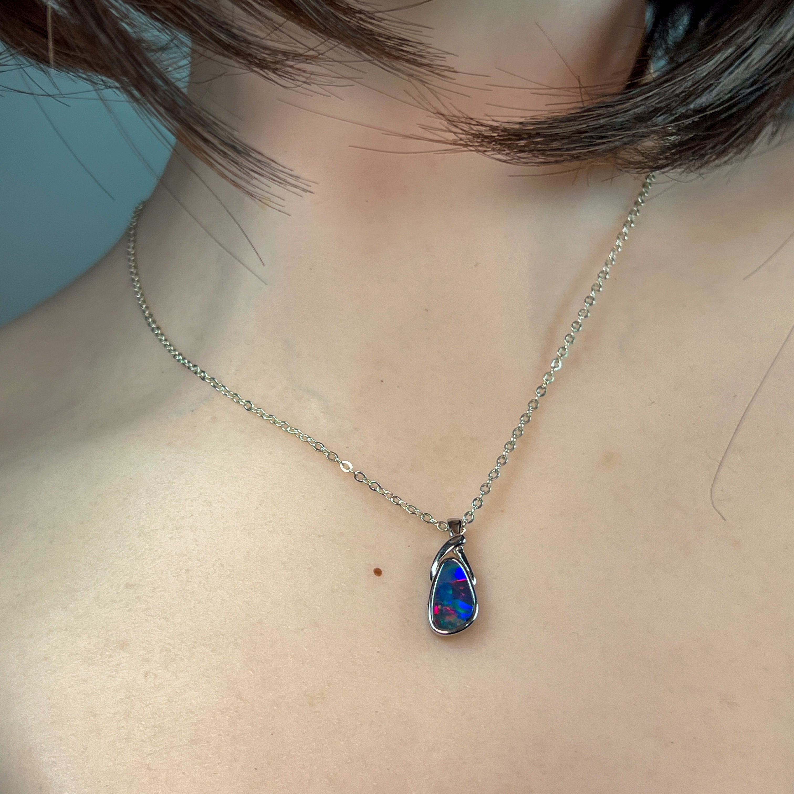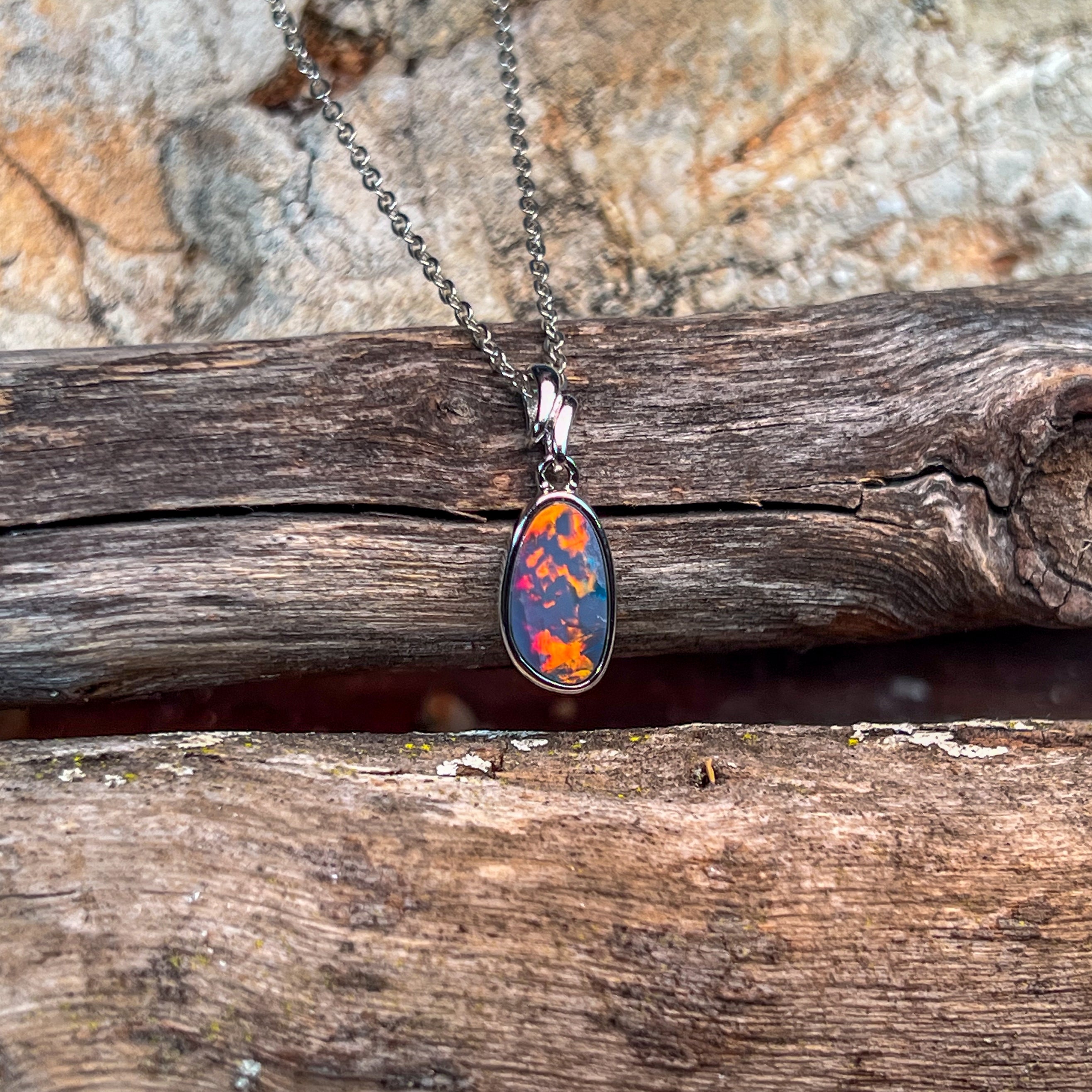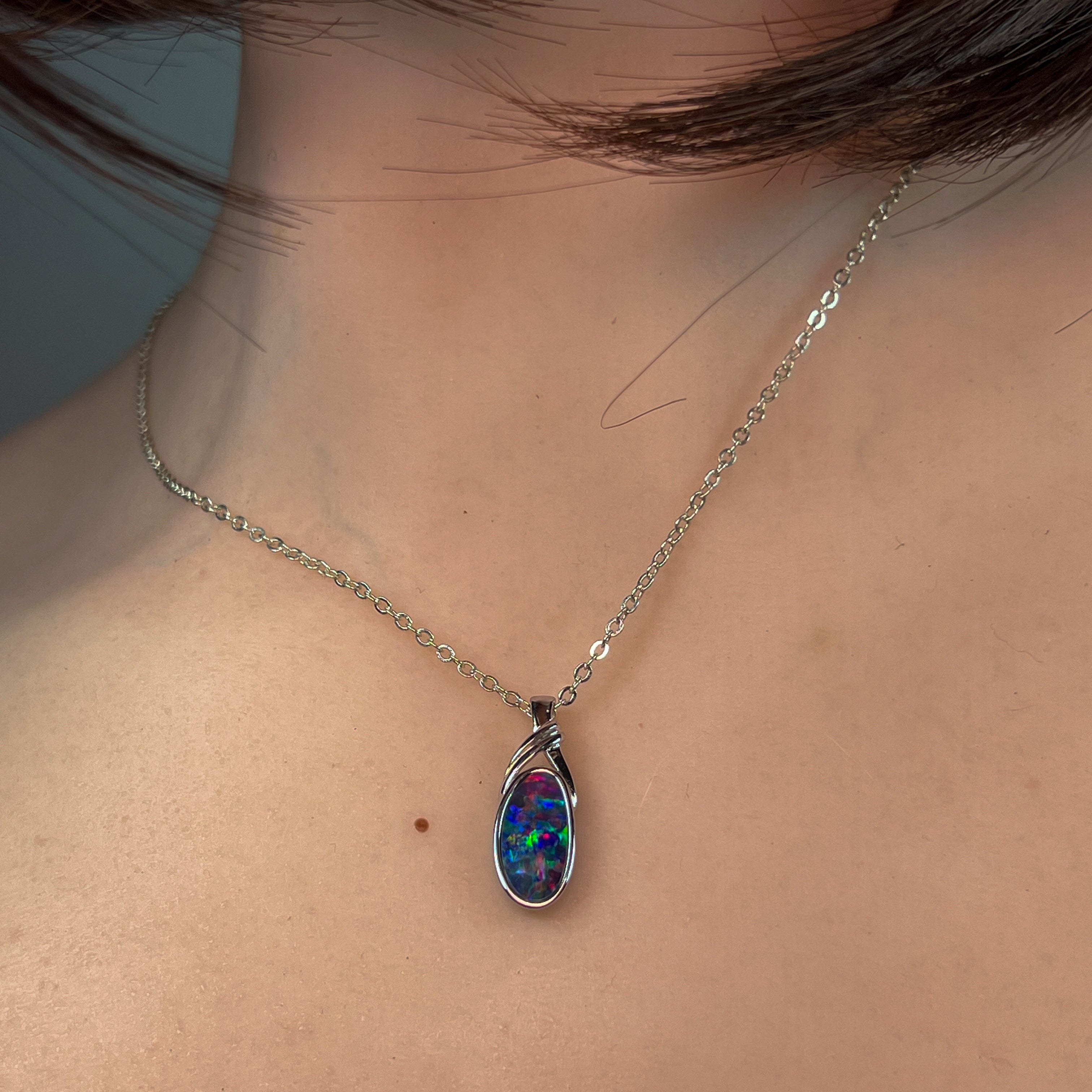 Sterling Silver Red Blue Opal doublet 12x7mm pendant