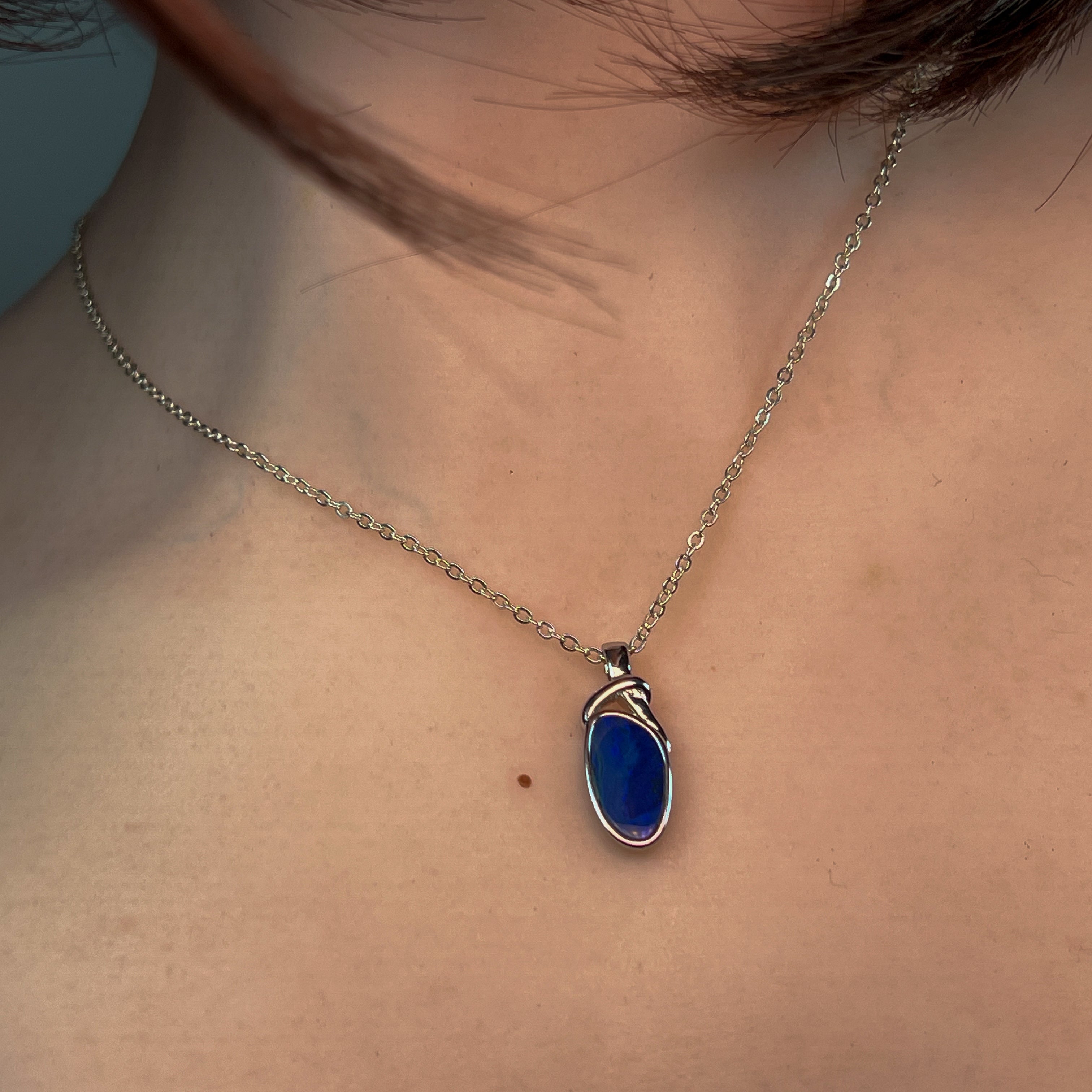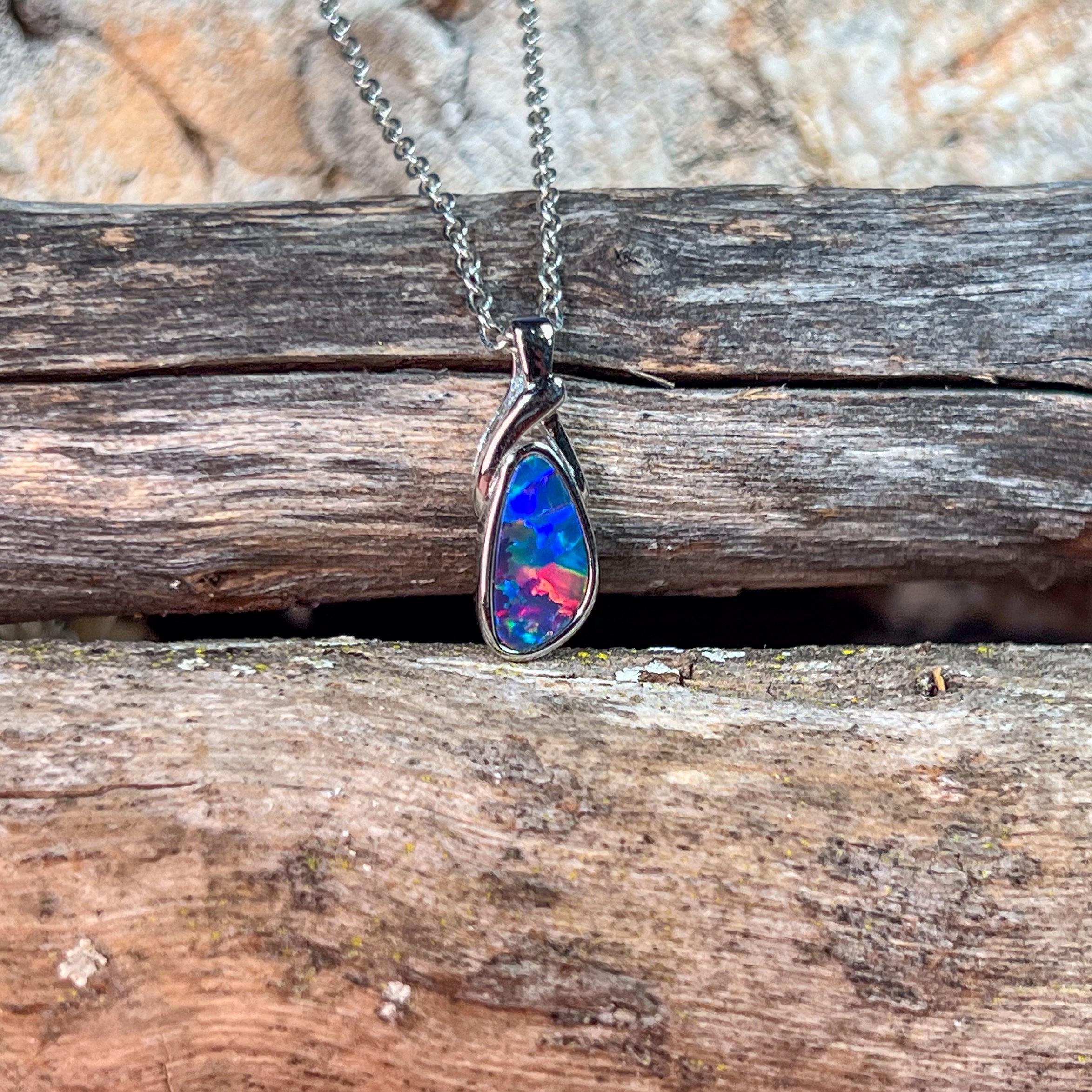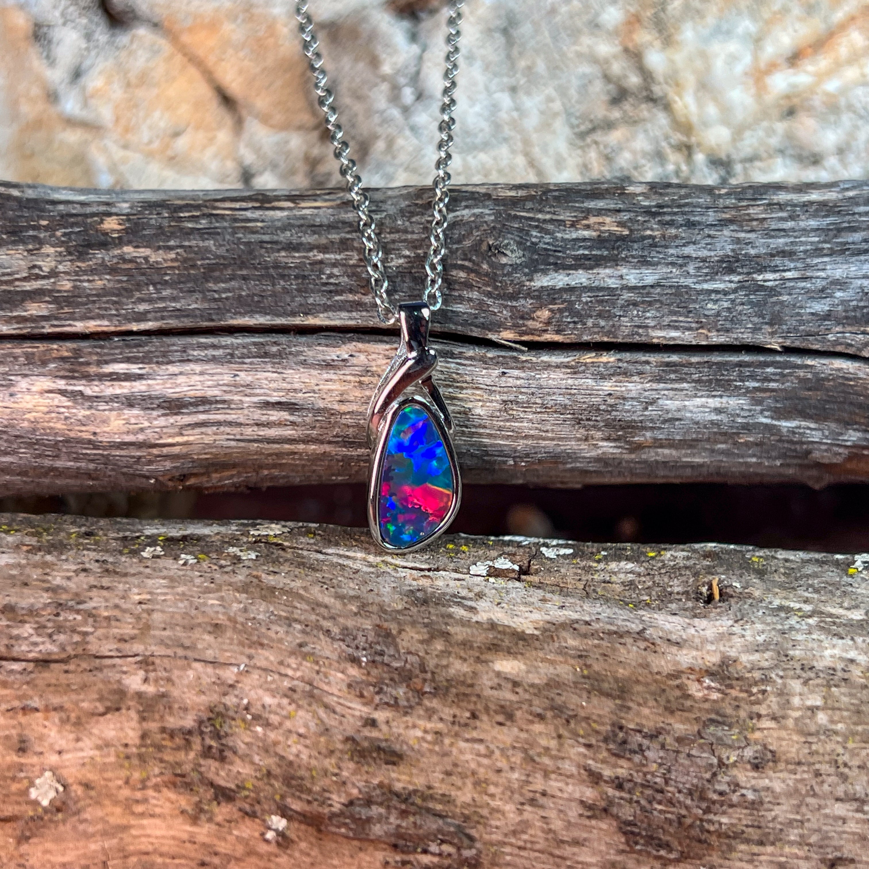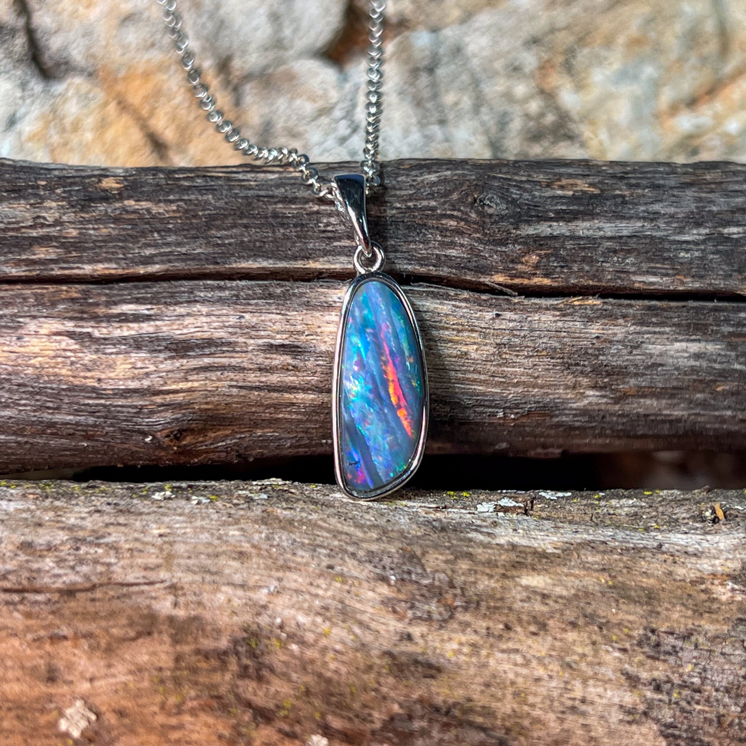 Sterling Silver Red Blue Opal doublet 12x7mm pendant