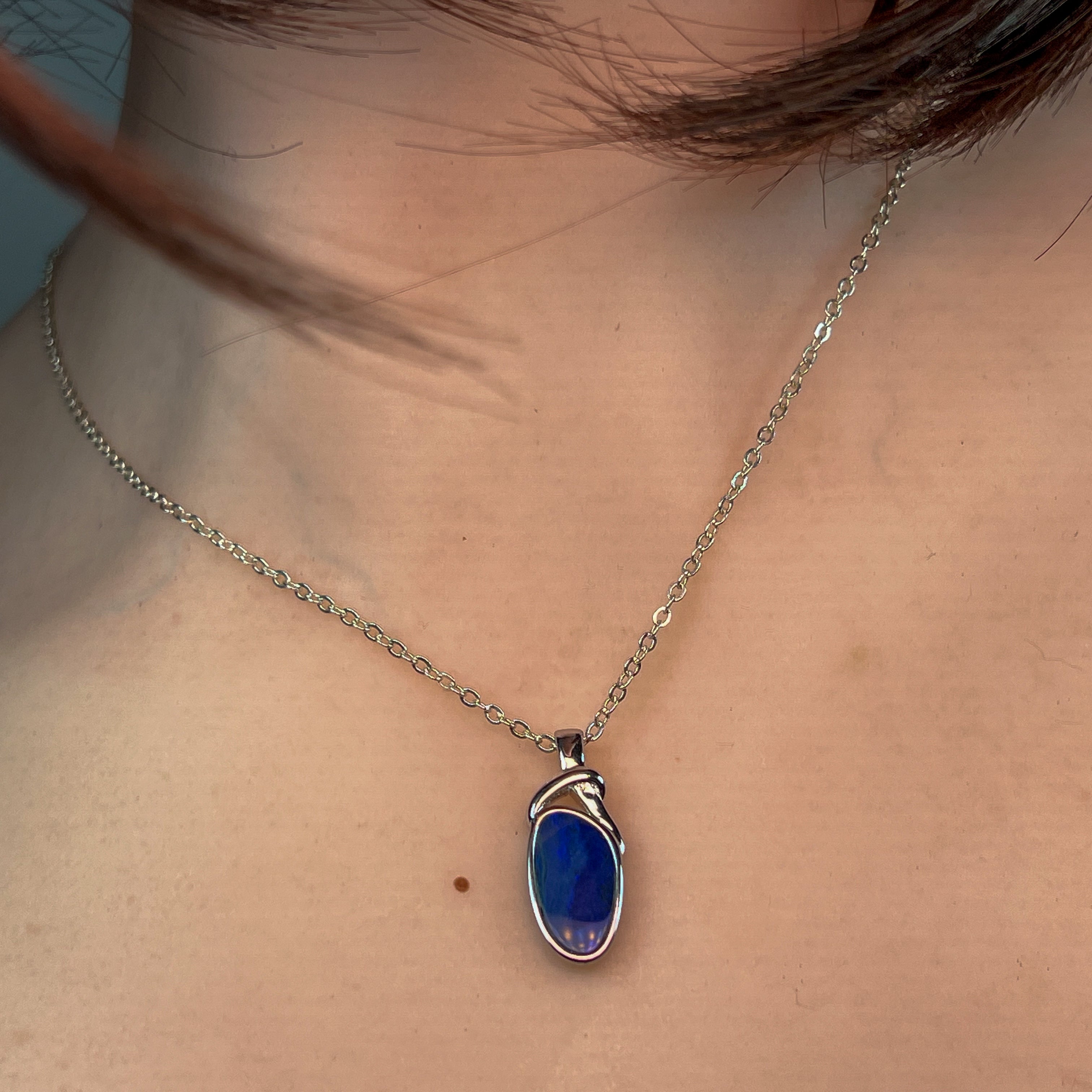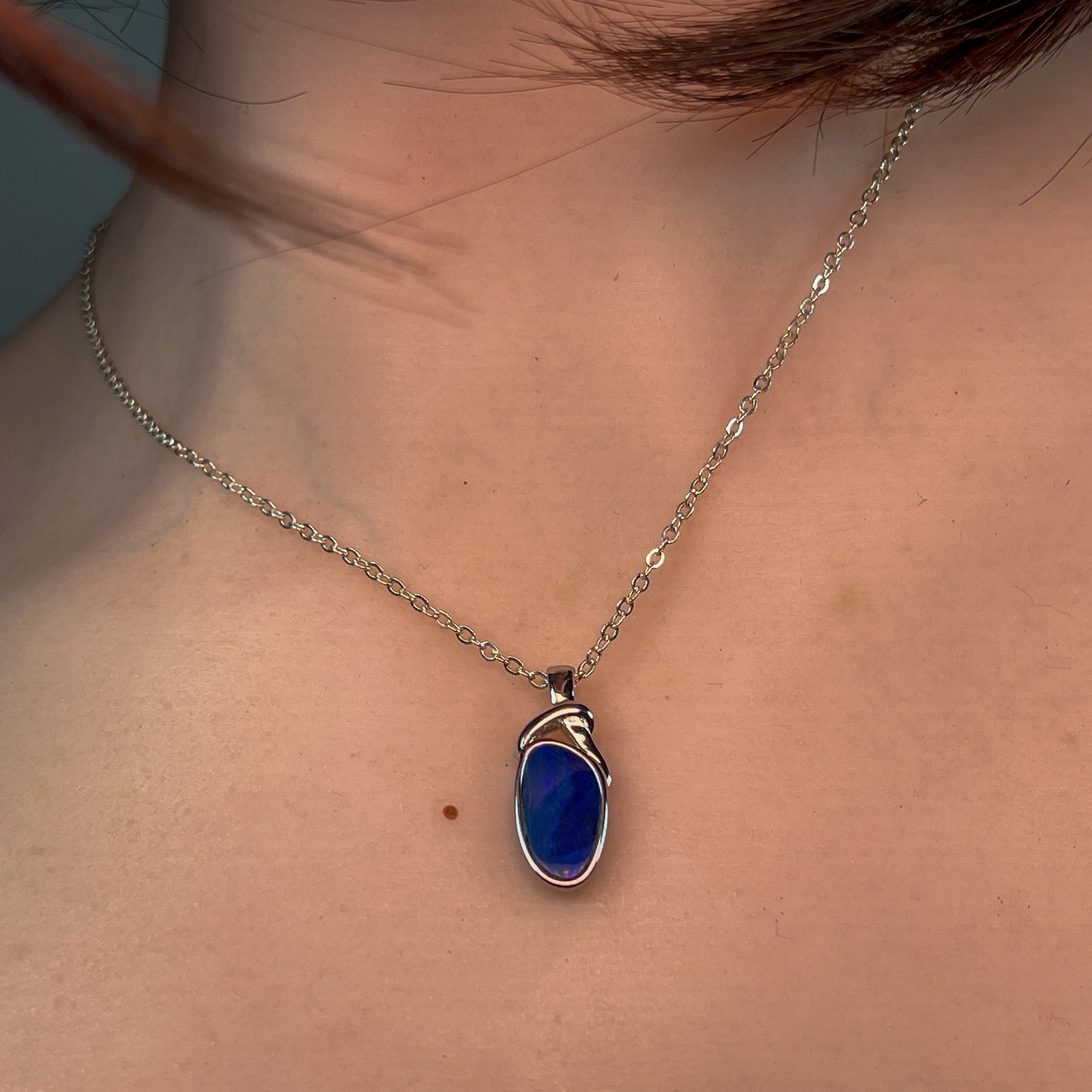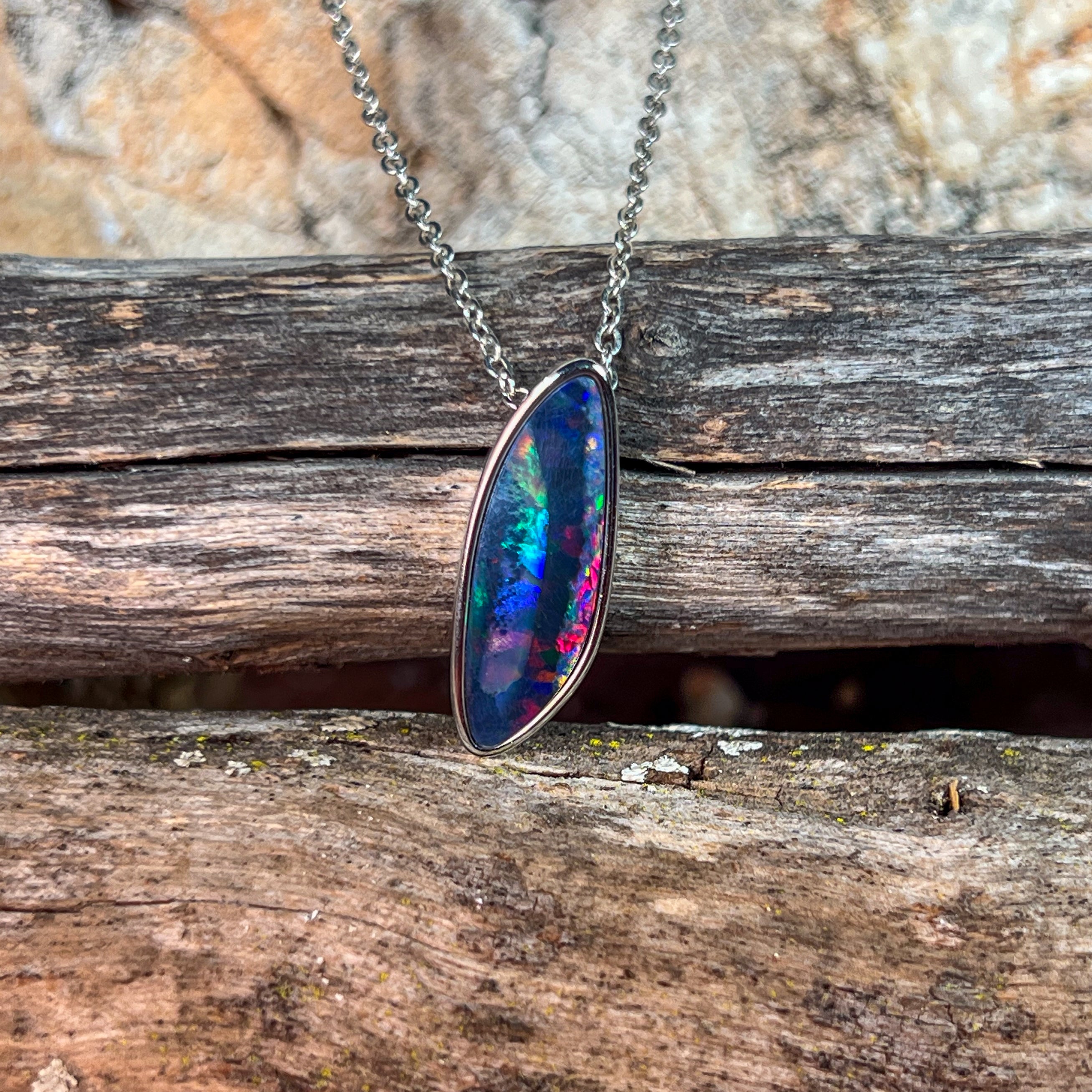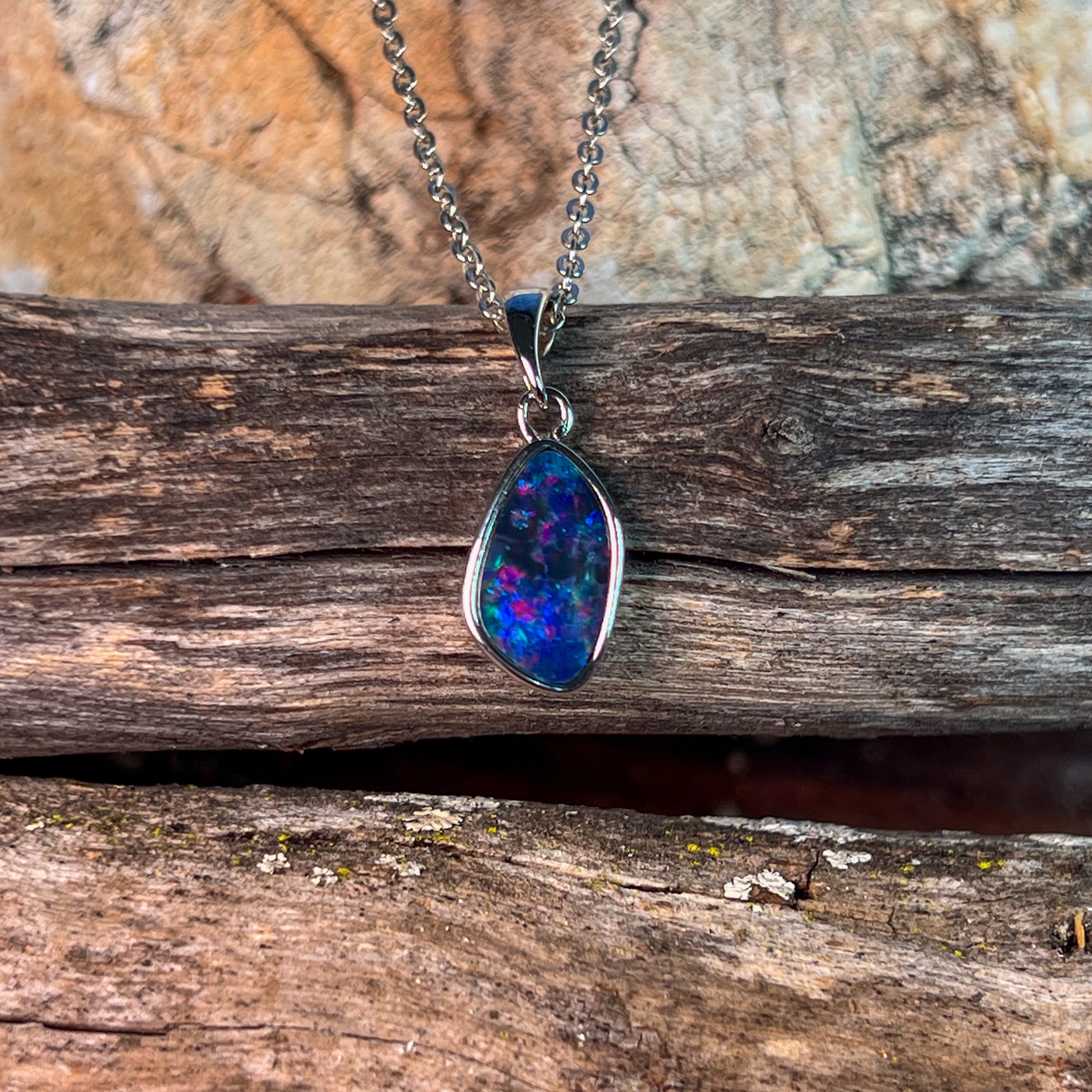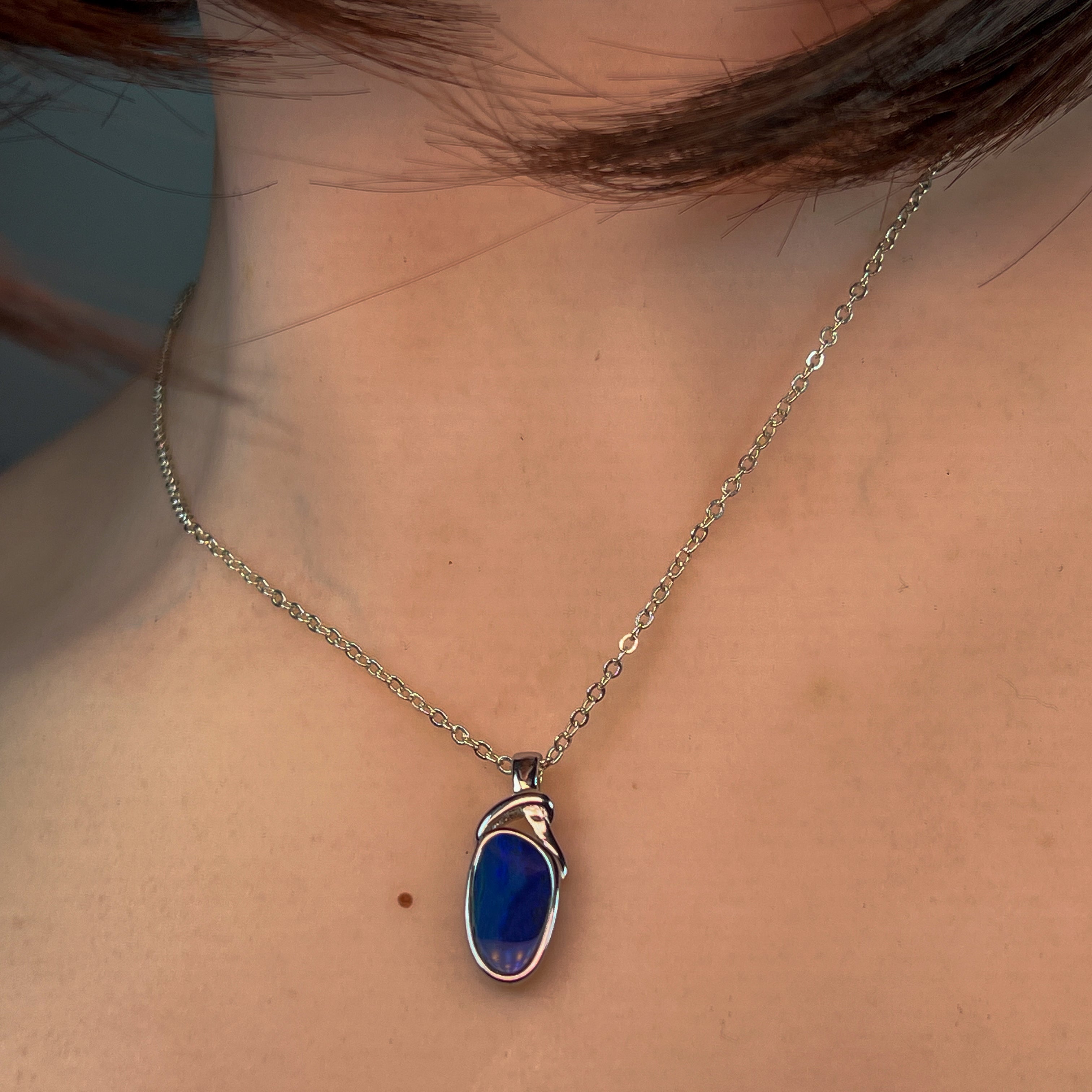 Sterling Silver Red Blue Opal doublet 12x7mm pendant