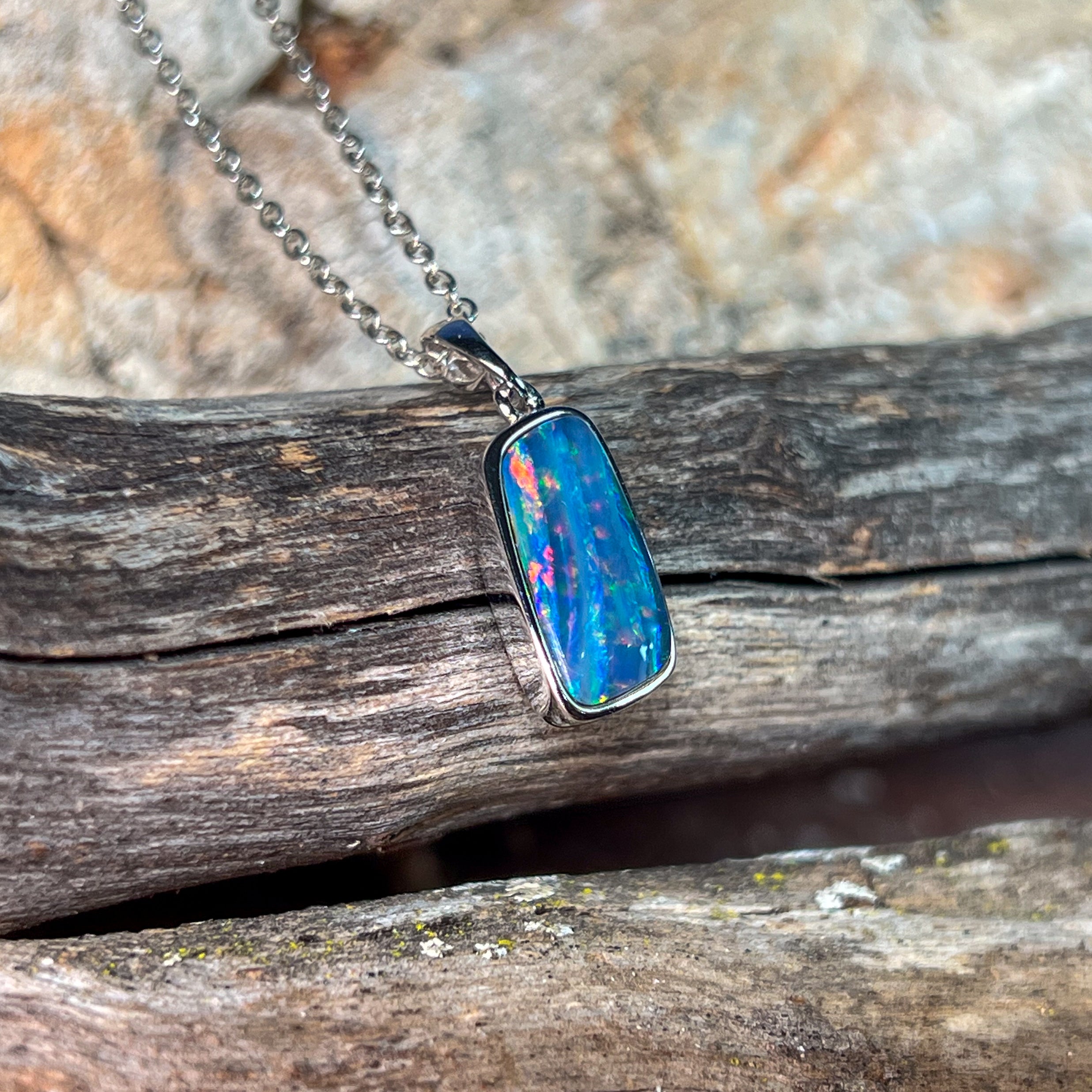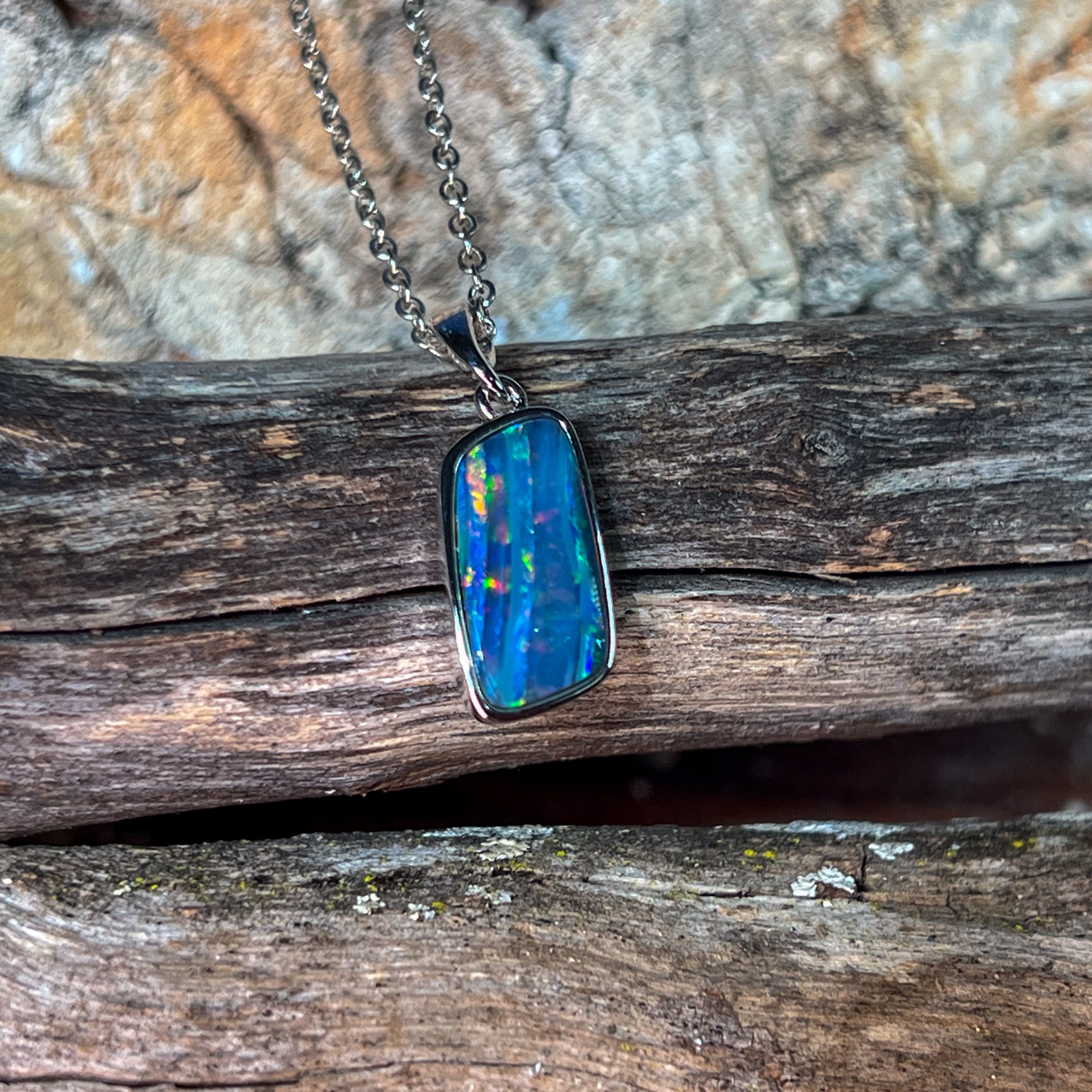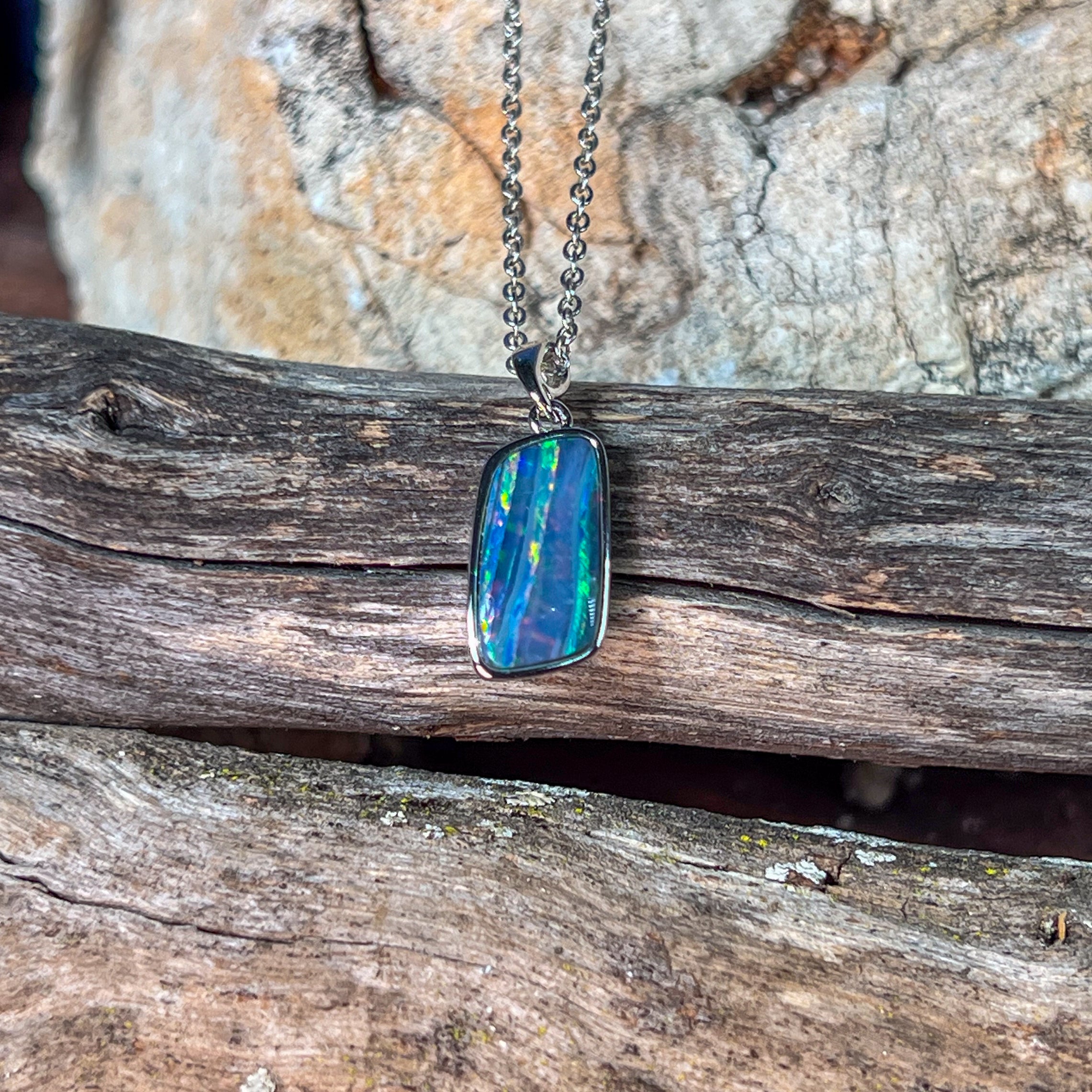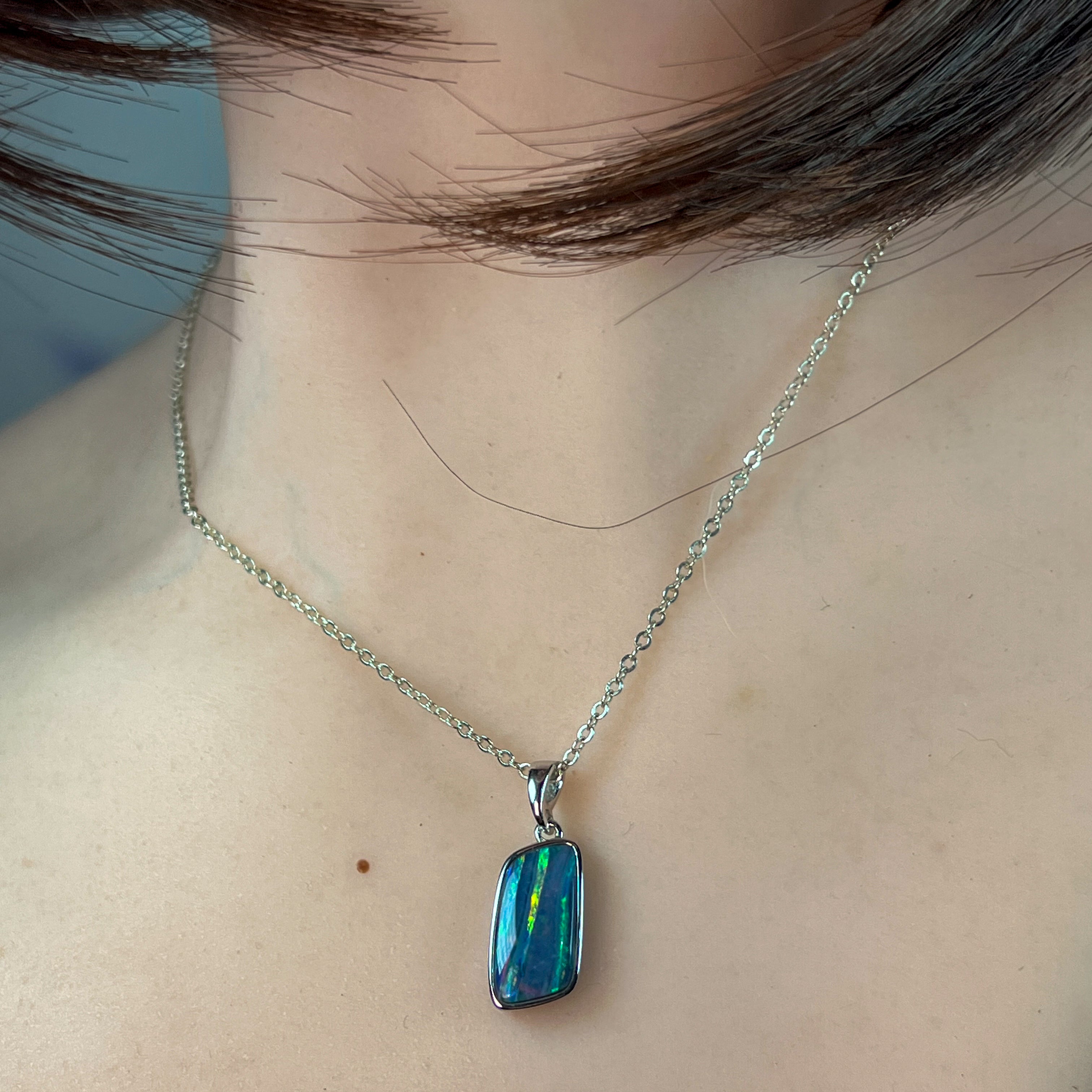 Sterling Silver rectangular Opal stripe pattern doublet pendant