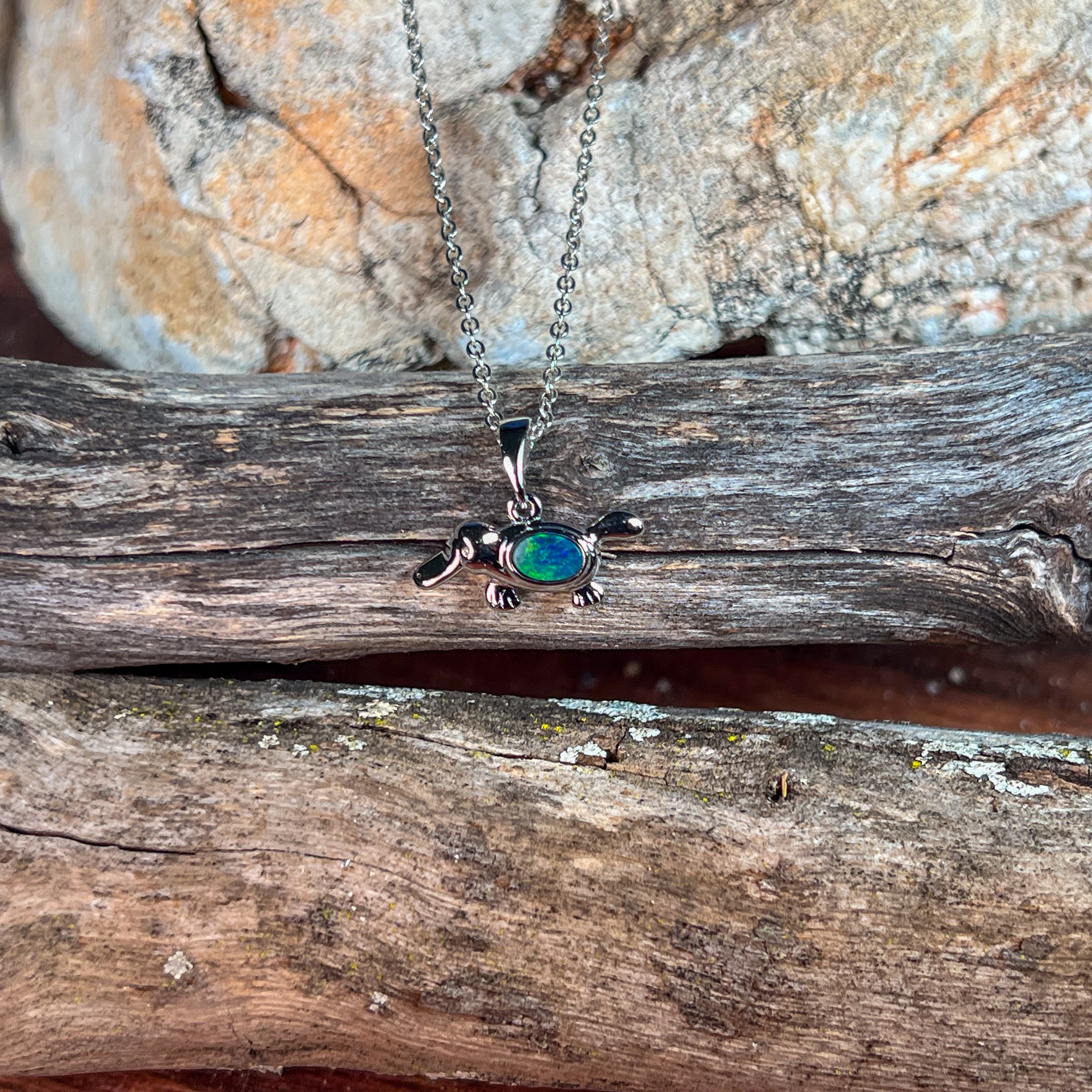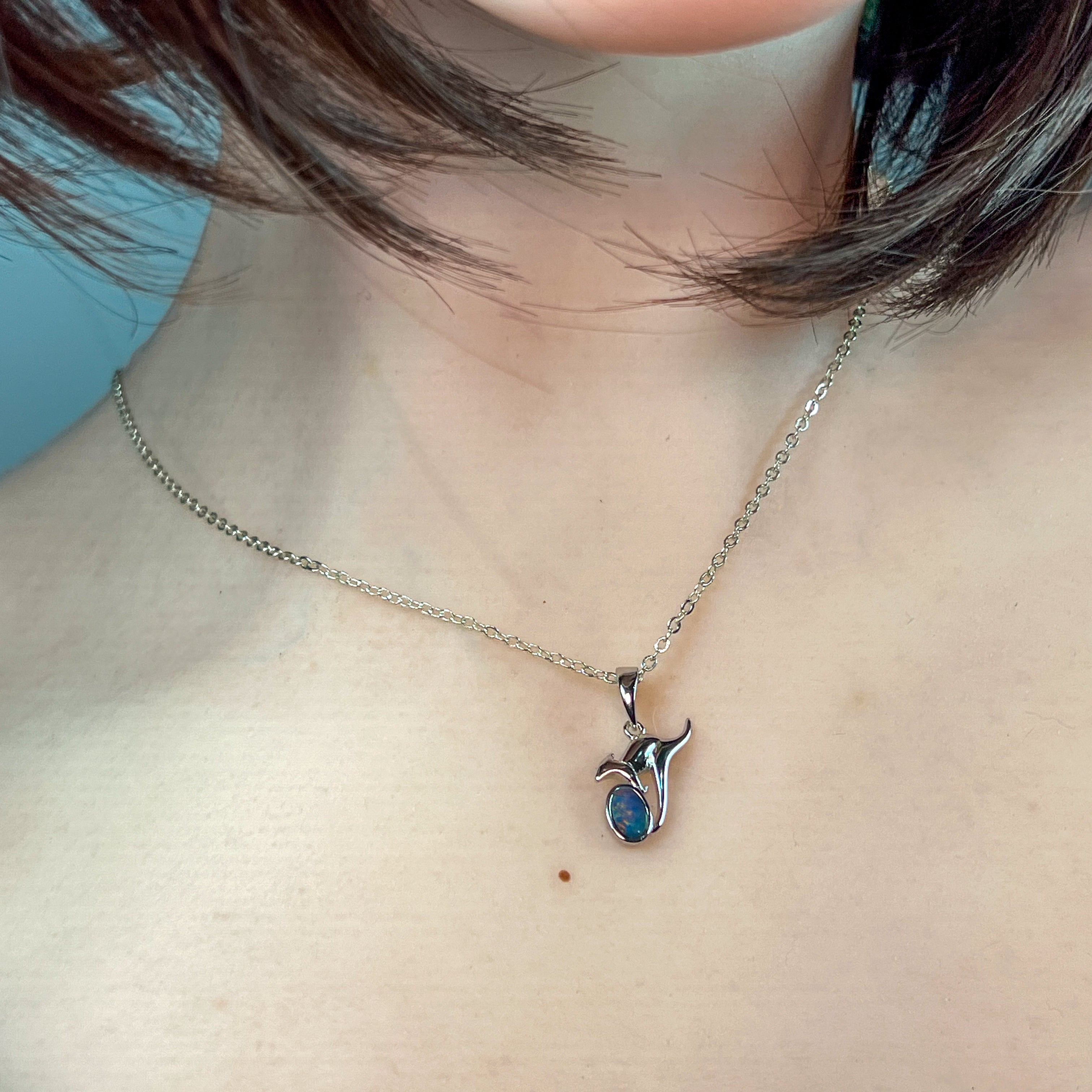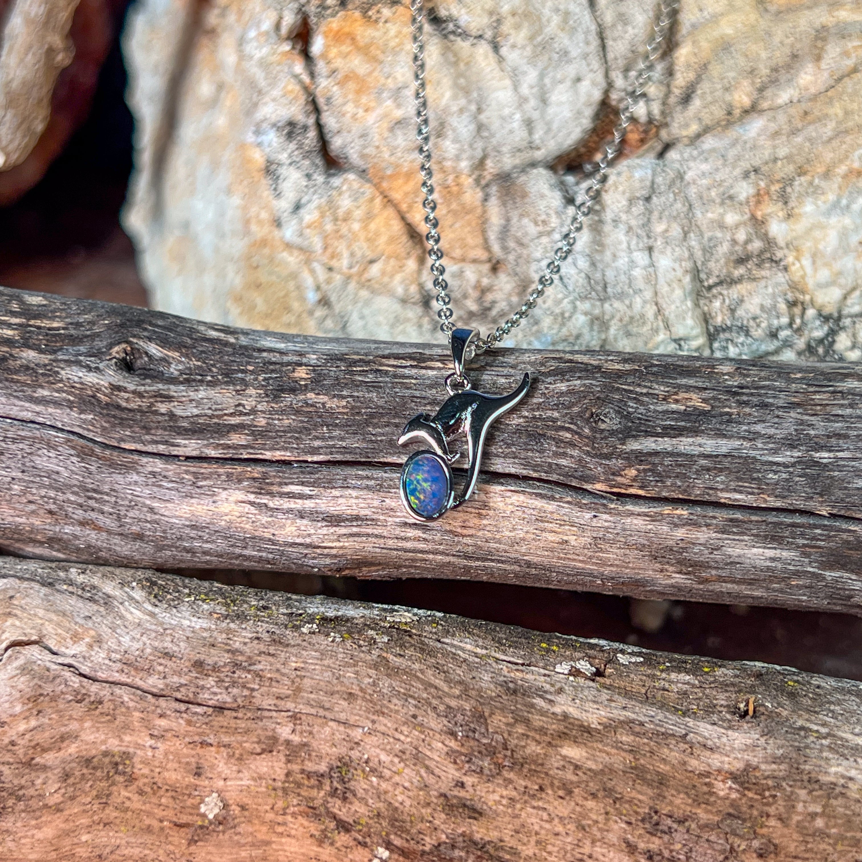 Sterling Silver Kangaroo Oval 6x4mm Opal doublet pendant