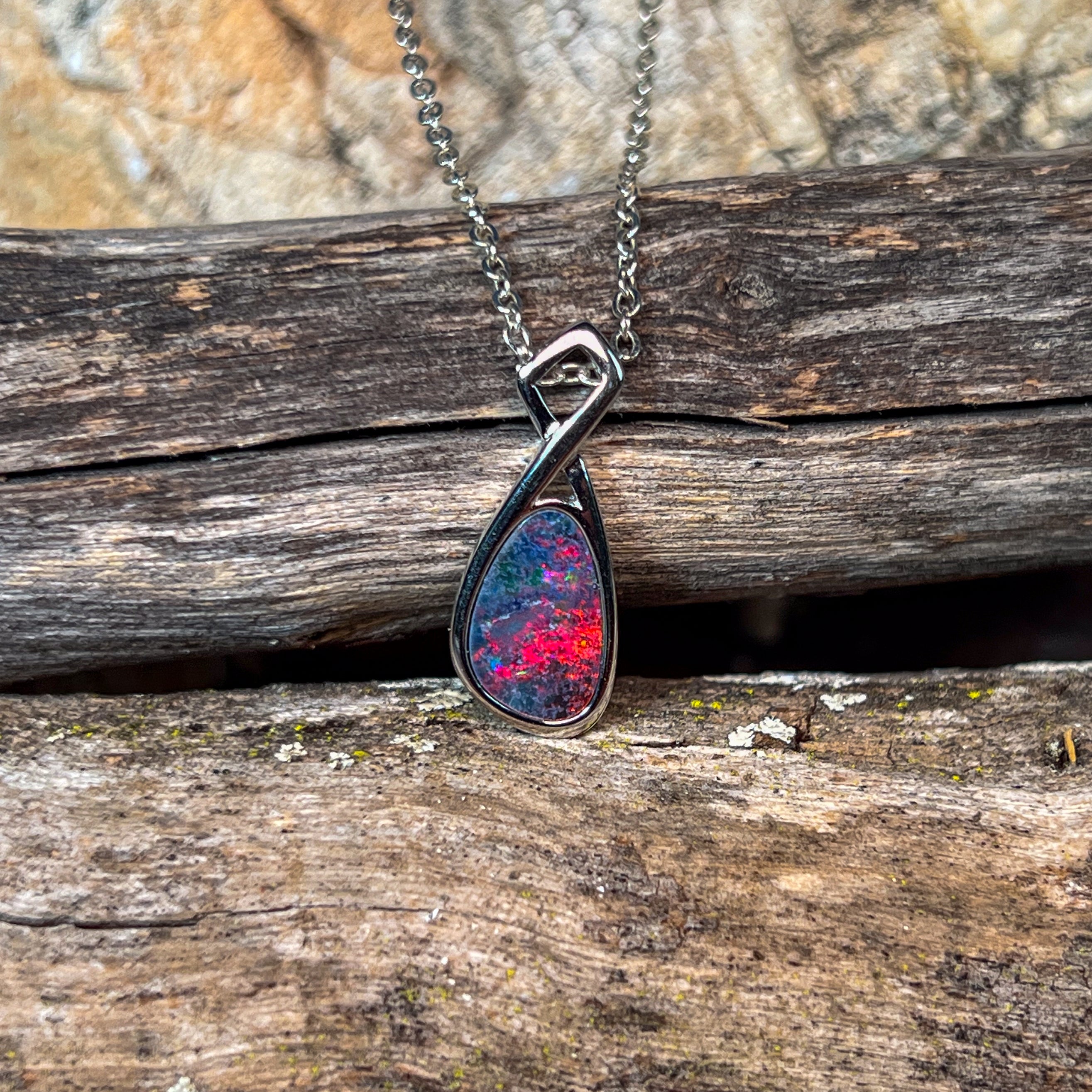 Sterling Silver Red Flash Purple base Opal doublet pendant