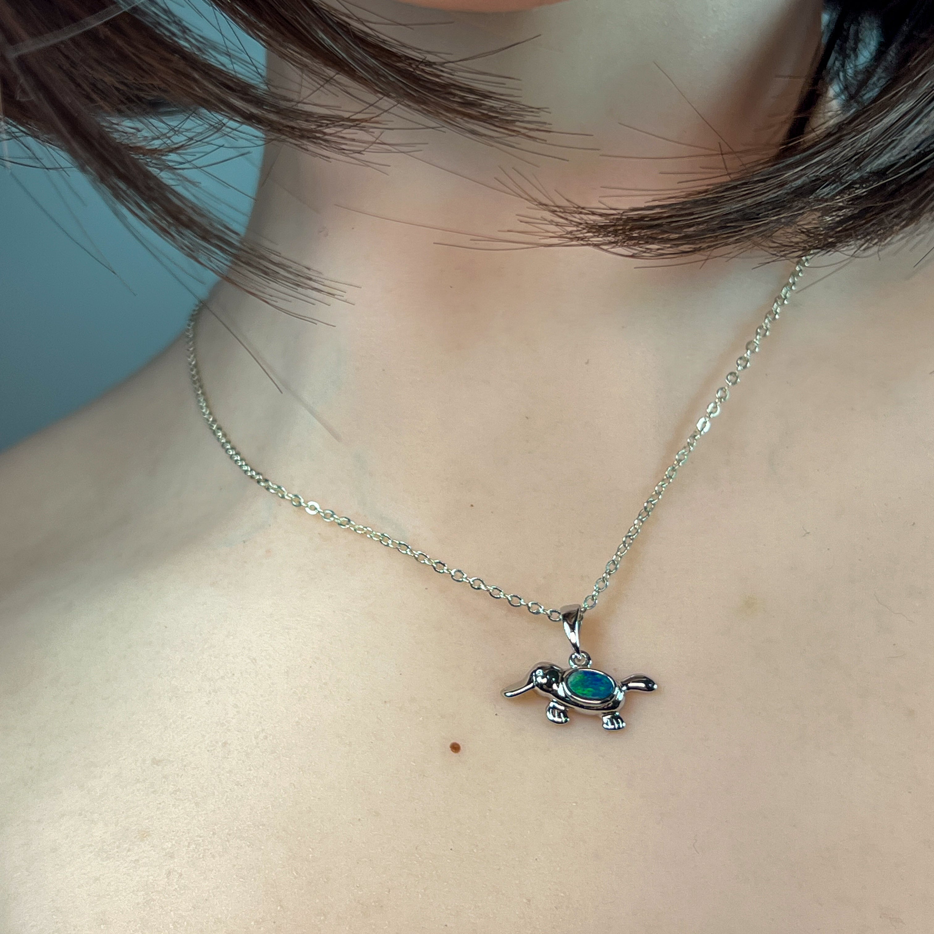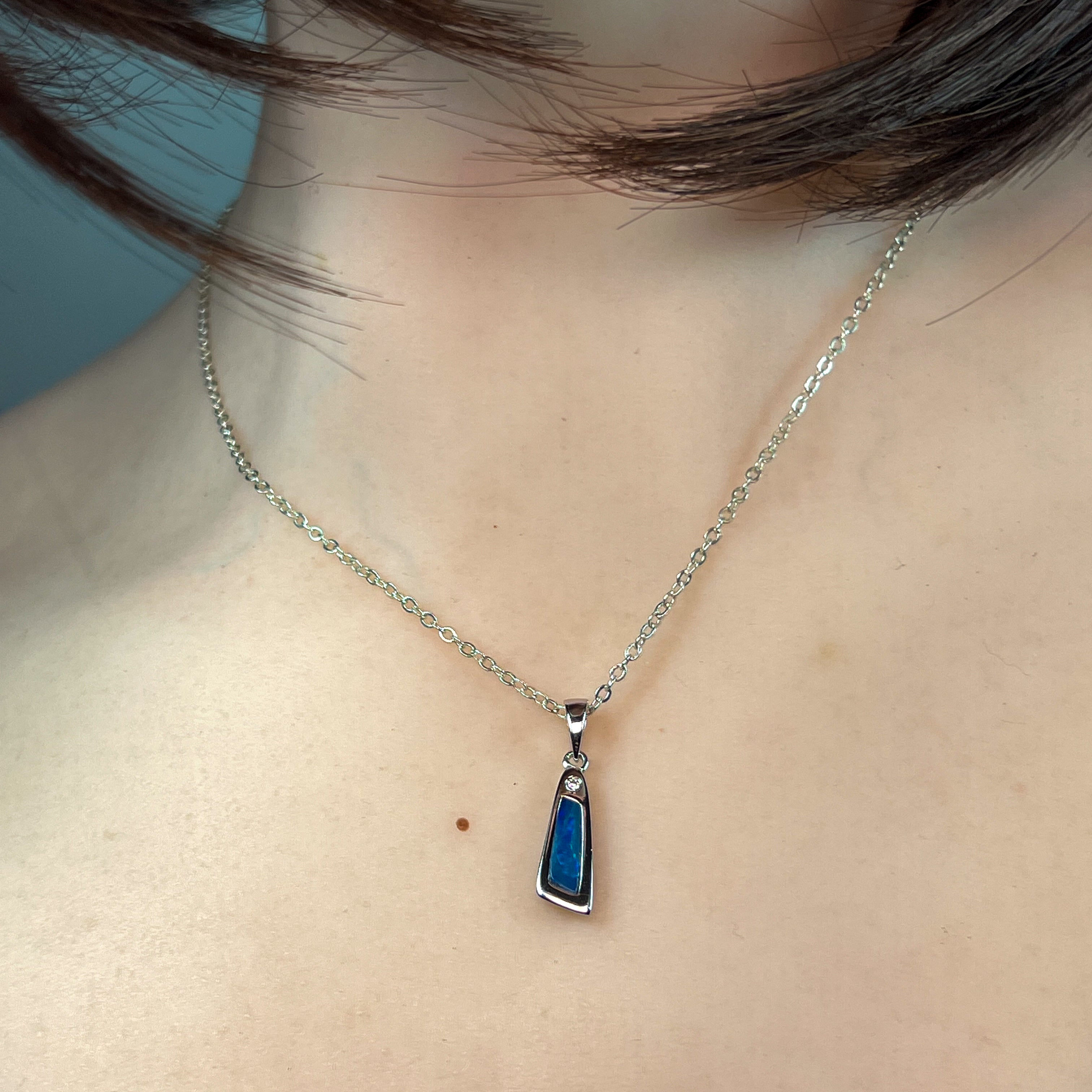 Sterling Silver Modern minimalist Blue Green Opal pendant