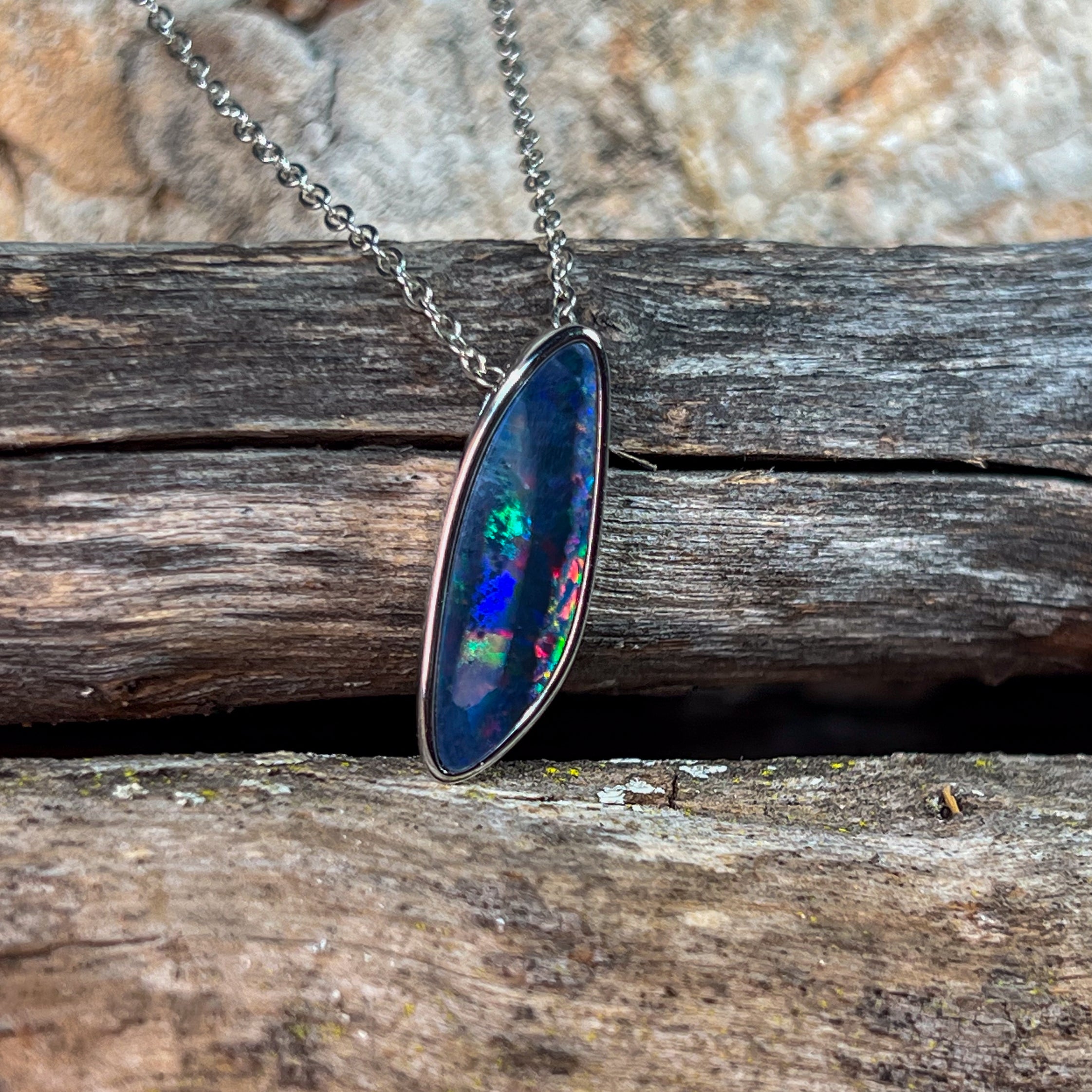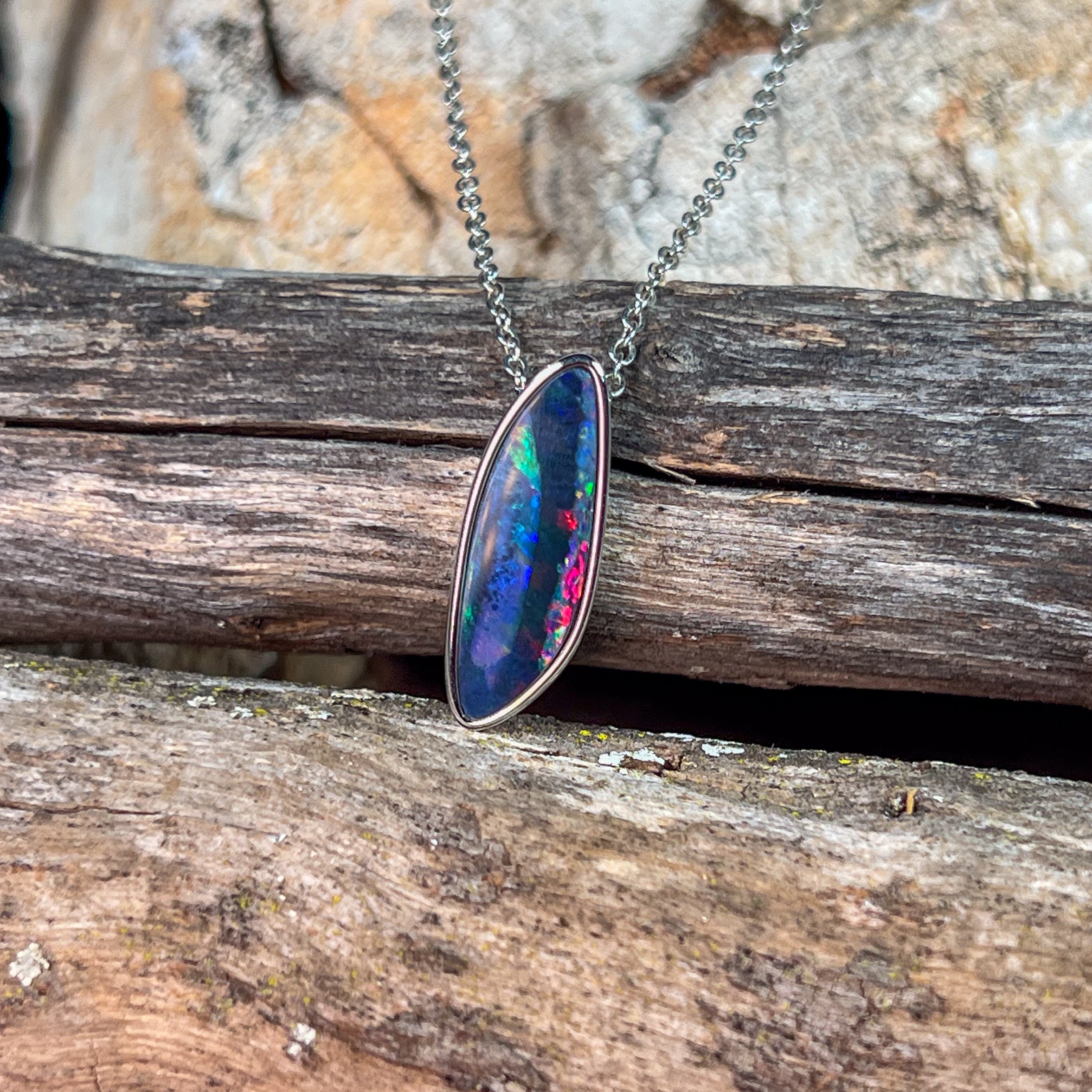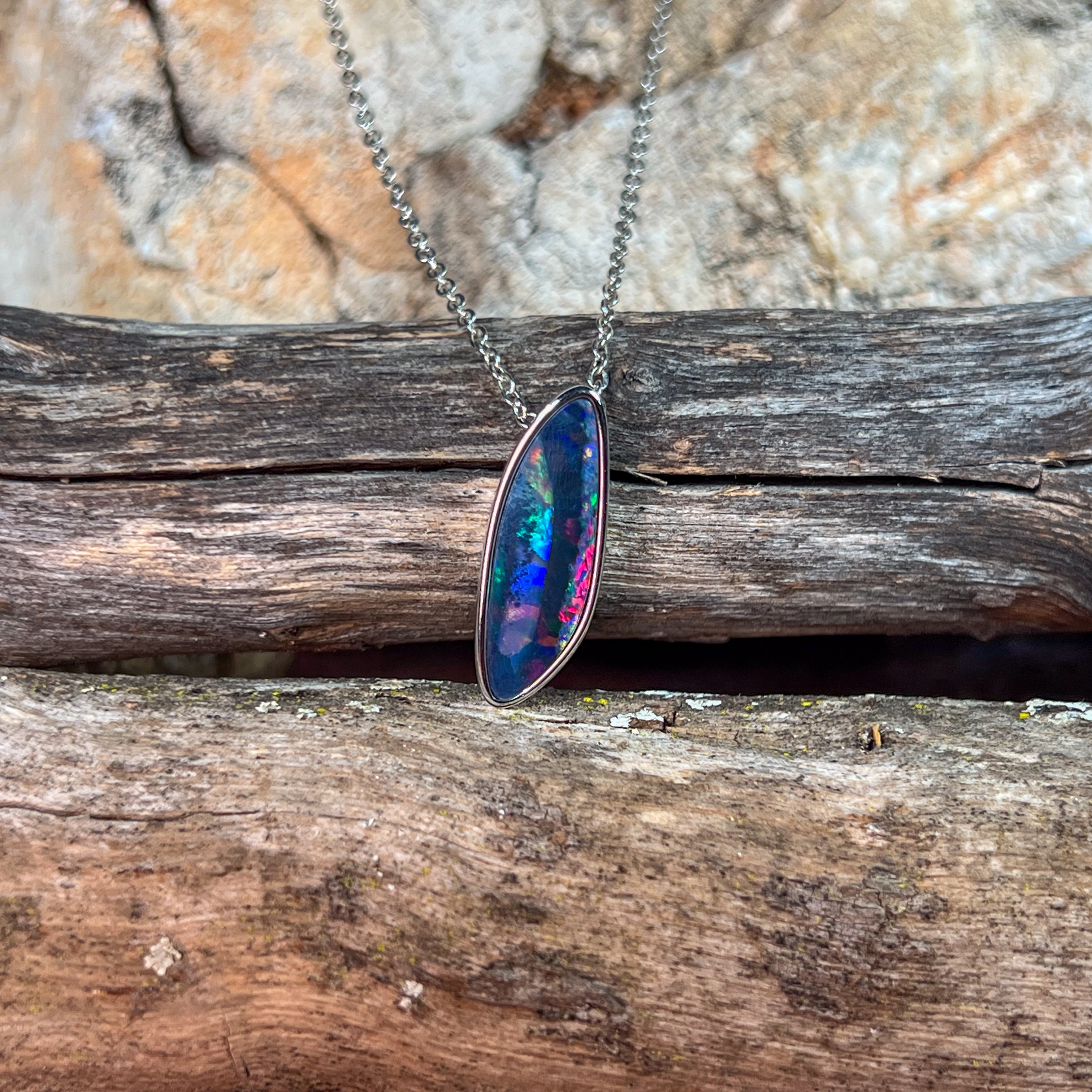 Sterling Silver Long Drop triplet pattern Opal doublet pendant