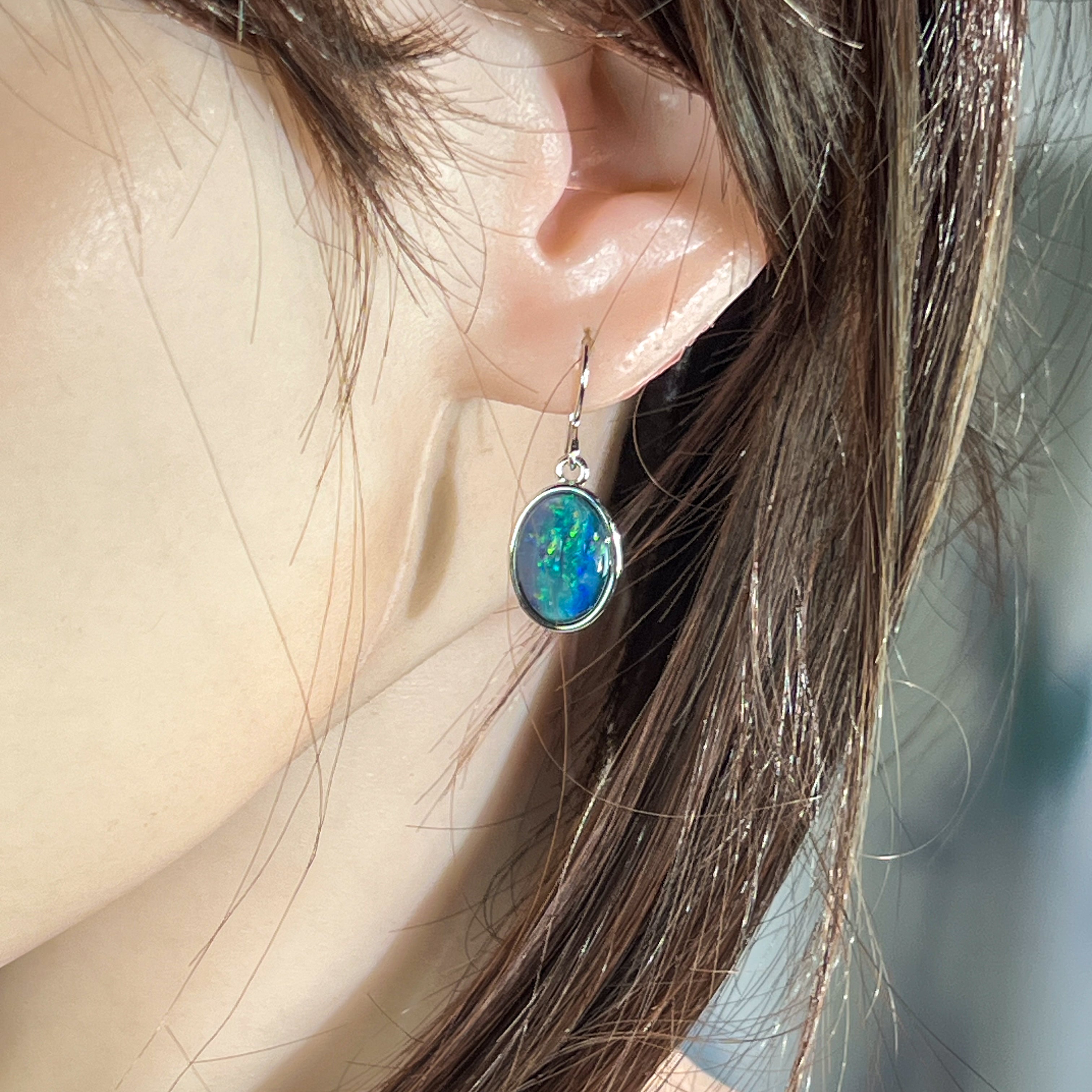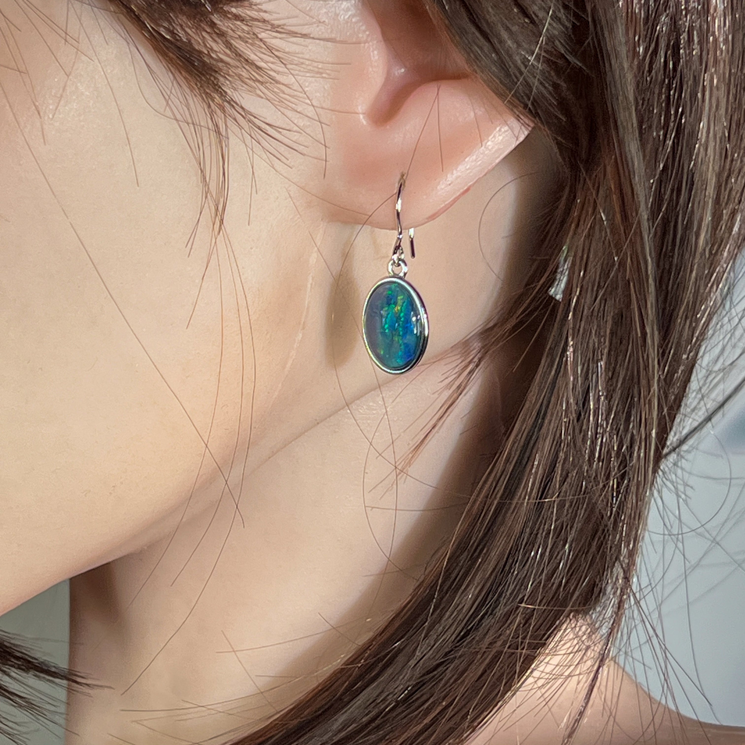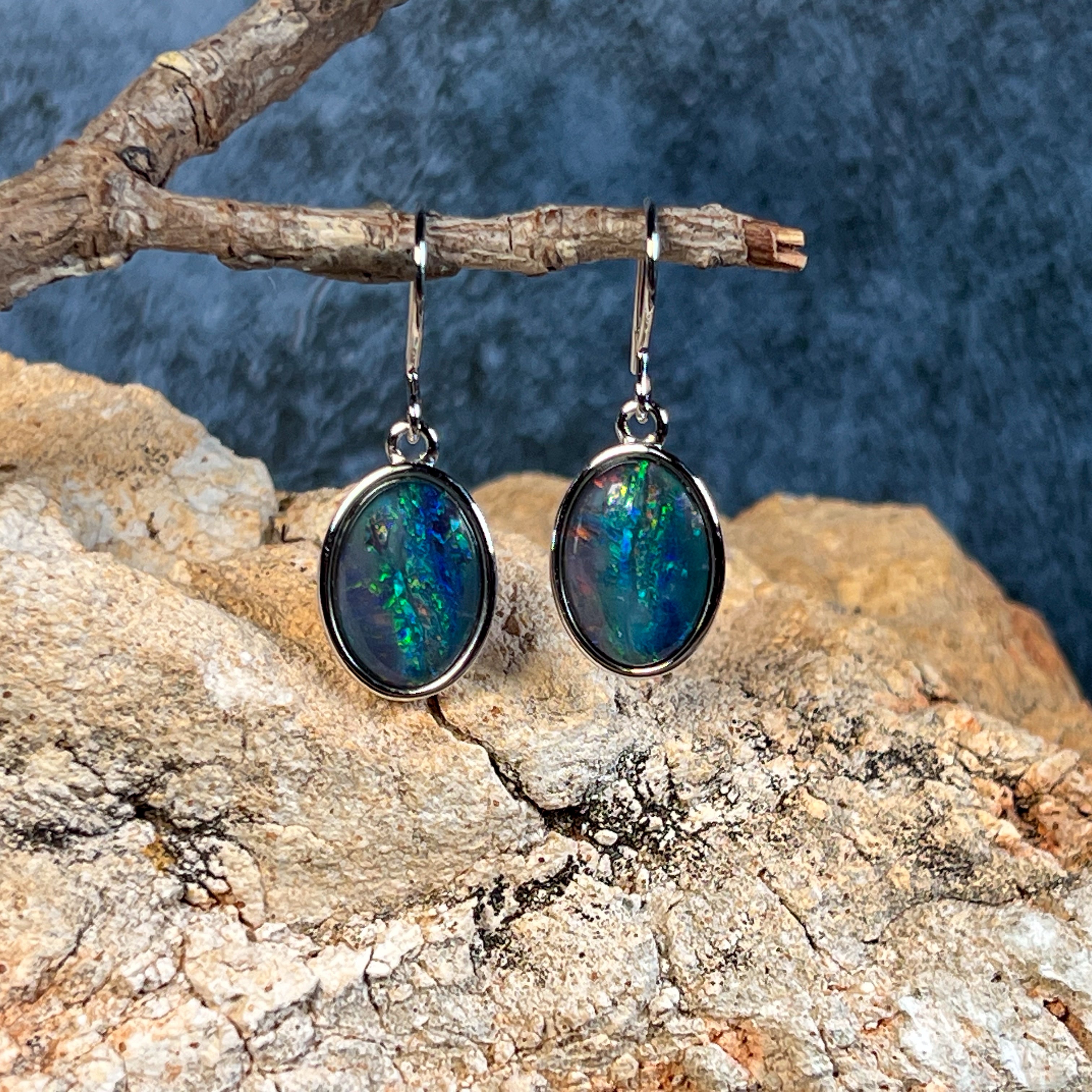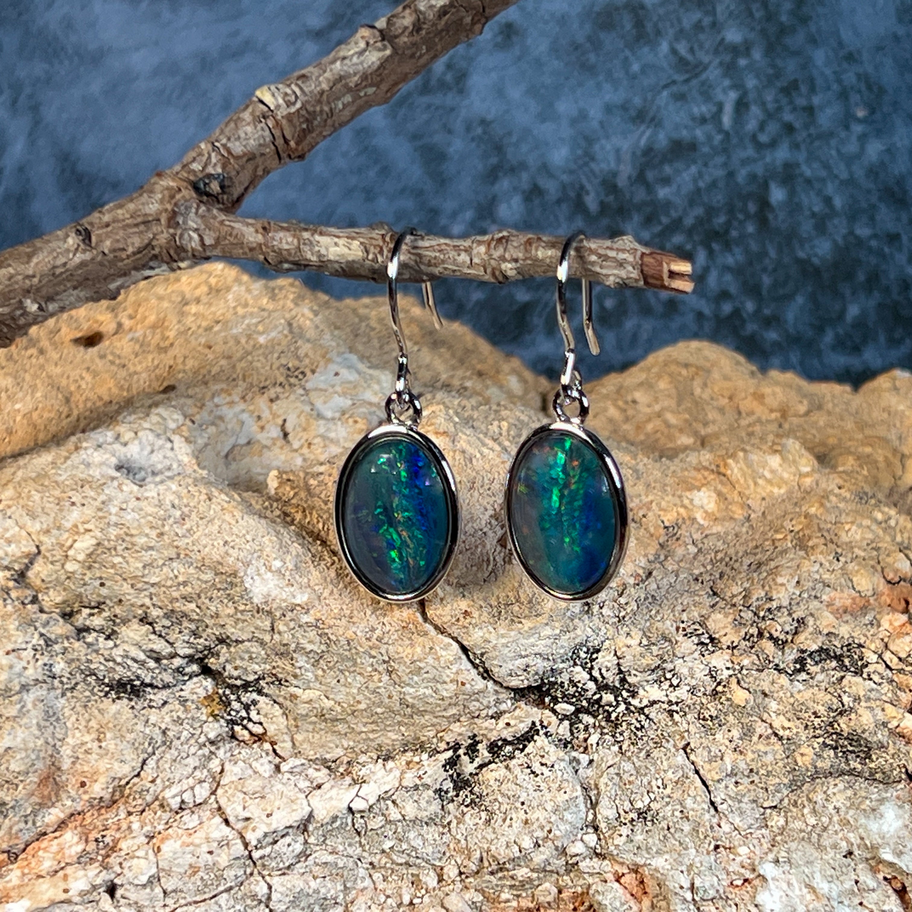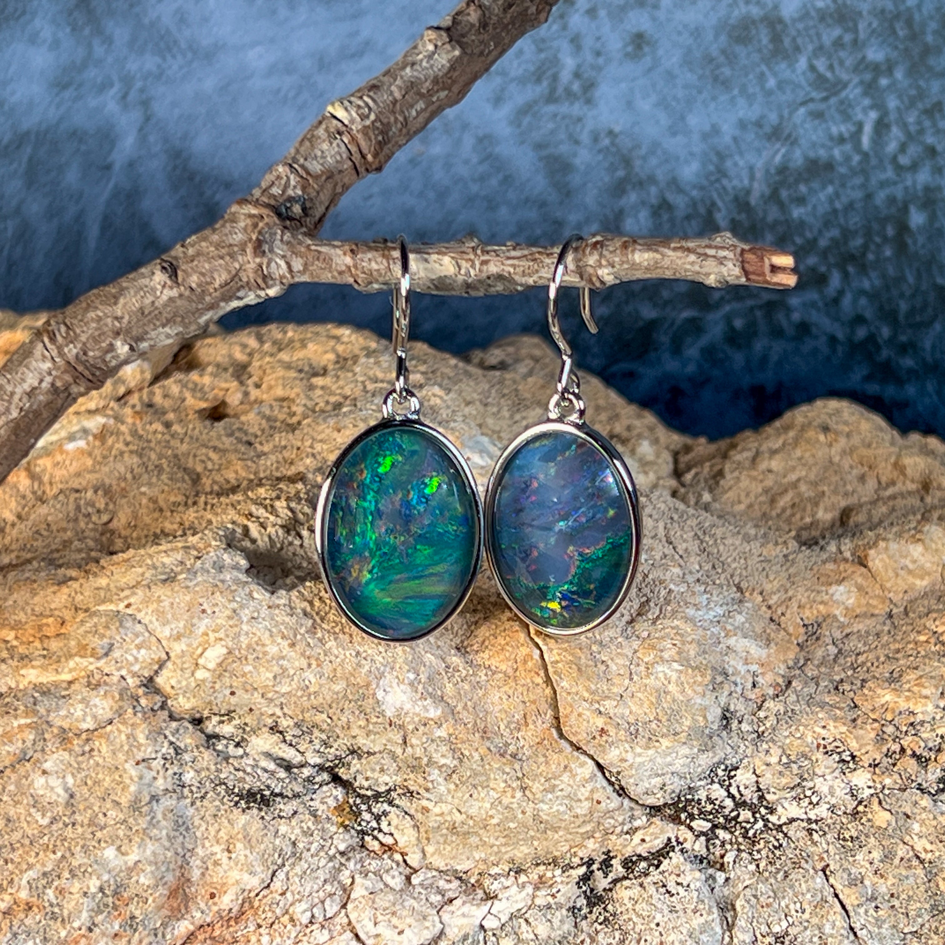 Sterling Silver dangling Opal triplet oval earrings on hooks