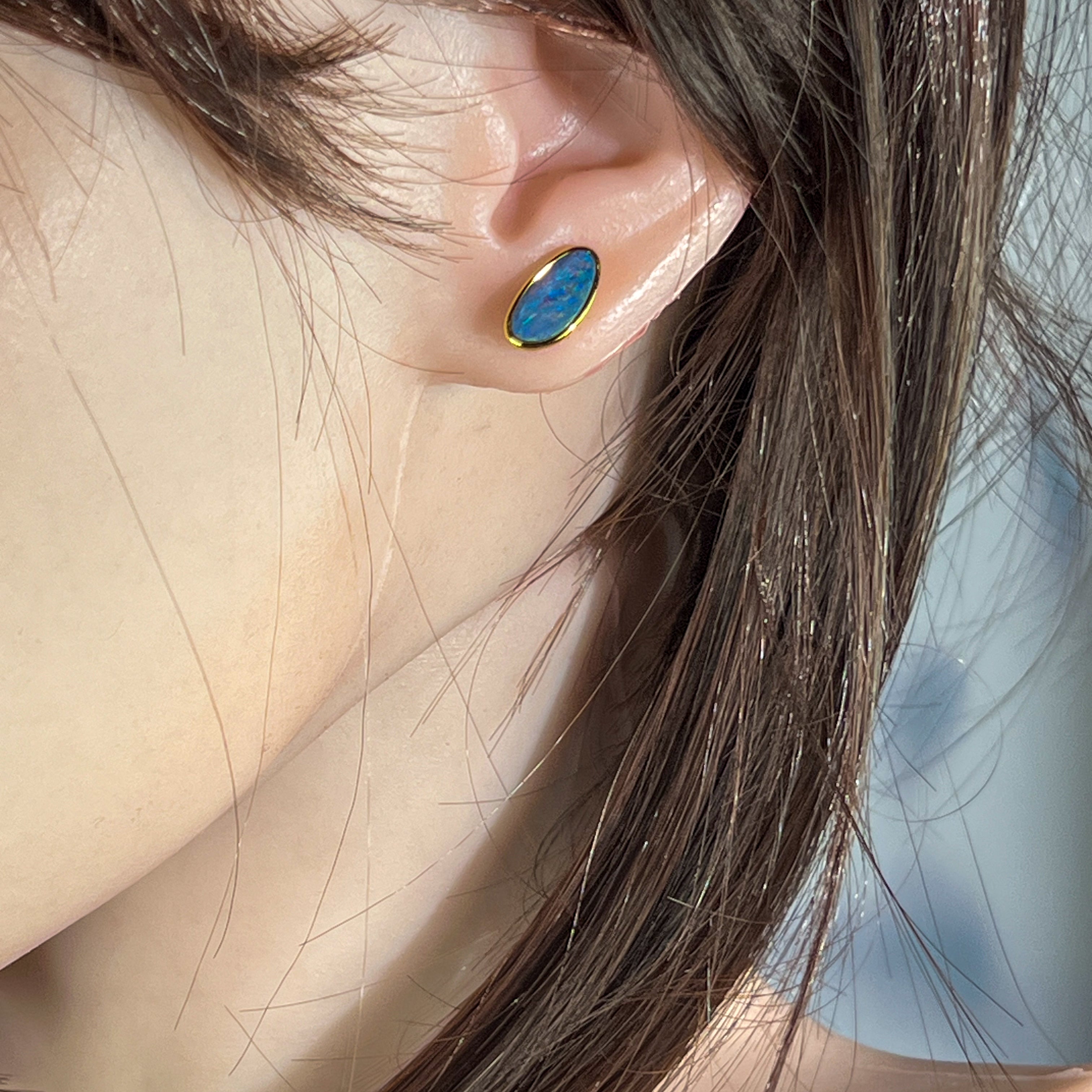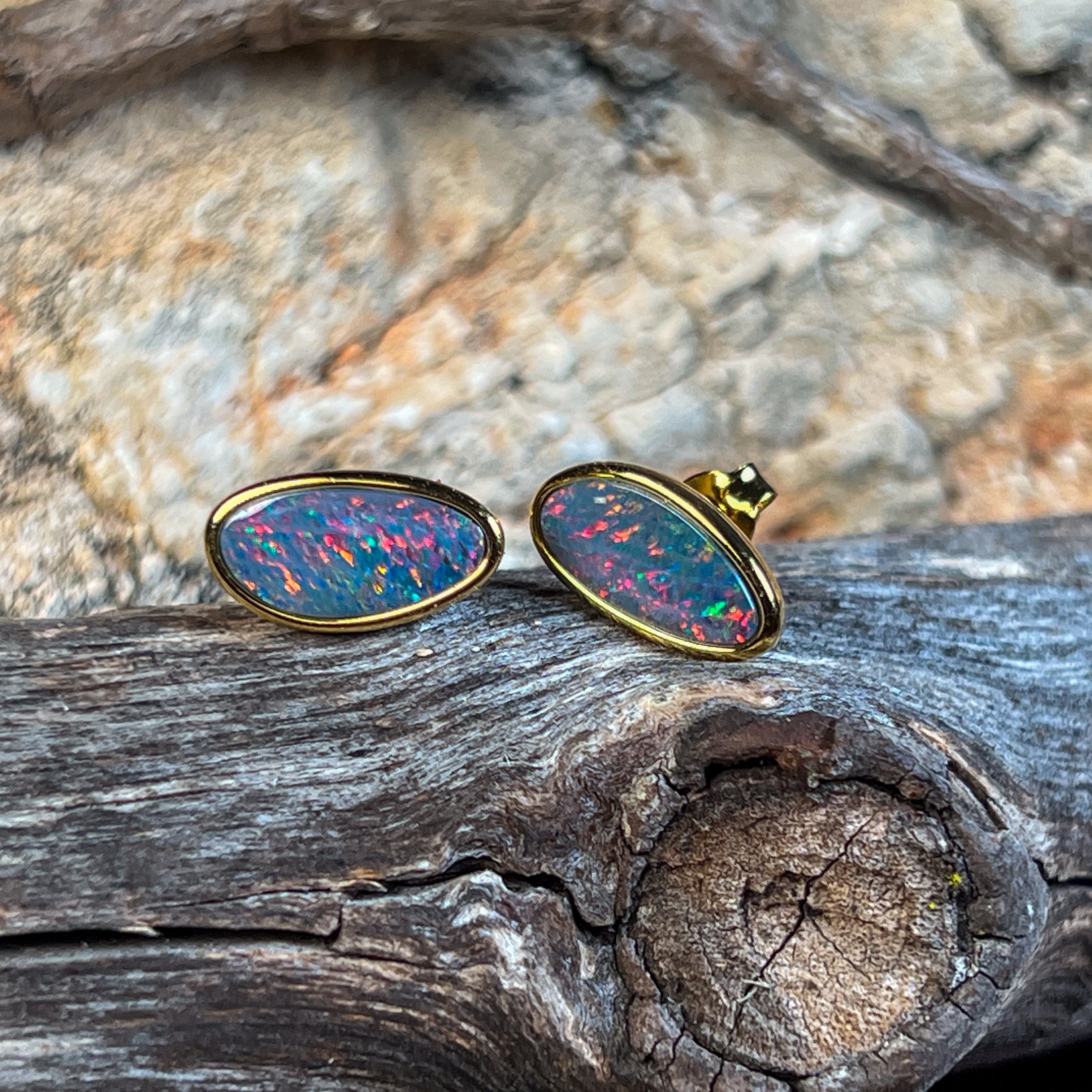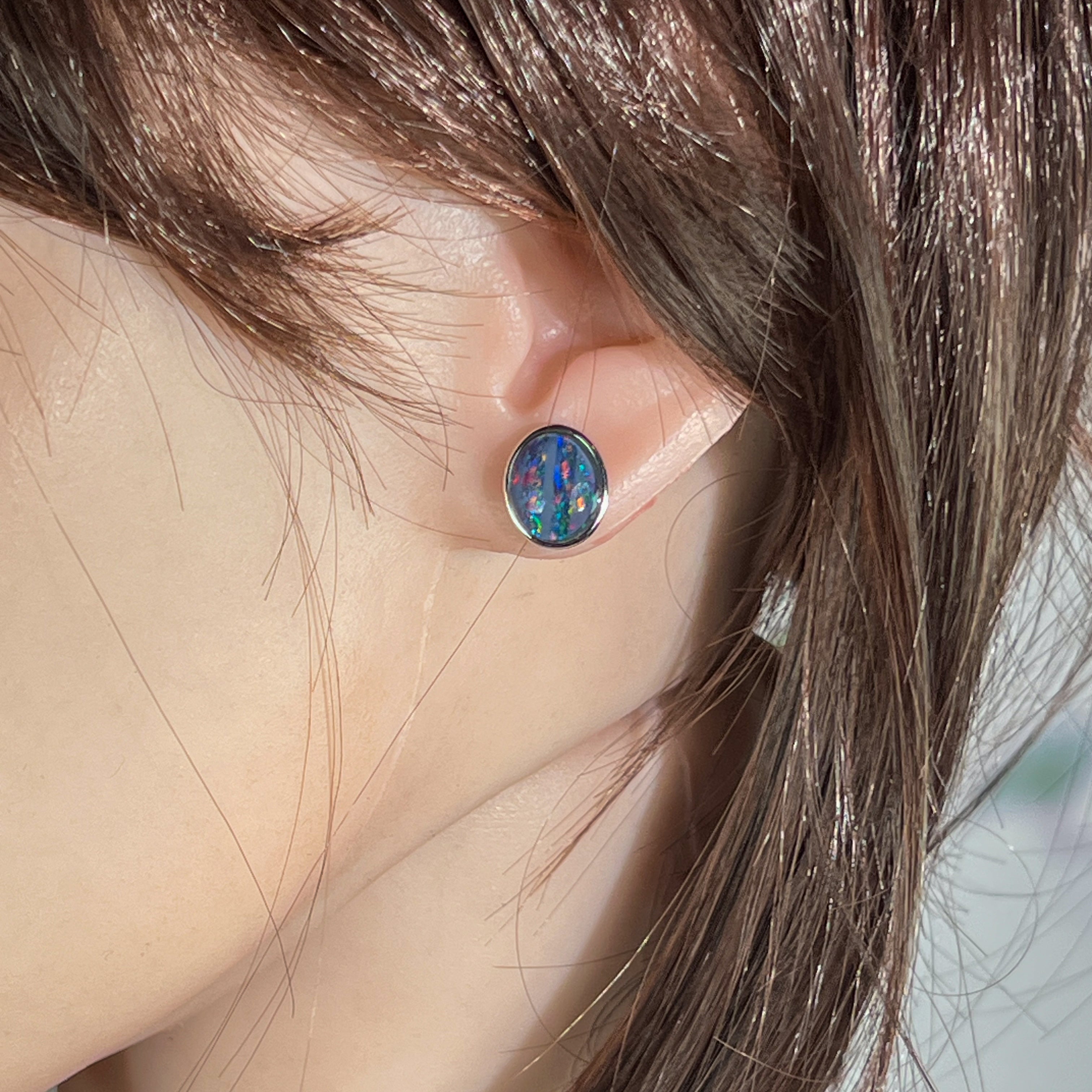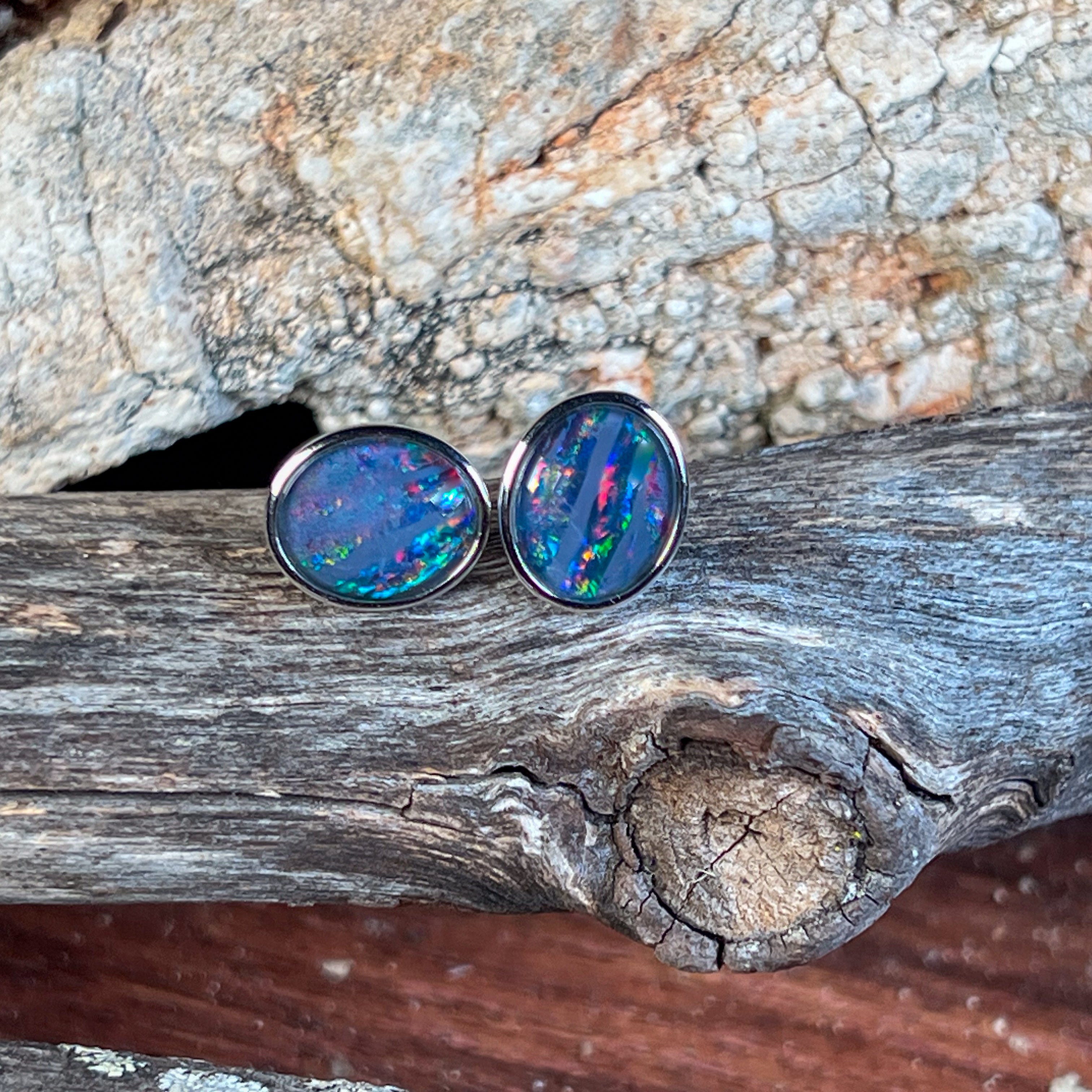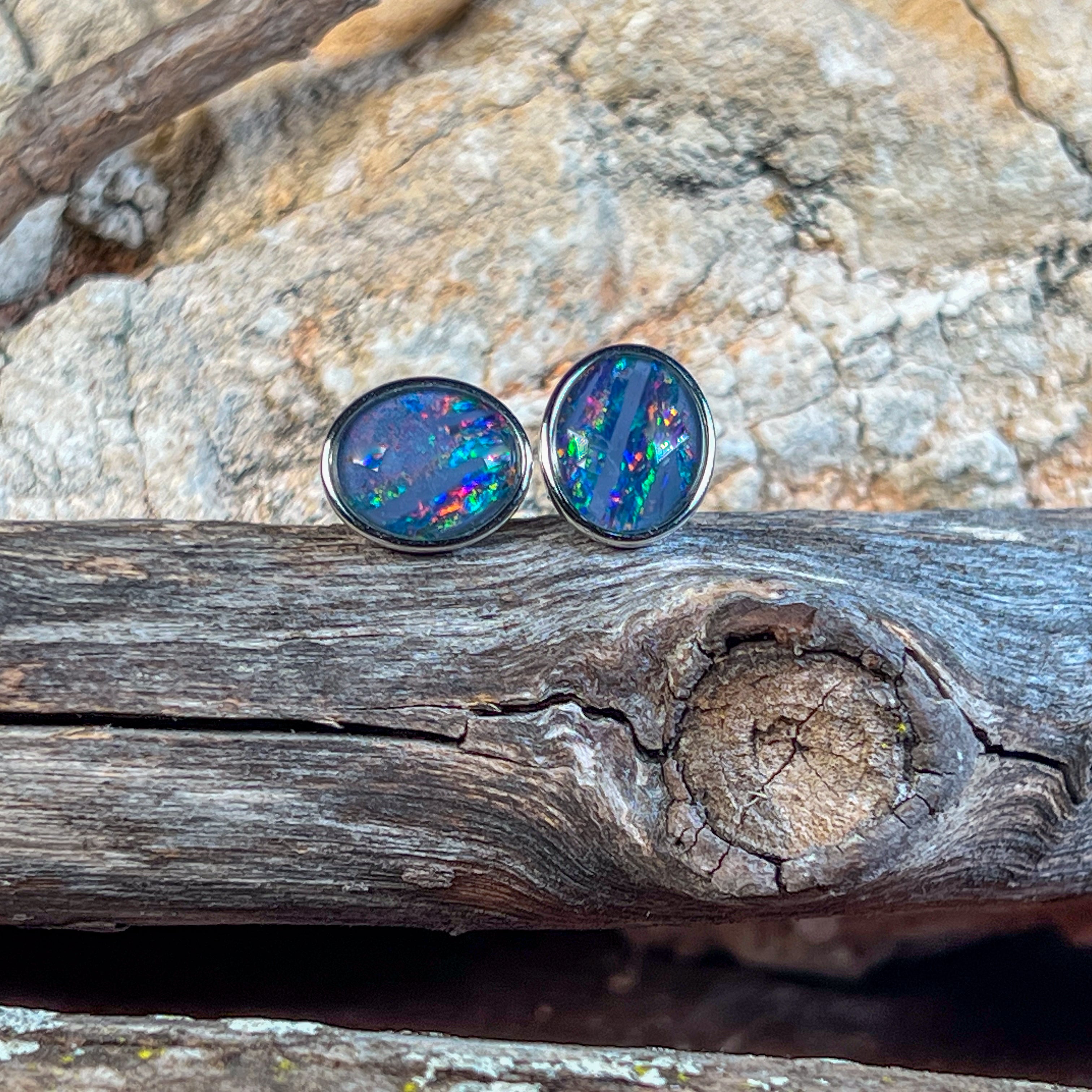 Sterling Silver 12x10mm Opal triplet studs oval shape