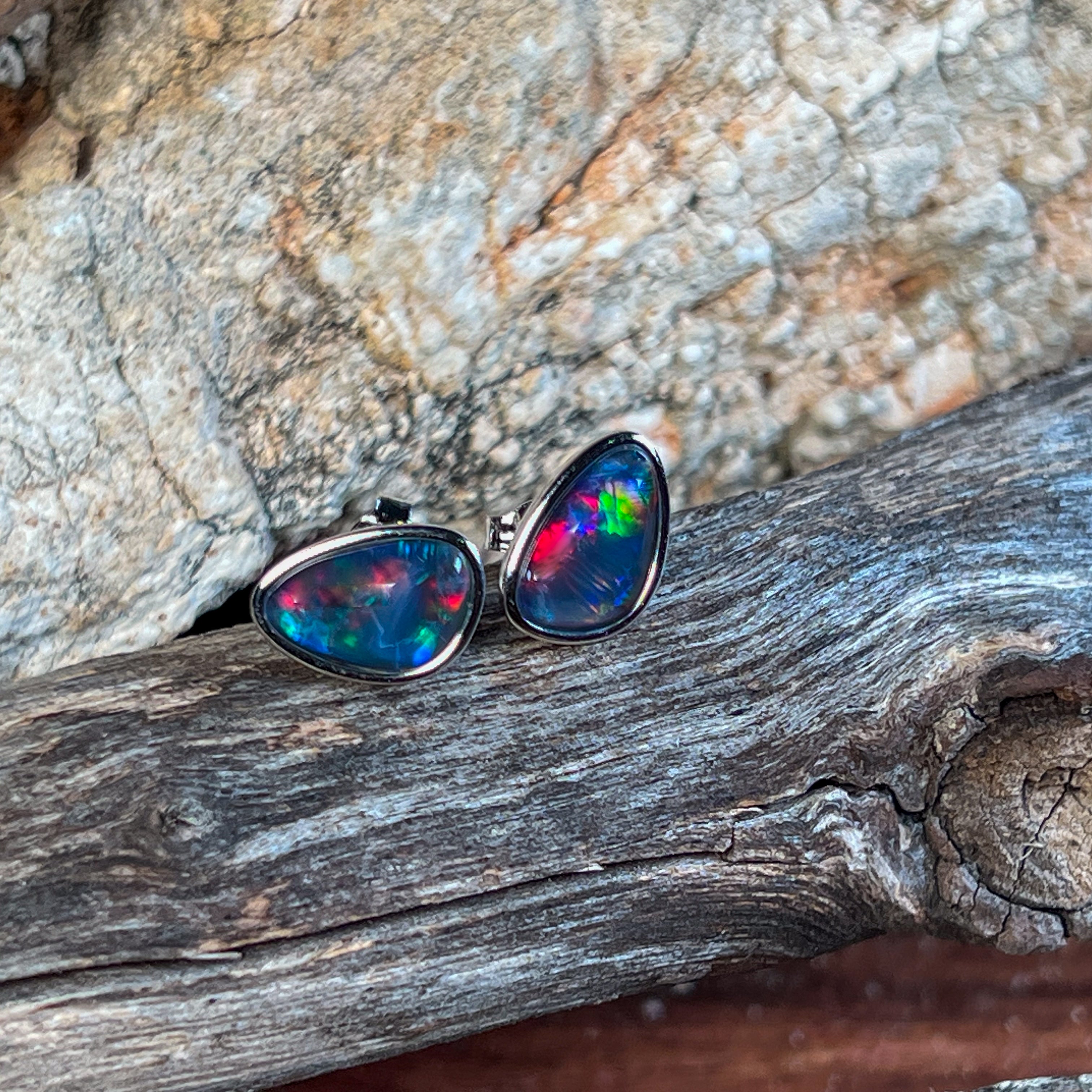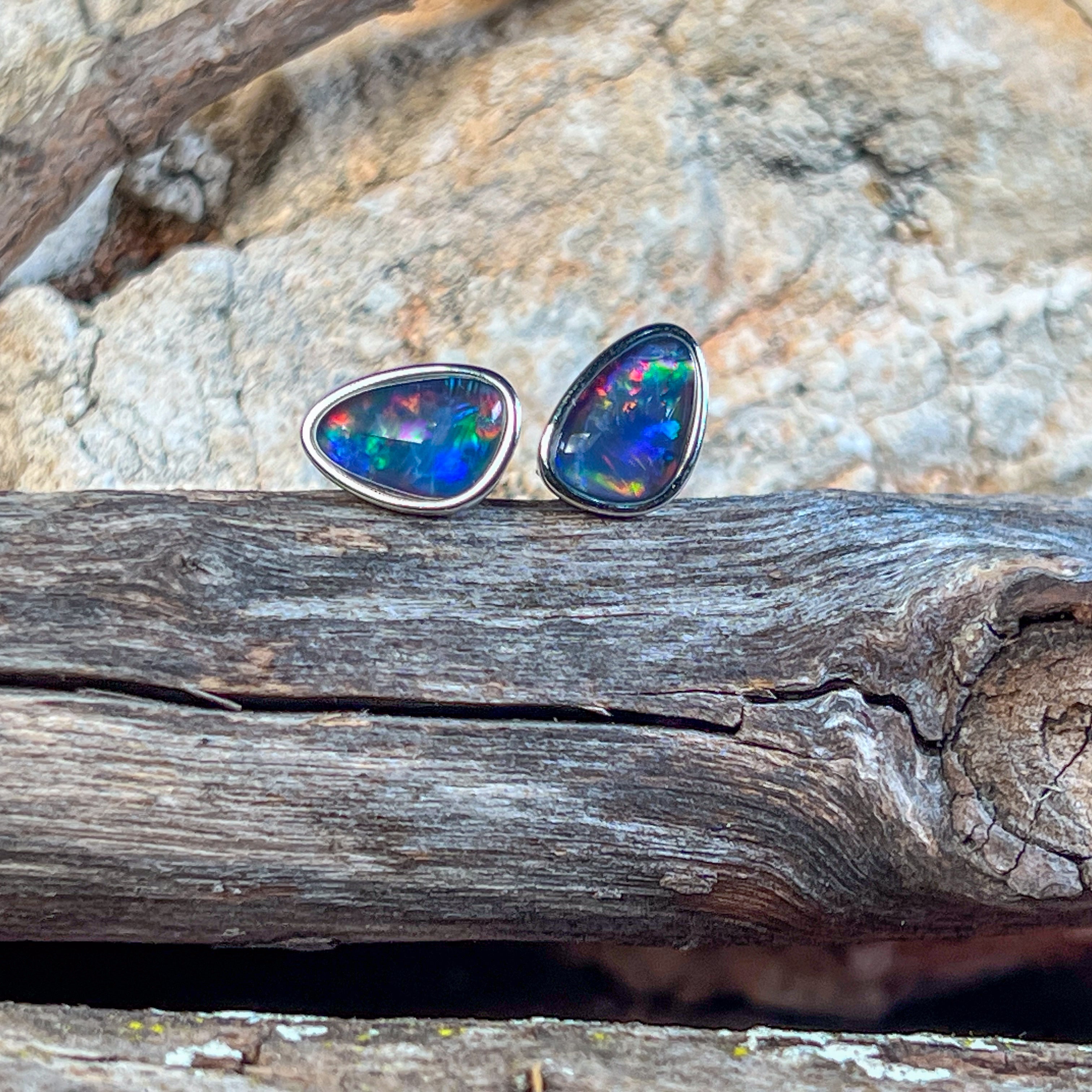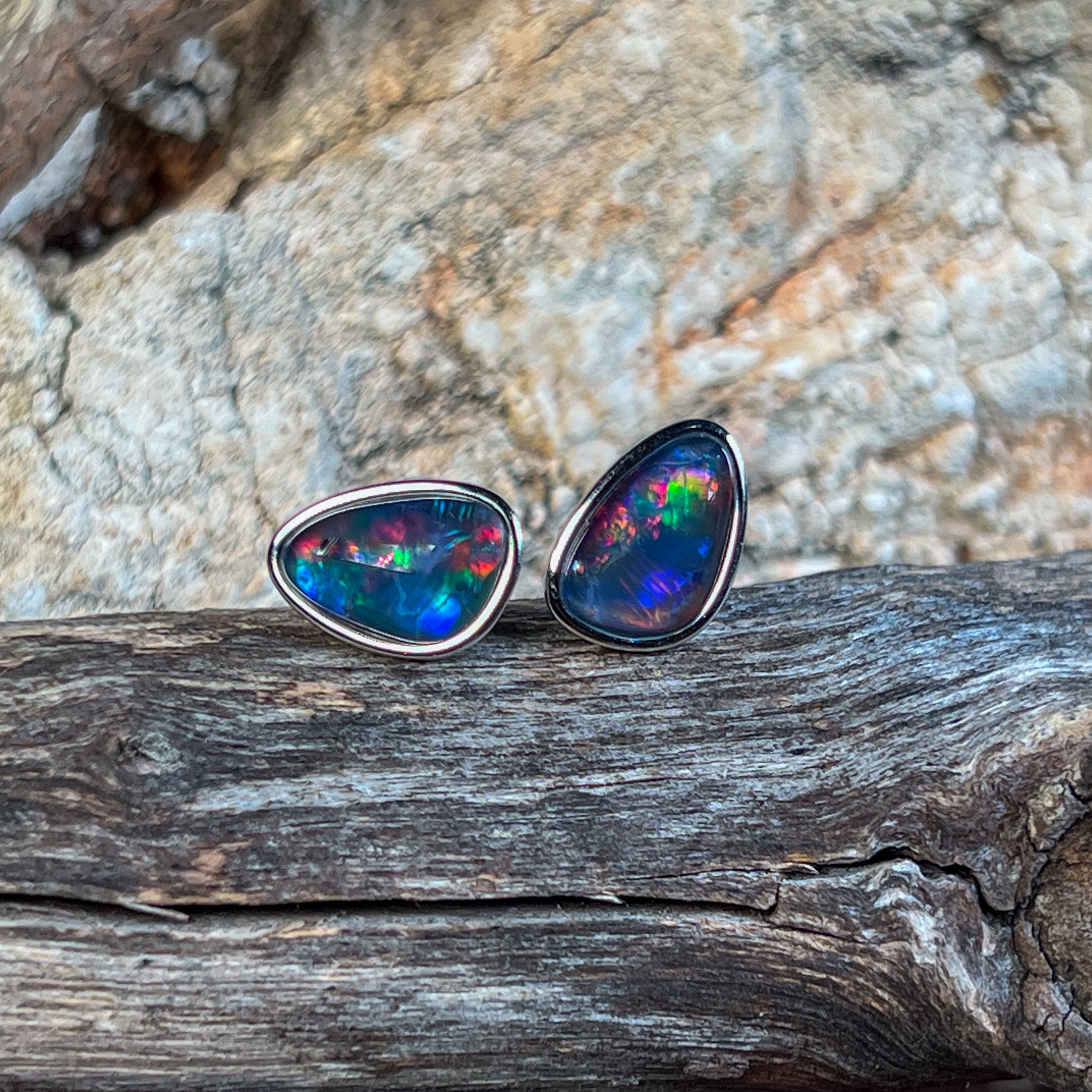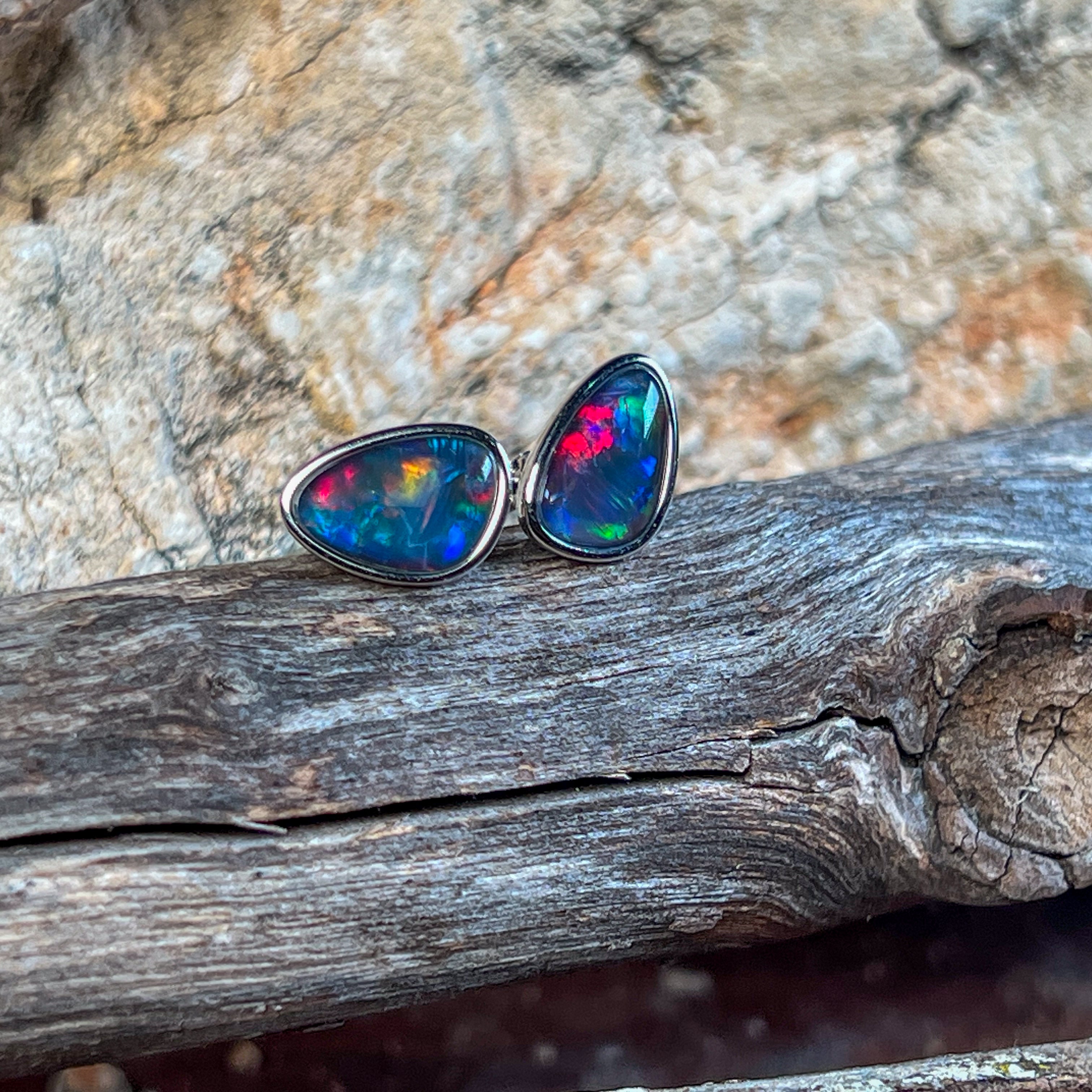 Sterling Silver freeform shape Red Blue Opal triplet studs