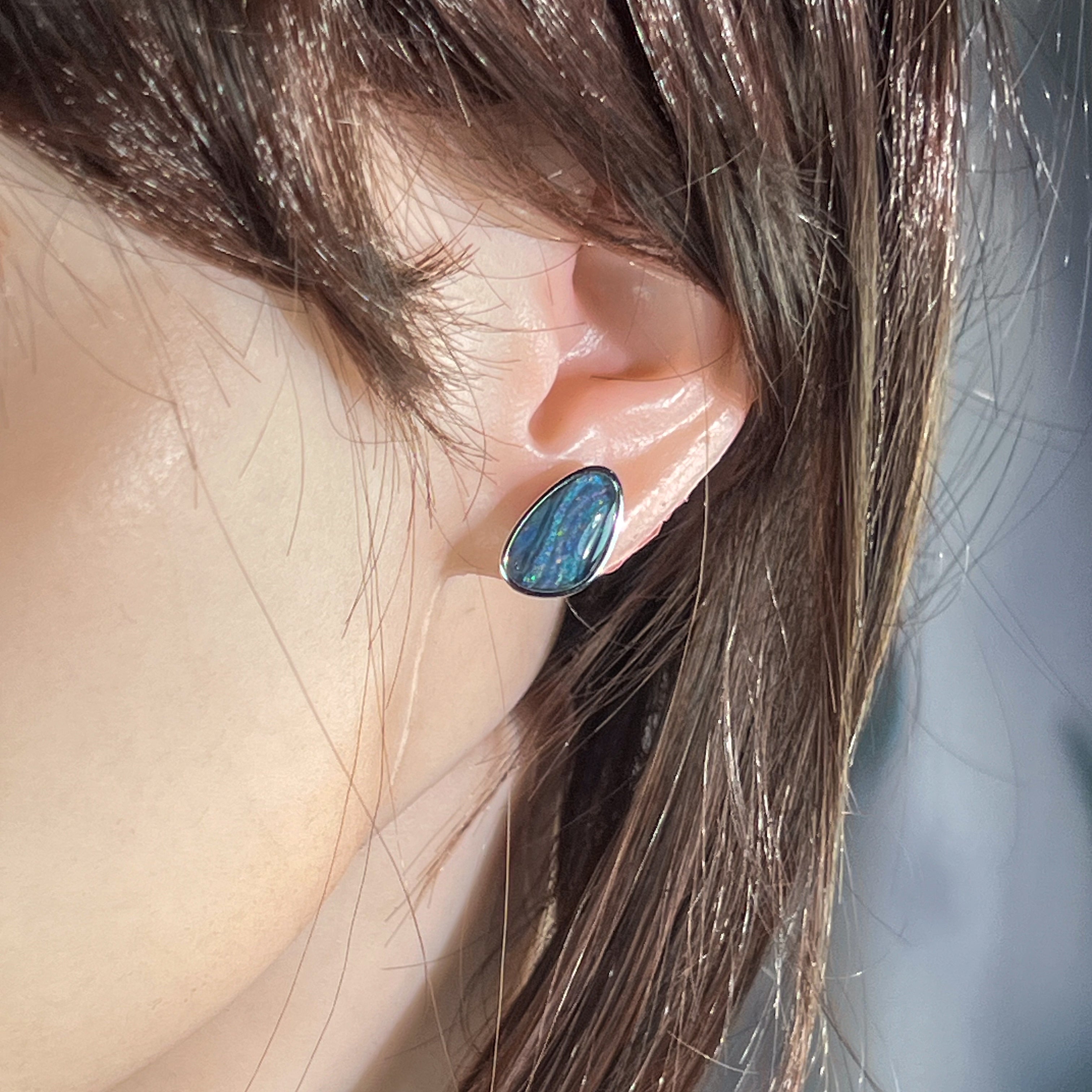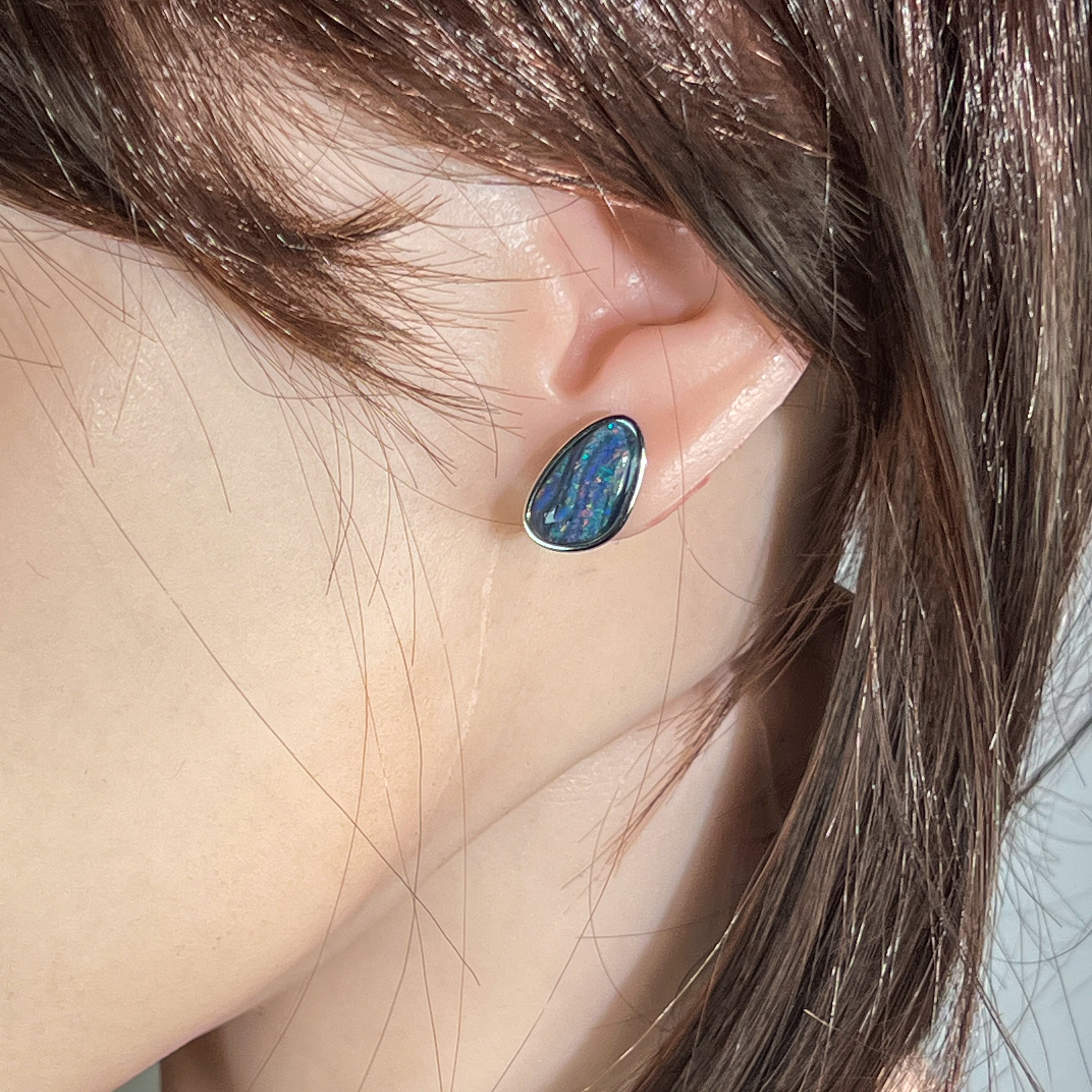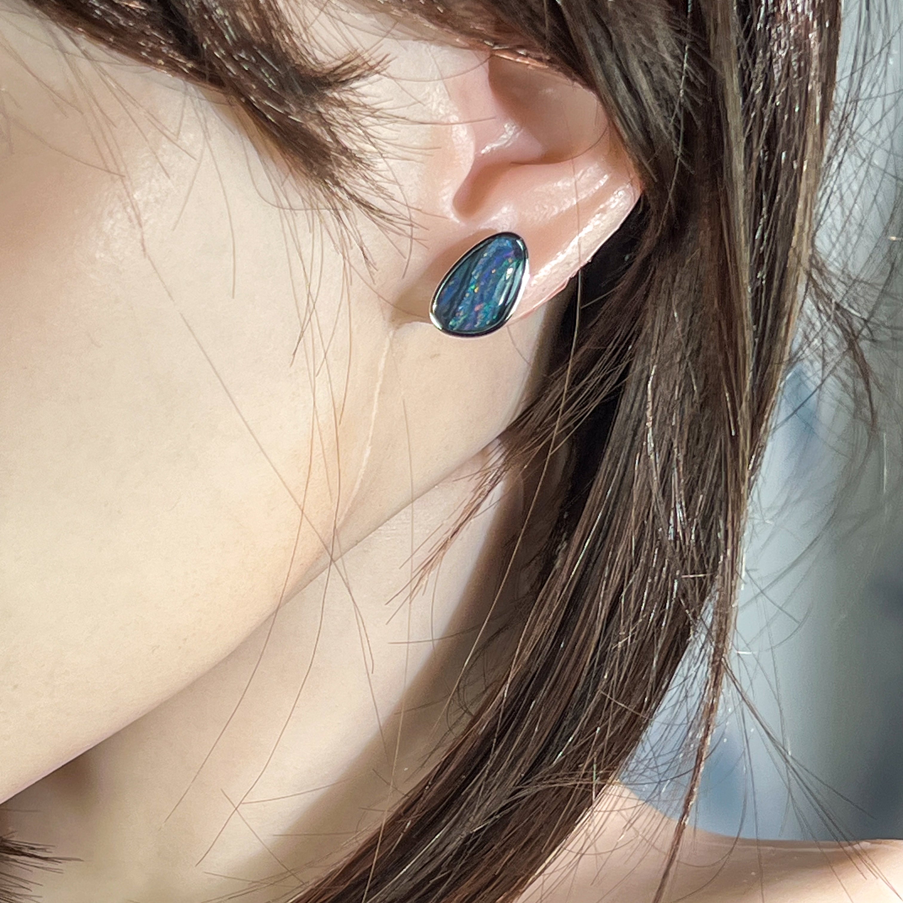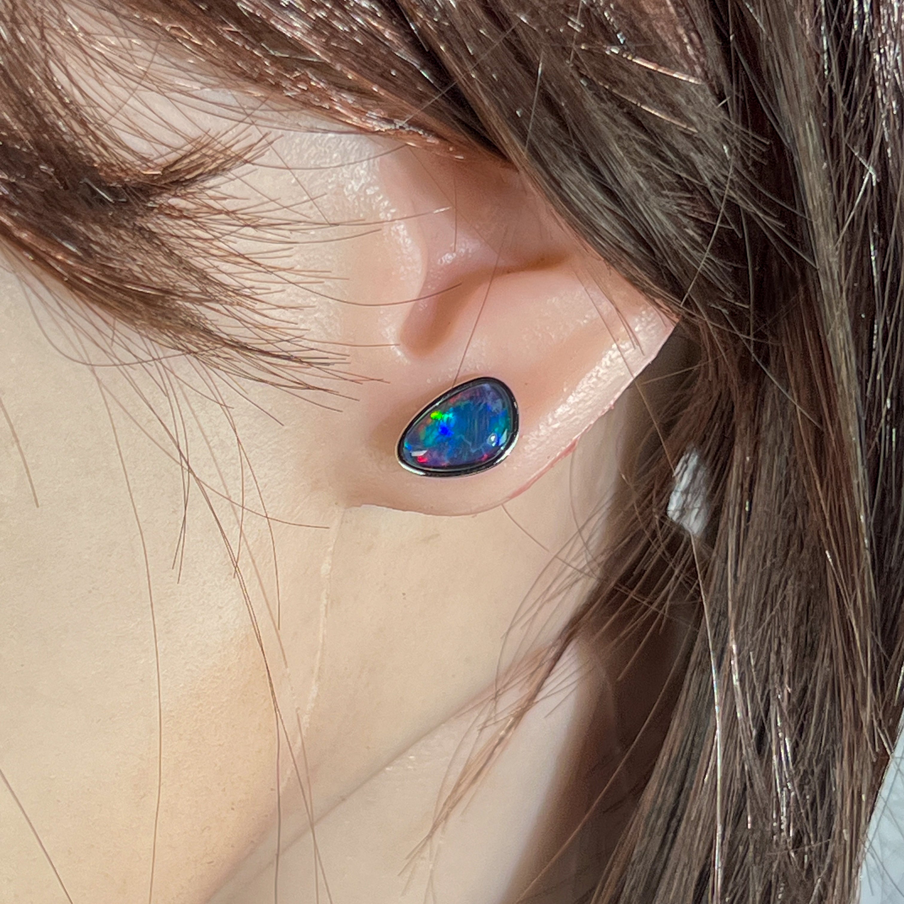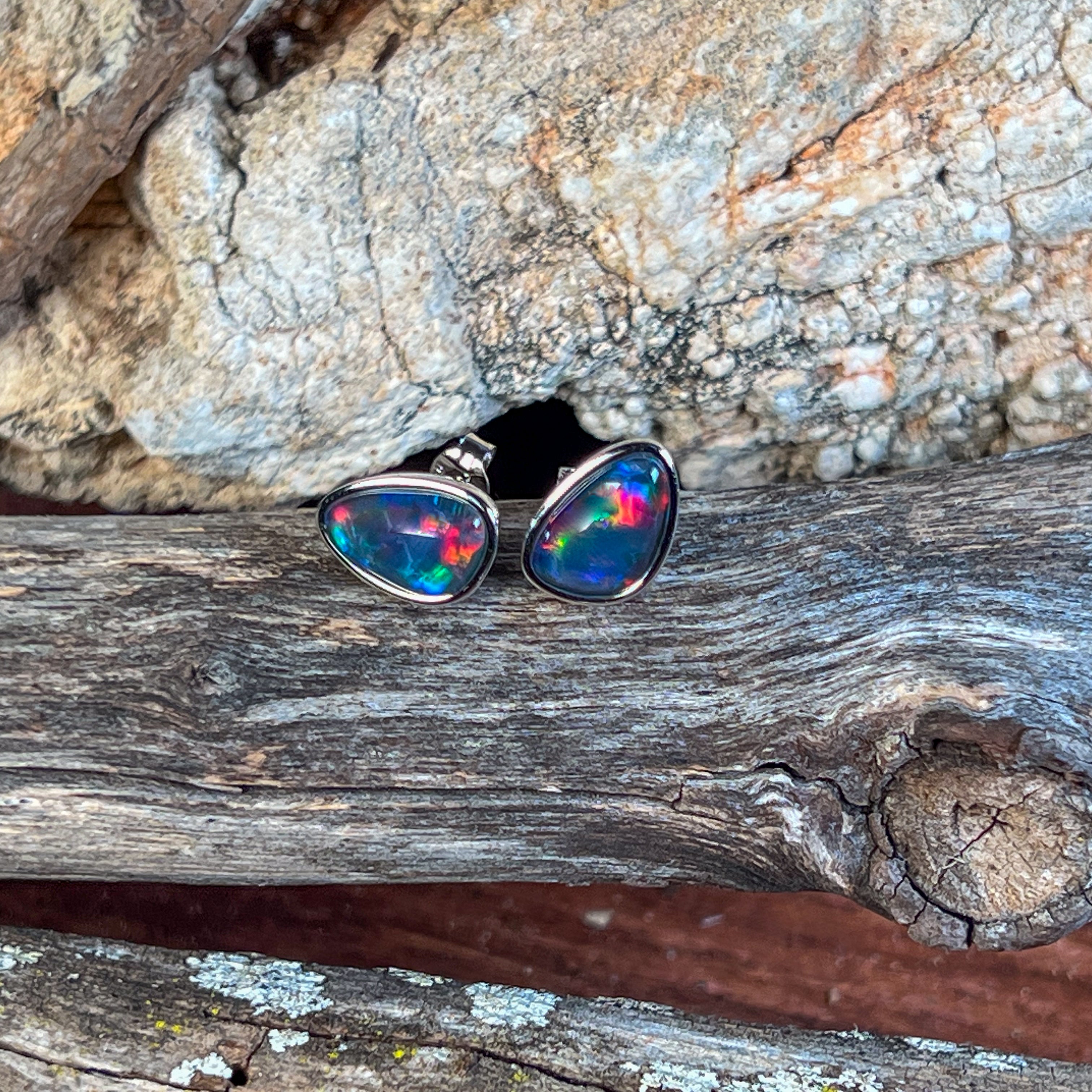 Sterling Silver freeform shape Red Blue Opal triplet studs