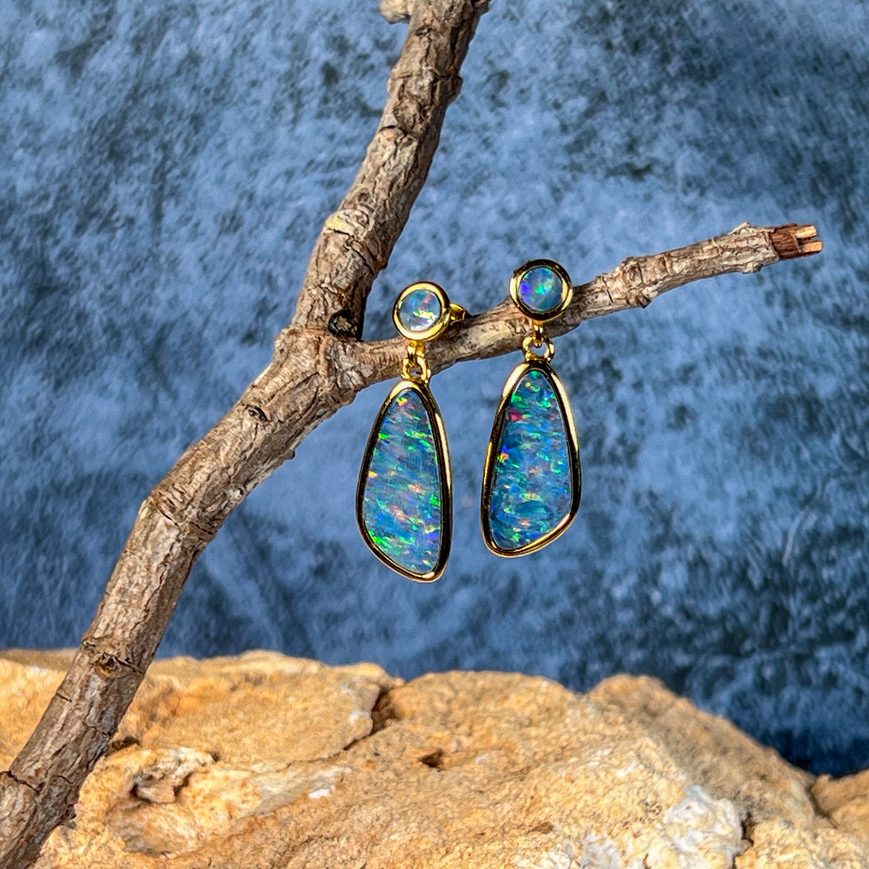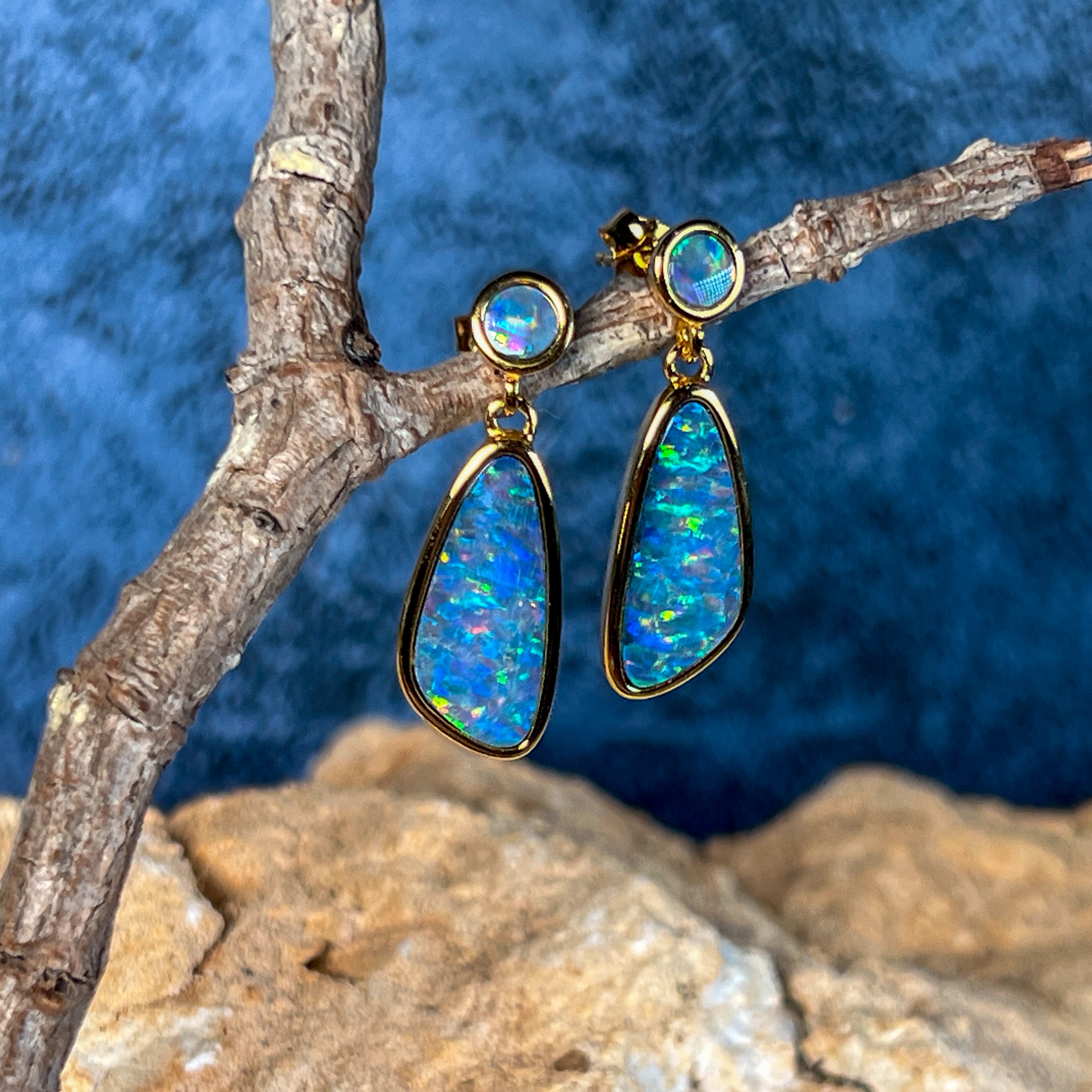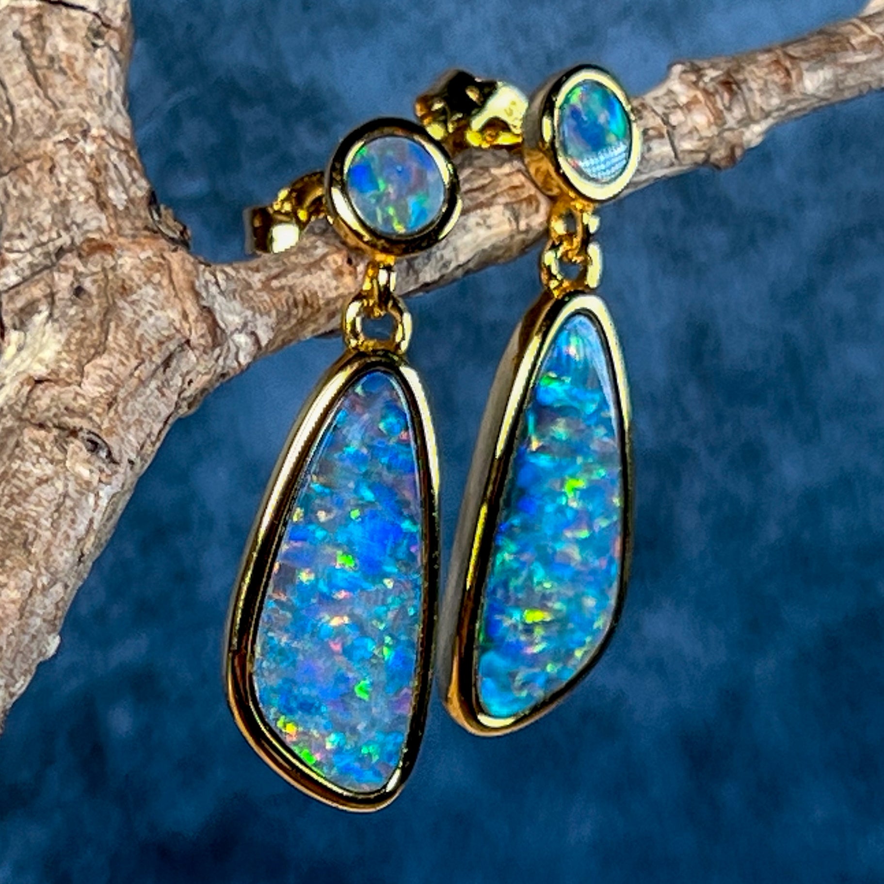 Gold Plated Silver dangling freeform Opal doublet earrings