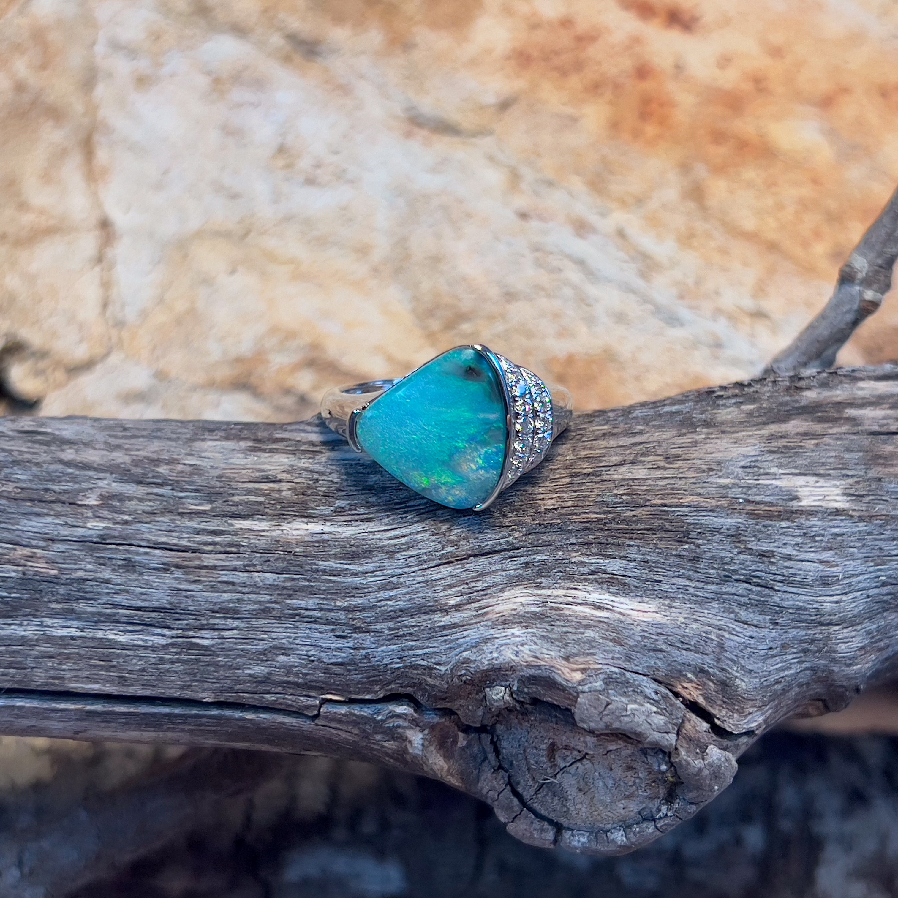 14kt White Gold Boulder Opal 3.9ct and diamond ring