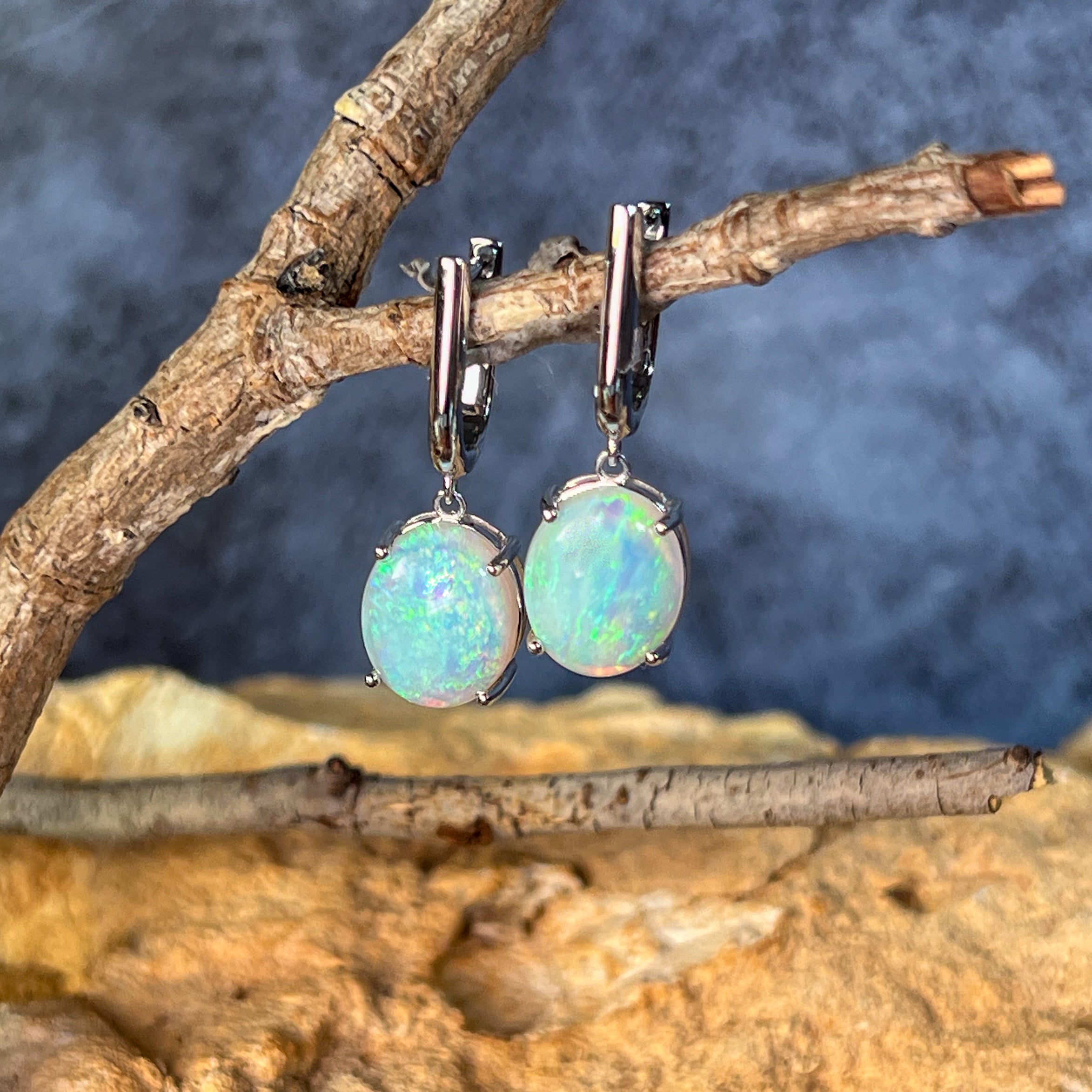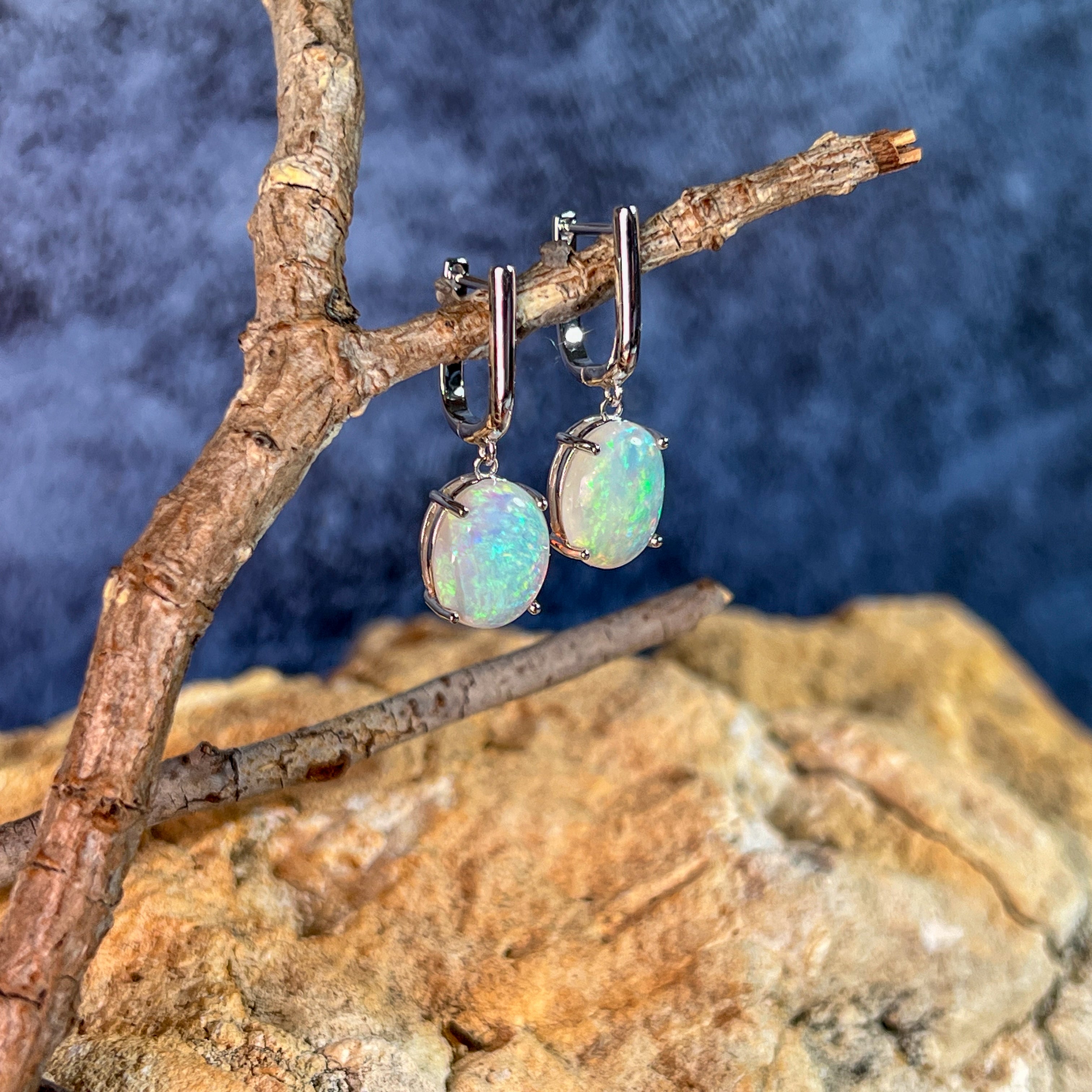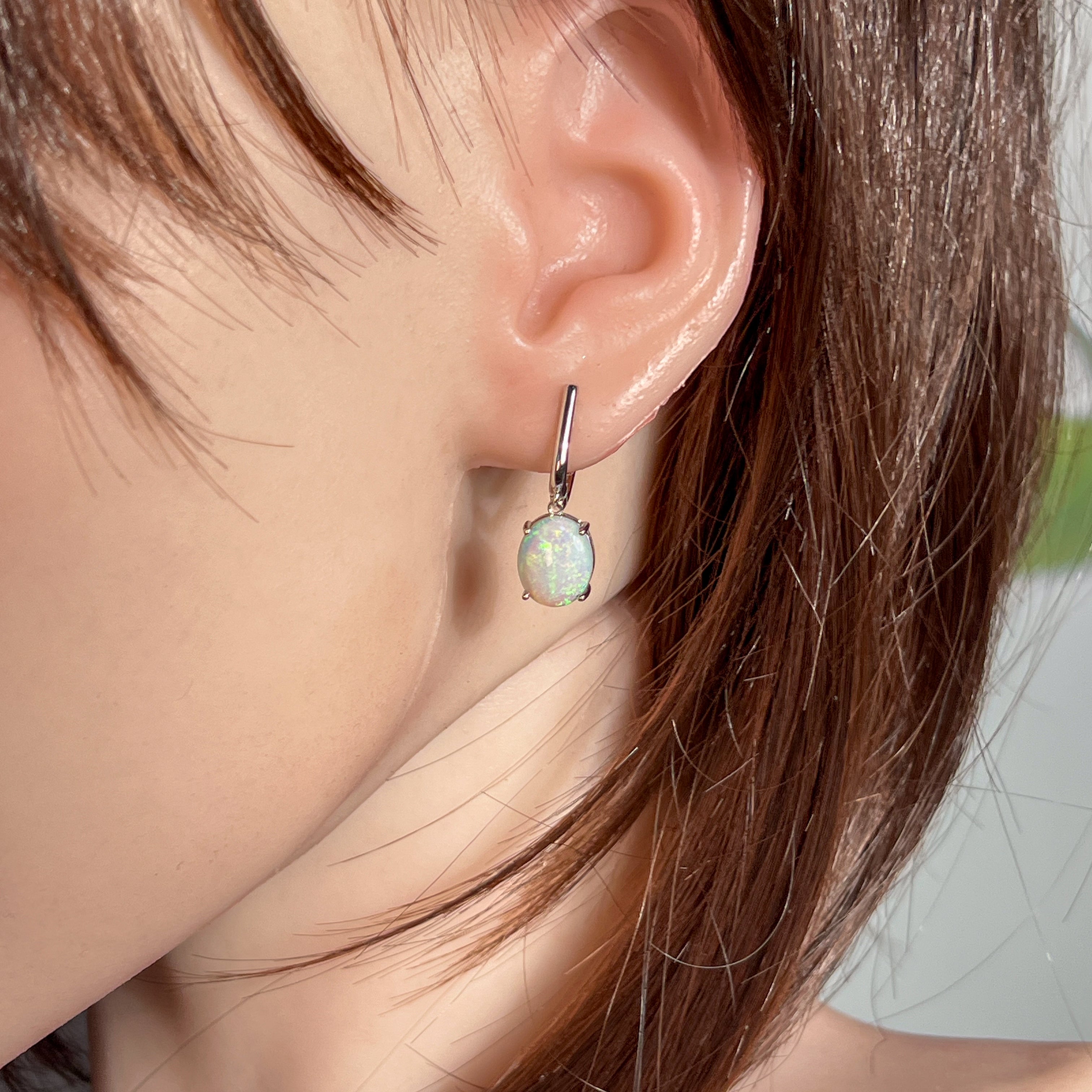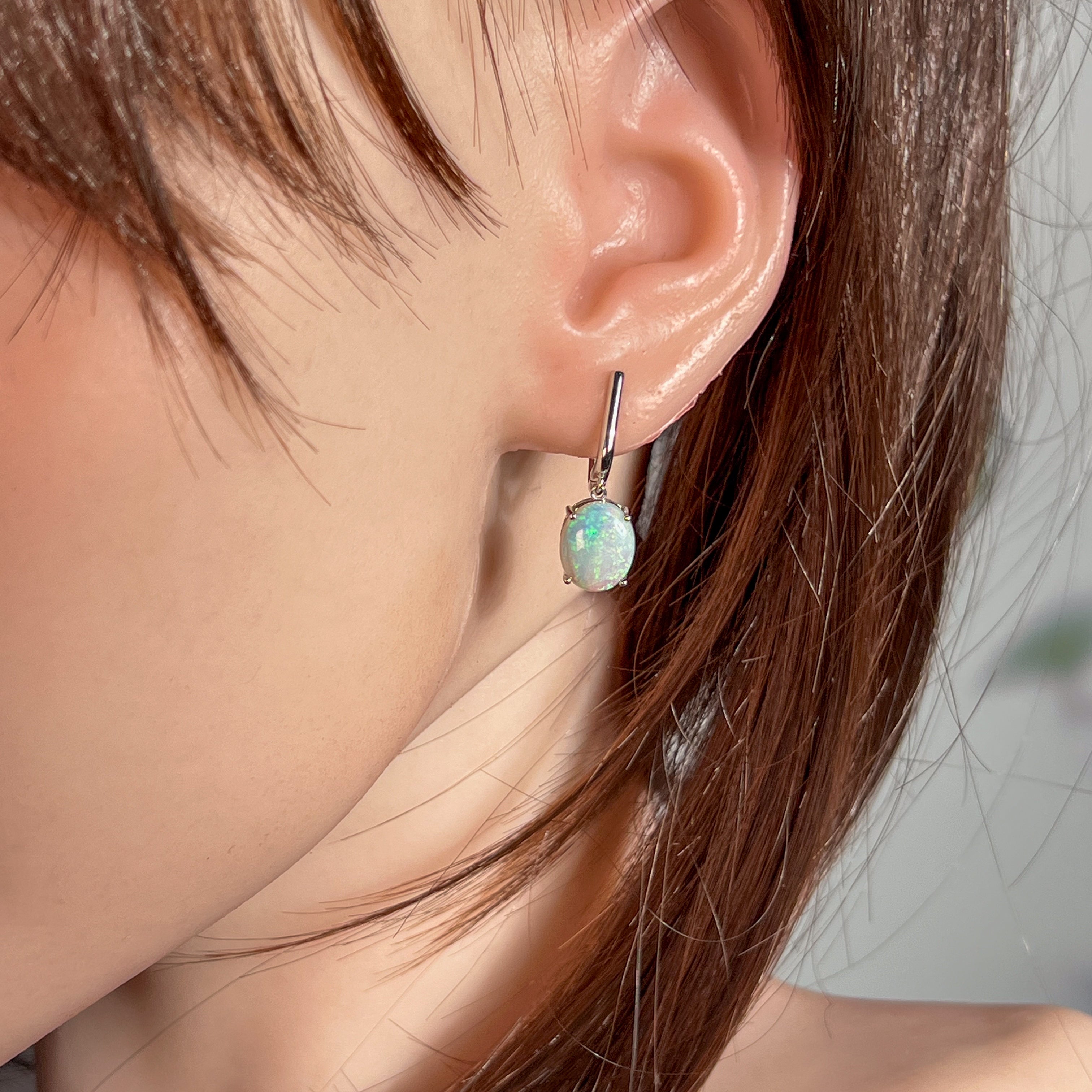14kt White gold Huggie U-shape dangling Crystal Opal 3.97ct earrings