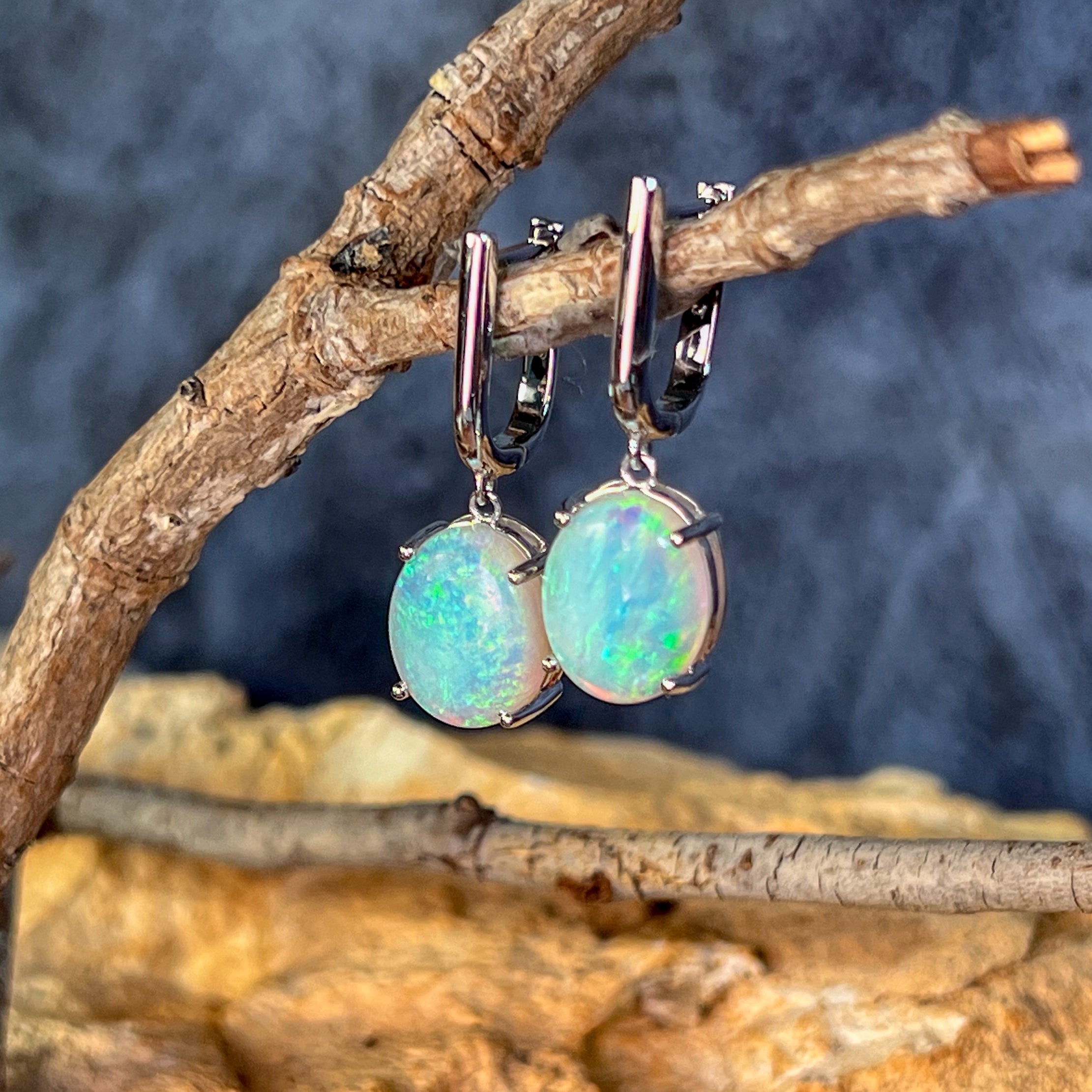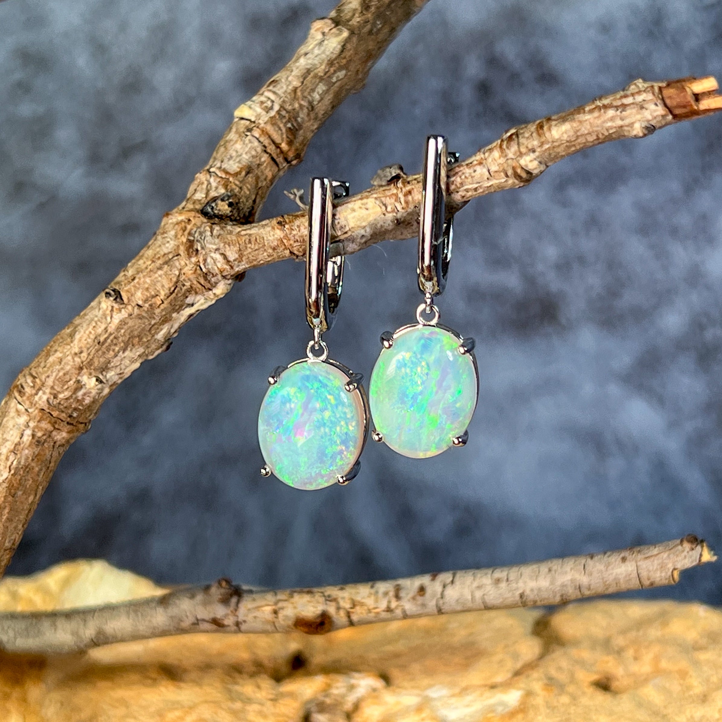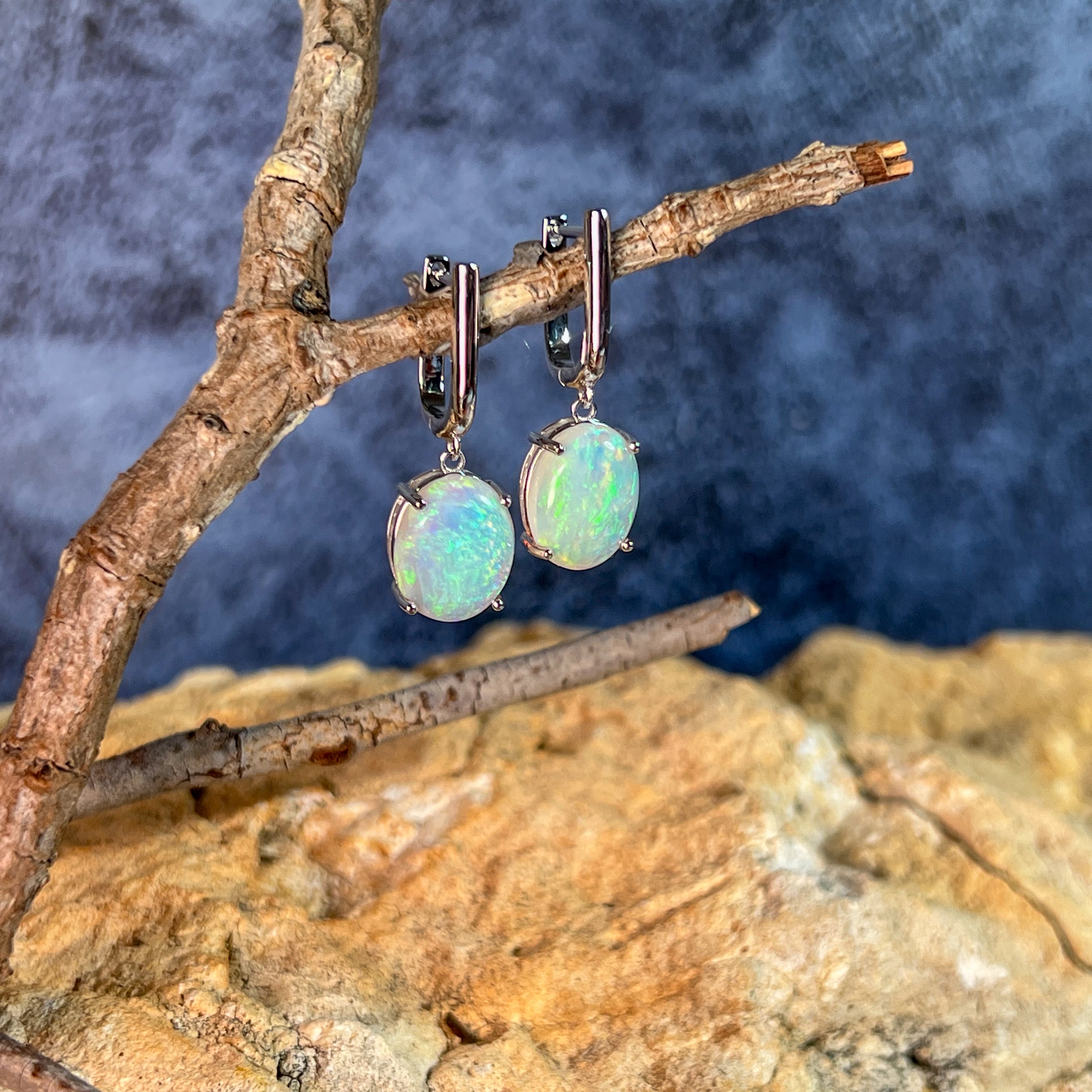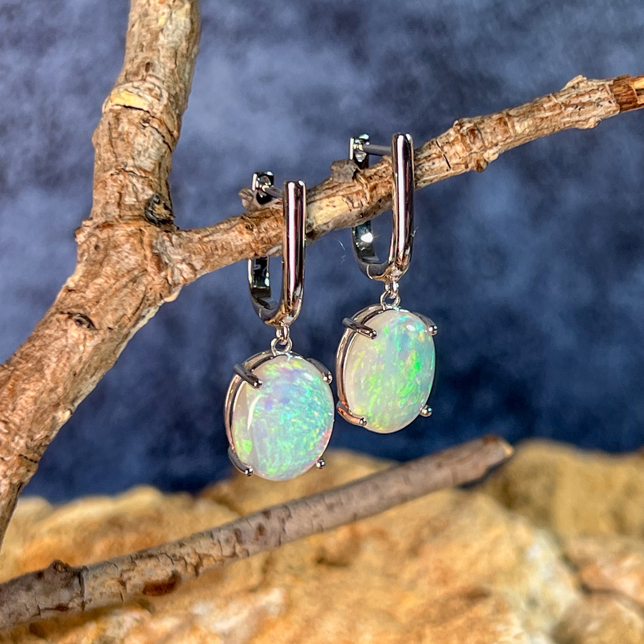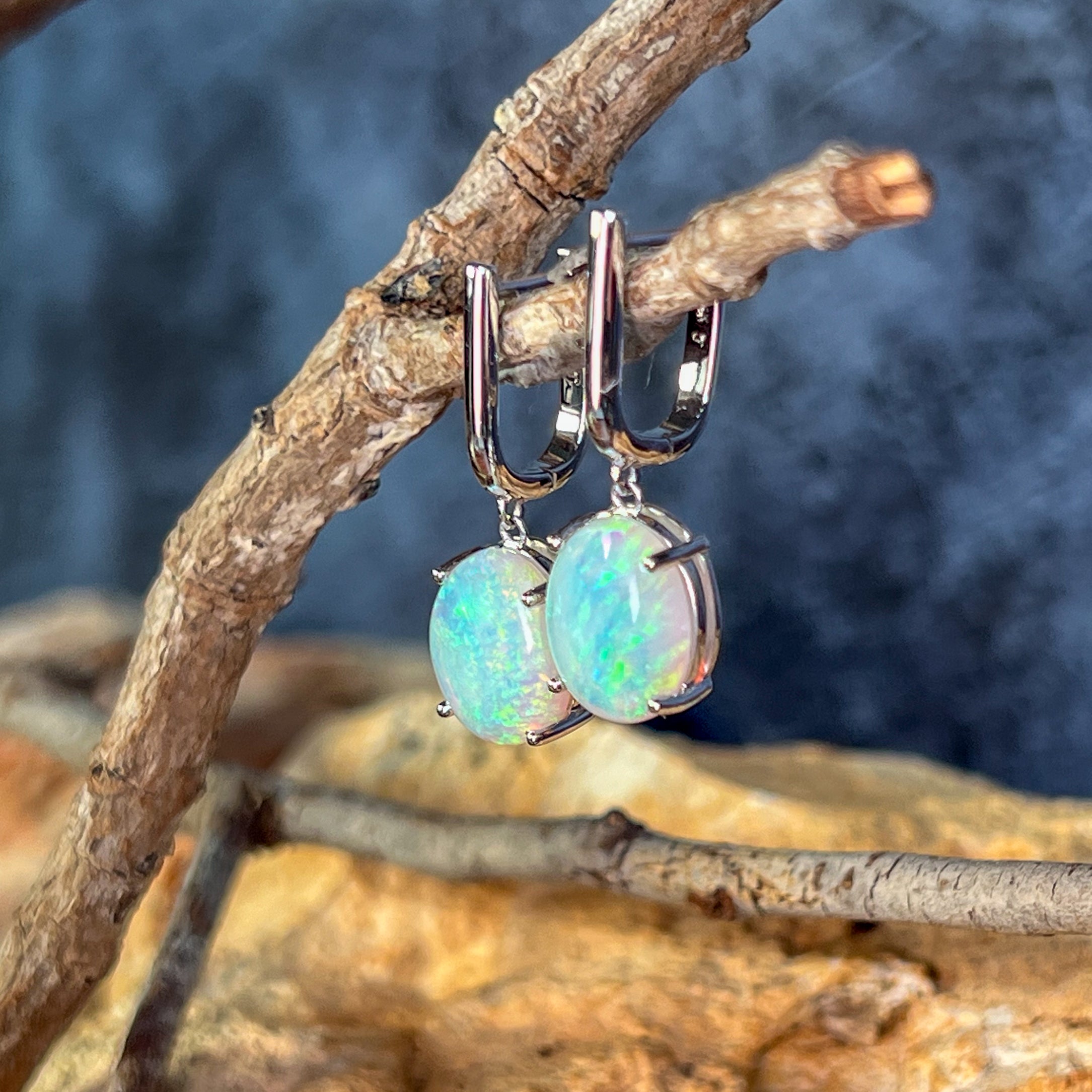 14kt White gold Huggie U-shape dangling Crystal Opal 3.97ct earrings