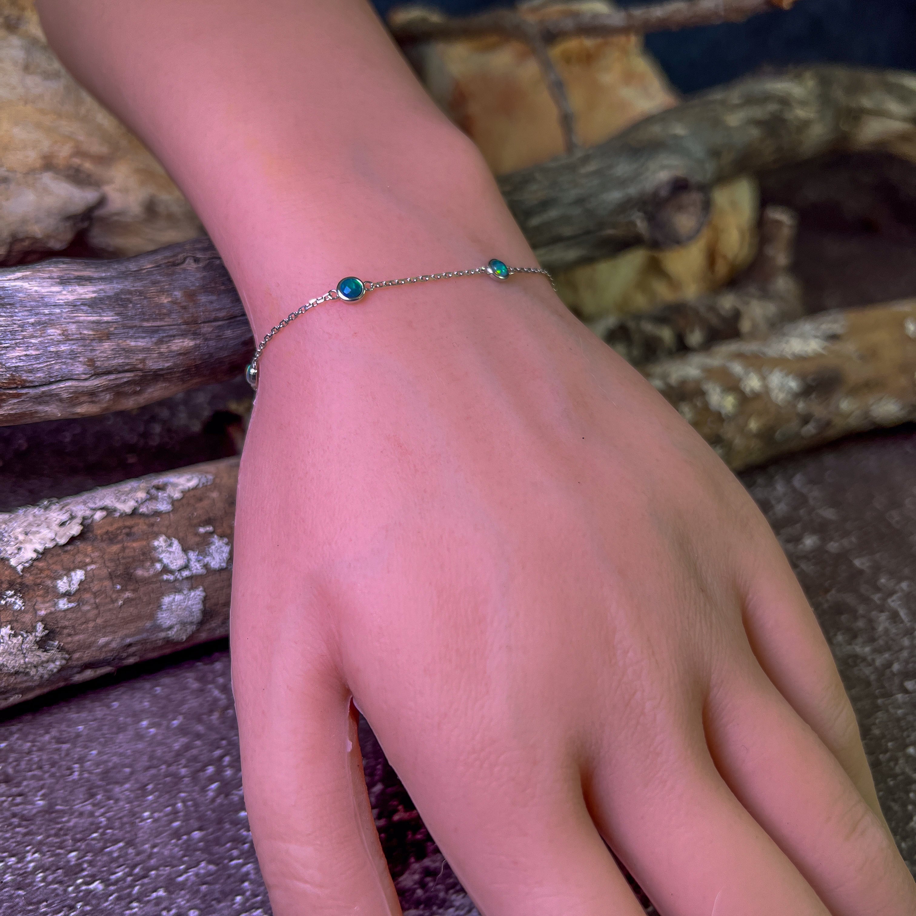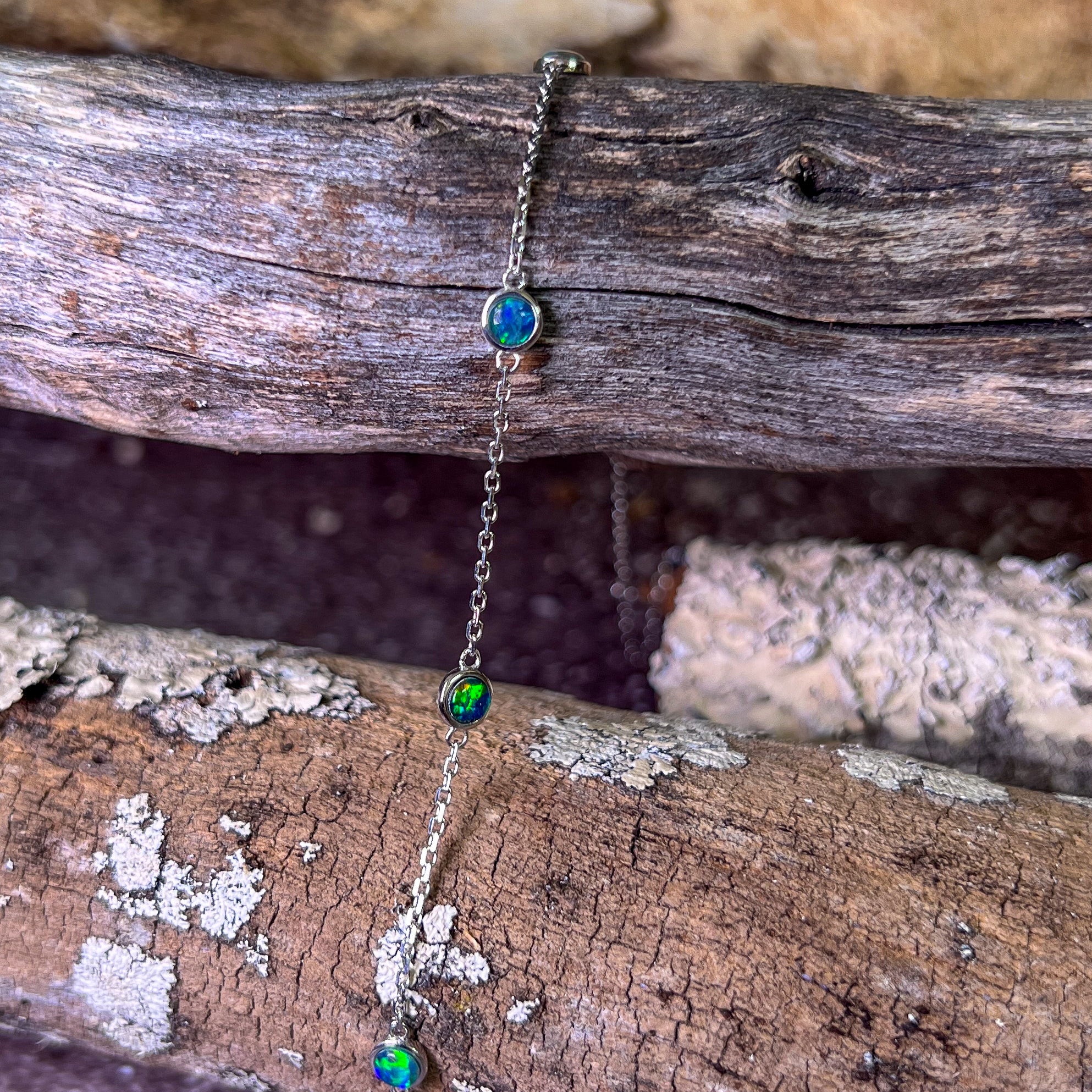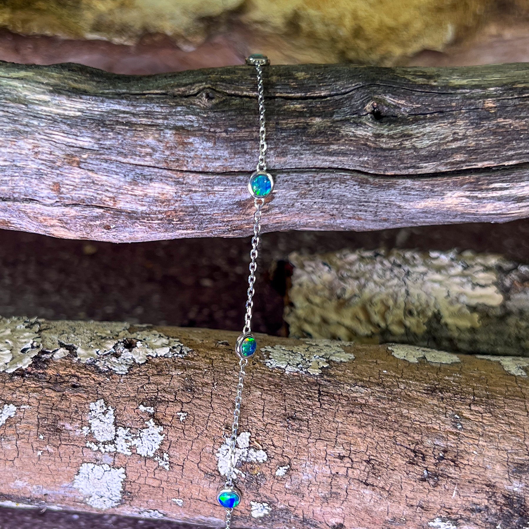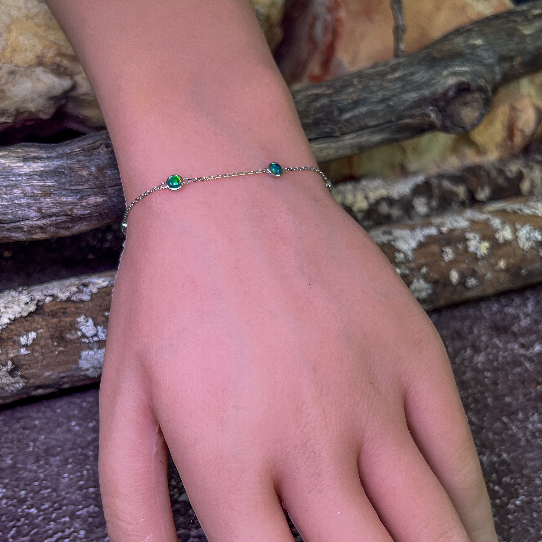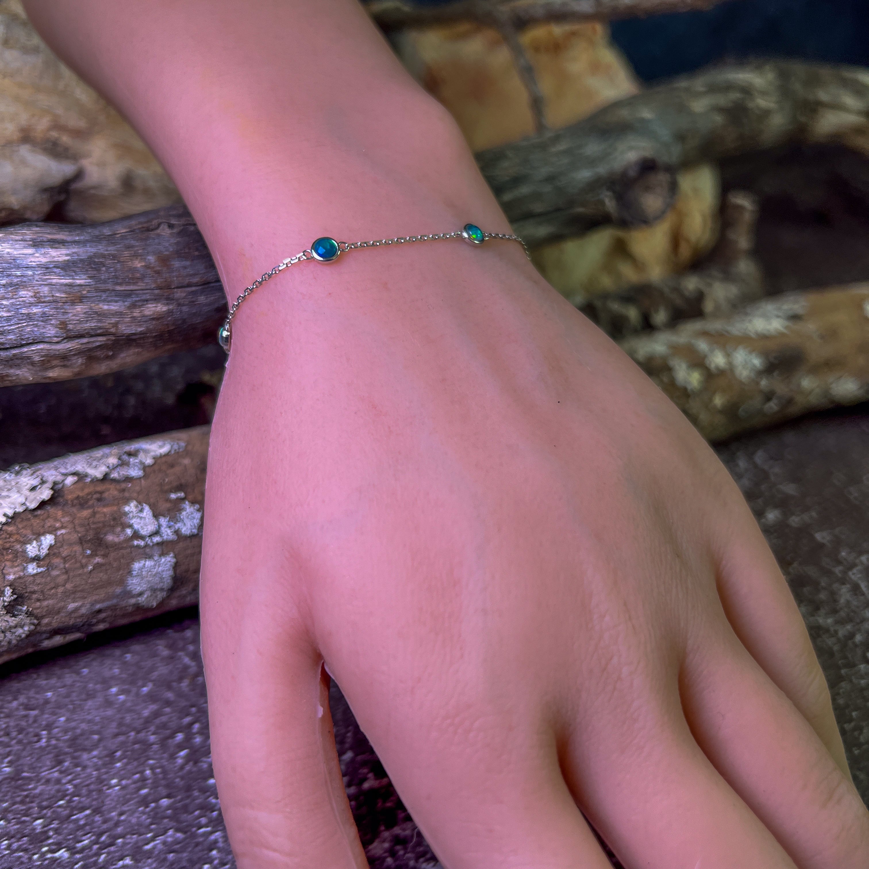 14kt White Gold Opal triplet round 3.5mm minimalist fine bracelet