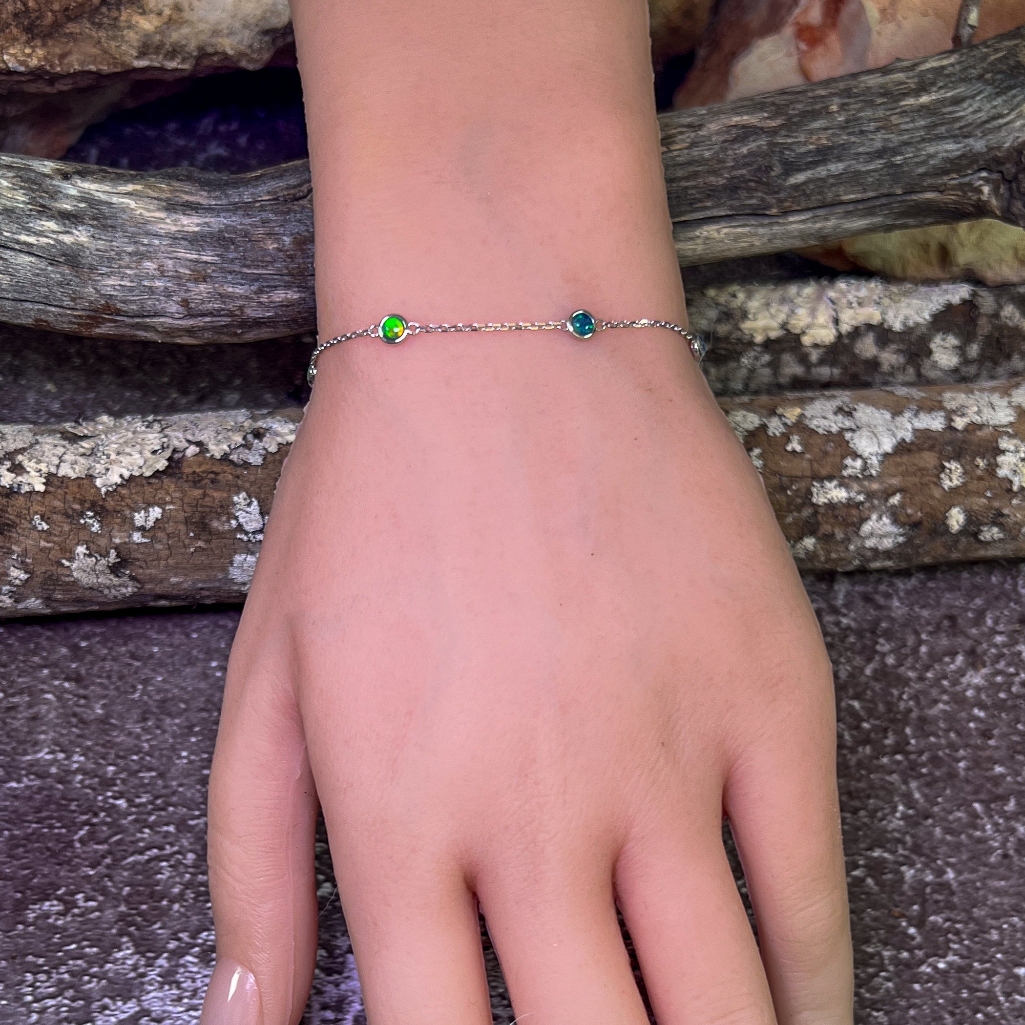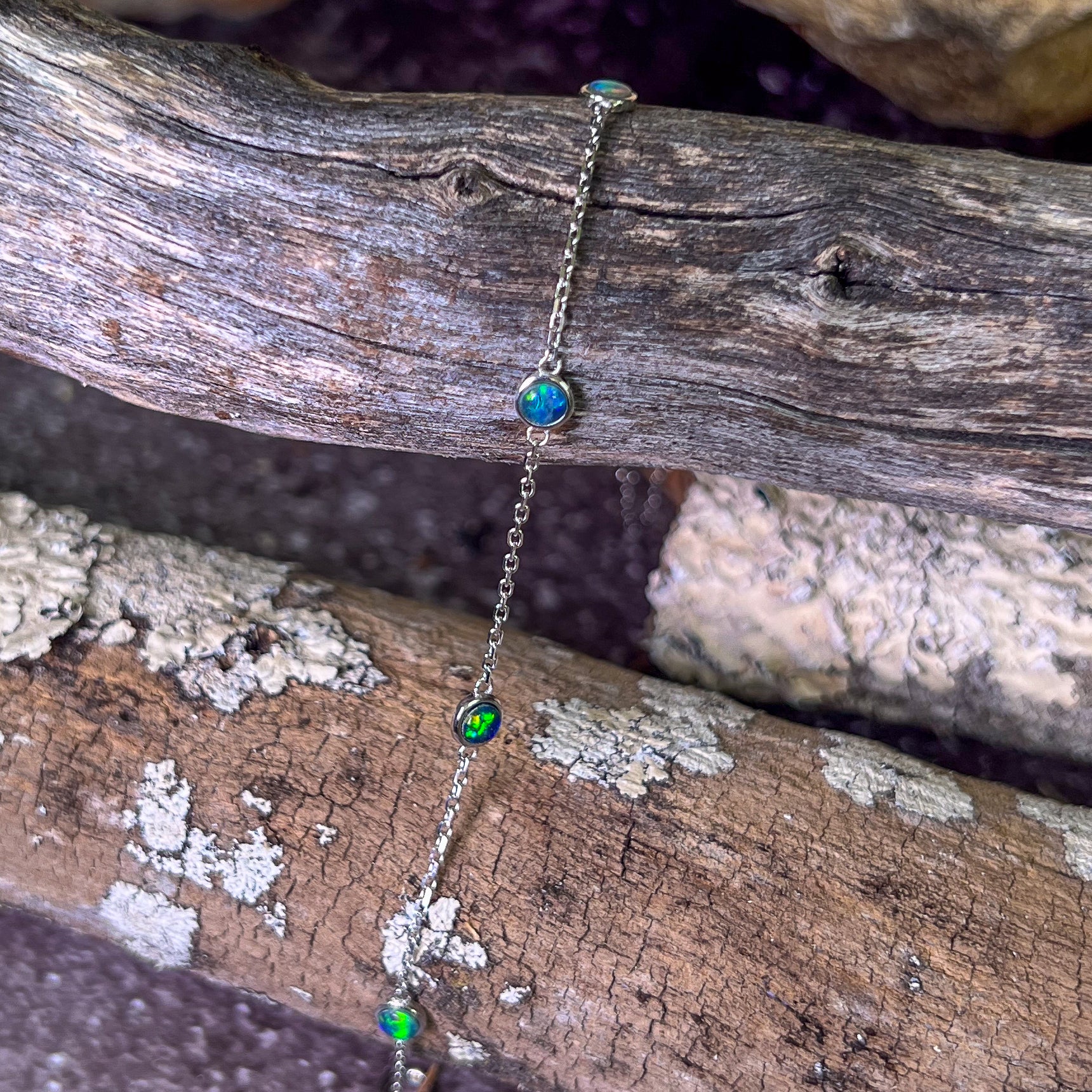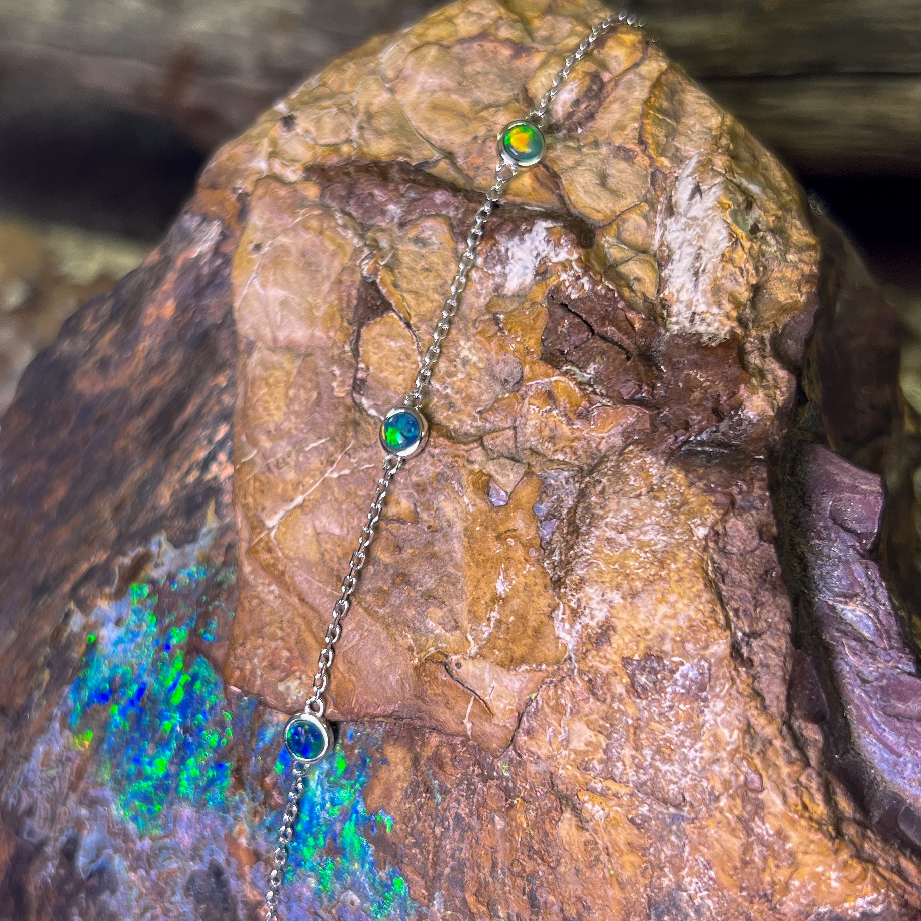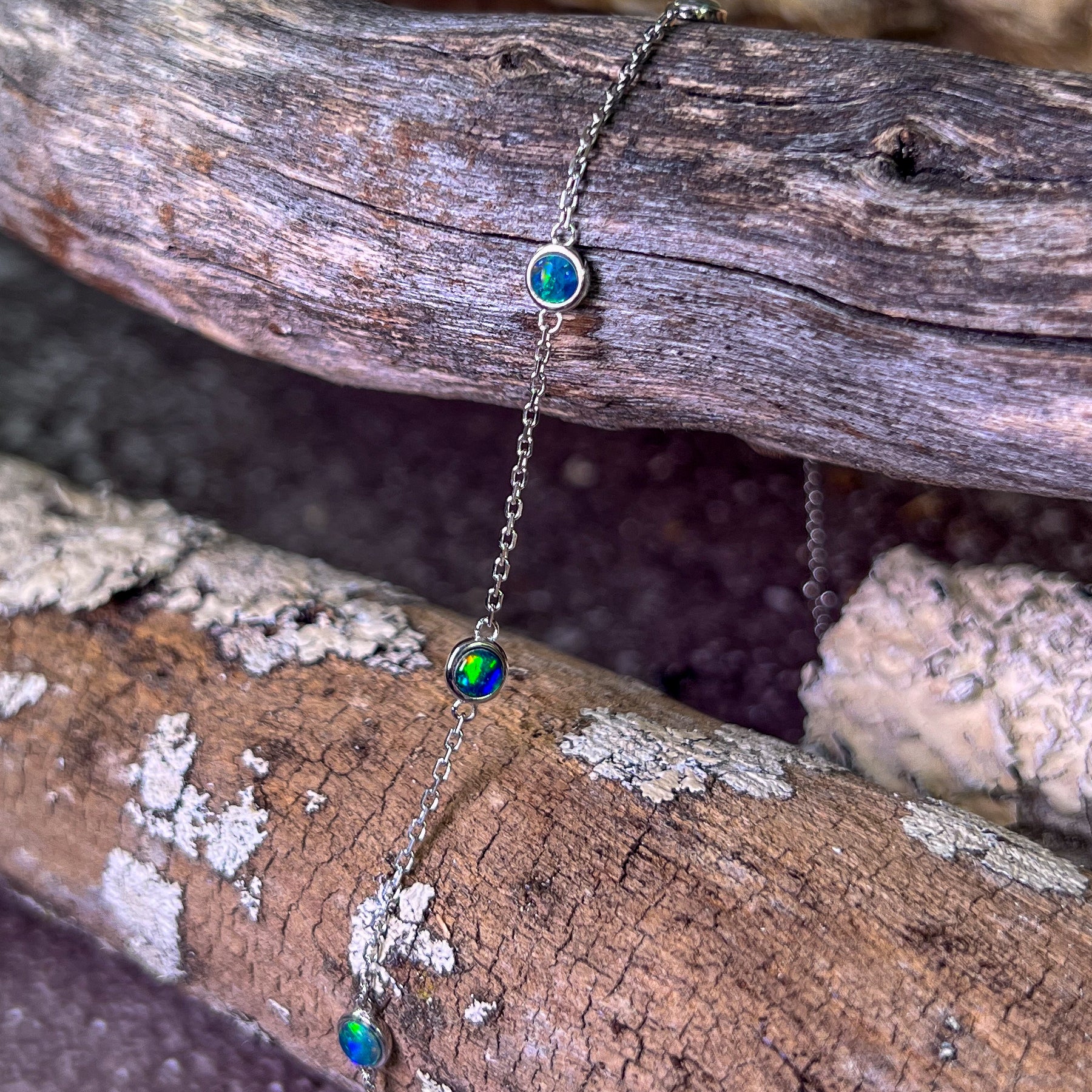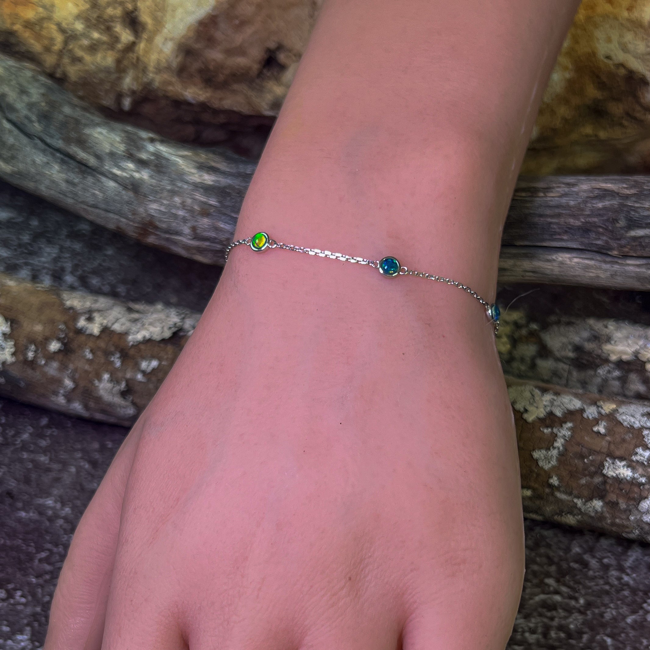 14kt White Gold Opal triplet round 3.5mm minimalist fine bracelet