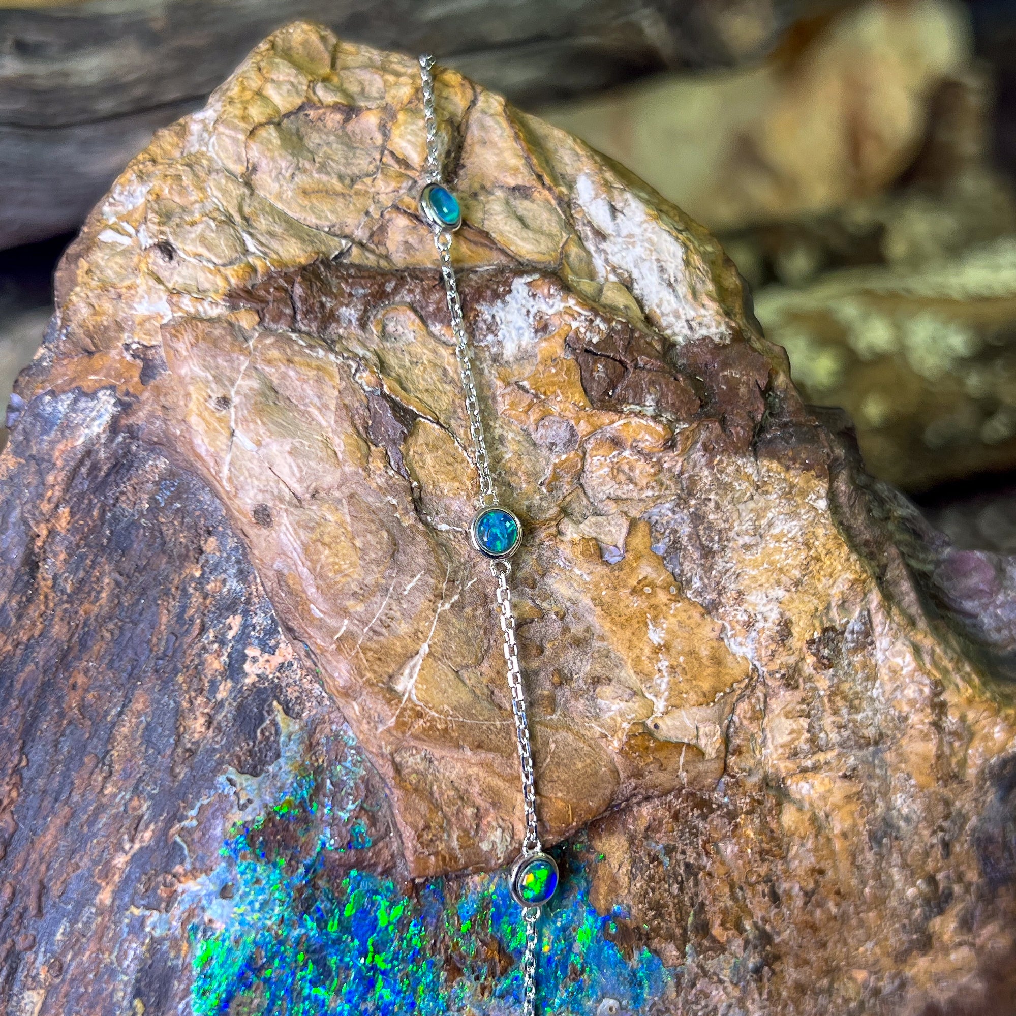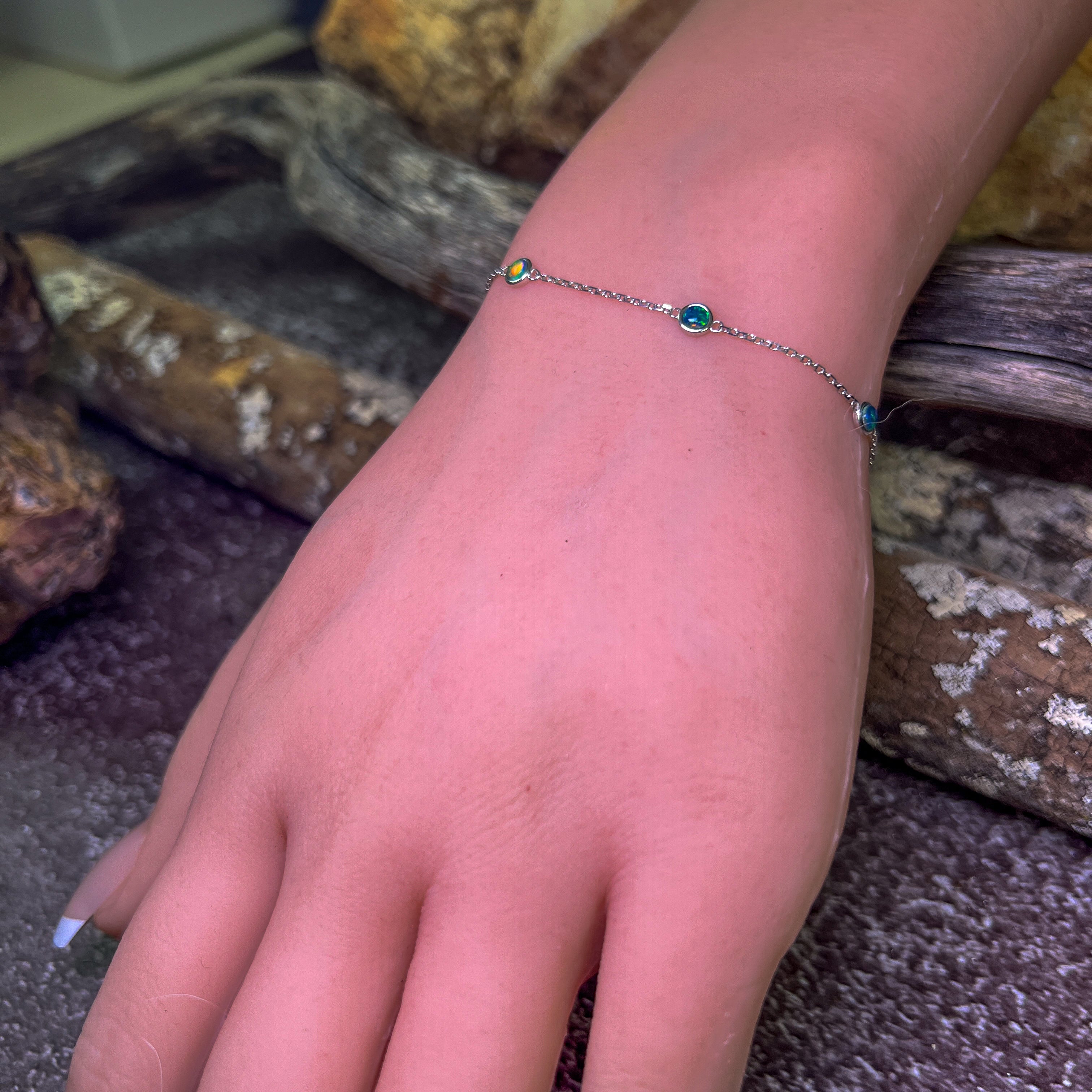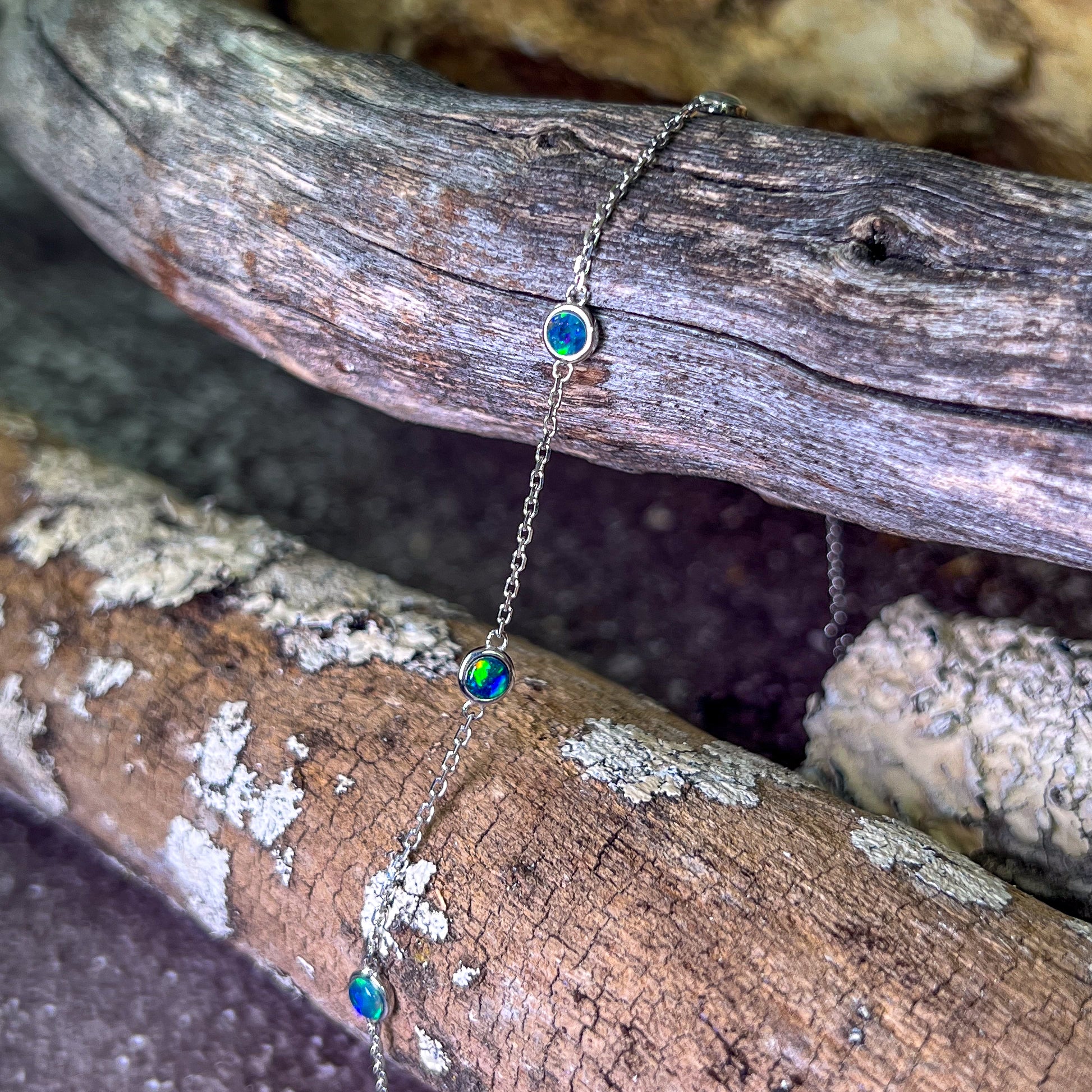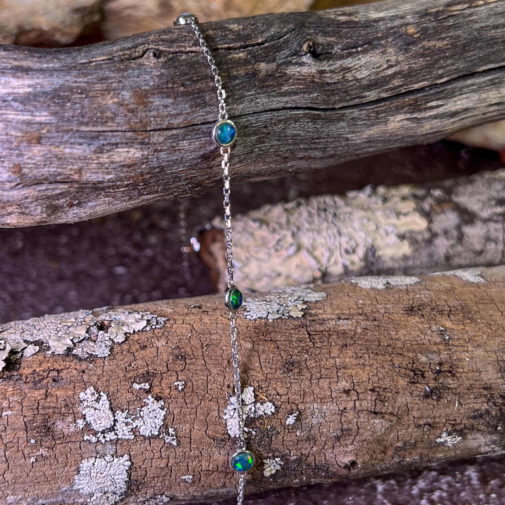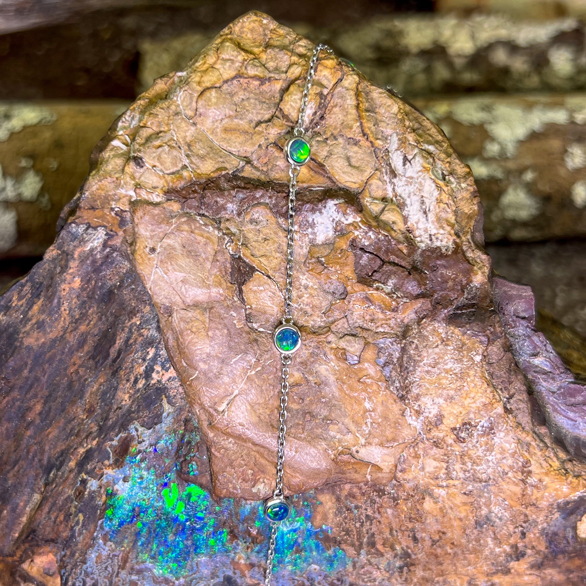 14kt White Gold Opal triplet round 3.5mm minimalist fine bracelet