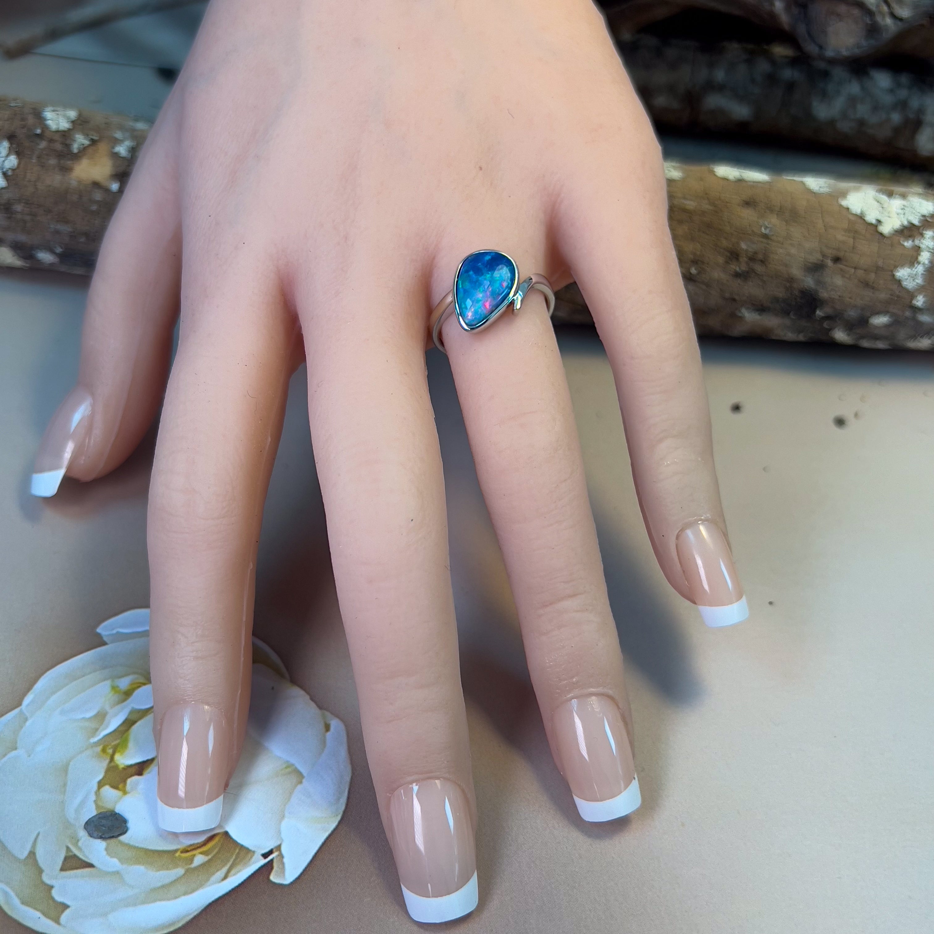 14kt White Gold split shank Triangular shape Opal doublet 2.5ct ring