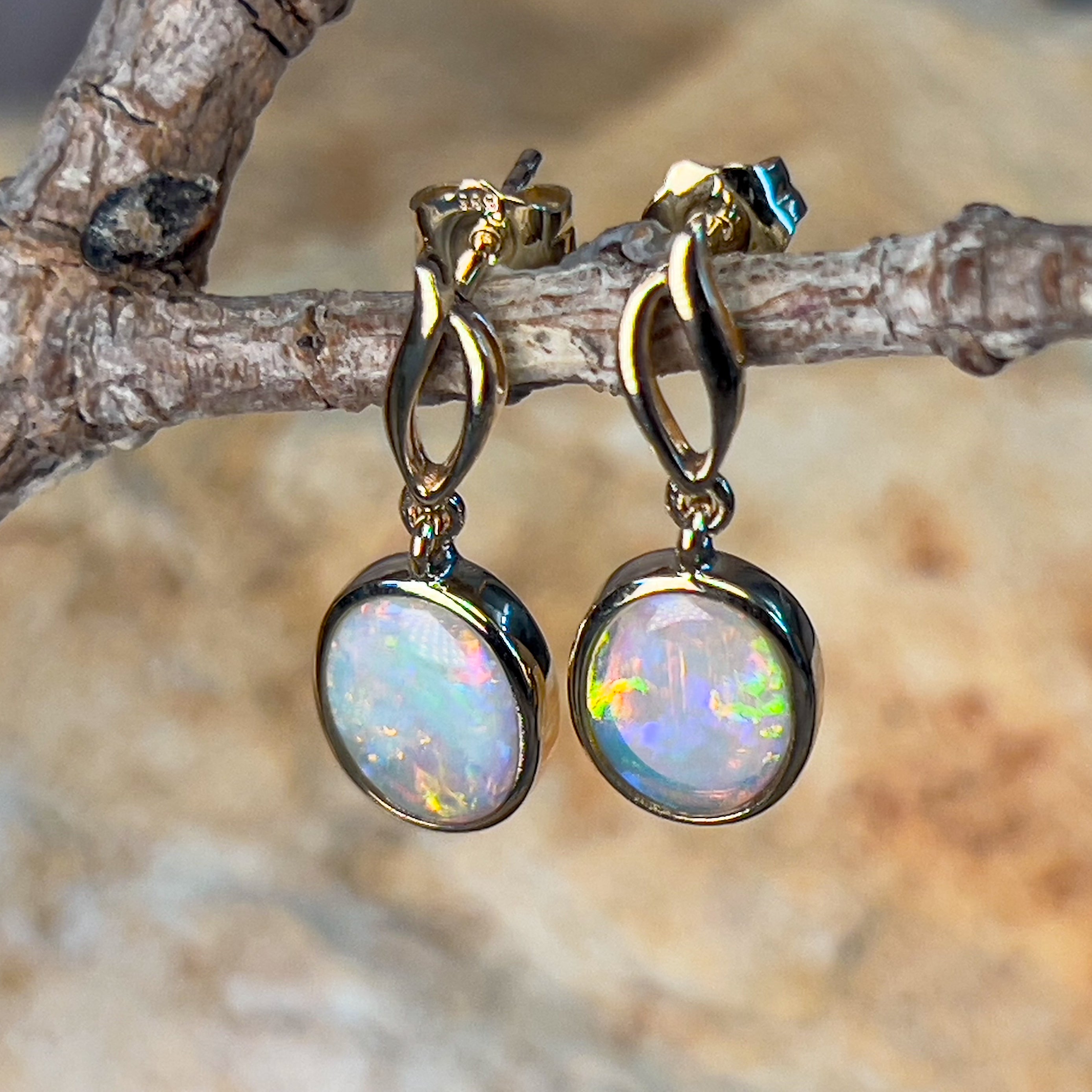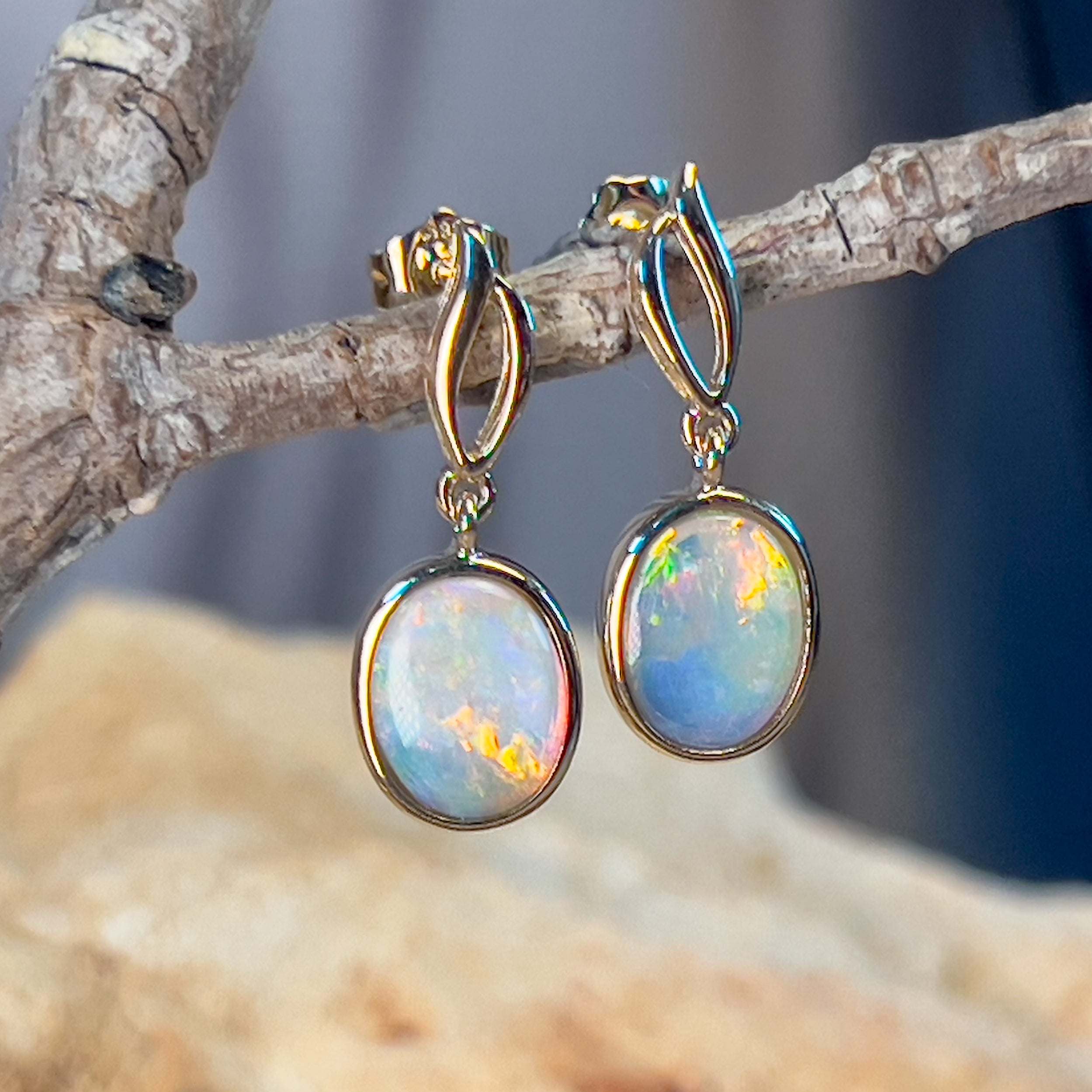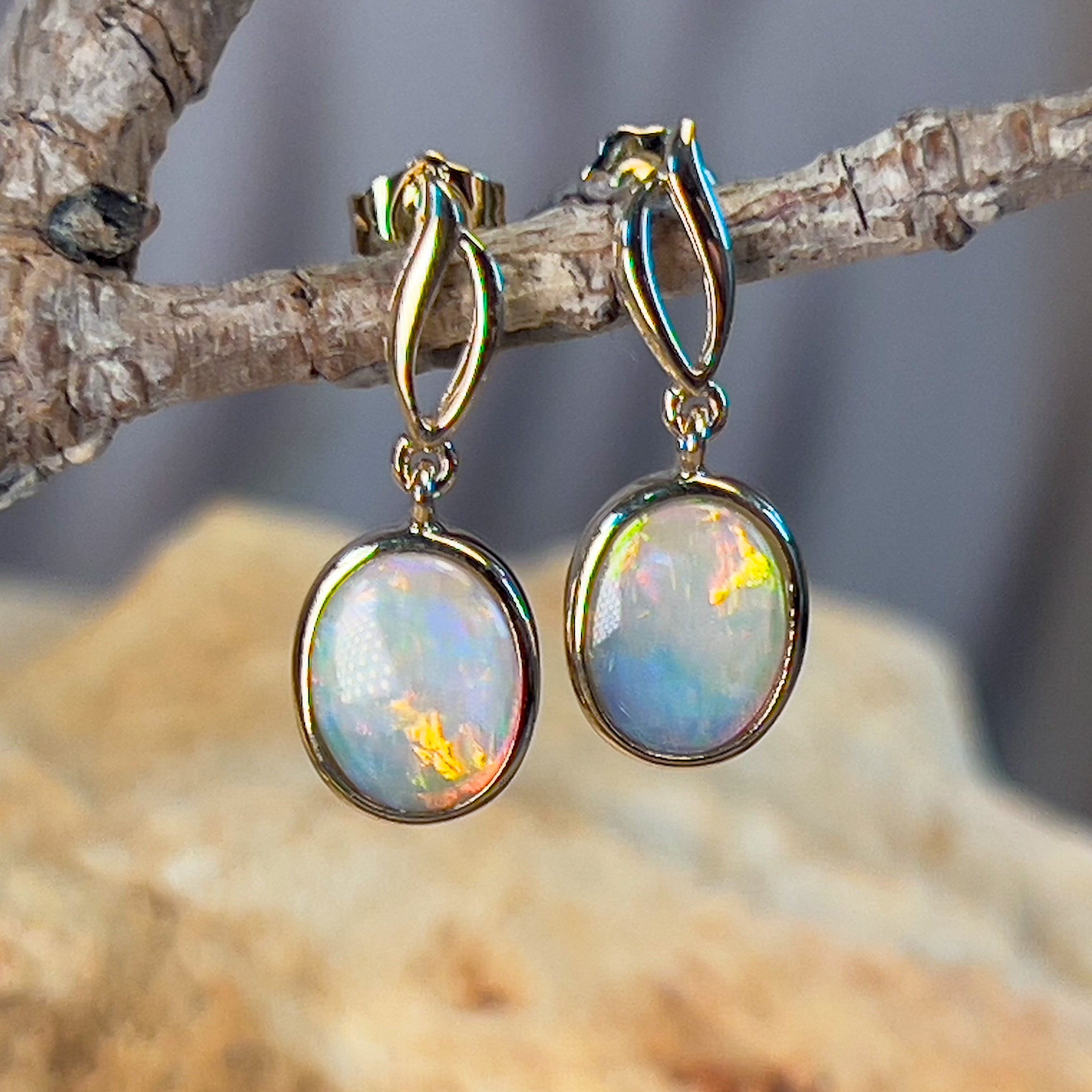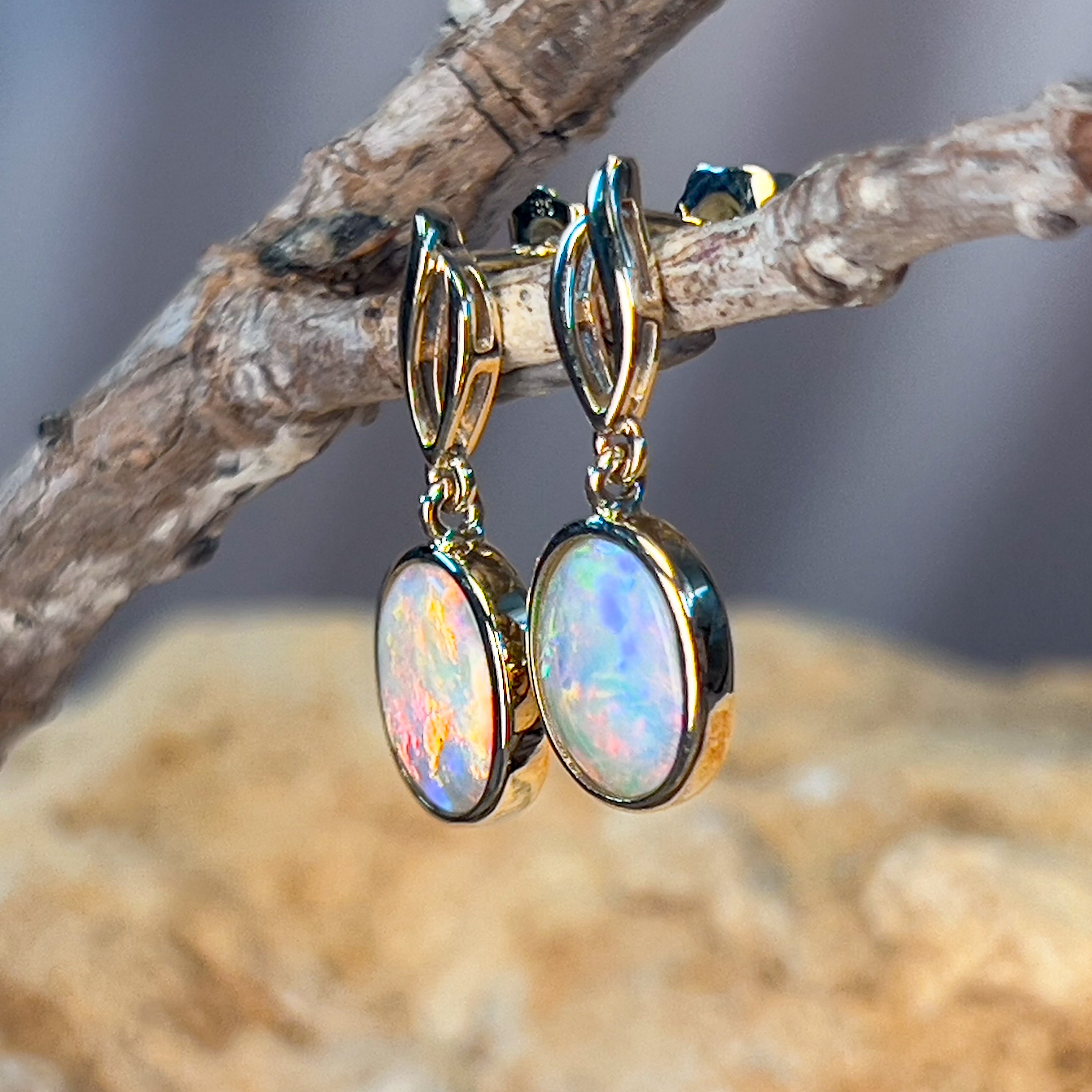 These beautiful 14kt Yellow Gold dangling Oval shape earrings are the perfect addition to your opal jewellery collection. The opal stones add a touch of elegance and the delicate gold drop design will elevate any outfit. A must-have for any fashion-conscious individual looking for a classic yet unique piece of jewellery.