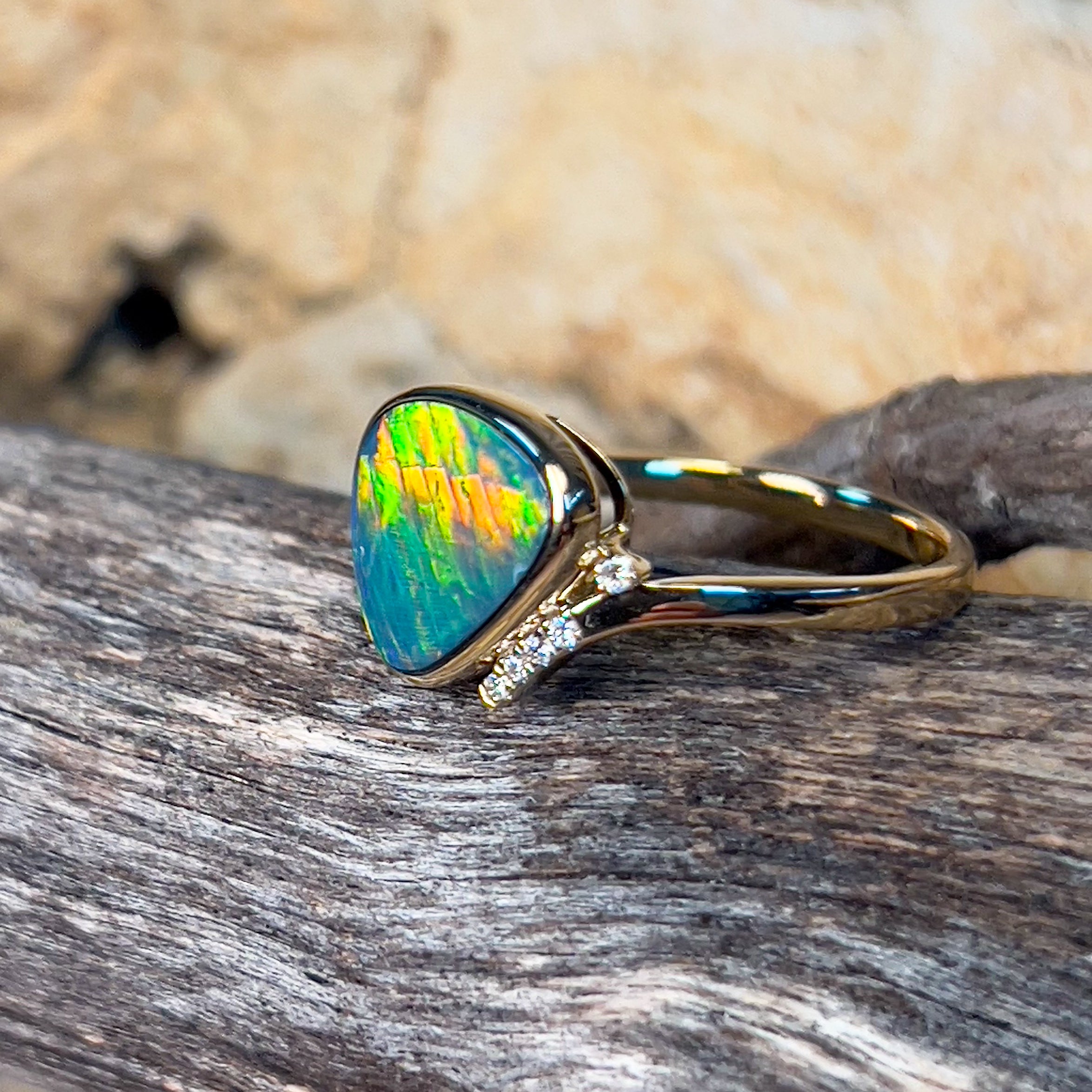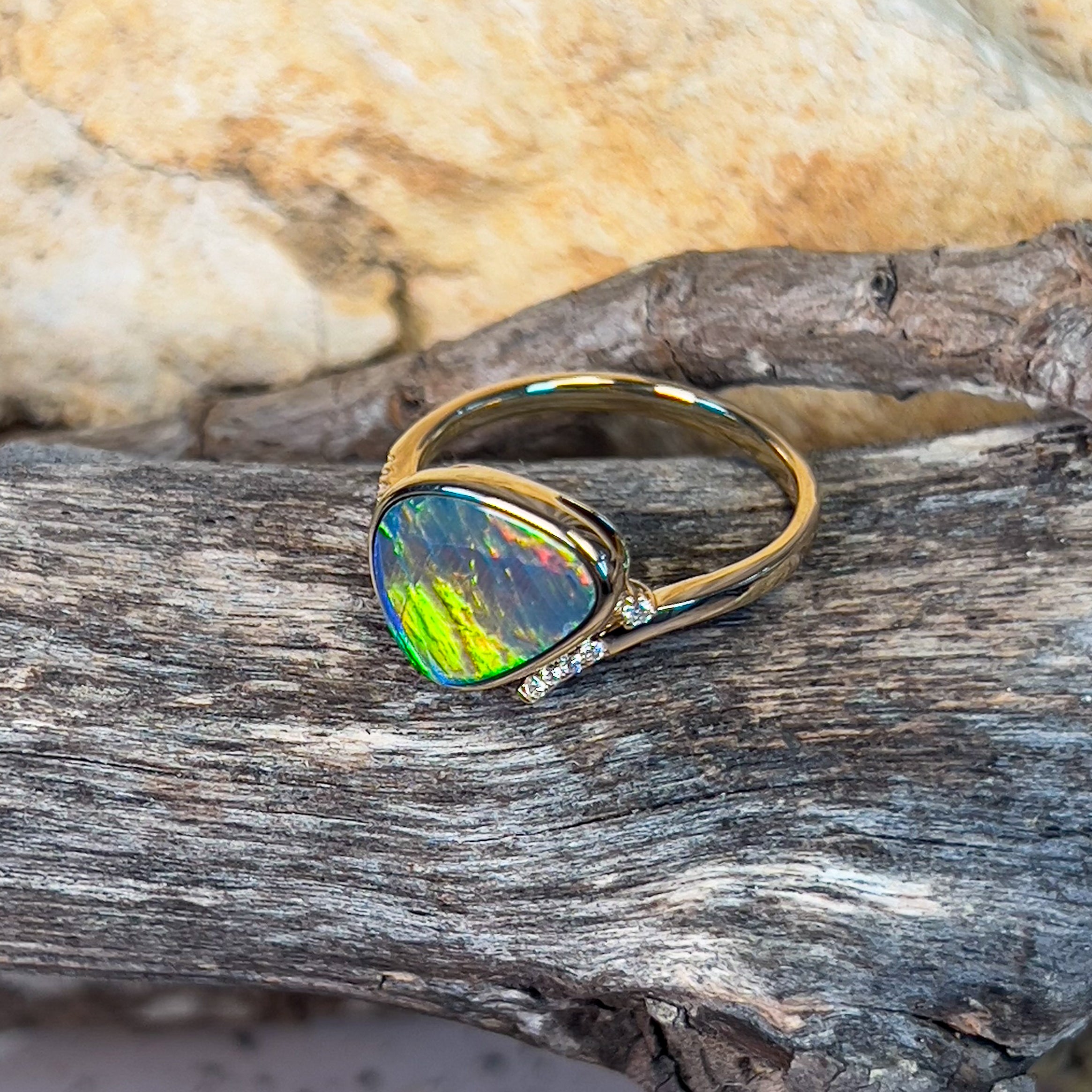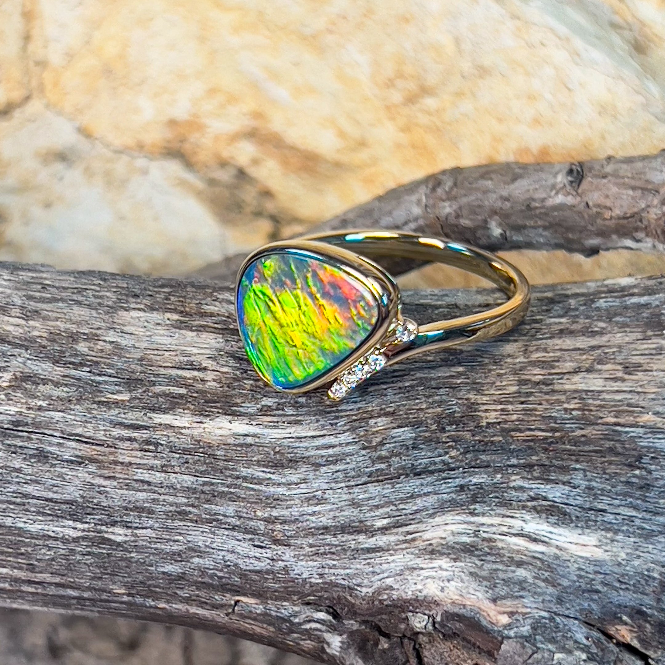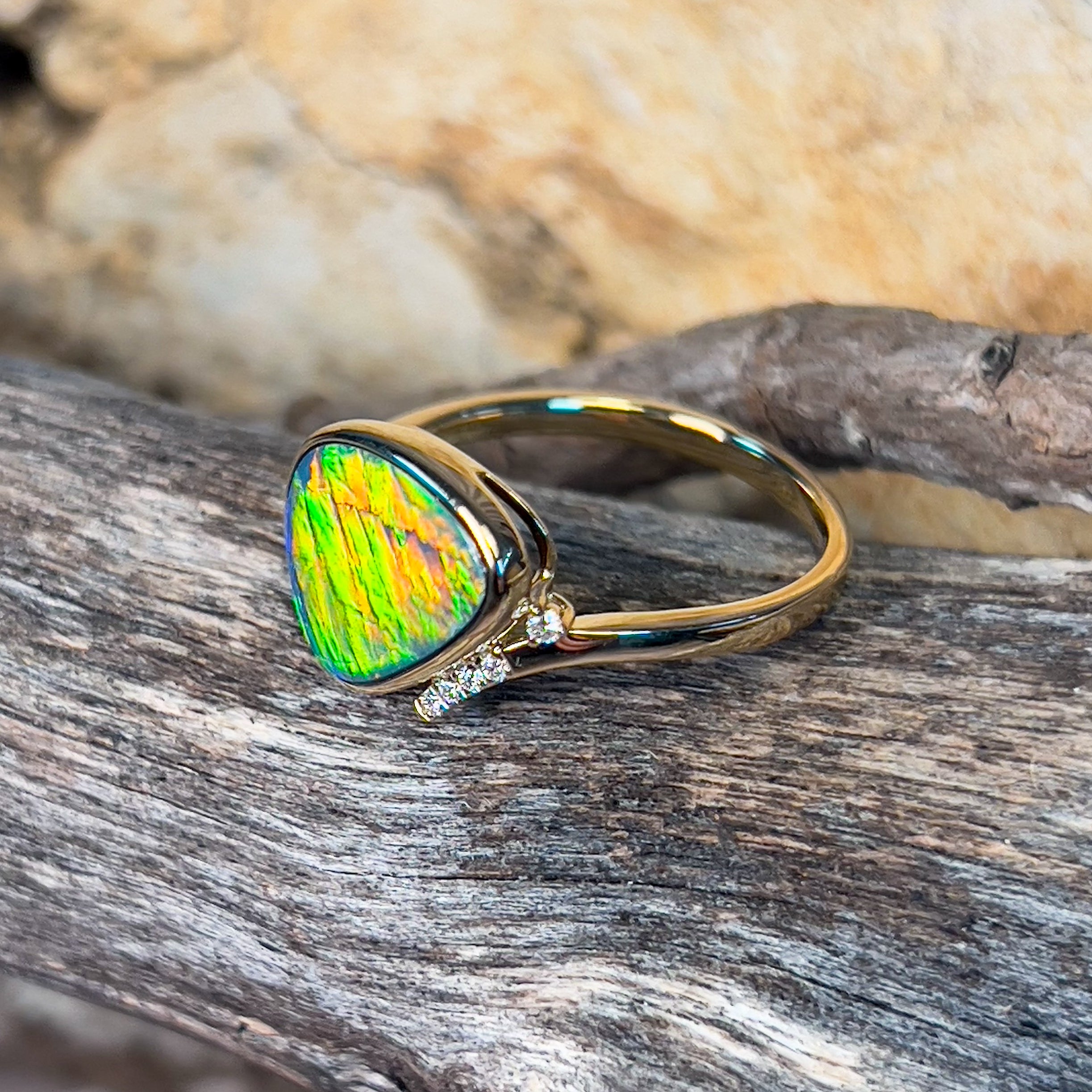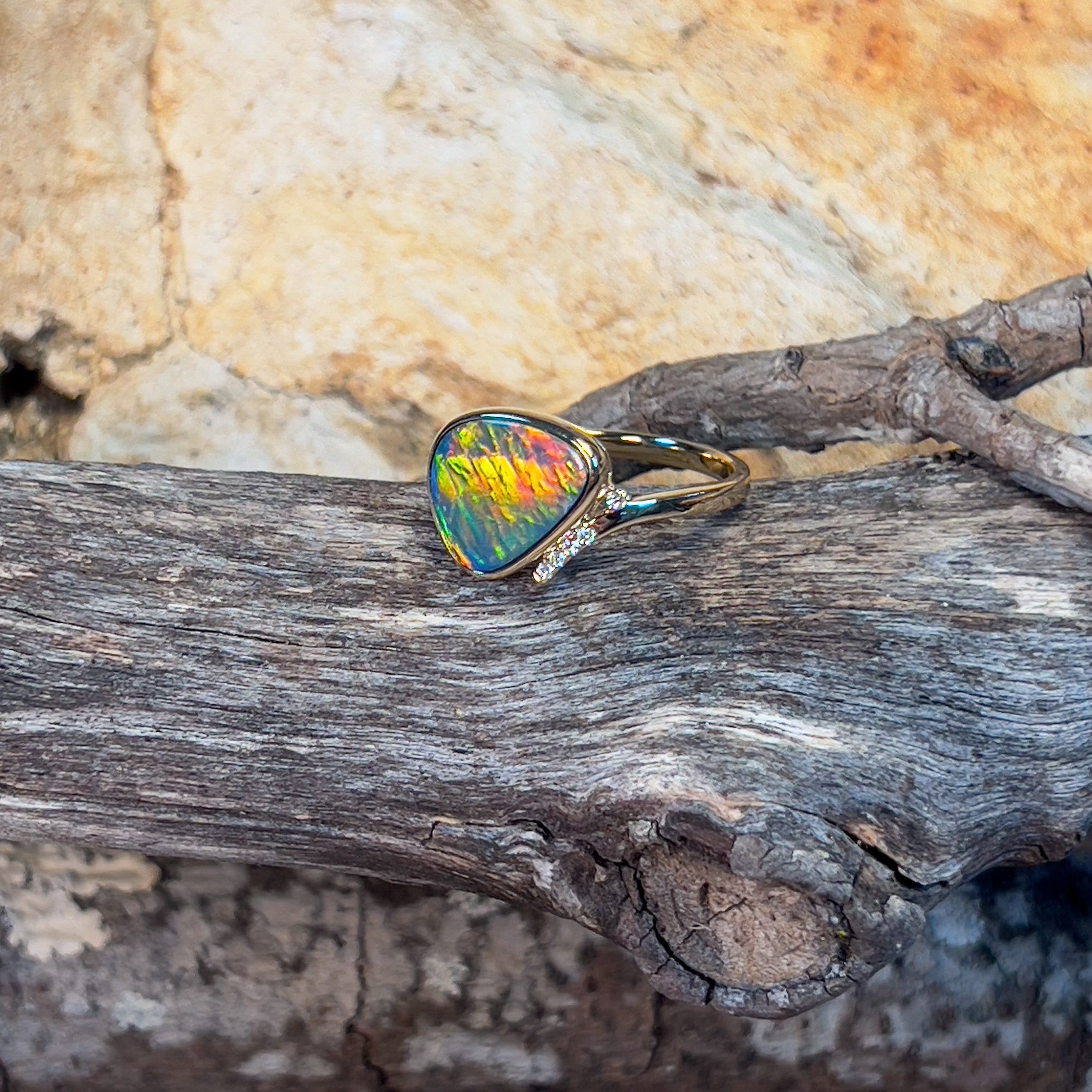 14kt Yellow Gold Fire Opal doublet 1.98ct and diamond ring