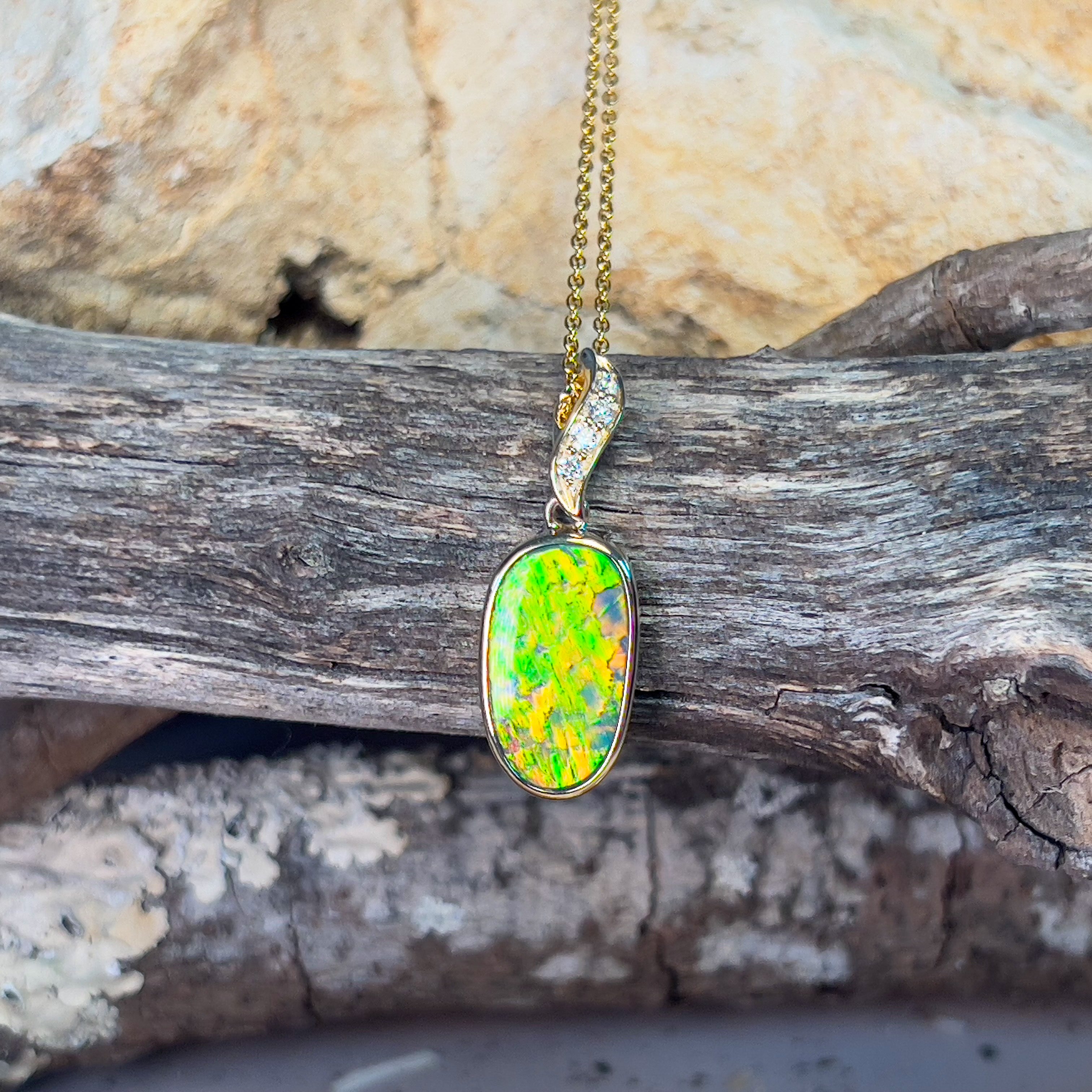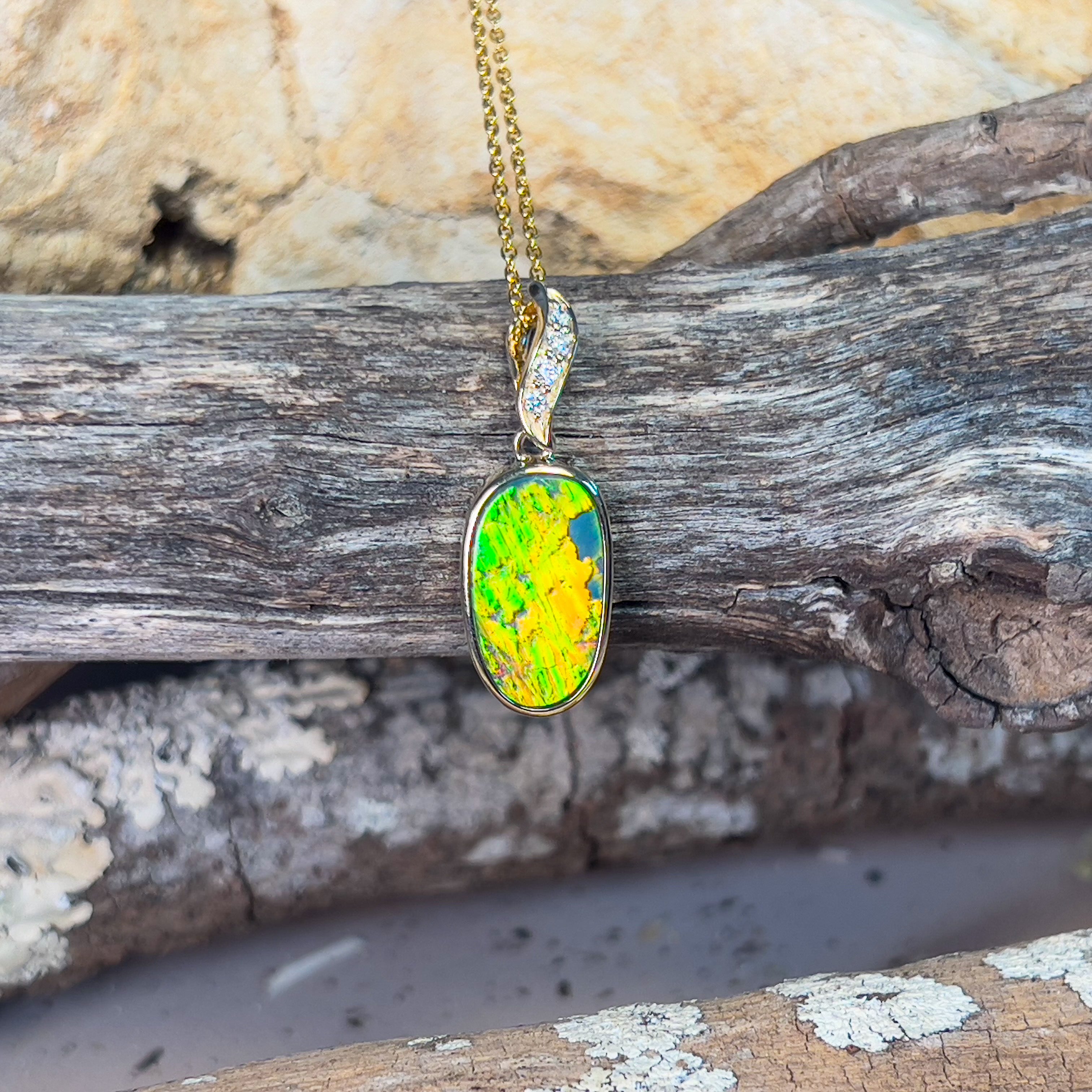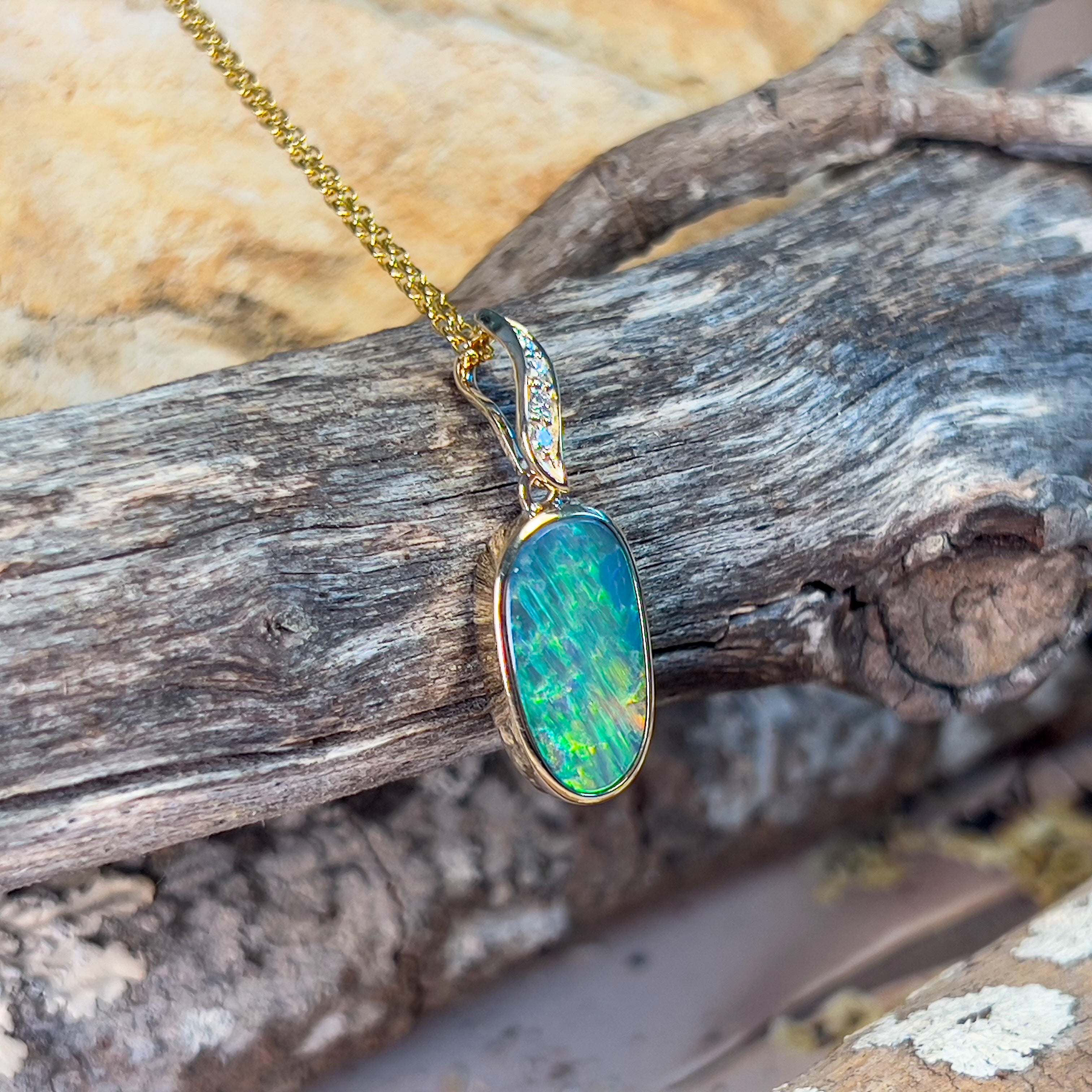 14kt Yellow Gold Opal doublet 3.1ct pendant with diamonds