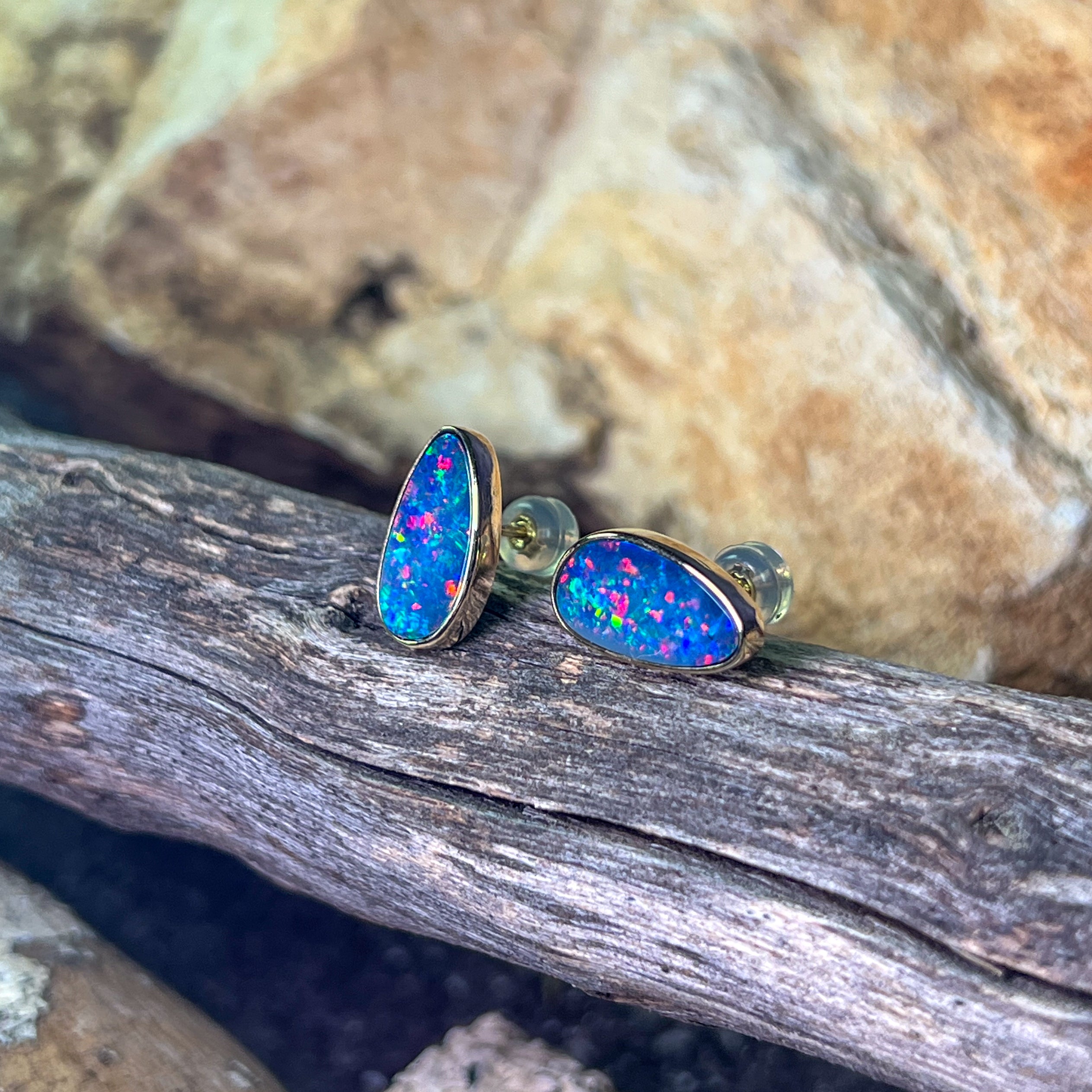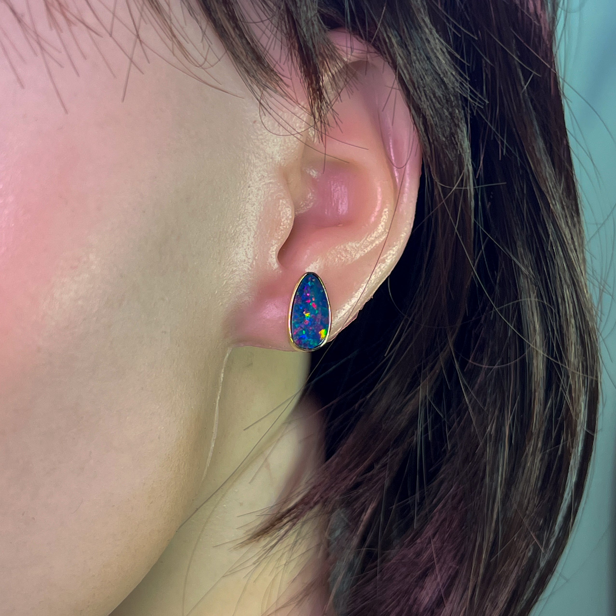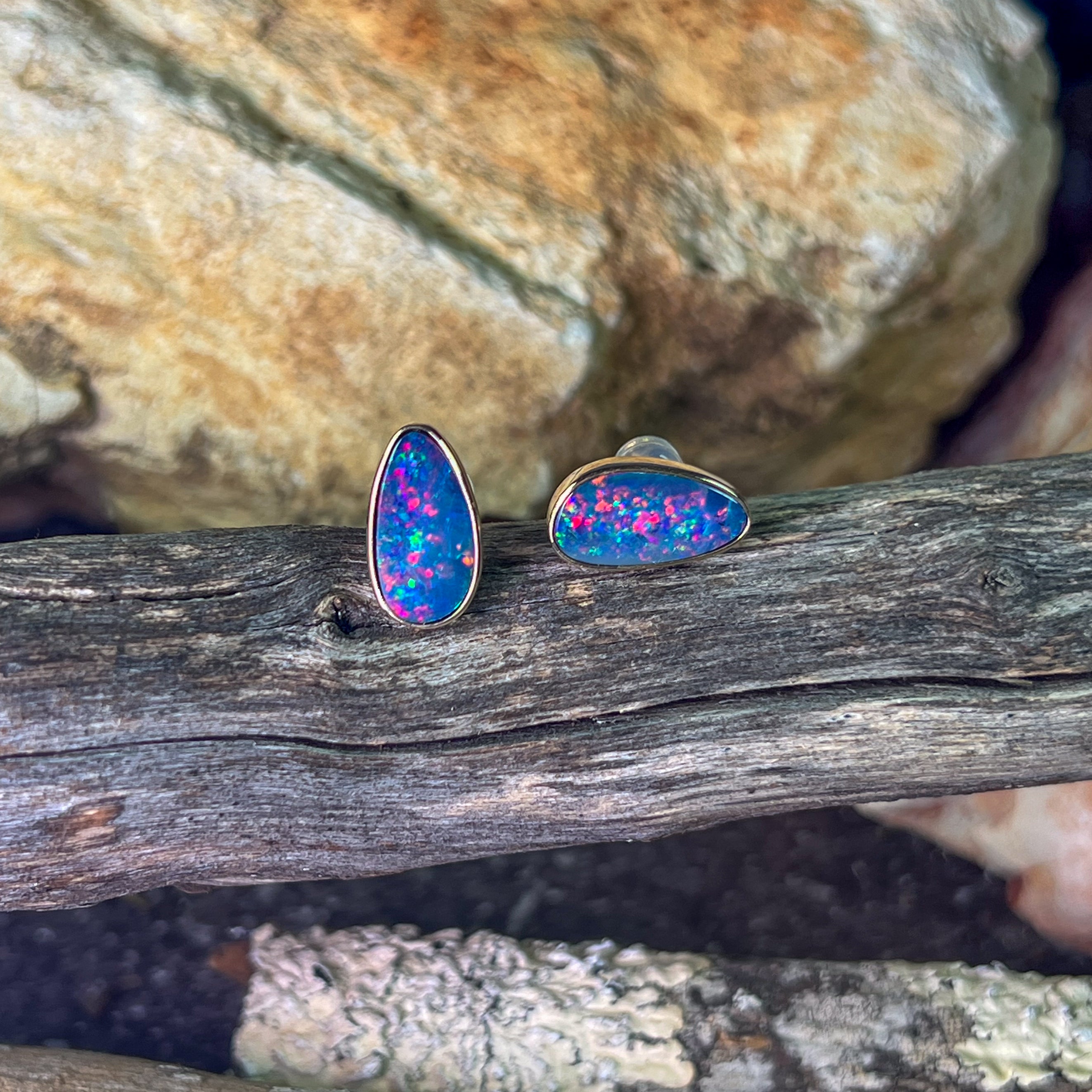 14kt Yellow Gold Opal doublet studs freeform 3.93ct