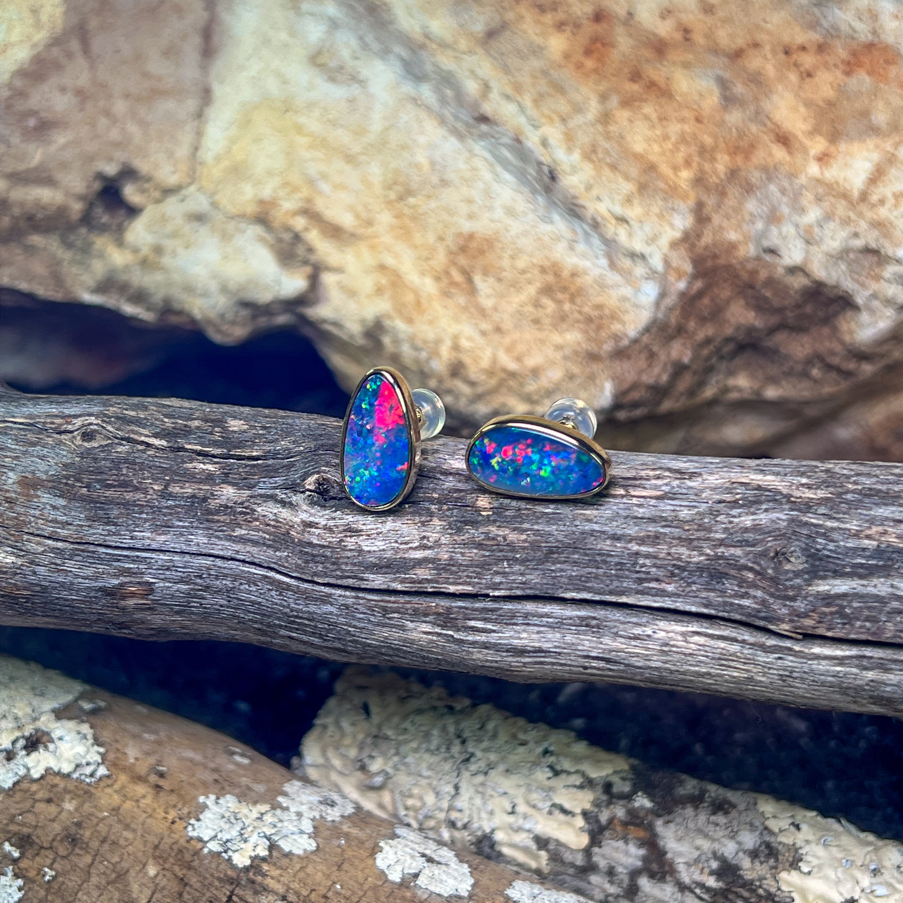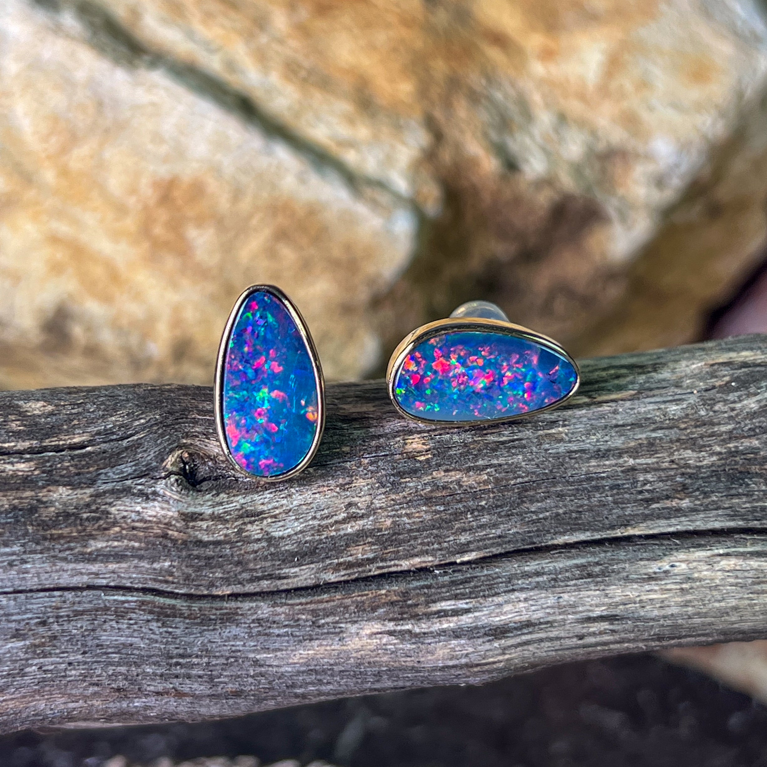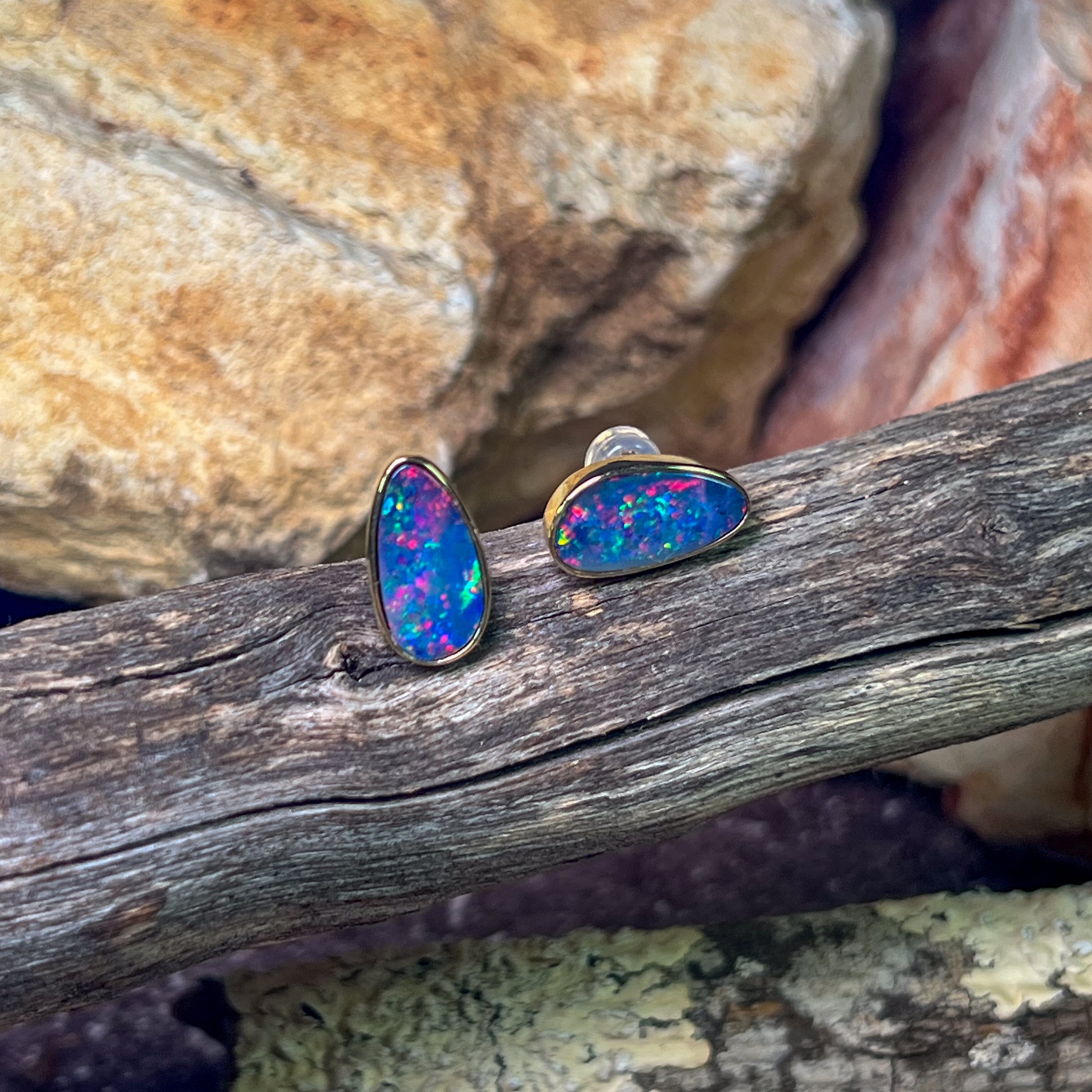 2 Freeform shape Australian Opal doublets
