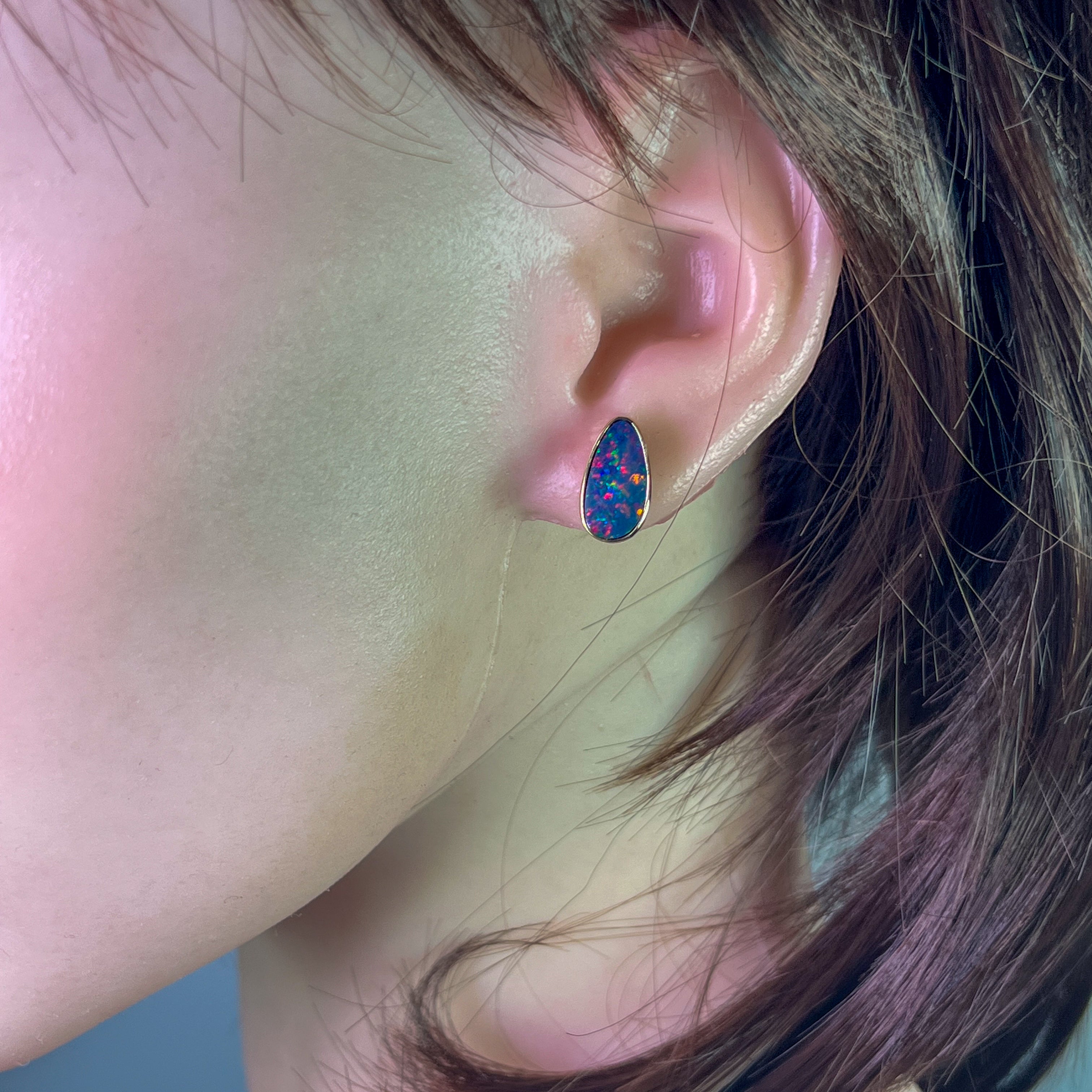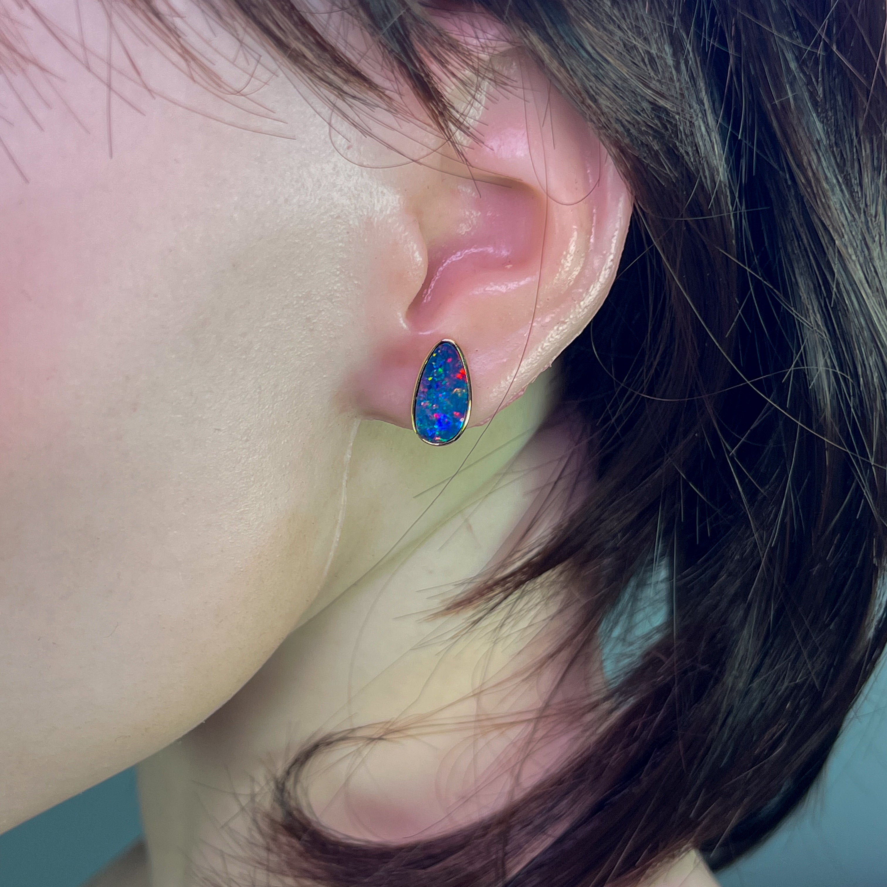 Take on new horizons with our 14kt Yellow Gold Opal doublet studs! Featuring mesmerizing Fire Opal colours with a hint of Blue, these earrings will add a bold touch to any outfit. The 3.93ct doublets are perfect for those who crave adventure and are not afraid to take risks.