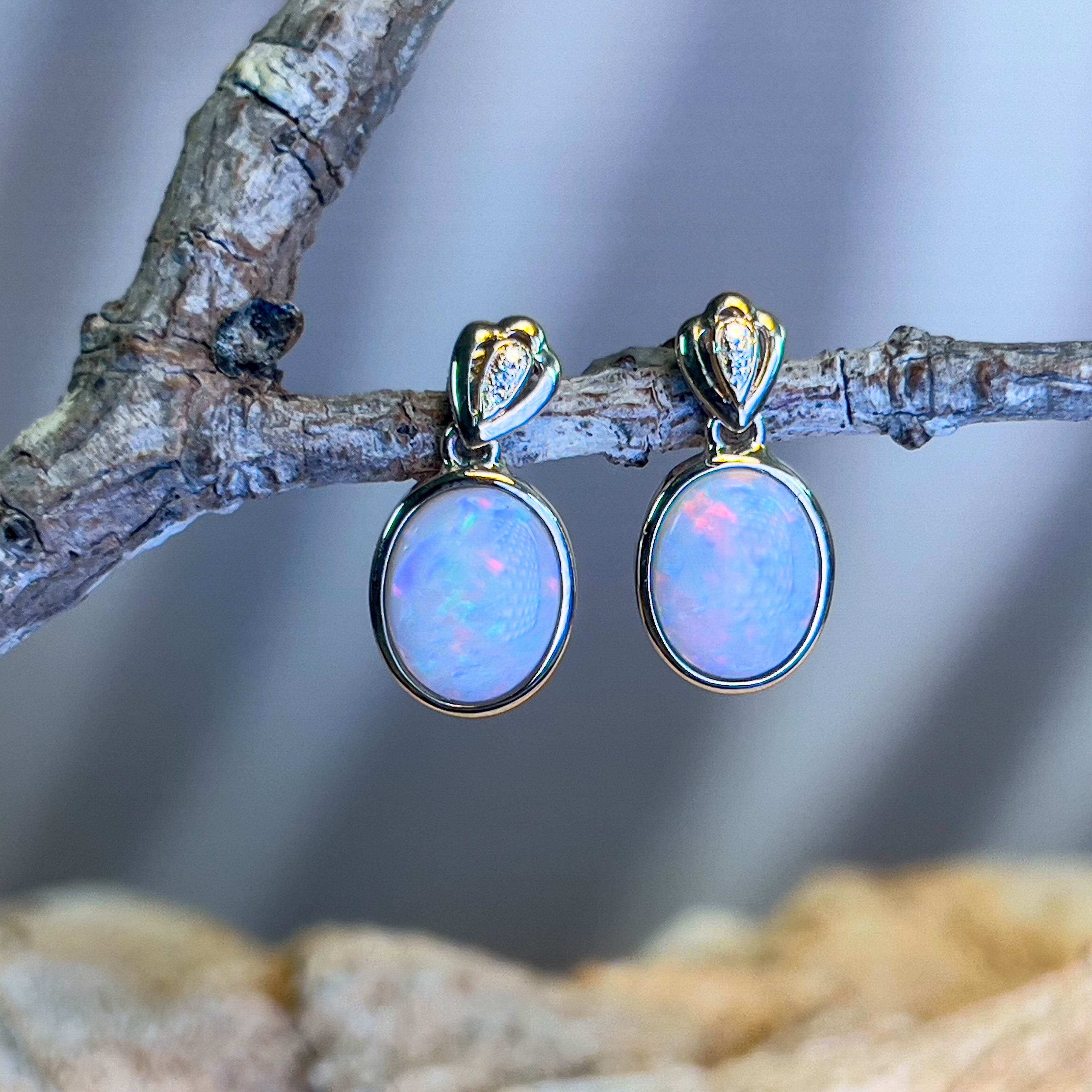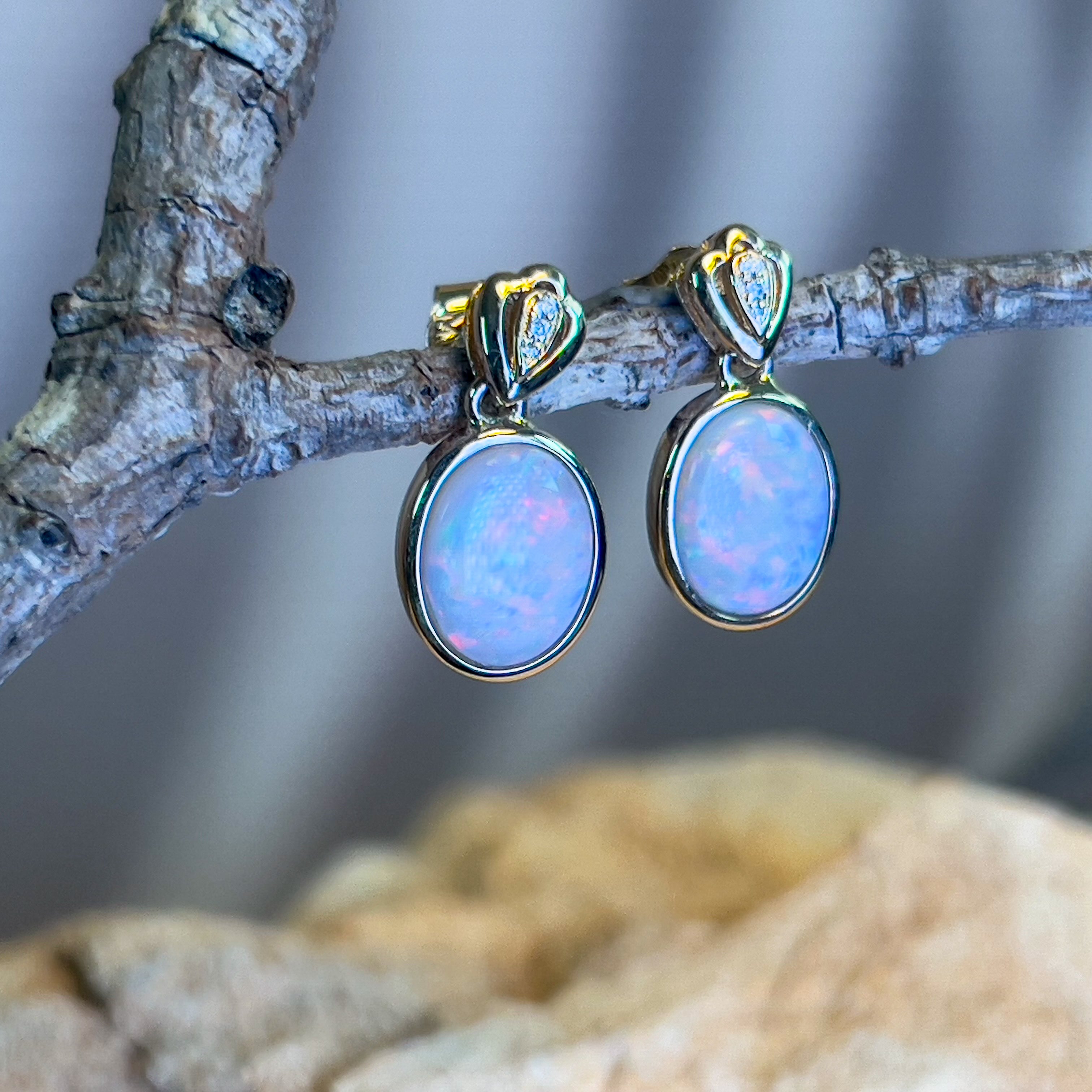 14kt Yellow Gold Oval Dark Opal 2.08ct bezel set earring drops