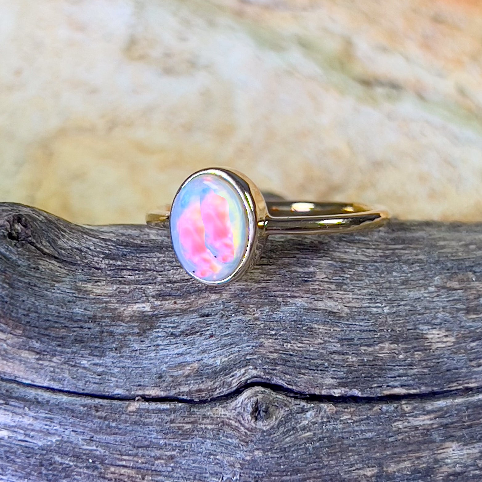 14kt Yellow Gold solitaire Oval Opal bezel set ring