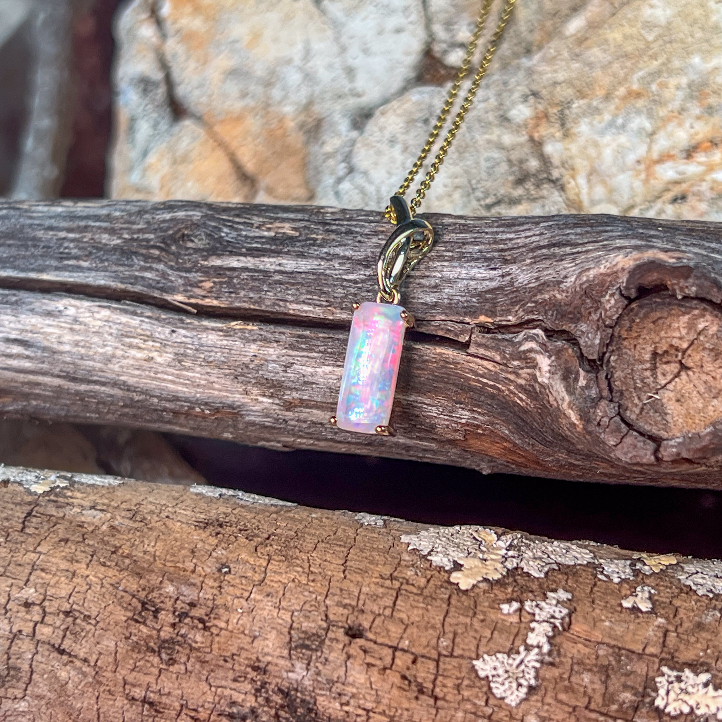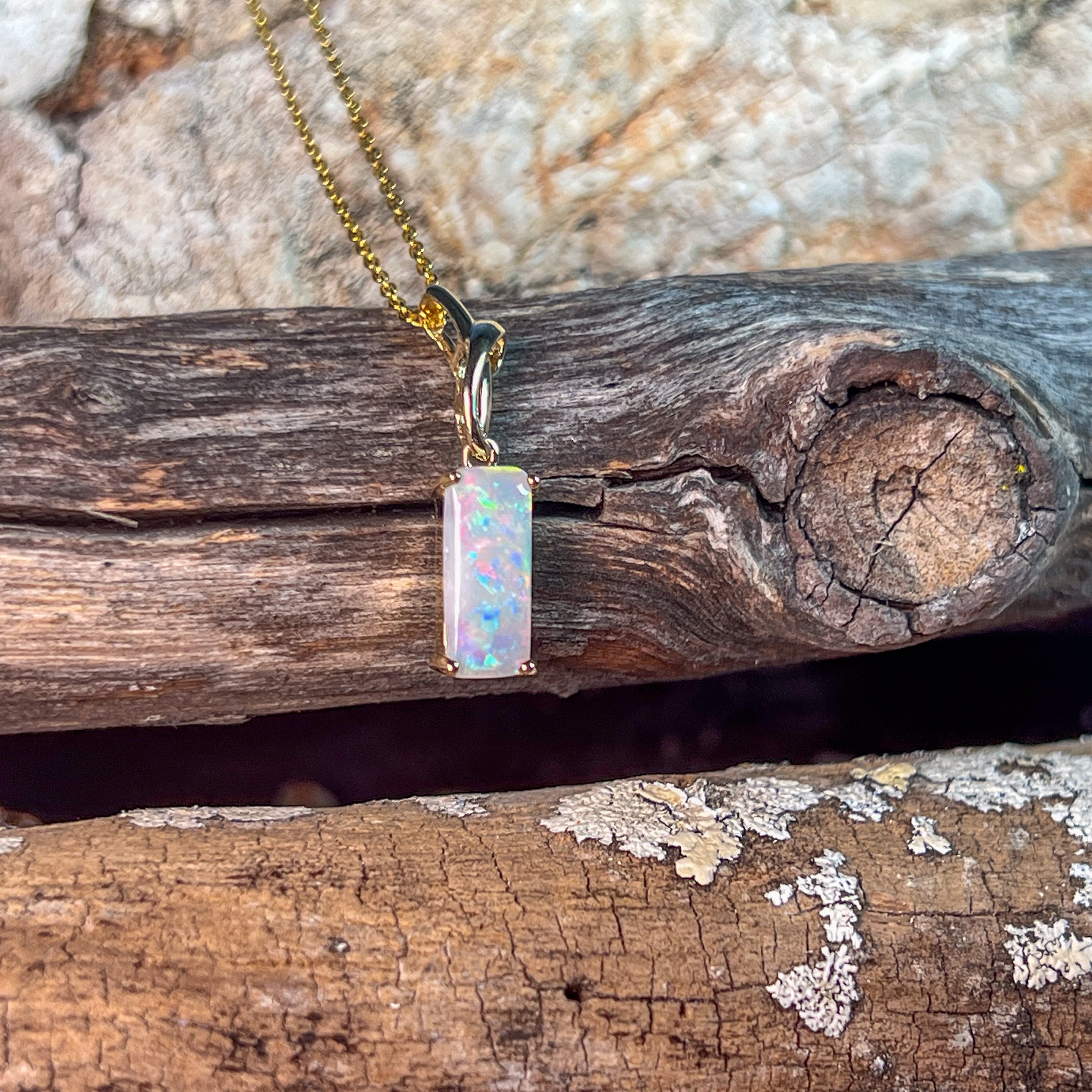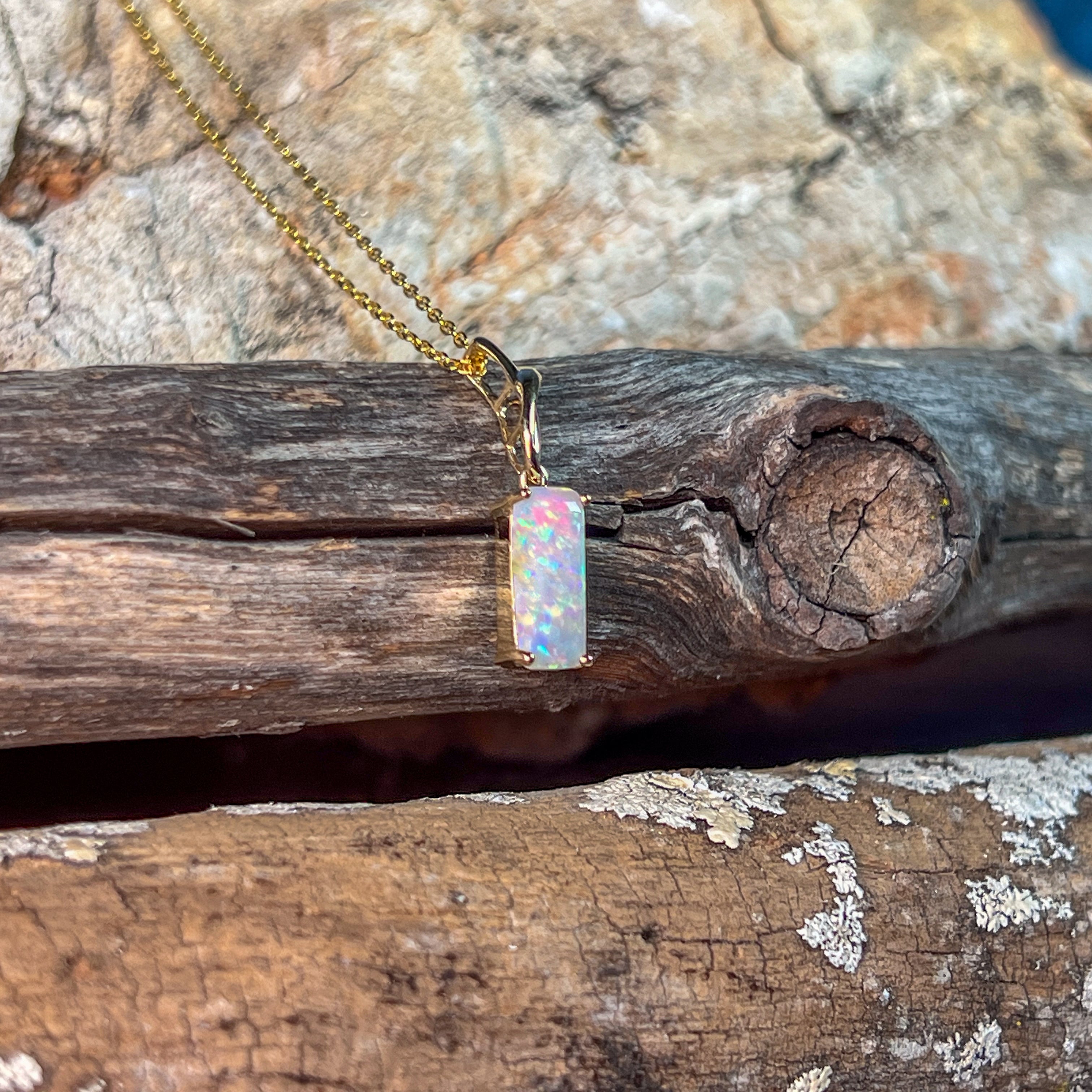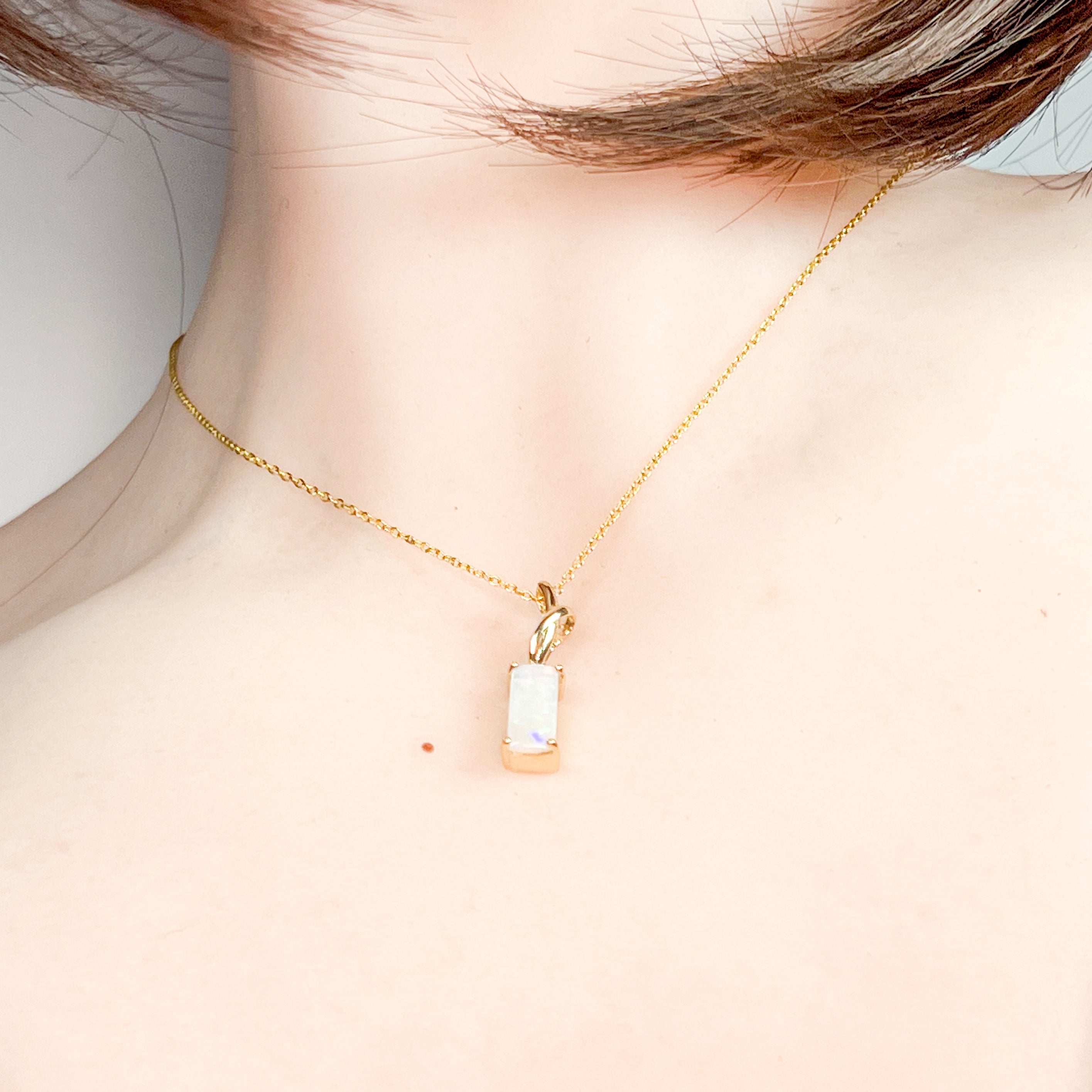 14kt Yellow Gold White Opal 1.38ct Rectangular cut pendant