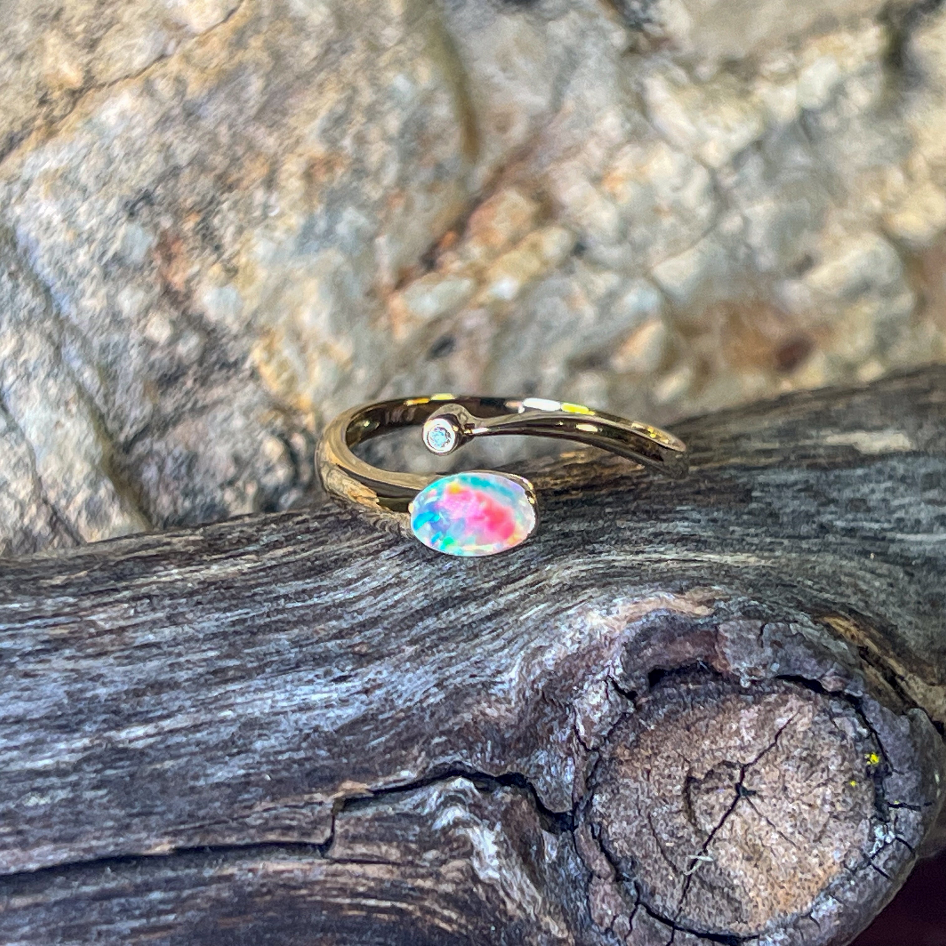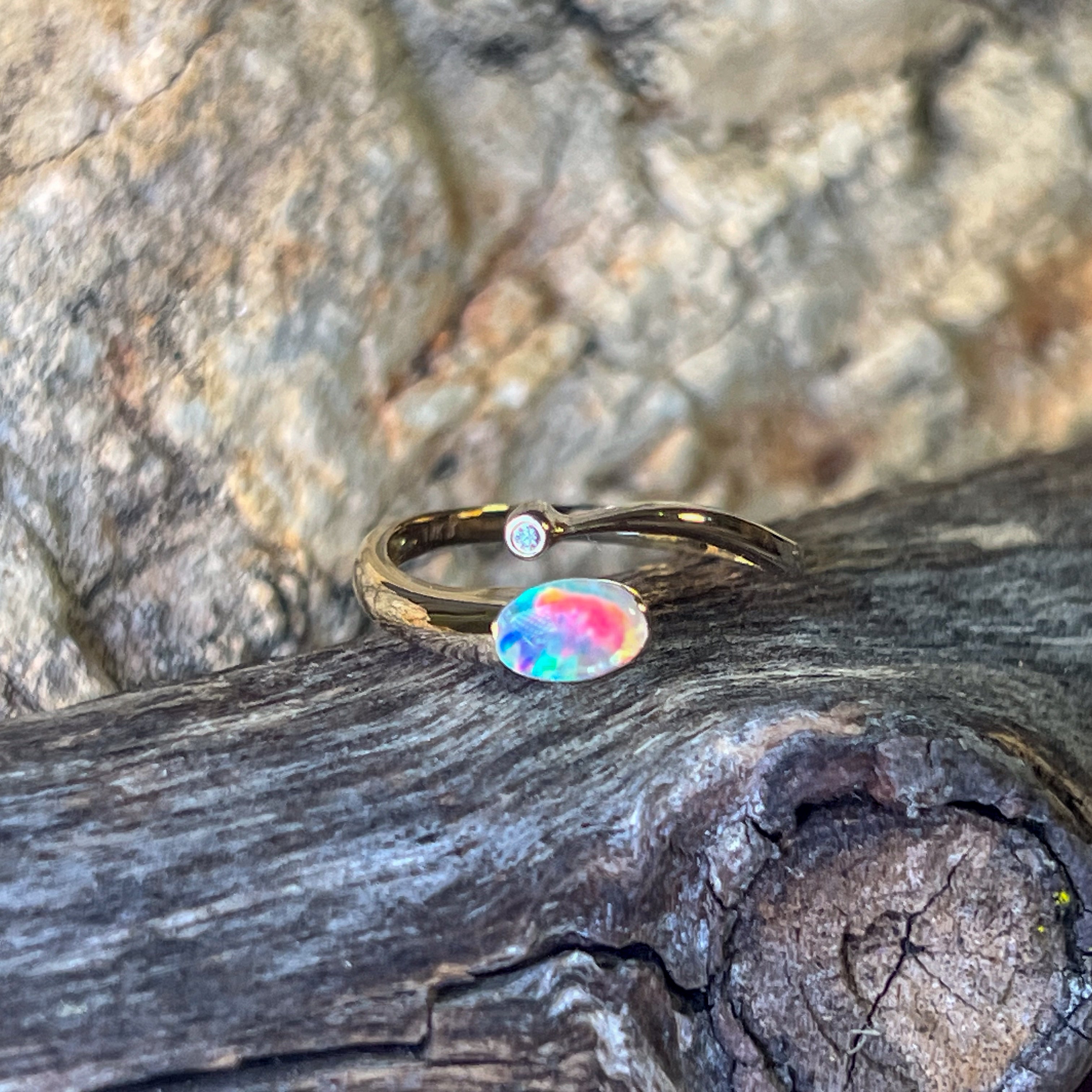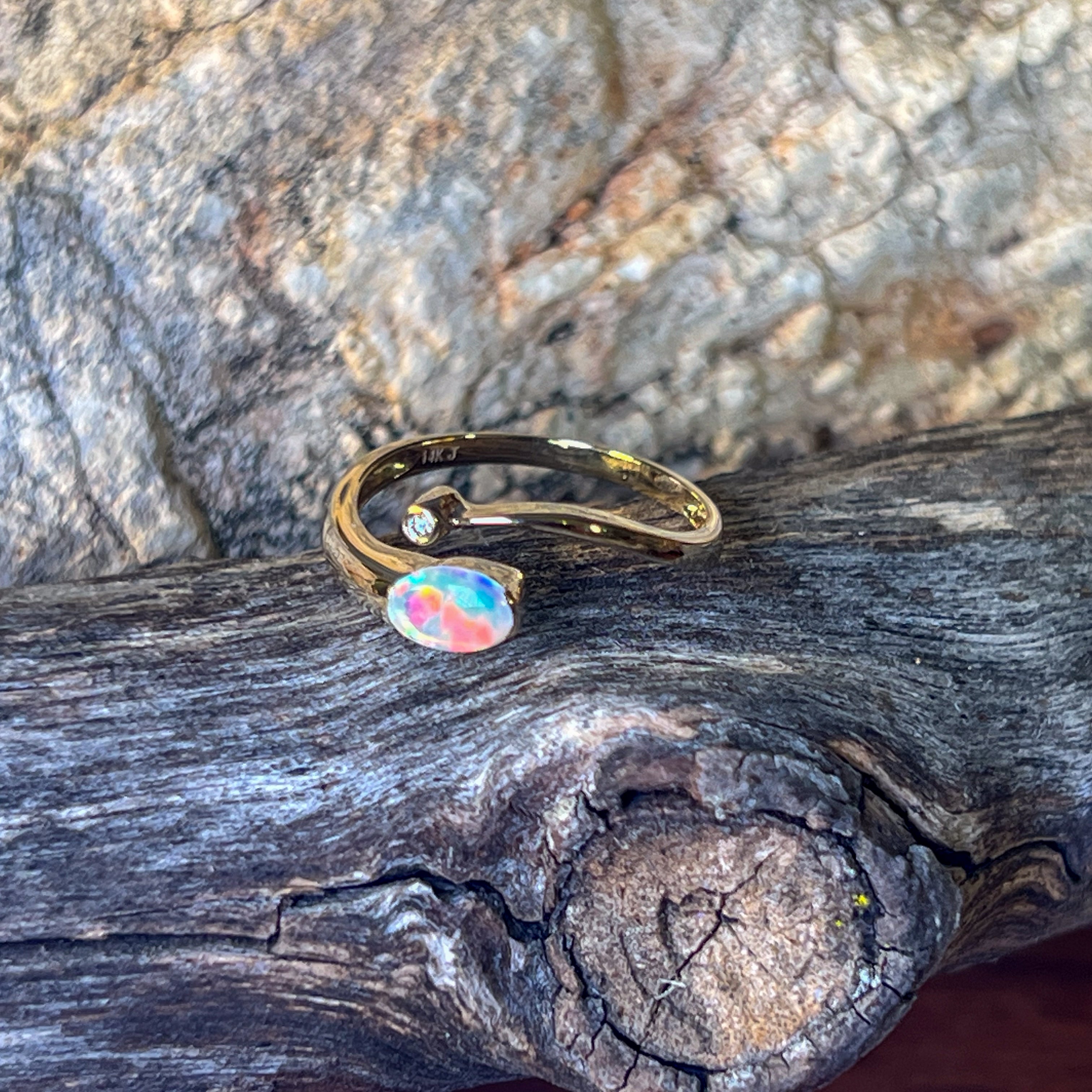 14kt Yellow Gold split shank 0.26ct Crystal Opal and Diamond split ring