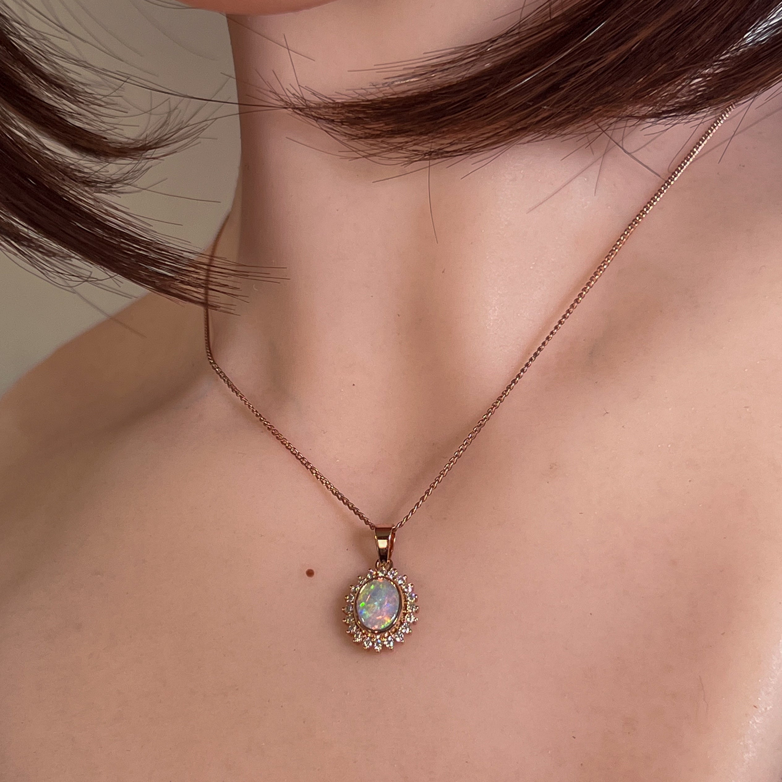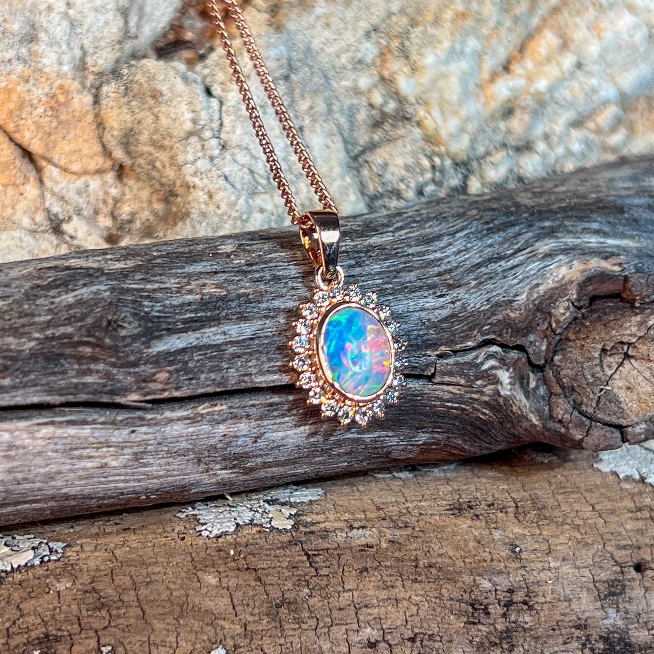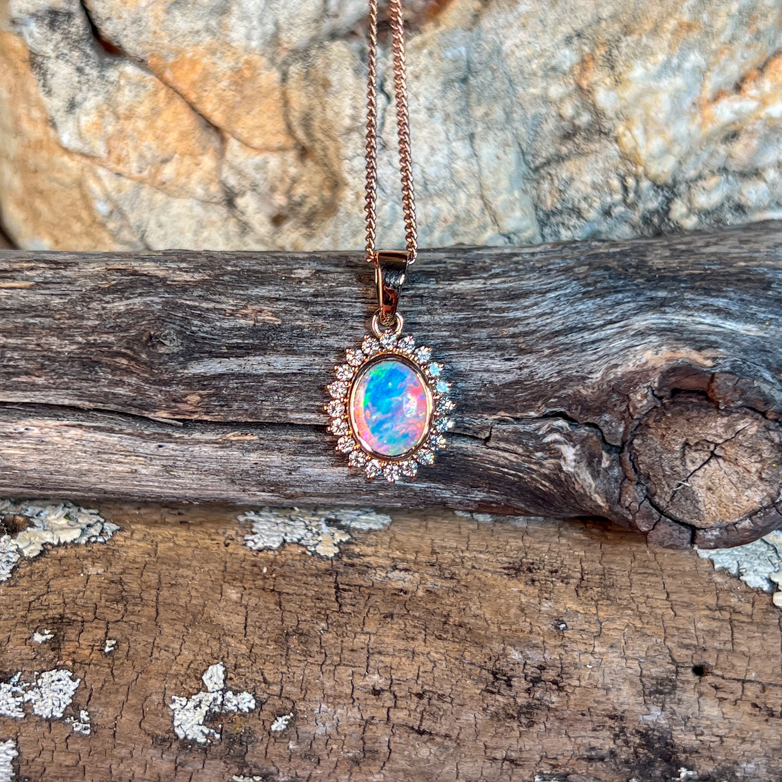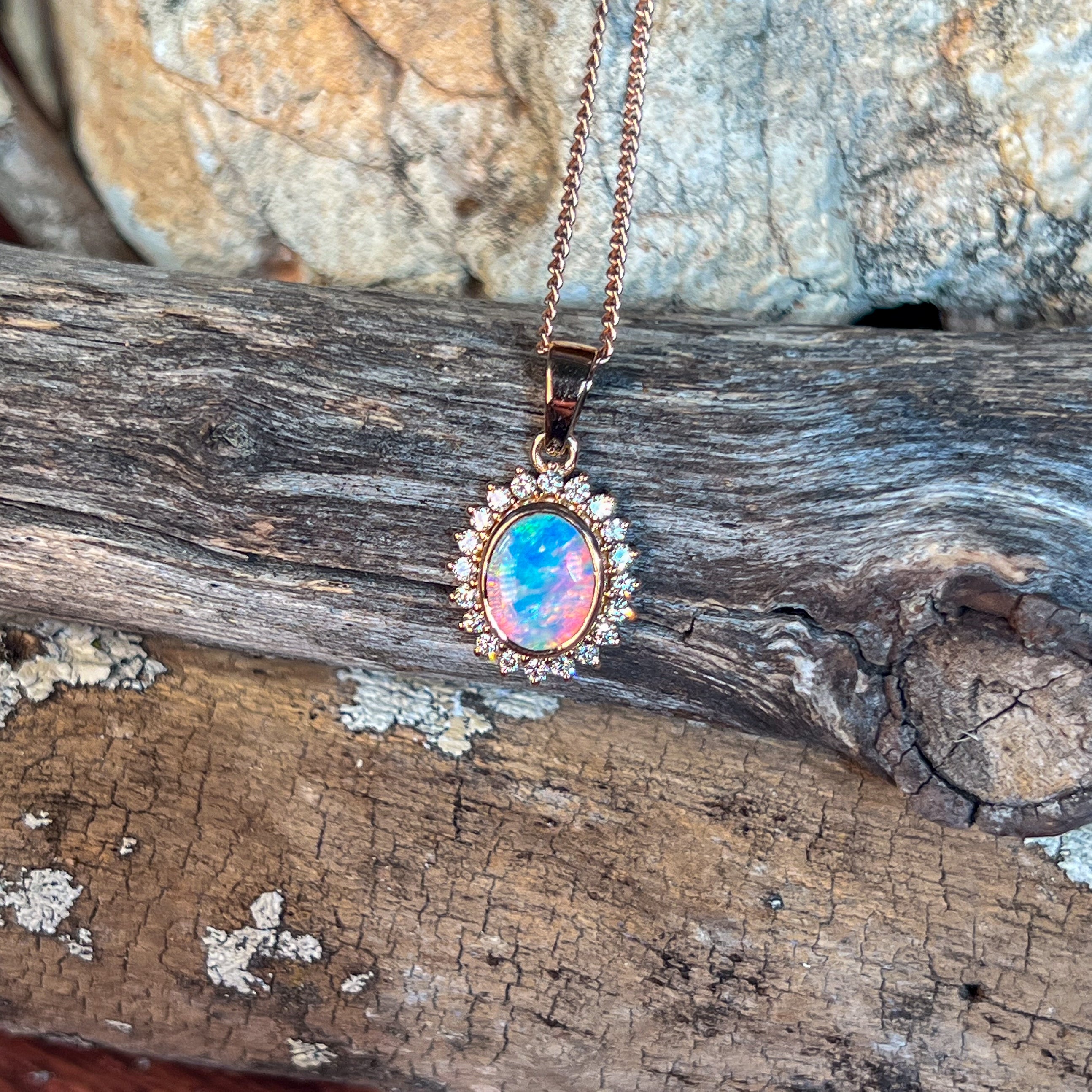 18kt Rose Gold cluster Opal crystal and diamond pendant