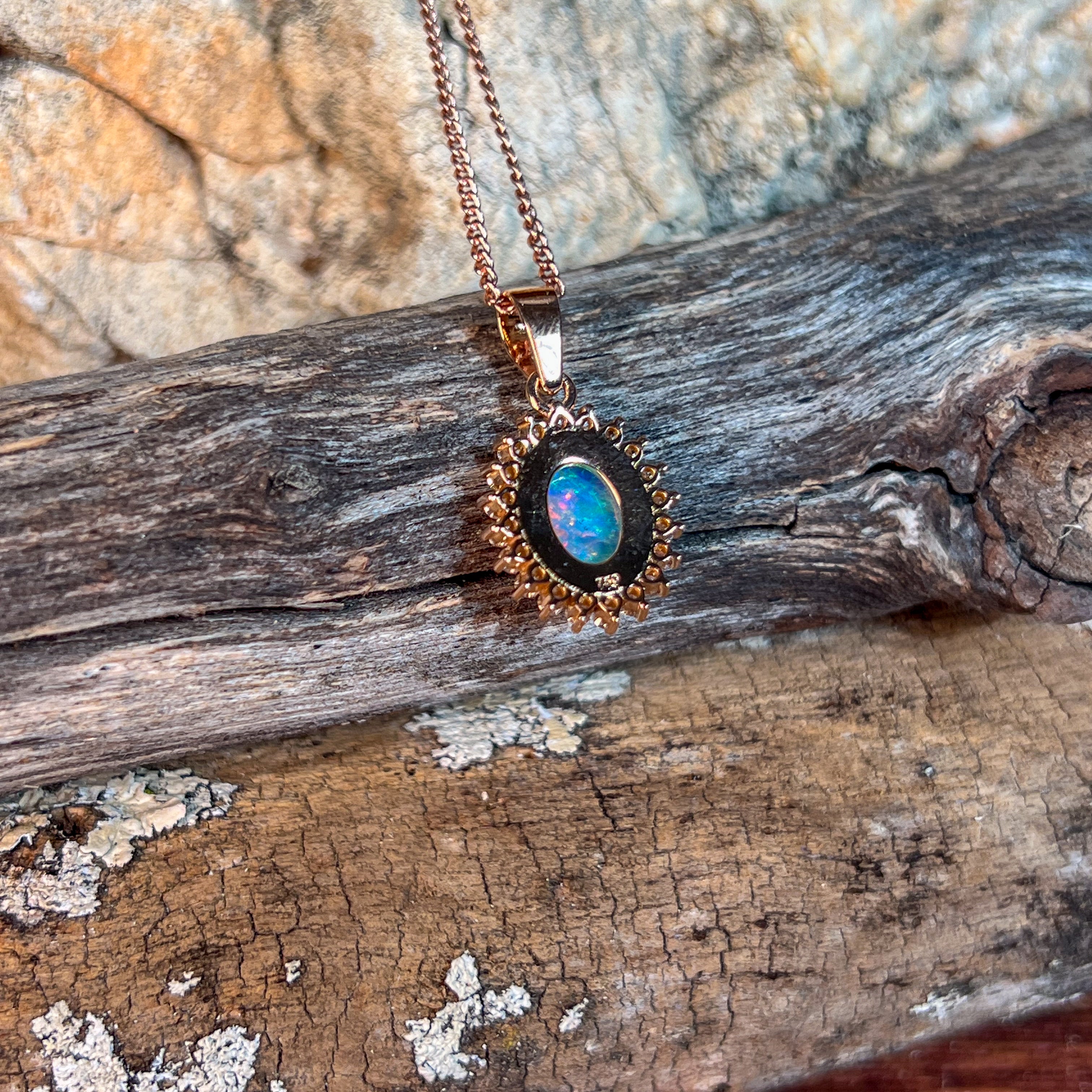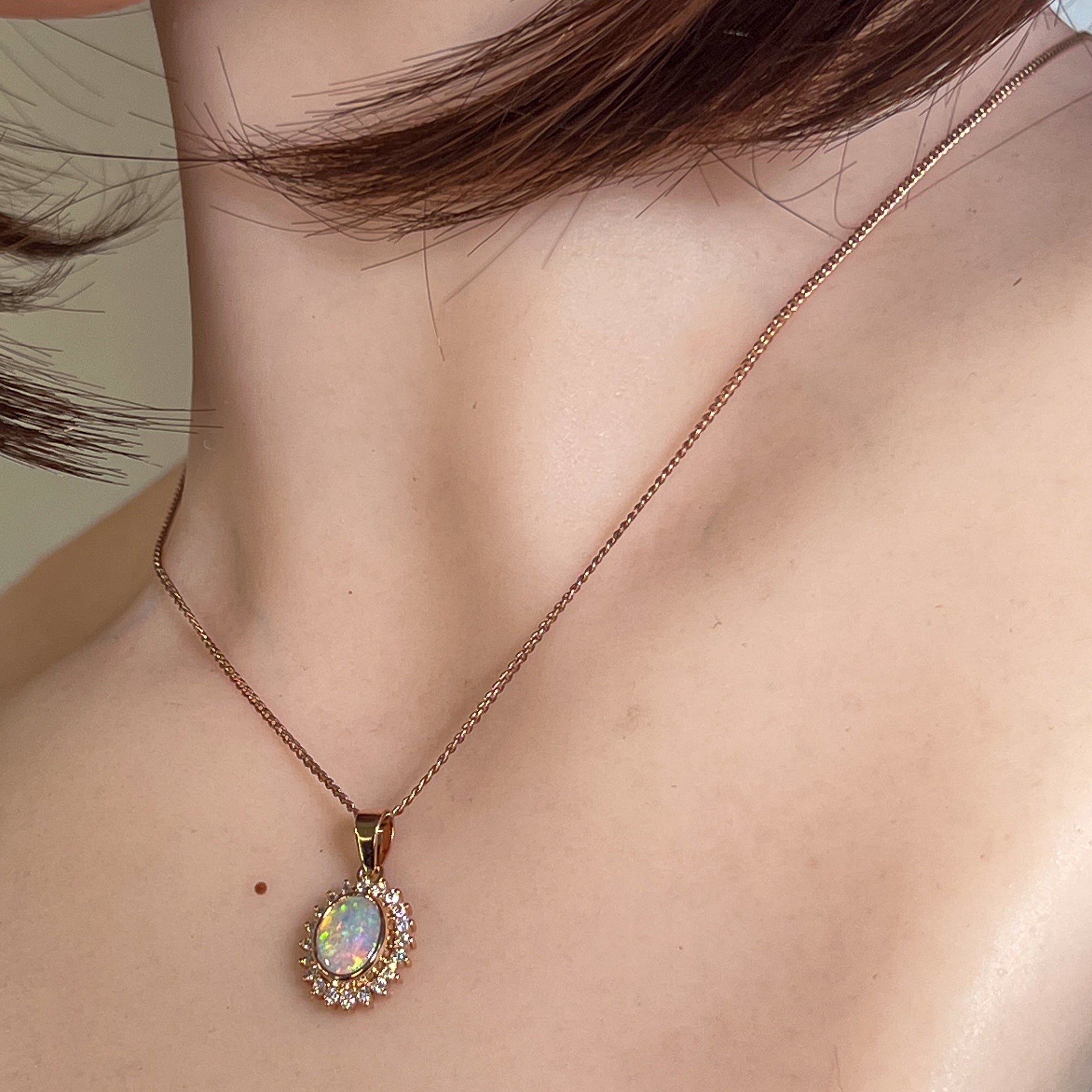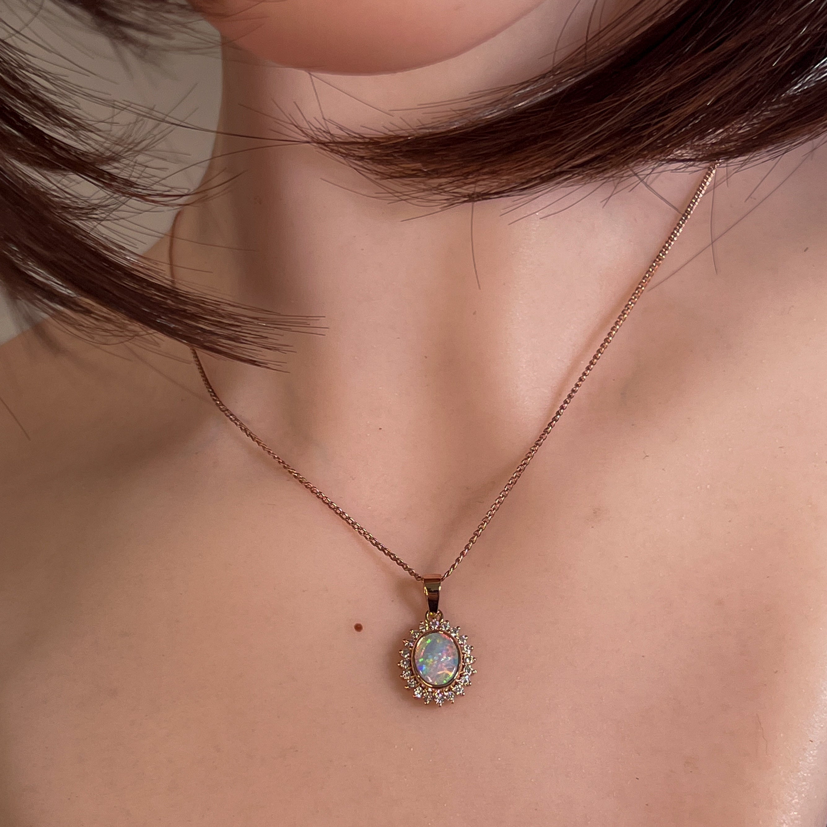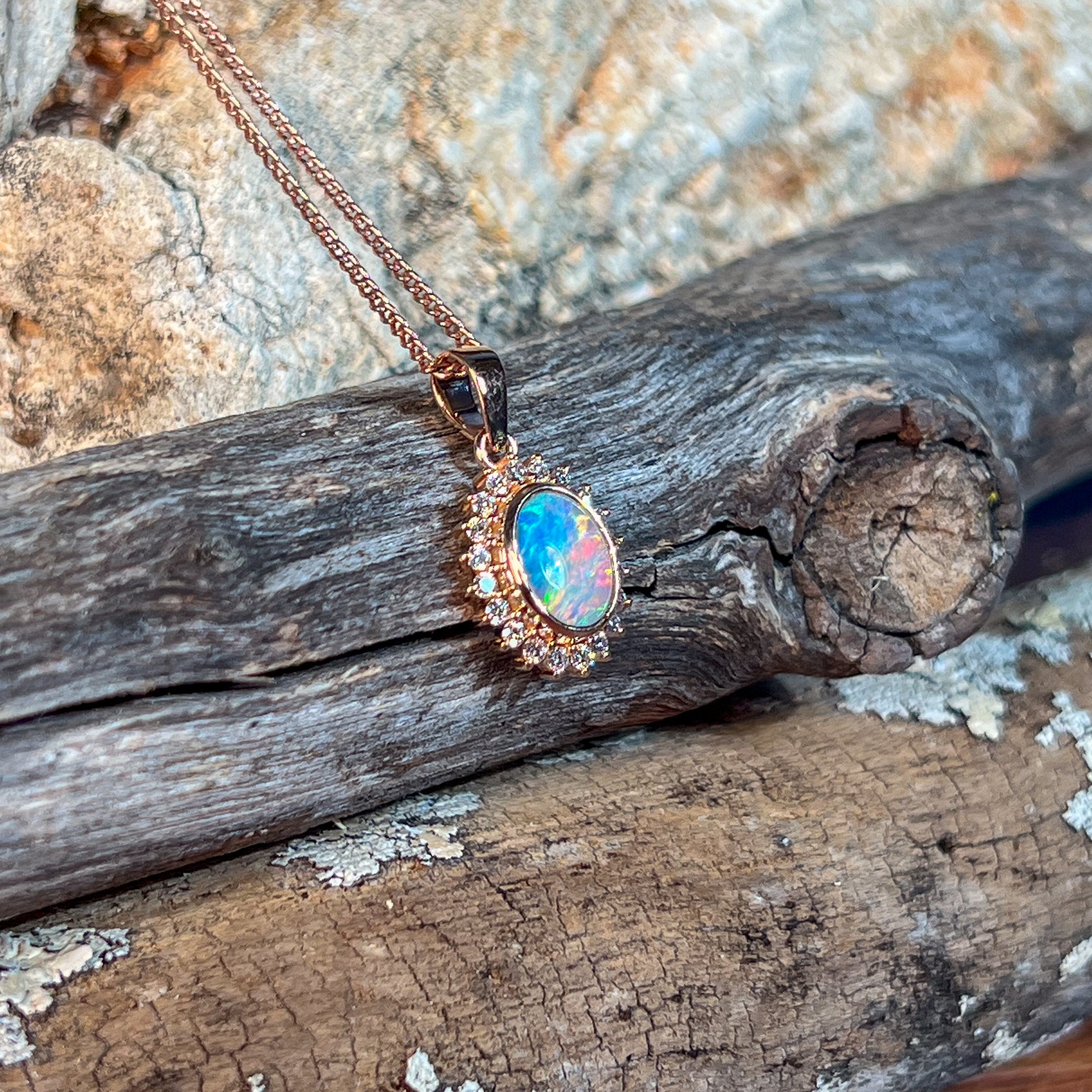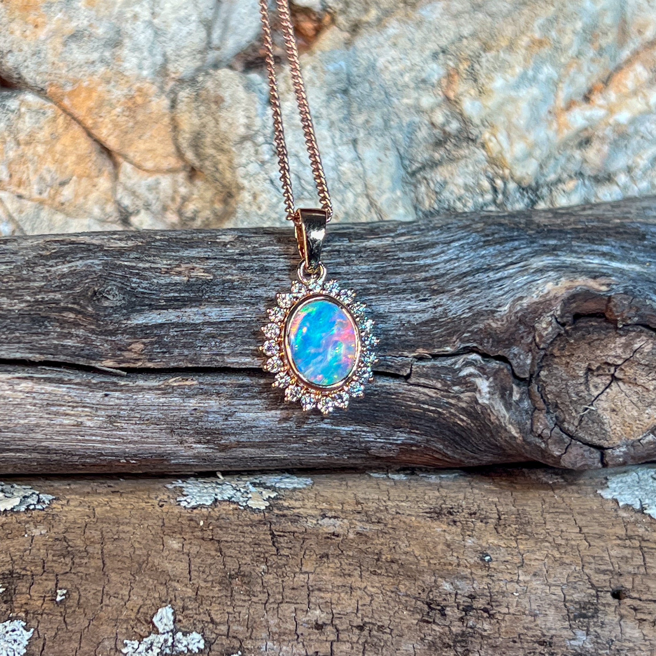 18kt Rose Gold cluster Opal crystal and diamond pendant