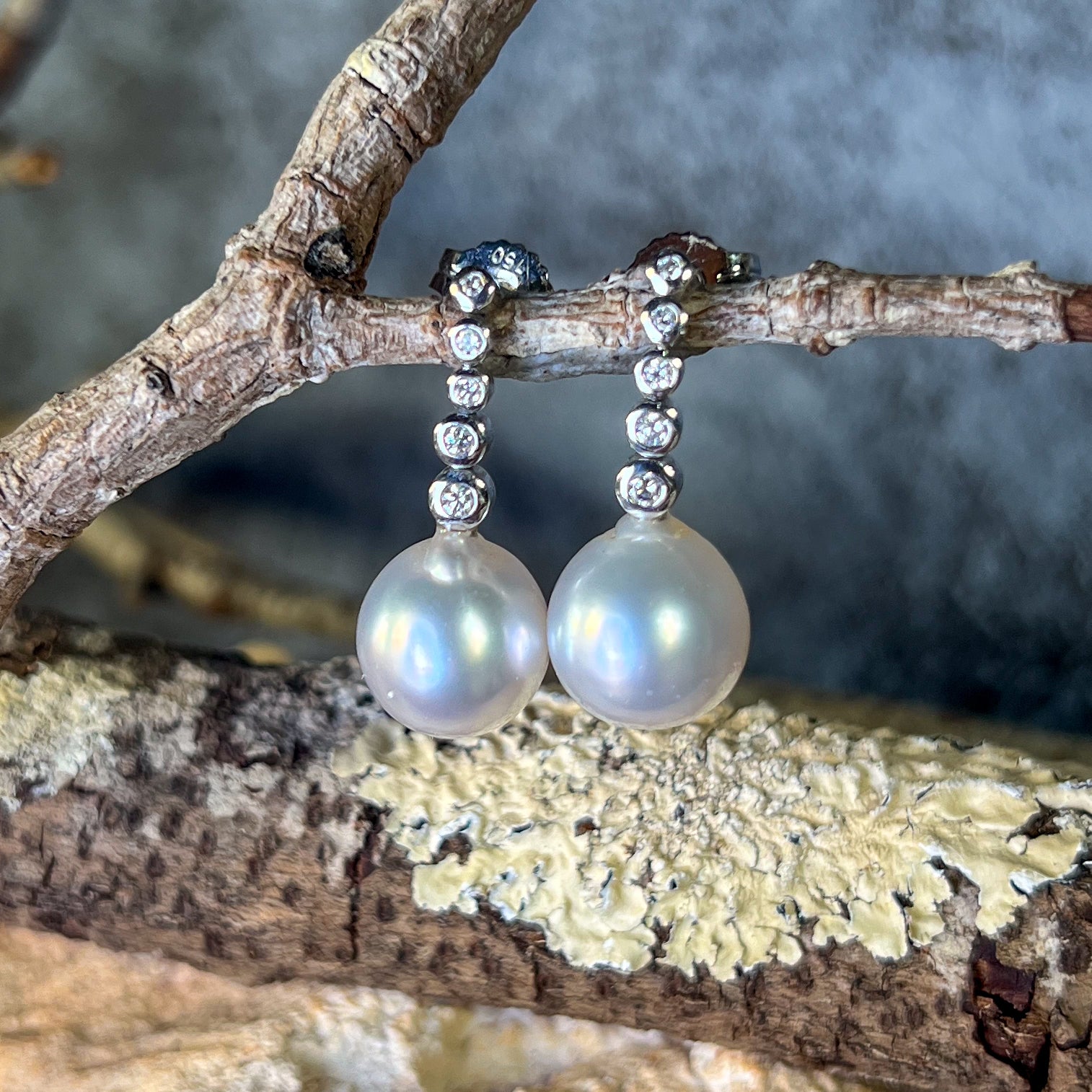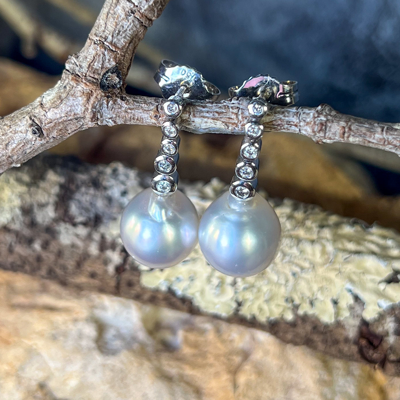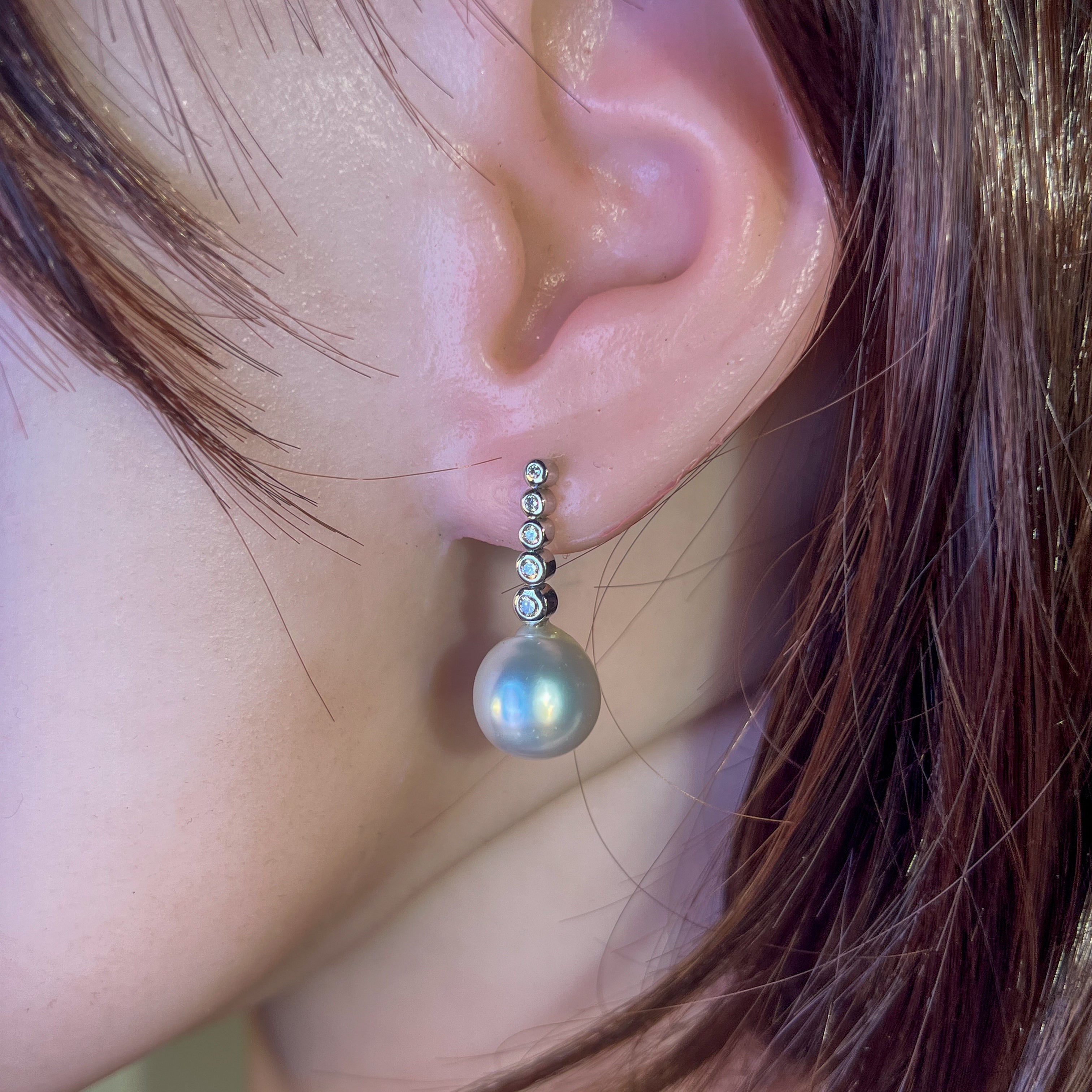 18kt White Gold long earring drop style South Sea Pearls 11mm with diamonds