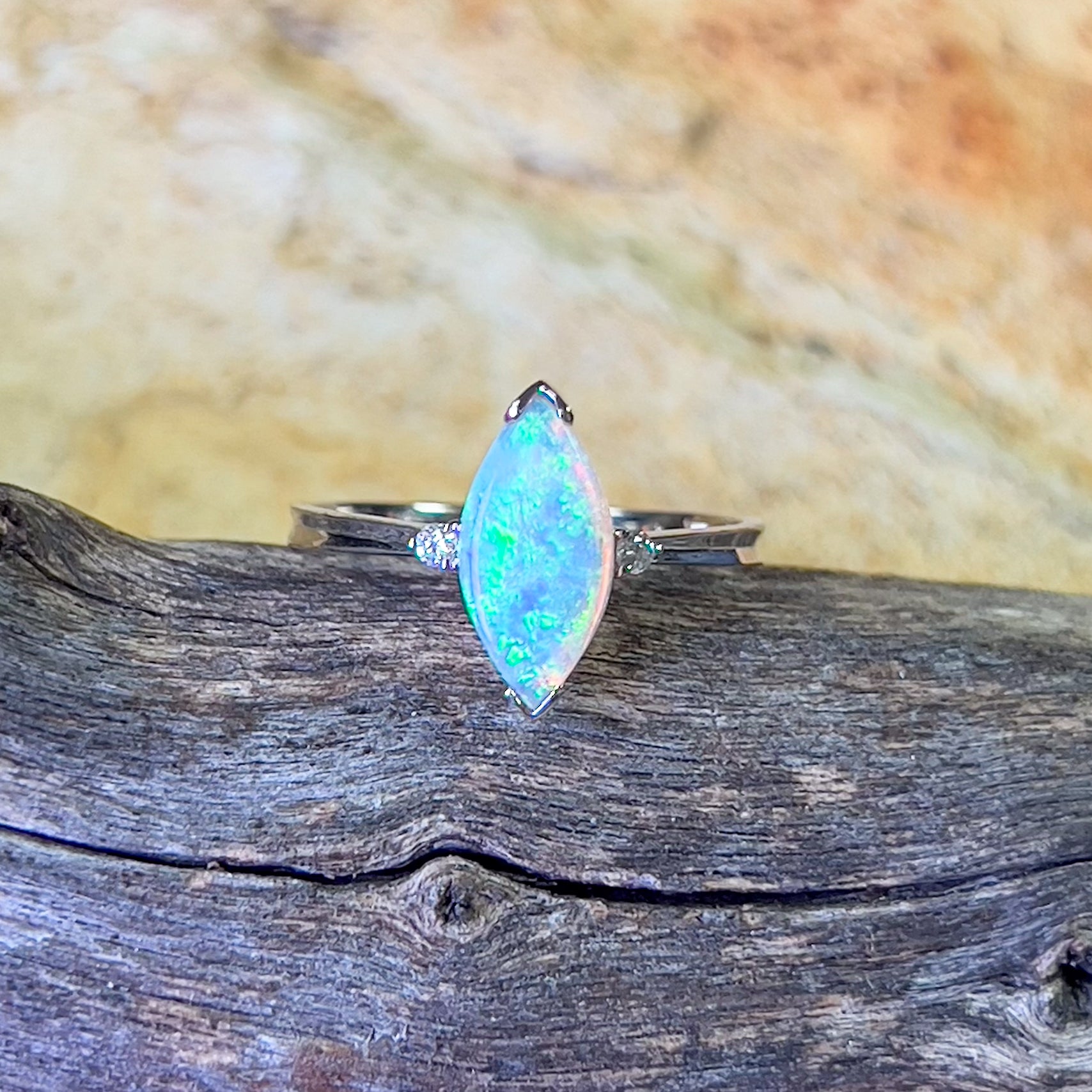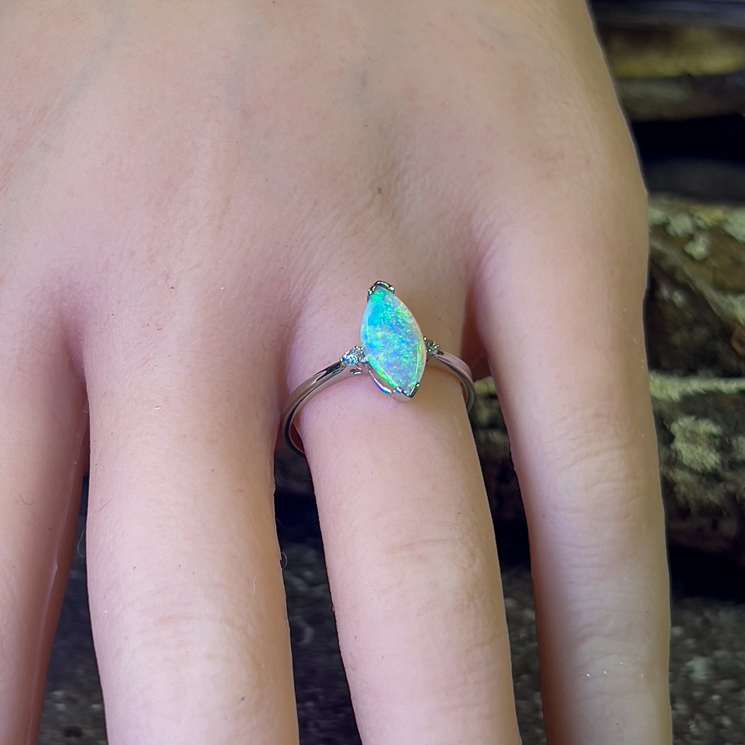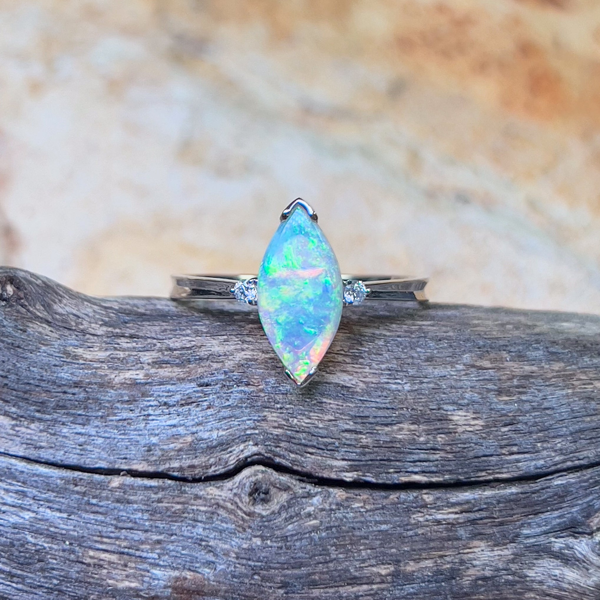 18kt White Gold Marquise Crystal Opal and diamond ring