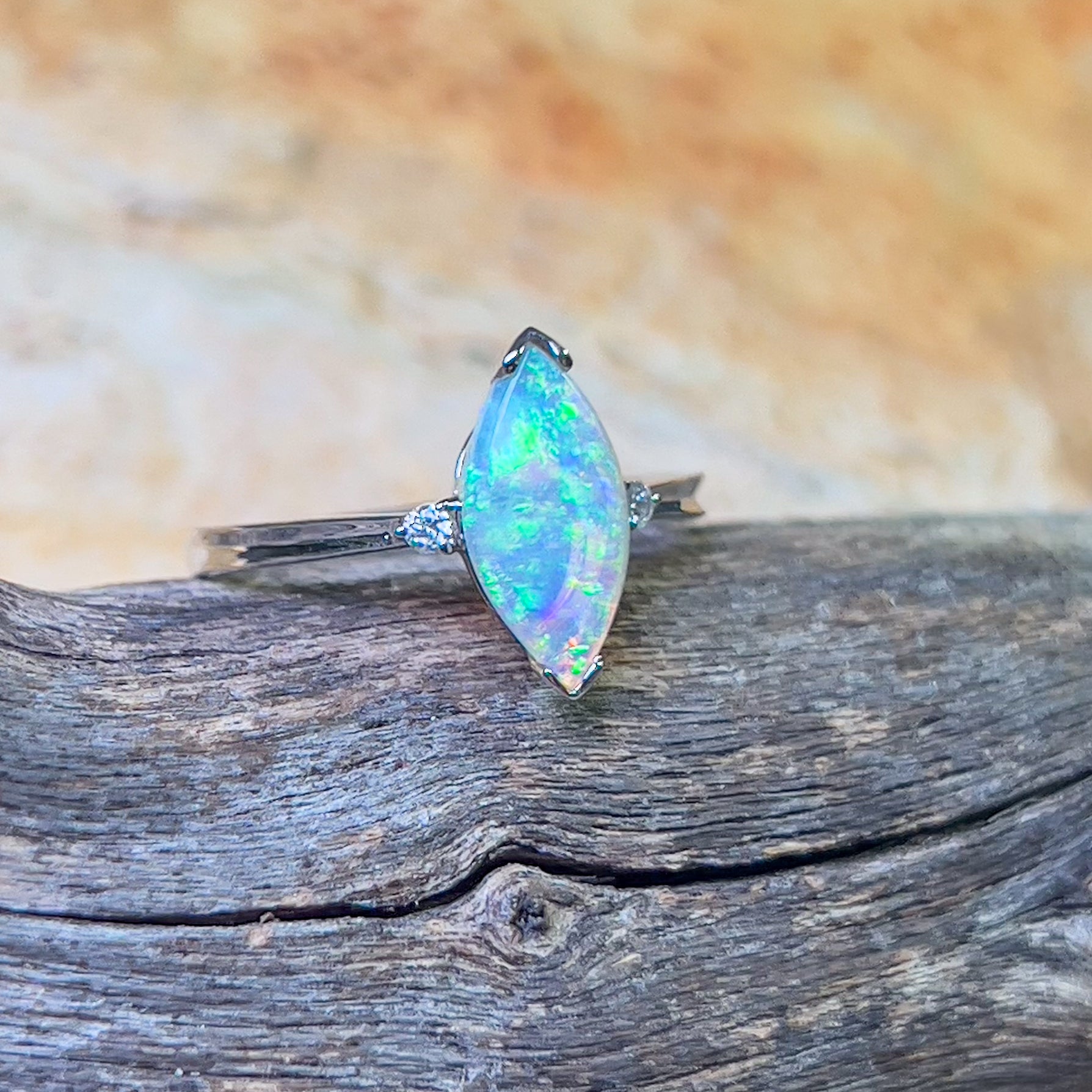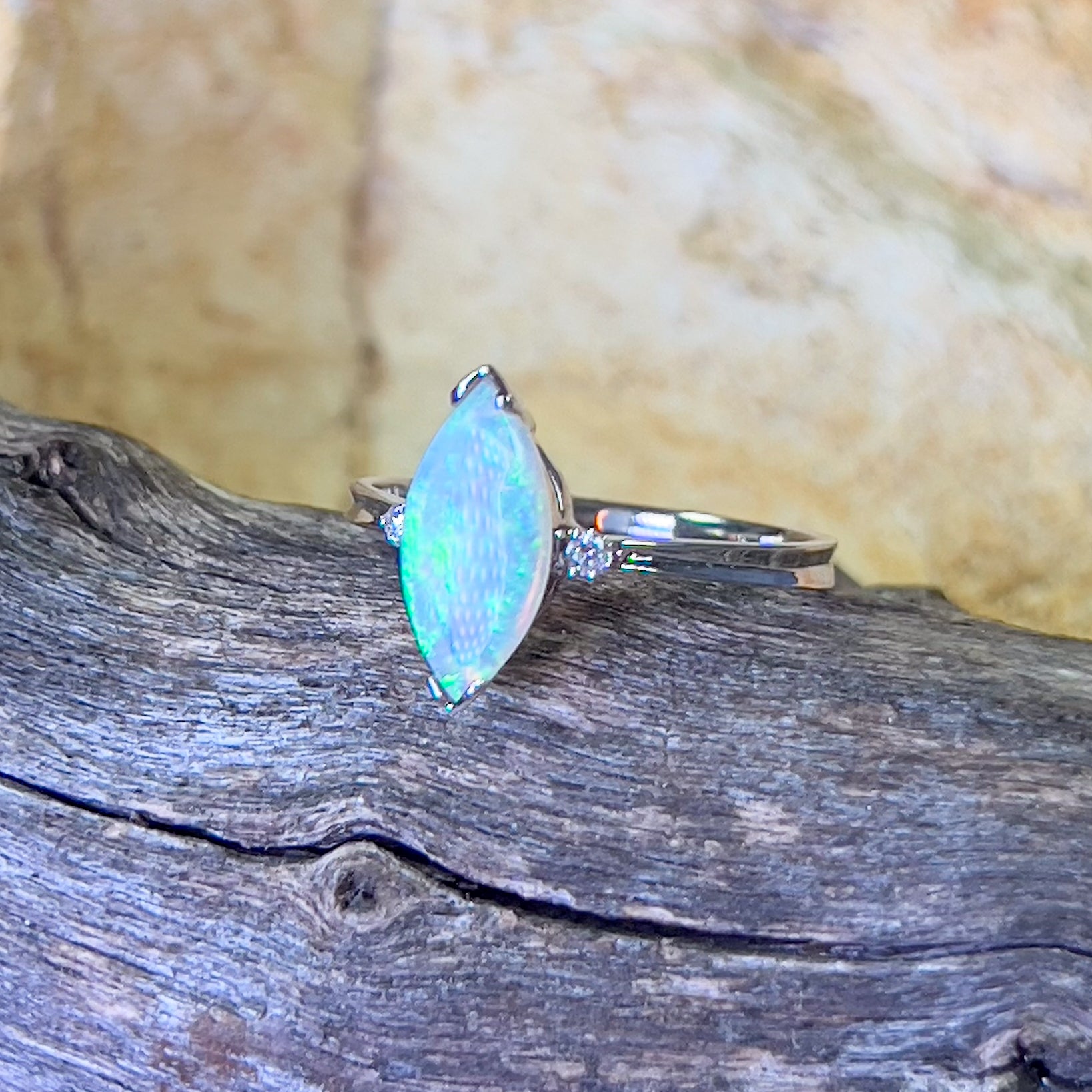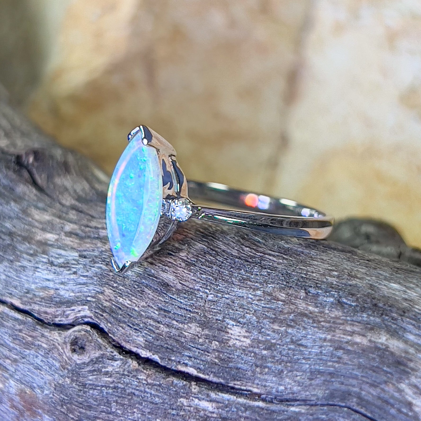 18kt White Gold Marquise Crystal Opal and diamond ring