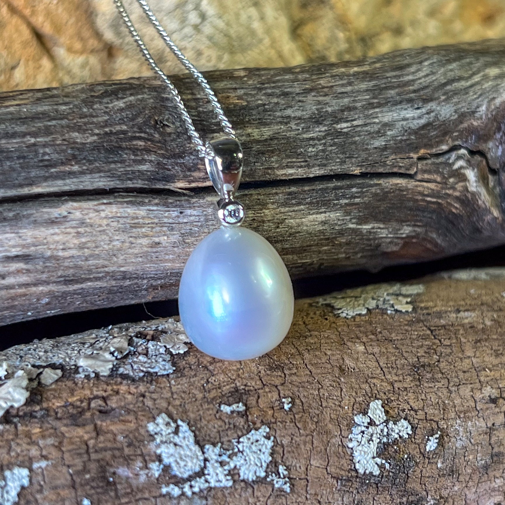 18kt White Gold South Sea Pearl 12.5mm and Diamond pendant