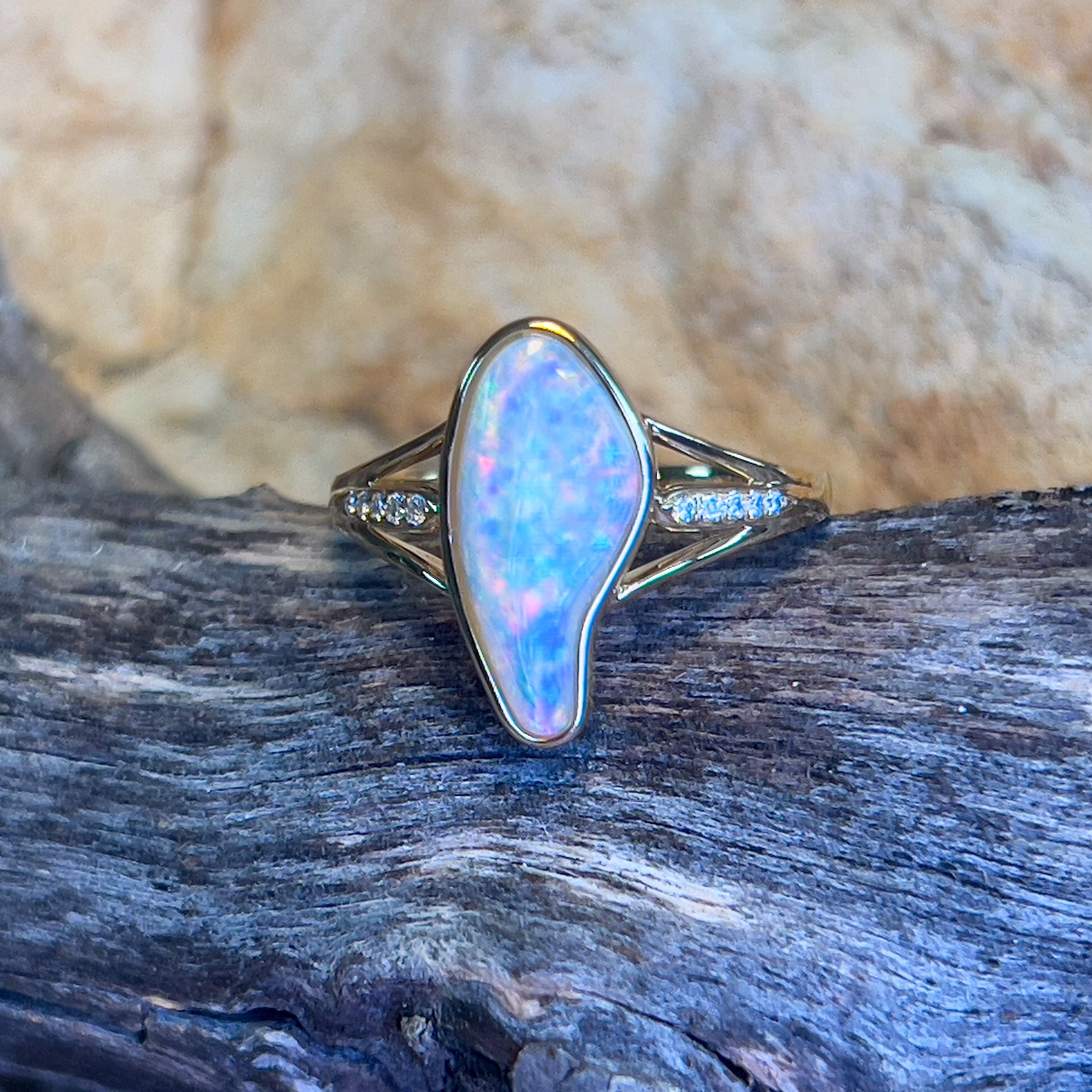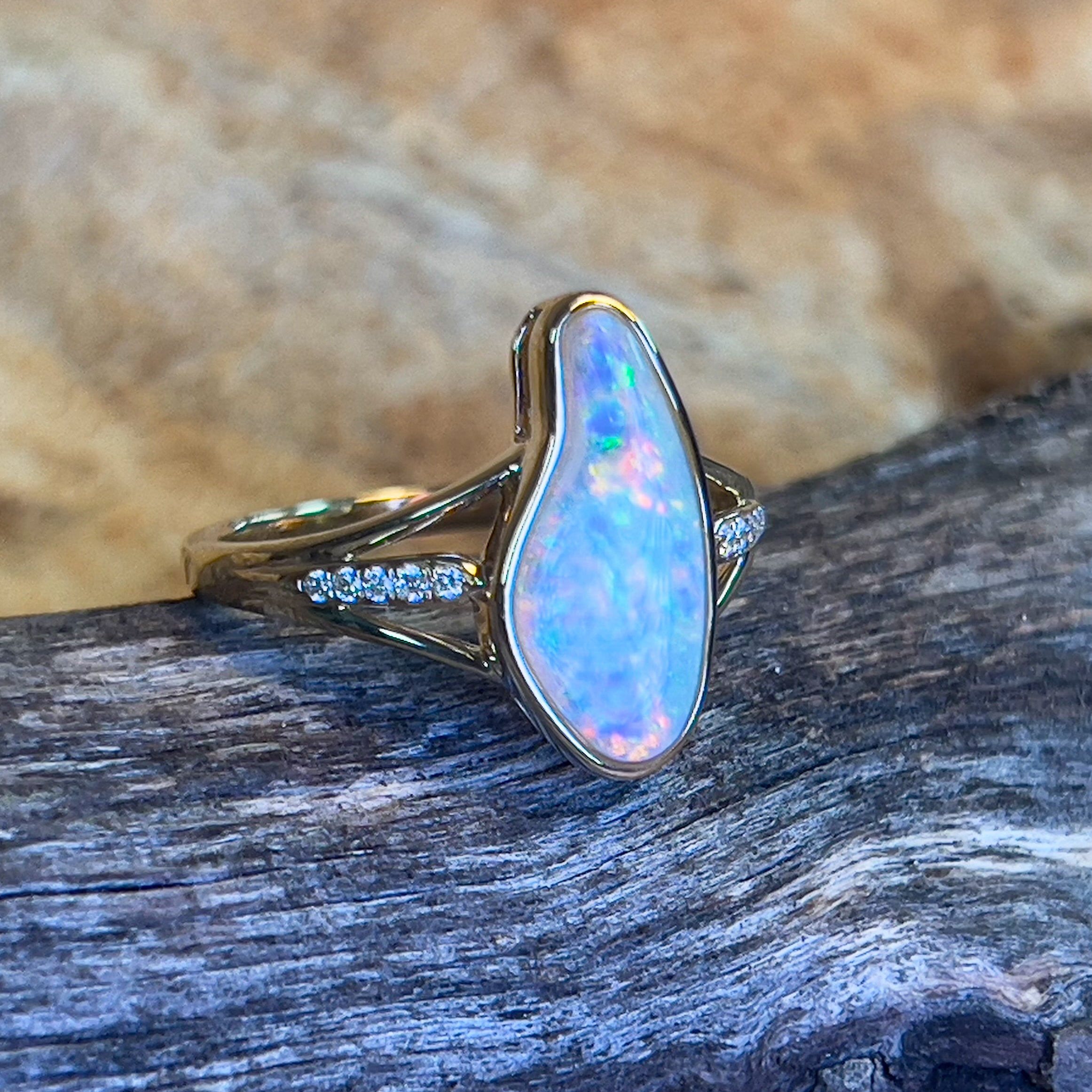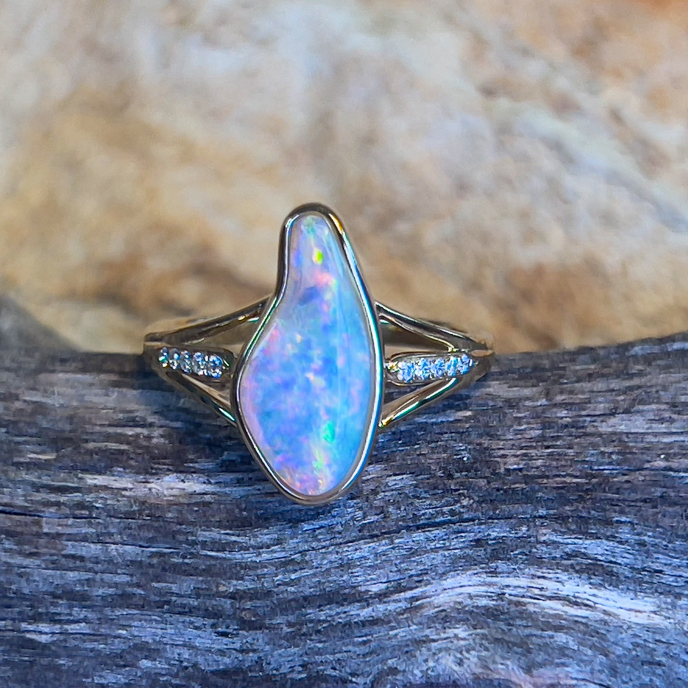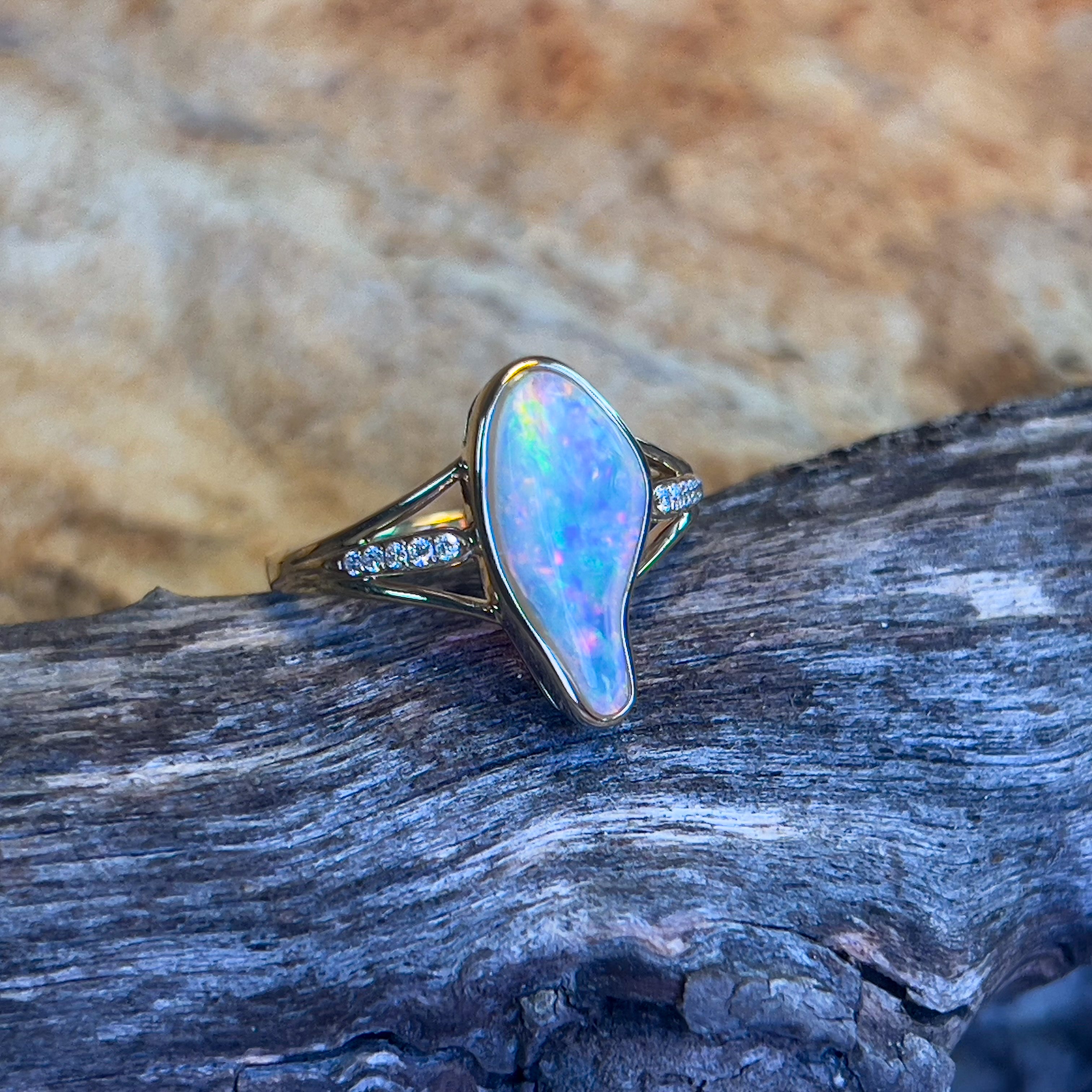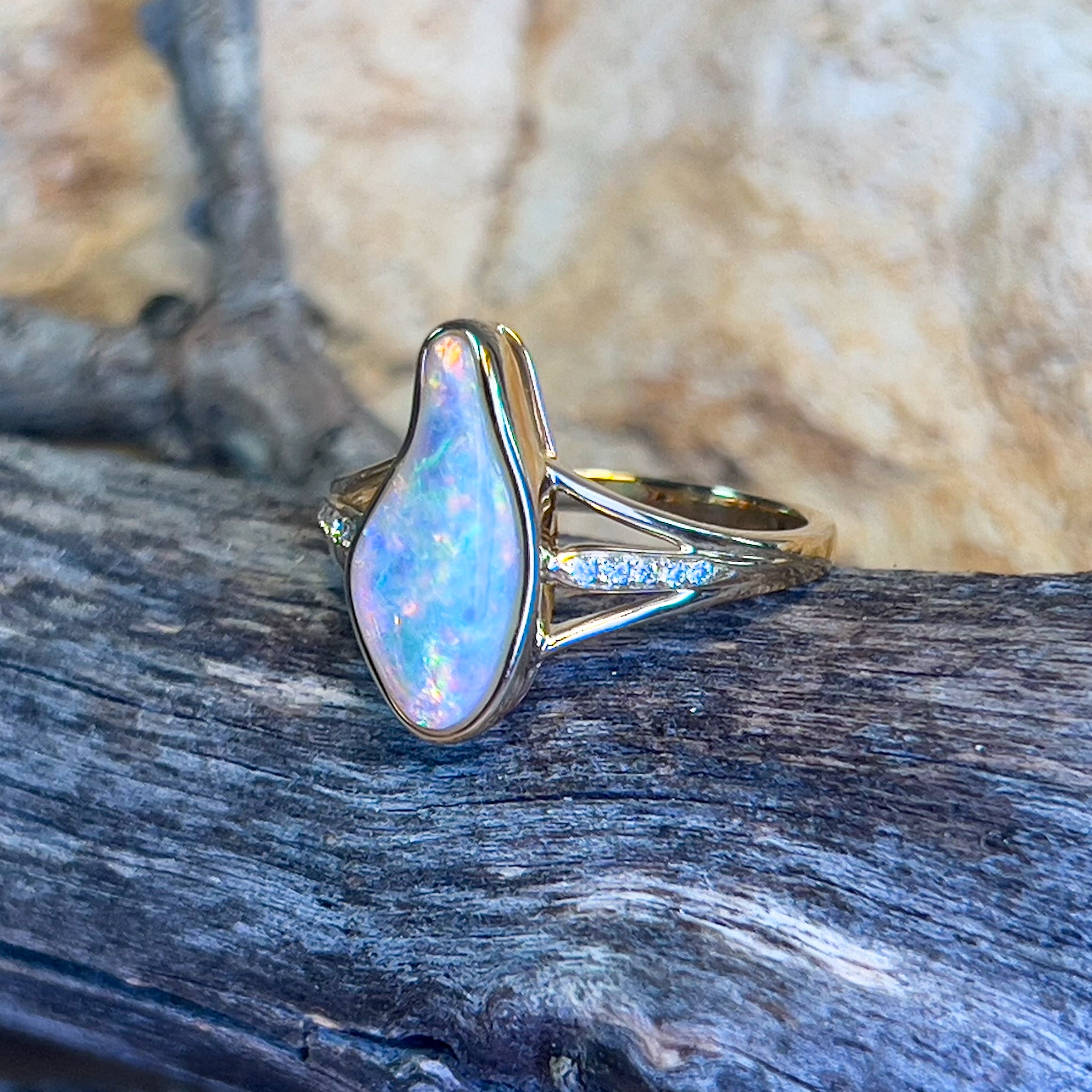 18kt Yellow gold 1.1ct freeform Opal and diamond ring