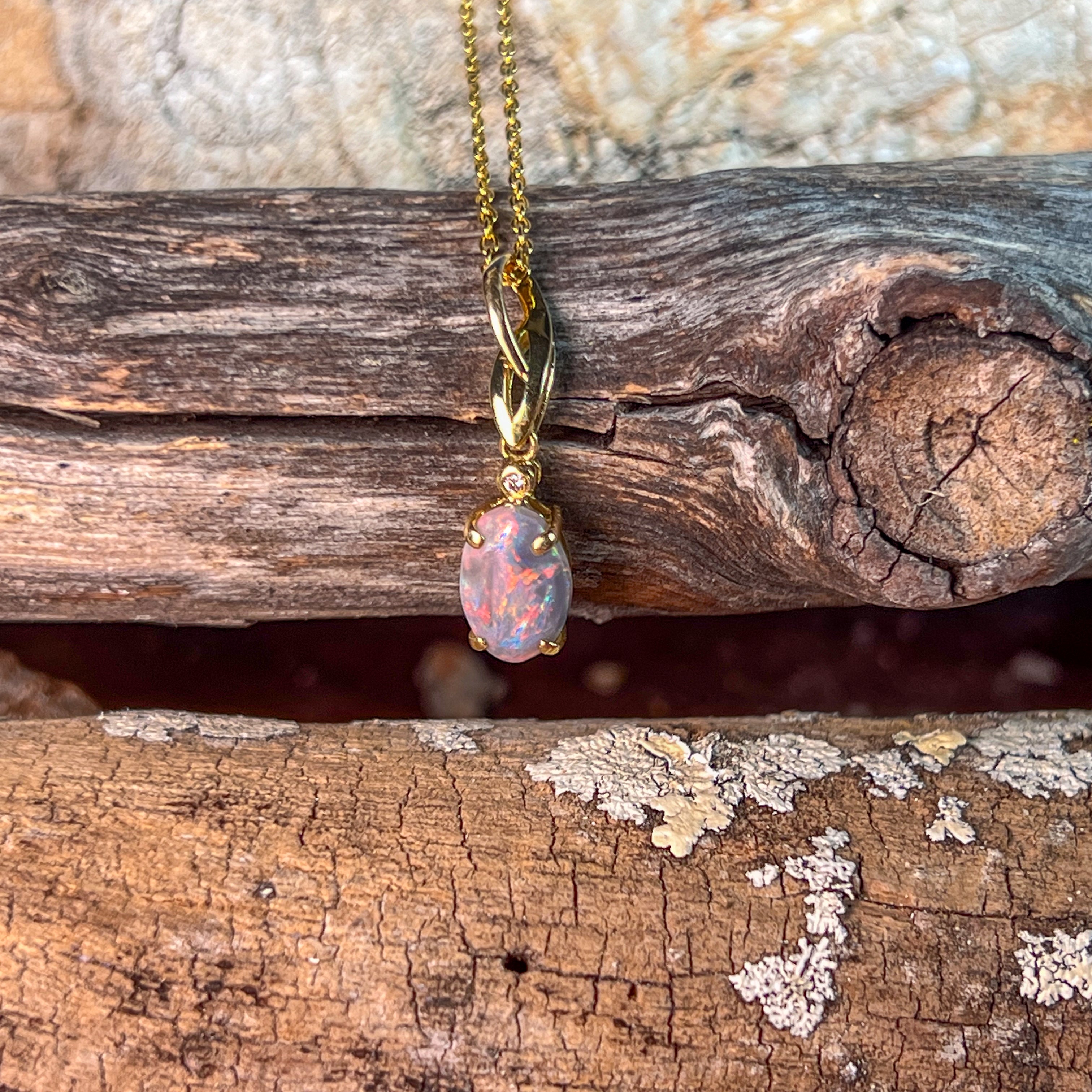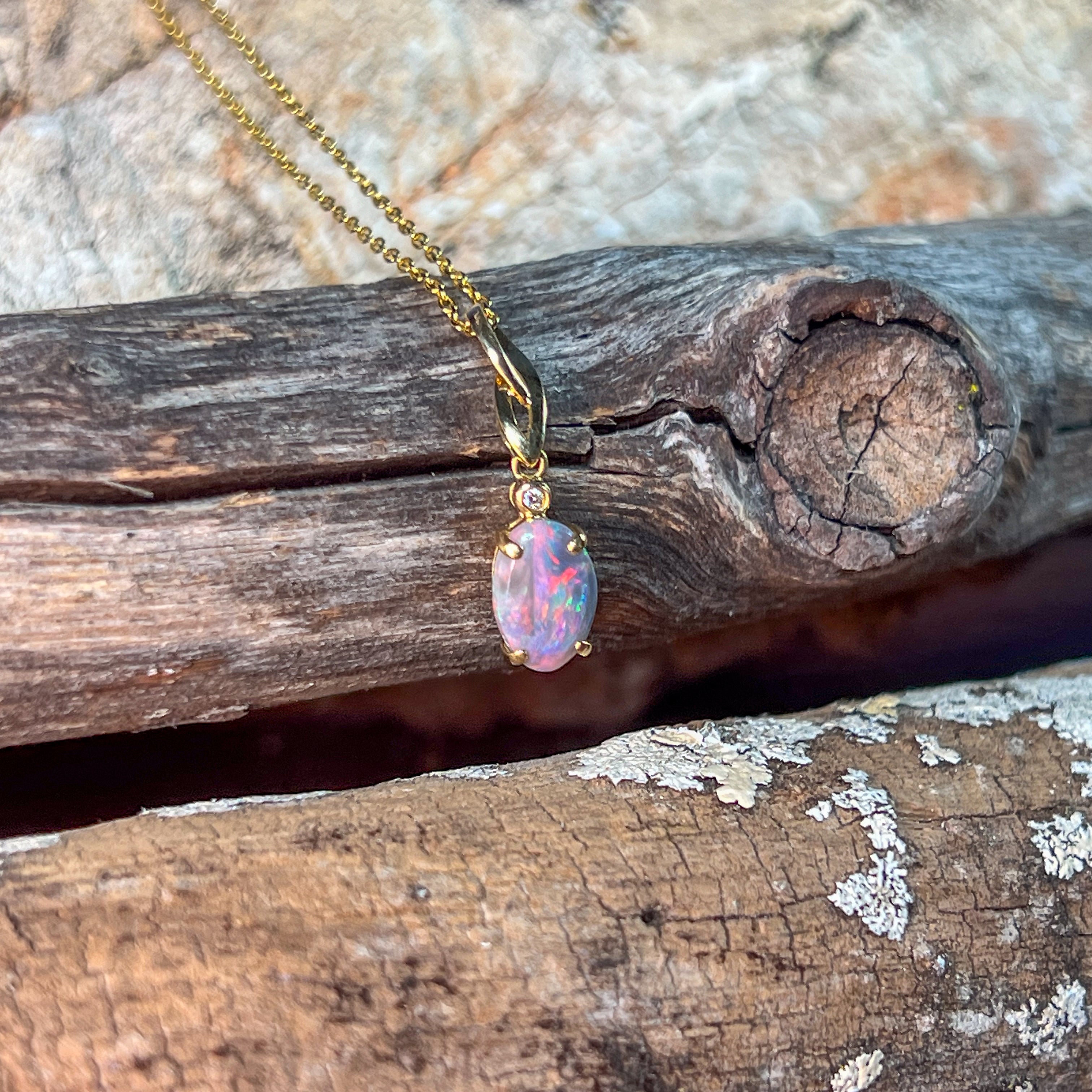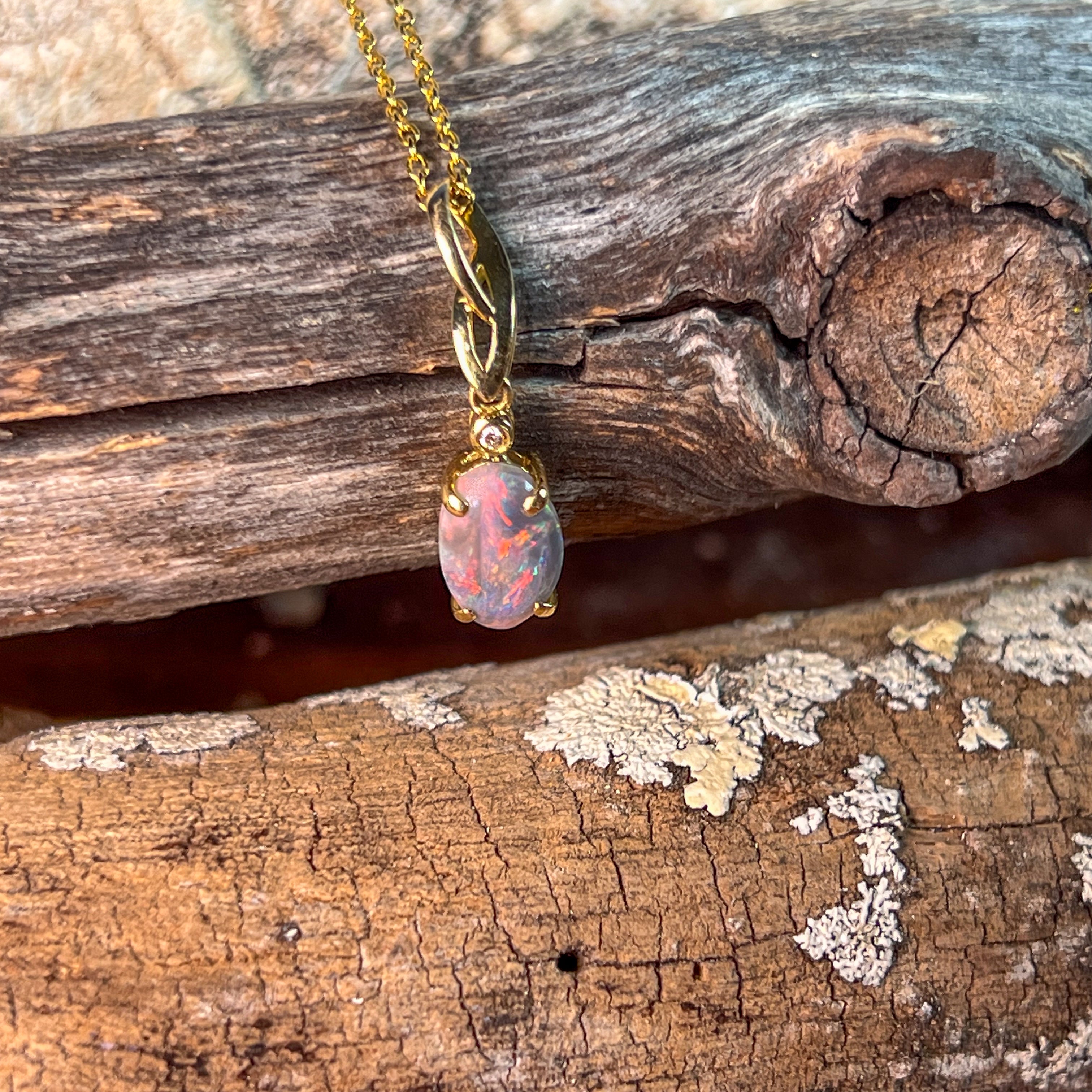 This elegant pendant features a striking 1.10ct black opal set in 18kt yellow gold, combining timeless style with a bold flash of color. Its minimalist design ensures versatile wear, making it an essential addition for those seeking understated luxury with a unique touch.