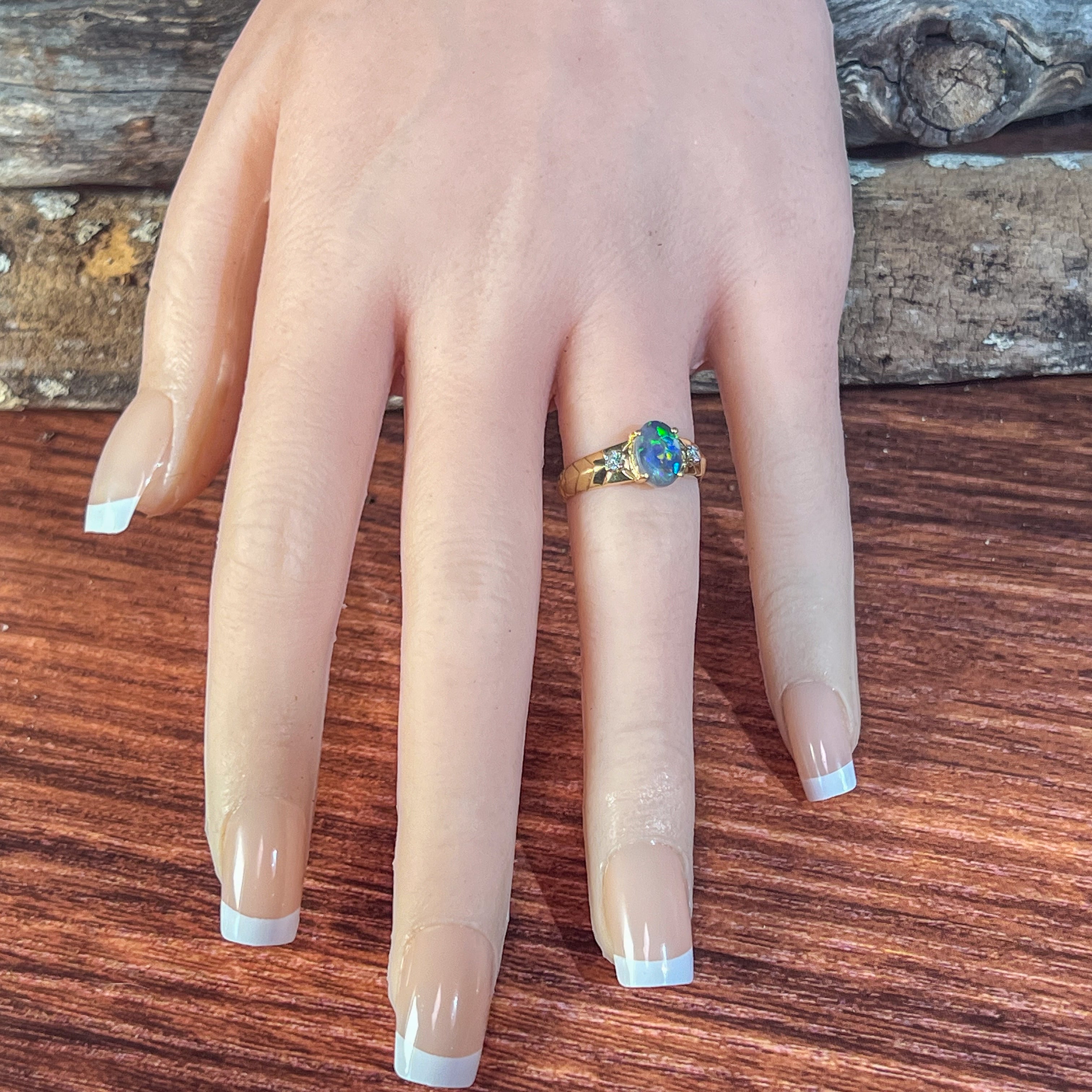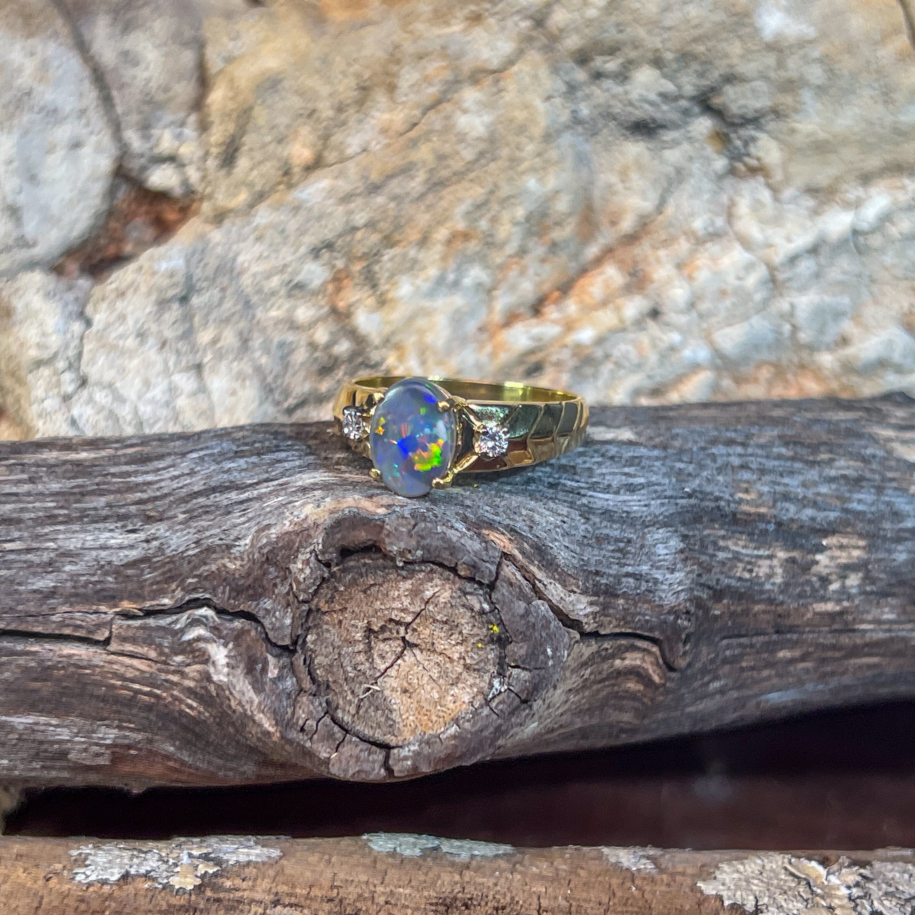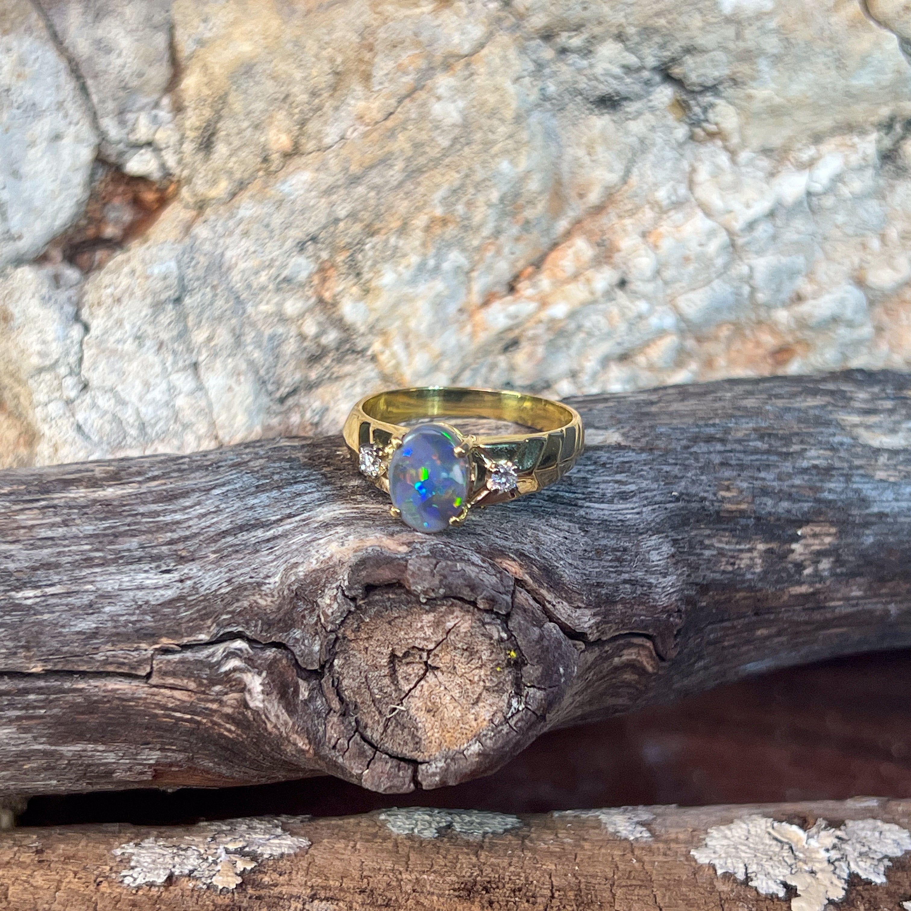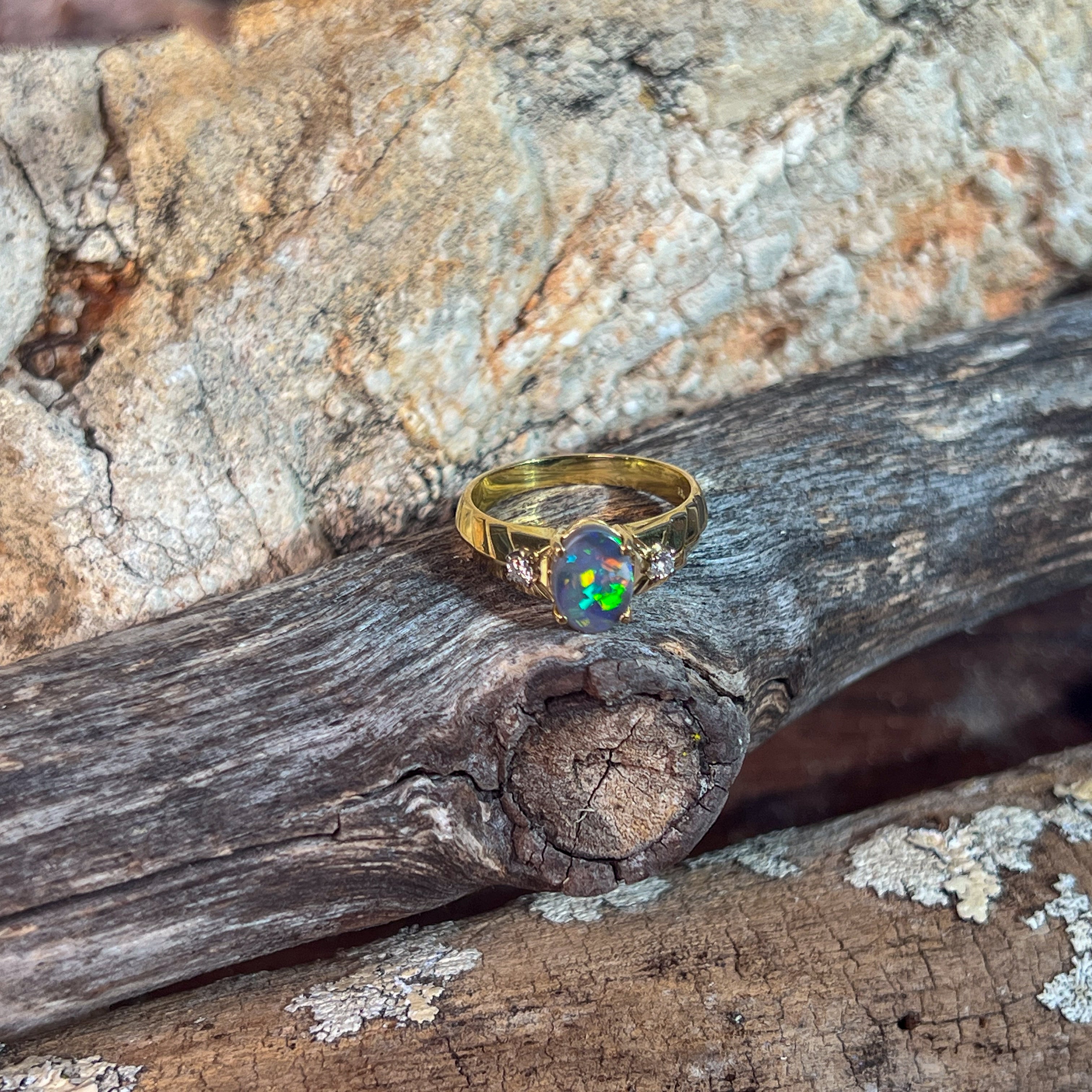 18kt Yellow Gold Black Opal 1.2ct 2 diamond ring